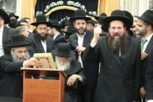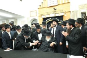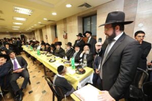 The Mashgiach Hagaon Harav Binyomin Finkel Shlita, Hagaon Harav Yitzchok Ezrachi Shlita, and the Rosh Yeshiva Shlita offered divrei zikaron v’hisorerus. The event then reached a historic climax as Maran Sar Hatorah Rav Chaim Kanievsky Shlita entered the Bais Medrash. The crowd broke out in the singing of Yomim Al Yemei Melech Tosif. The Rosh Hayeshiva took a few moments to explain the tremendous zchus and significance of Rav Chaim’s participation; this was his first time visiting the Mir in his entire life!