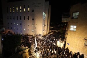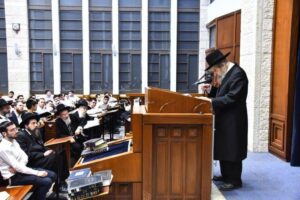 For the past several years, at urging of the Rosh Hayeshiva Shlita, talmidim in Yeshiva commit to complete the learning of masechtos l’illuy nishmas Rav Nosson Tzvi, collectively being mesayem Shas many times. This year, the talmidim’s combined efforts yielded in the completion of Shas fifty-one times! The grand siyum took place on Motzei Shabbos. The Yeshiva’s main Bais Medrash was filled beyond capacity, spilling over onto the surrounding streets, where large outdoor screens and speakers were set up to enable everyone’s participation.