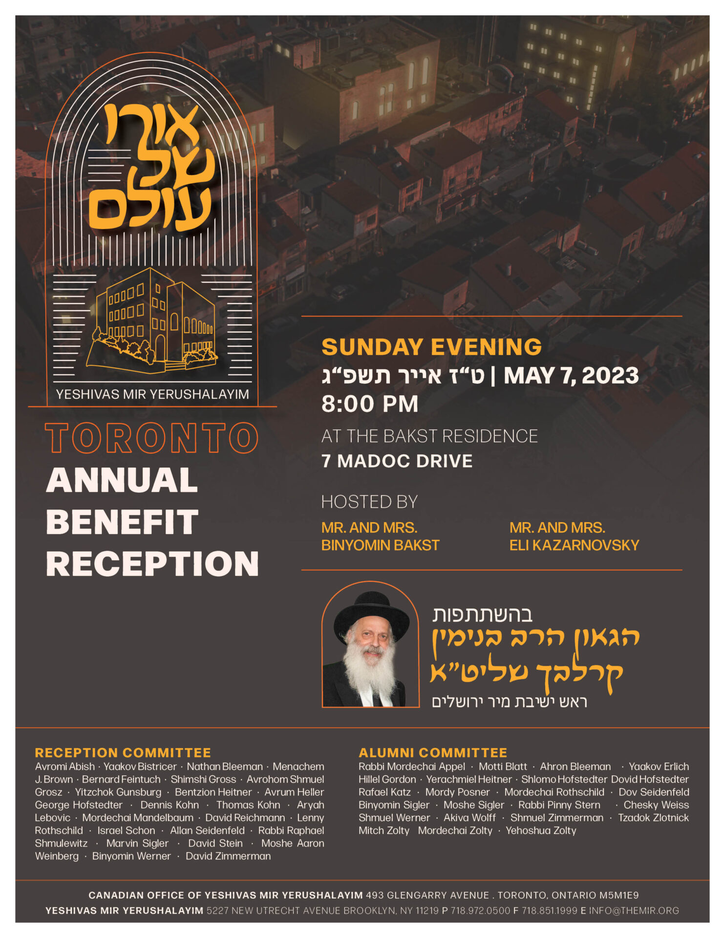 Rav Binyomin Carlebach has been representing the Mir Yeshiva with this yearly visit to Toronto for over 30 years. The kehilla of Toronto considers it a great zchus to be part of the Mir Shalsheles that is now over 200 years strong!