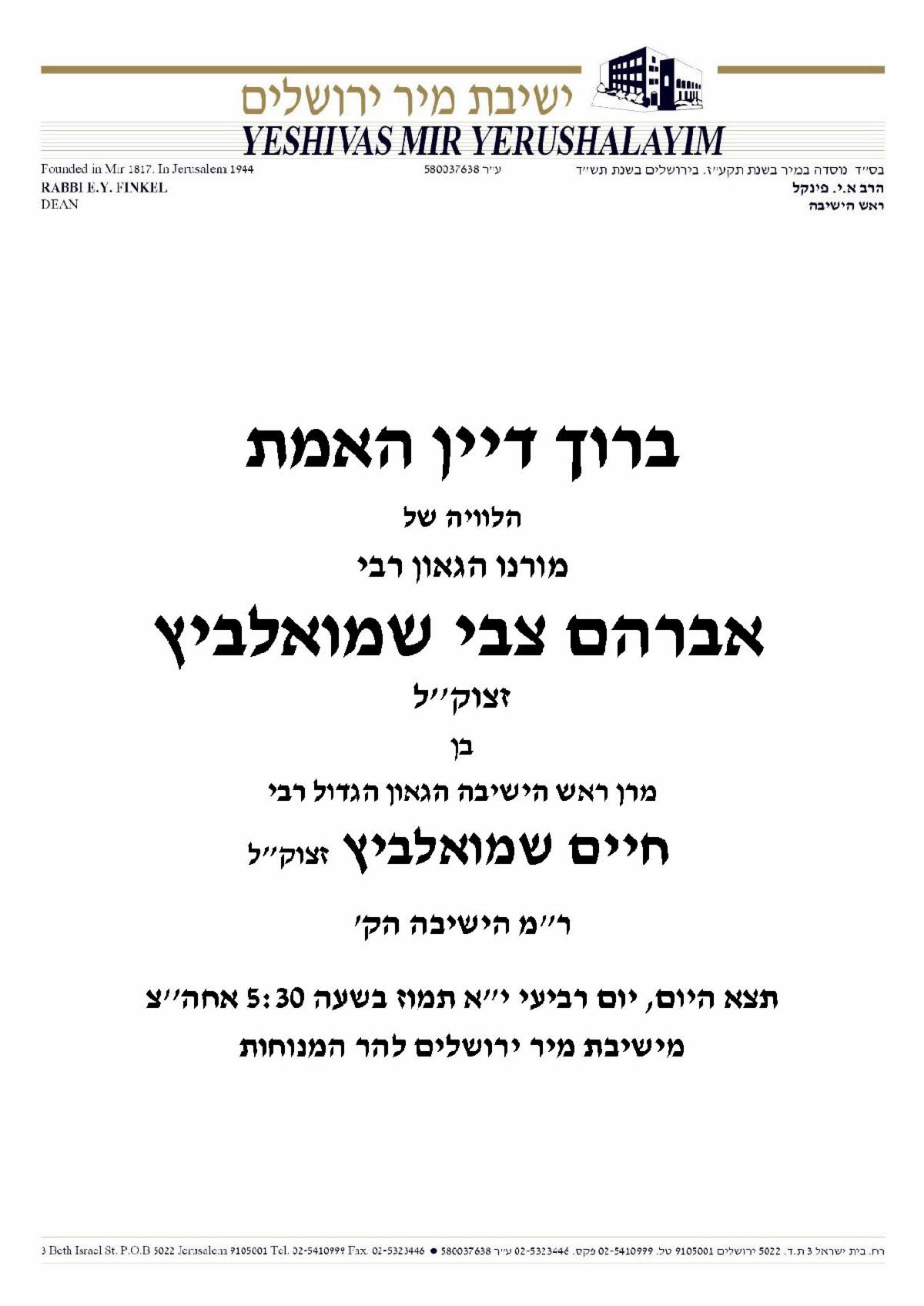 Maran Rosh Hayeshiva Hagaon Harav Chaim Shmuelevitz zt”l
