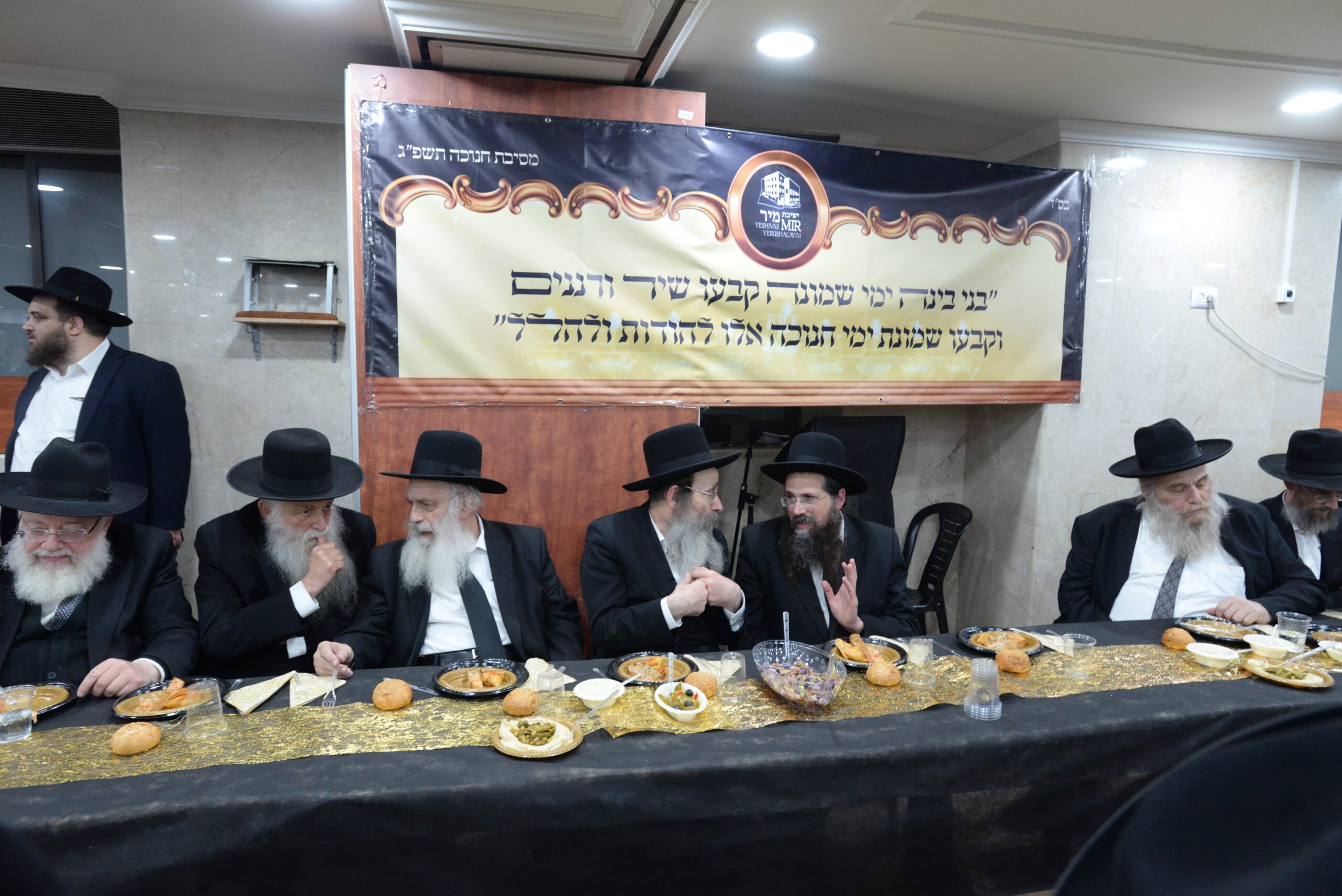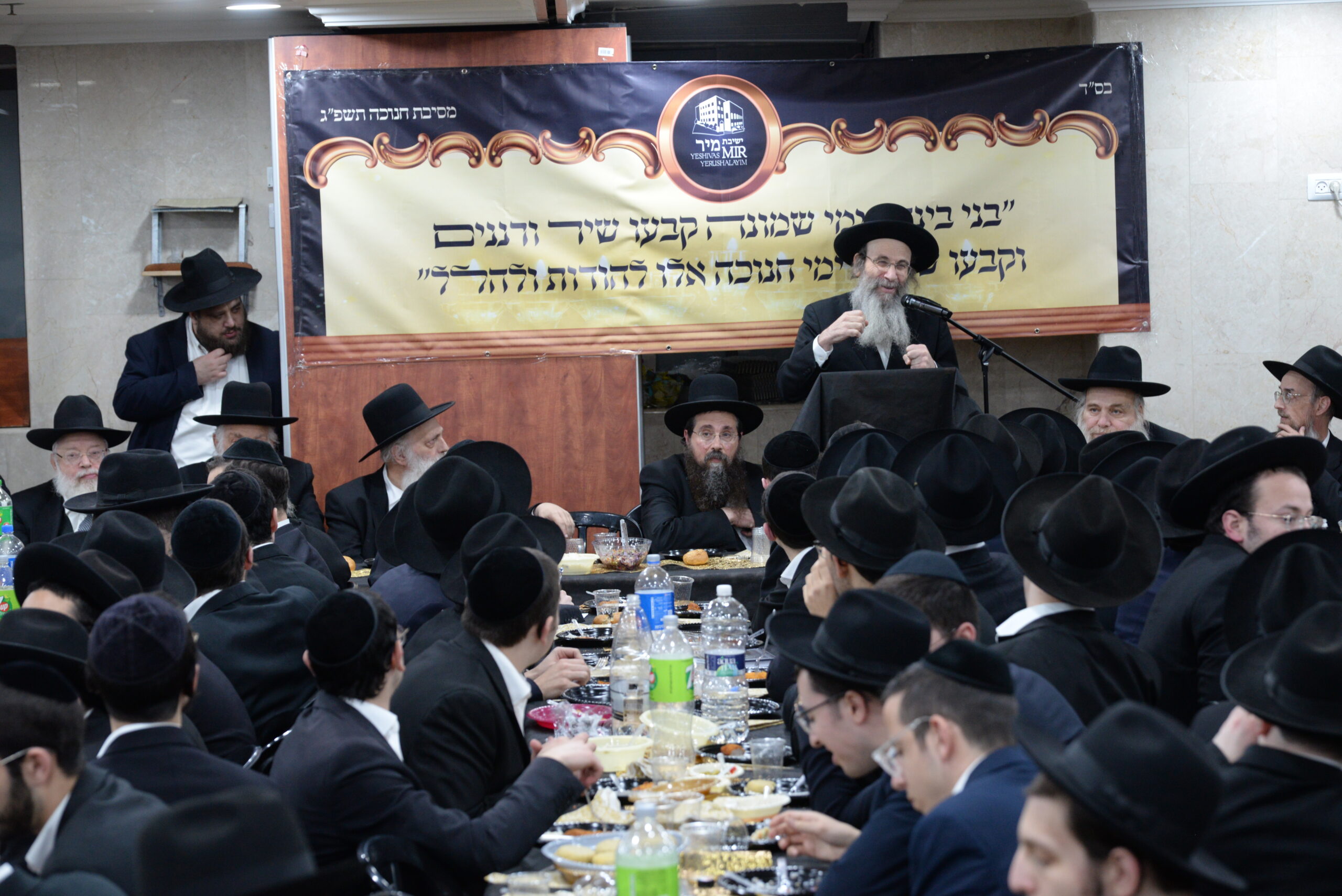 The recent Yom Tov of Chanukah was brimming with joyous, Torah’dig celebrations the true Mir tradition. The first two nights saw three different mesibos, one for the chassidishe bochurim, another for the Israelis, and the third for the English-speaking talmidim. Each of the mesibos were graced with the presence of the Roshei Yeshiva, Mashgiach and Rebbeim; the Rosh Yeshiva and Mashgiach spoke at all the mesibos, as well as some of the Maggidei Shiur.