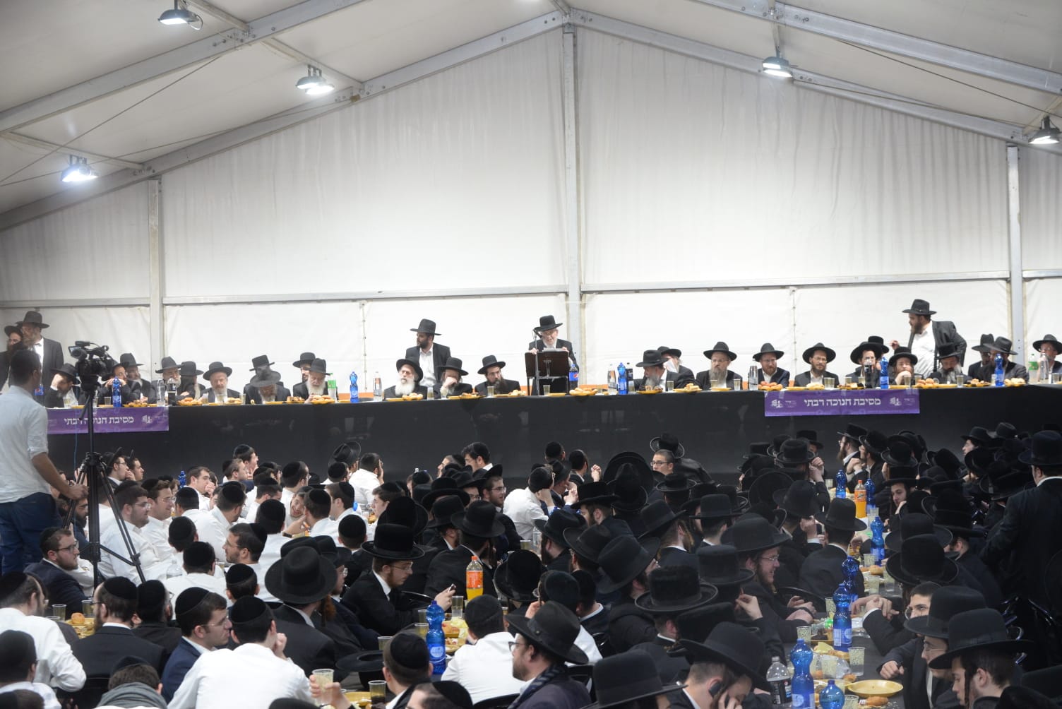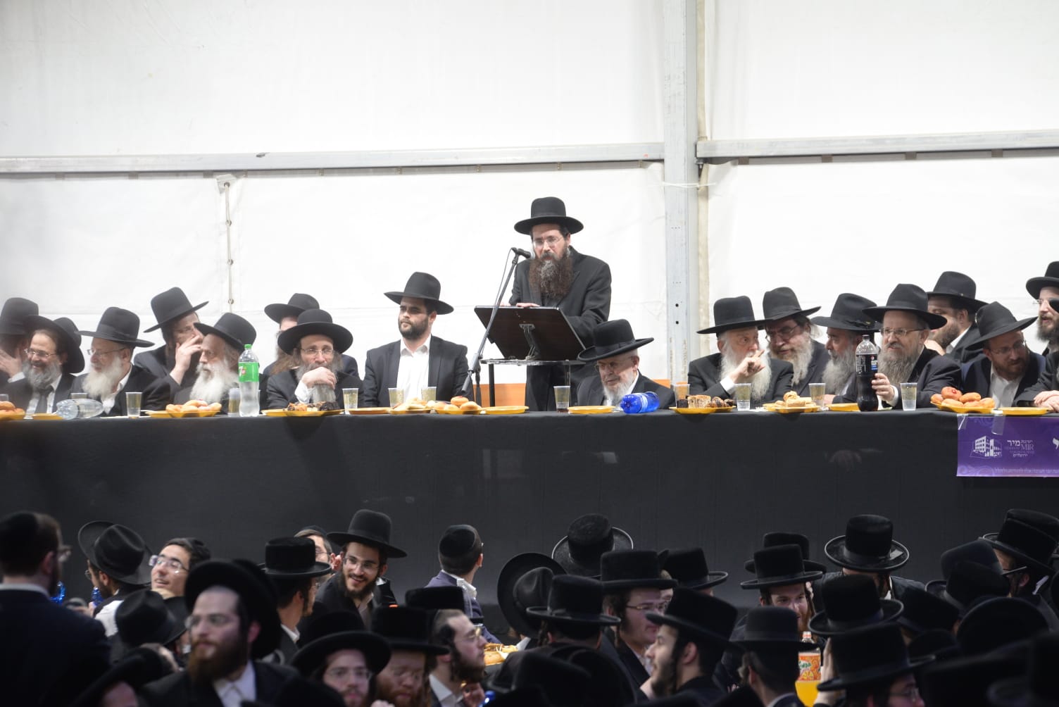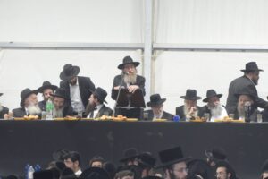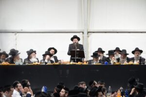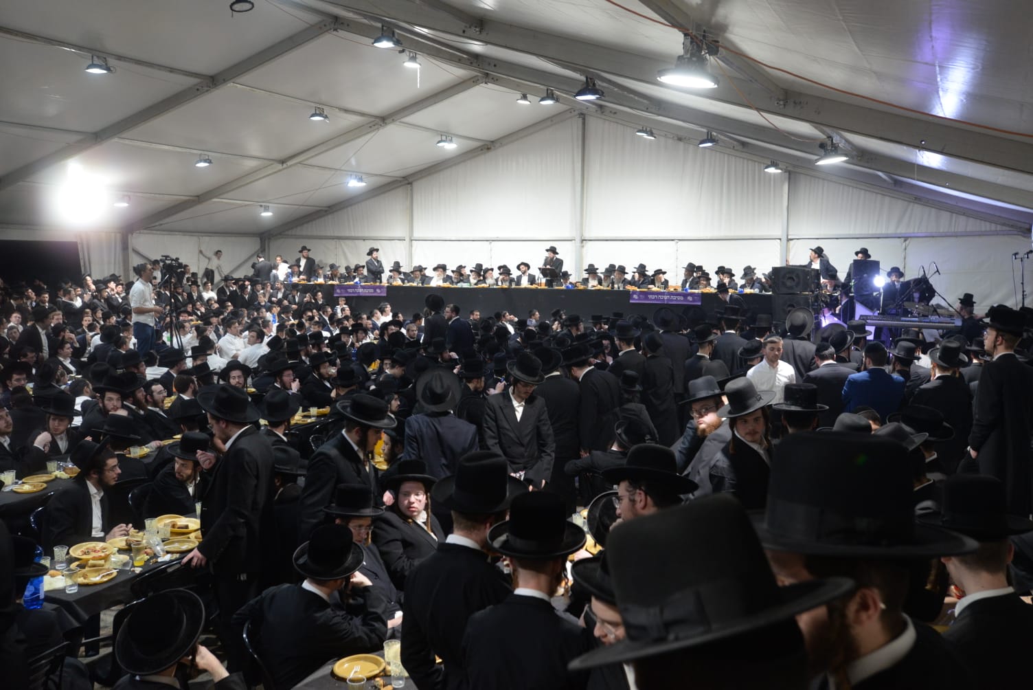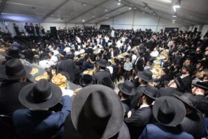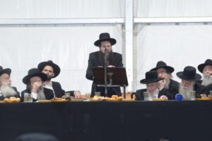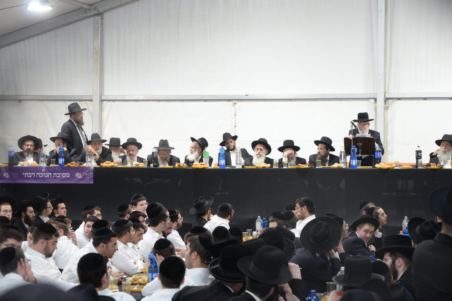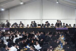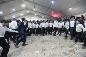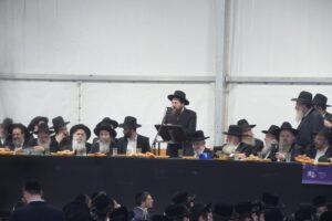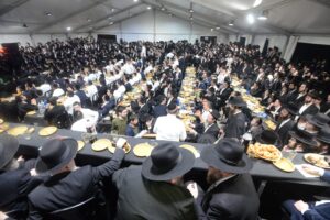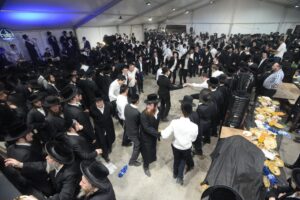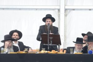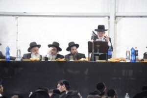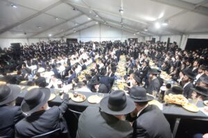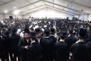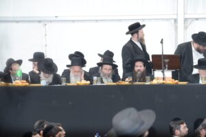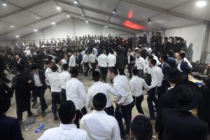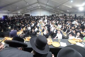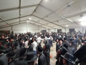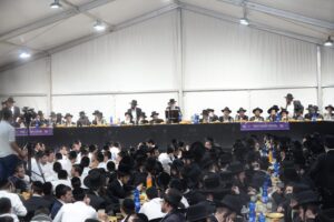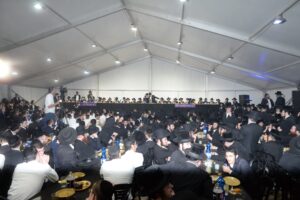 The mesiba was held on Monday night, the second ner of Chanukah, in the enormous tent that was constructed for the talmidim to have their meals during Yarchei Kallah – when the two regular dining rooms were hosting the visiting participants. The tent was beautifully retrofitted and arranged in honor of this memorable event.