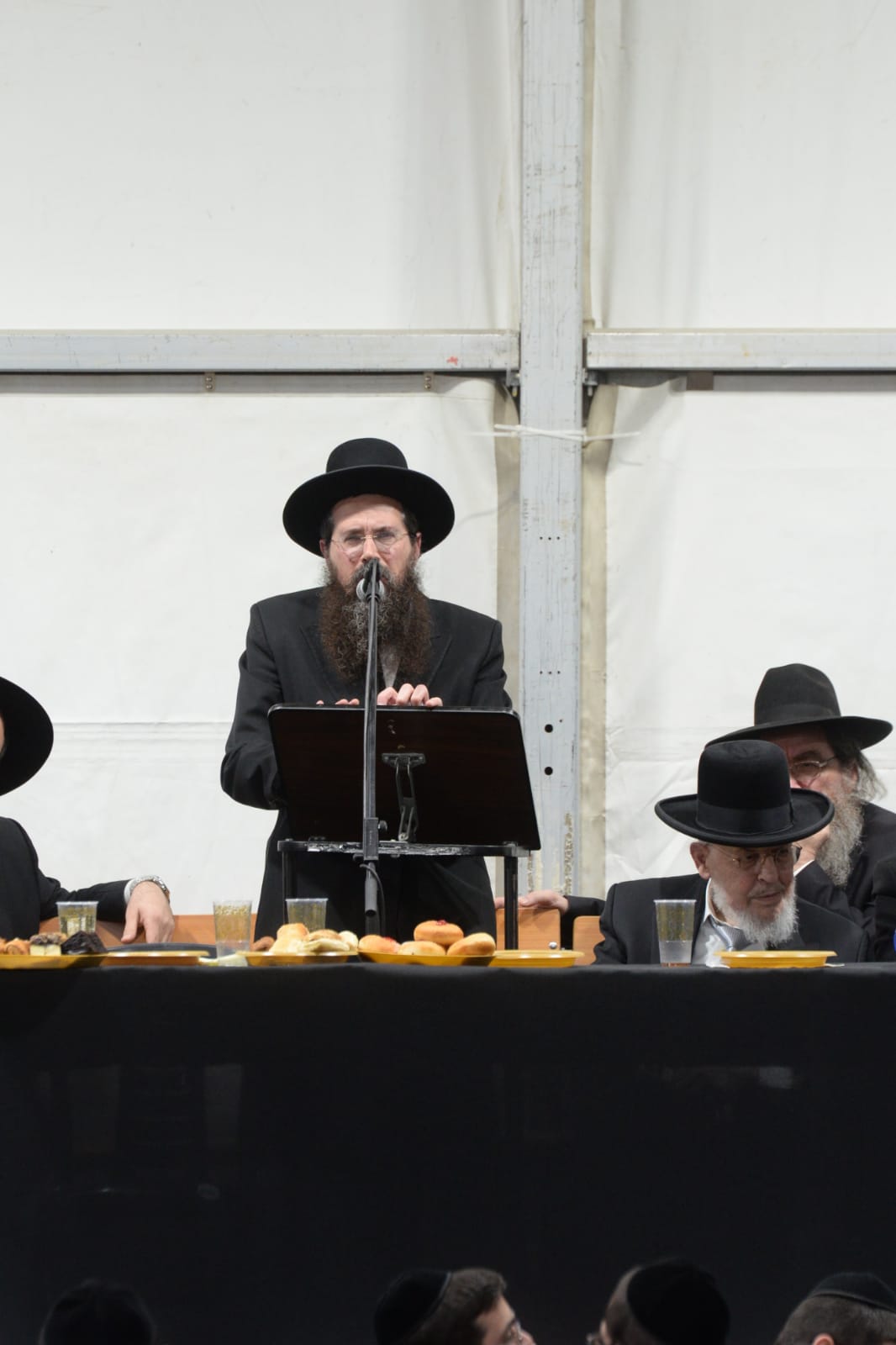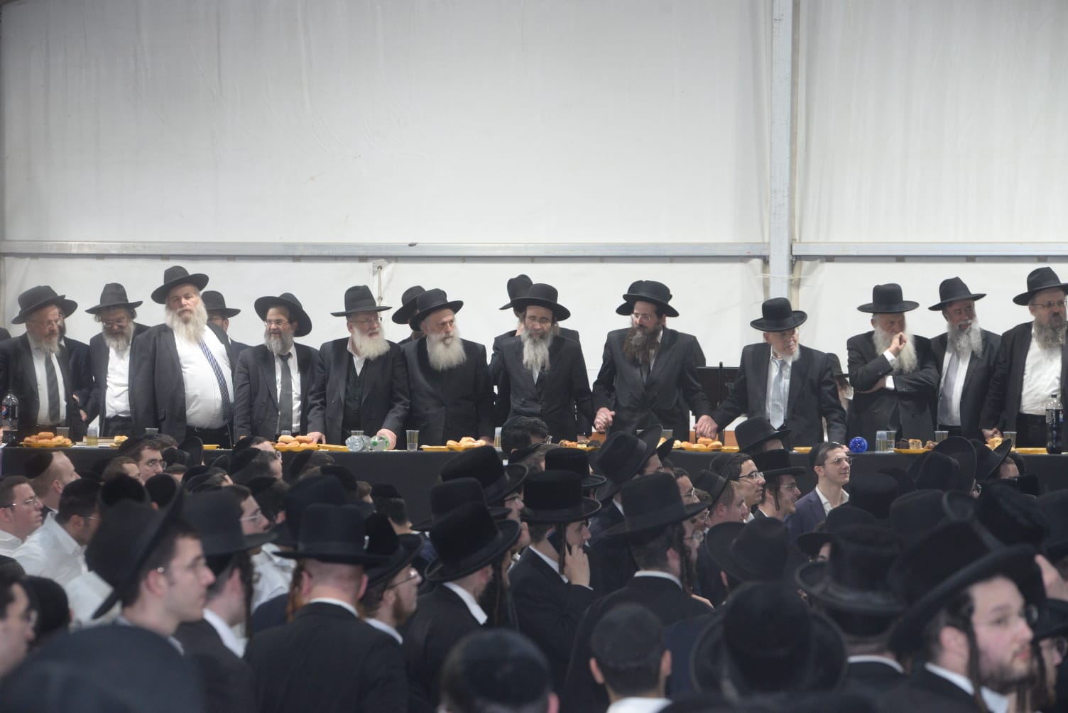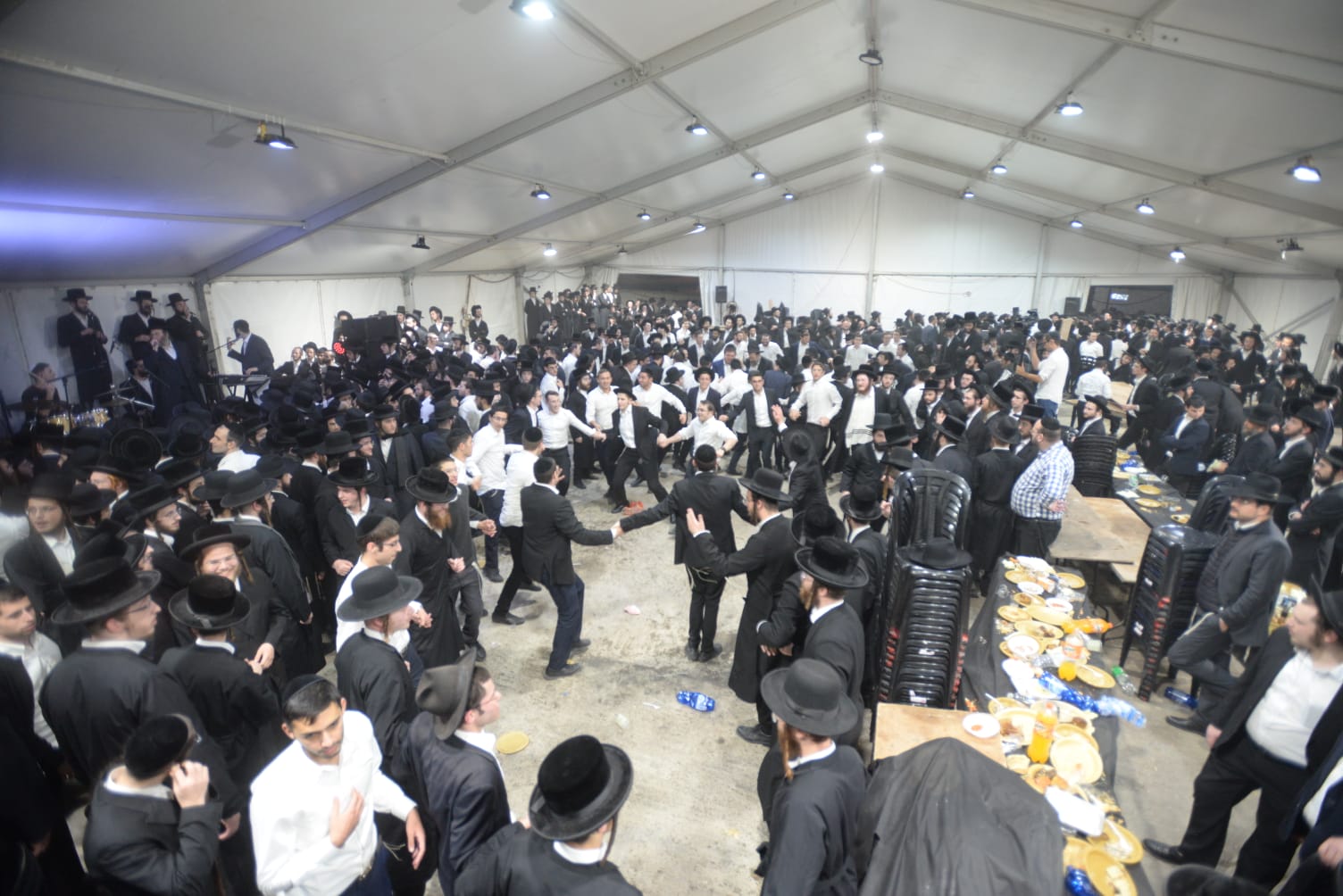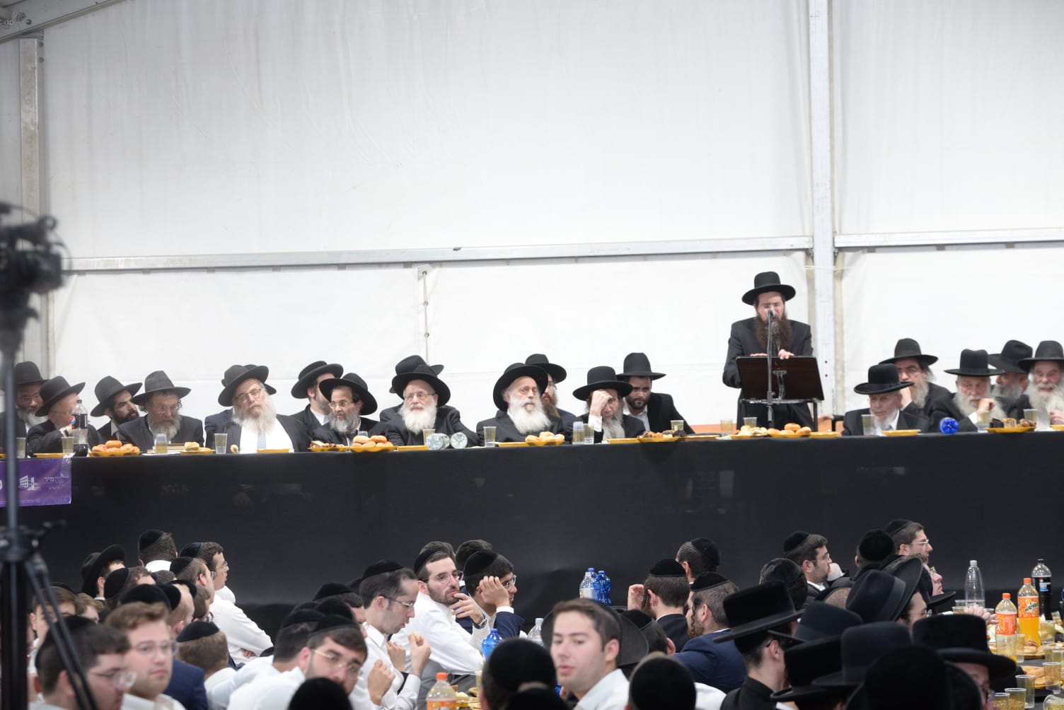 The mesiba was held on Monday night, the second ner of Chanukah, in the enormous tent that was constructed for the talmidim to have their meals during Yarchei Kallah – when the two regular dining rooms were hosting the visiting participants. The tent was beautifully retrofitted and arranged in honor of this memorable event.