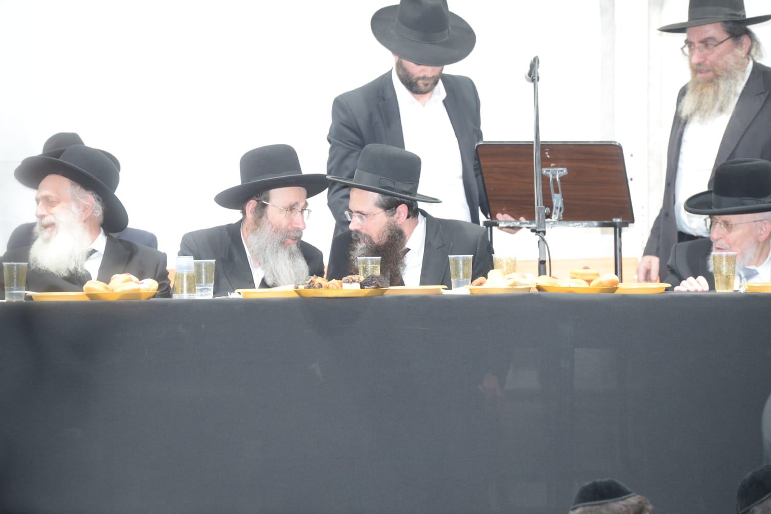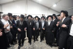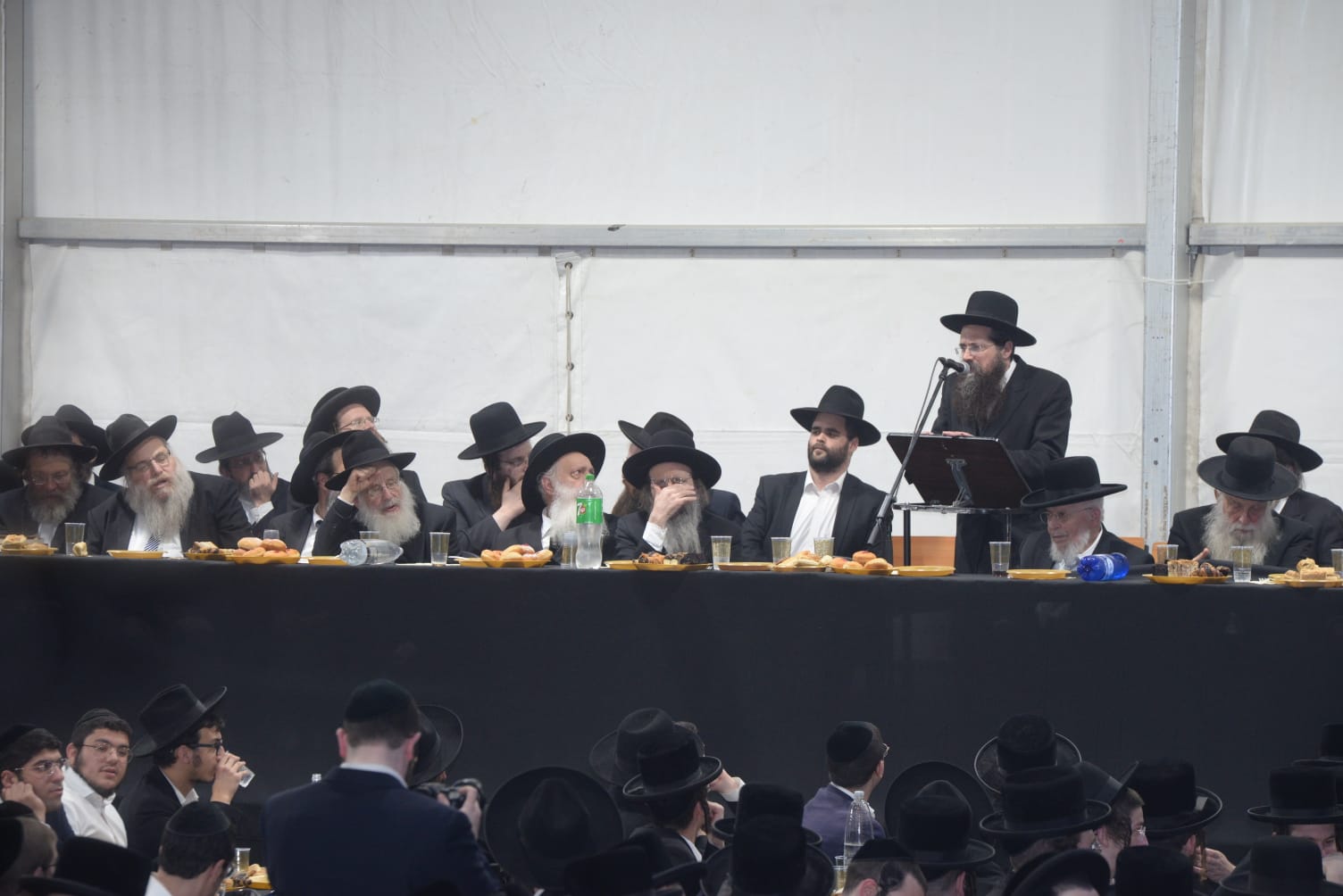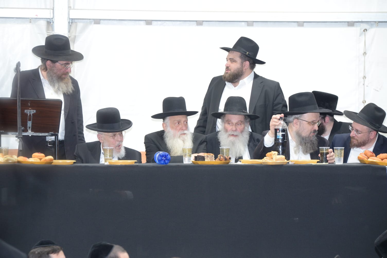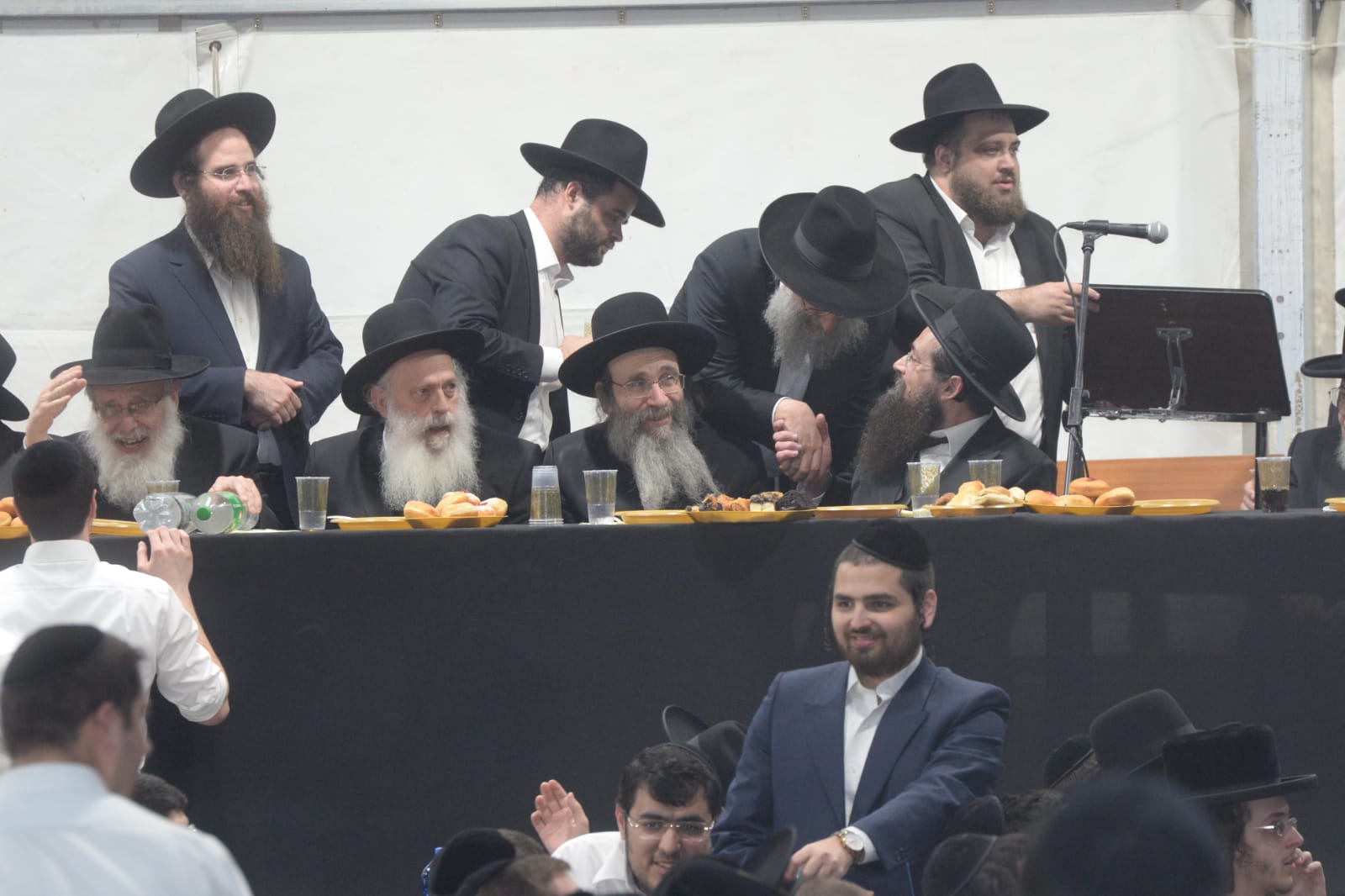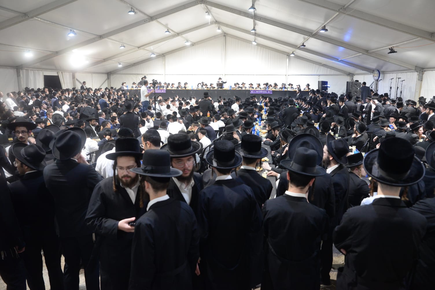 The mesiba was held on Monday night, the second ner of Chanukah, in the enormous tent that was constructed for the talmidim to have their meals during Yarchei Kallah – when the two regular dining rooms were hosting the visiting participants. The tent was beautifully retrofitted and arranged in honor of this memorable event.