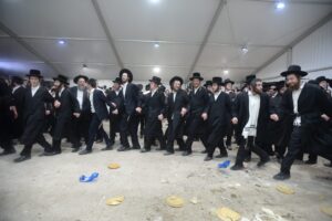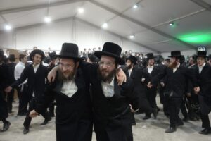 This year’s Chanuka Mesiba in Yeshiva was a true exhibit of sheves achim gam yachad. A huge crowd of the entire spectrum of talmidei haYeshiva – Israelis, chassidim, Americans sang and danced together. They heard inspiring drashos from Hagaon Harav Yitzchok Ezrachi Shlita and the Rosh Hayeshiva Shlita, along with zemiros by the popular singer Dudi Kalish, accompanied by a full orchestra. The Rosh Hayeshiva led a special mivchan – challenging the participants with high-level yedios klaliyos questions from kol haTorah kulah. Spirited applause broke out each time a bochur successfully responded correctly! A talmid, Pinchas Menachem Ingber, presented the Rosh Hayeshiva with a special sefer containing shticklach Torah that talmidim were mechadesh during the time when the Covid restrictions were in force.