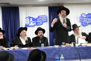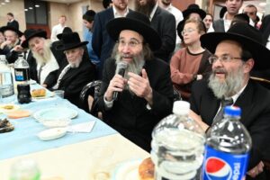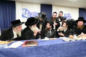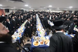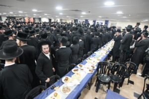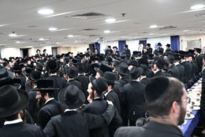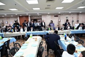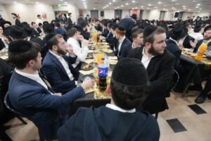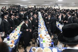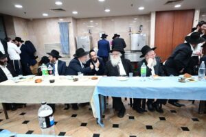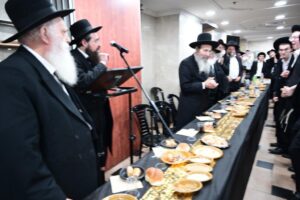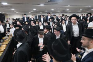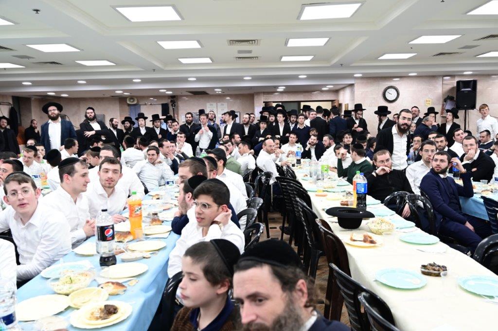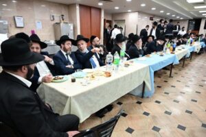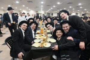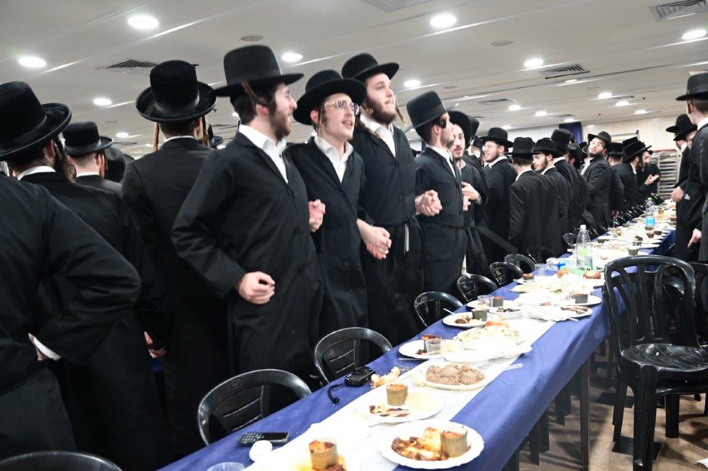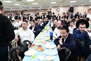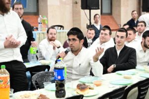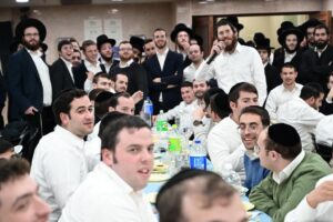 While Chanukah this year in Yeshiva was somewhat toned down due to the situation in Eretz Yisroel, it was nevertheless filled with Torahdig simcha. On the first and third nights – Thursday and Sunday – three mesibos were held: for the Israeli, Chassidish, and English-speaking talmidim. The mesibos were graced by the presence of the Roshei Yeshiva, Mashgiach and Rabbeim. Both the Rosh Hayeshiva and the Mashgiach spoke at all the mesibos, as well as some Maggidei Shiur. The Rosh Hayeshiva’s theme was the zchus of being safe while in the Koslei Hayeshiva, and how we must be careful not to allow external influences to penetrate and affect us. Each of the mesibos featured singing and dancing enhanced by musical accompaniment and a choir, which was followed by a special kumzitz with the Rosh Hayeshiva to maintain the mood of the situation and keep everything in the proper perspective. The elevated ruchniyus inspiration was complemented by a delicious fleishig menu.