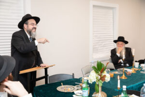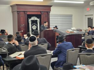 On Shabbos morning, Rav Moshe Aaron delivered divrei chizuk before Krias Hatorah at Kollel Yad Chaim Mordechai; for Mussaf and Kiddush, he joined Bais Avrohom (Rav Nissim Abrin’s shul). In the afternoon, he delivered a halacha shiur on the sugya of Ner Ish U’beiso at Zichron Chaim, where he stayed for Mincha and Shalosh Seudos.