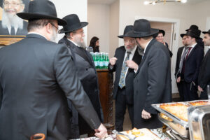 Rav Friedman addressed a crowd of about 250 older elementary and high school students at the Hebrew Academy of Cleveland on Friday morning. He then delivered shiurim at Kollel Ateres Nachum Zev and at theTorah Life/Agudah Building. On Friday night, he spoke following Mincha and Kabolas Shabbos at Zichron Asher Zelig. Mr. and Mrs. Dovid Malcmacher arranged a beautiful Oneg Shabbos in their home in University Heights, usually hosted by their parents, Dr. and Mrs. Louis Malcmacher, who were out of town. An impressive crowd of over one hundred people from the community participated.