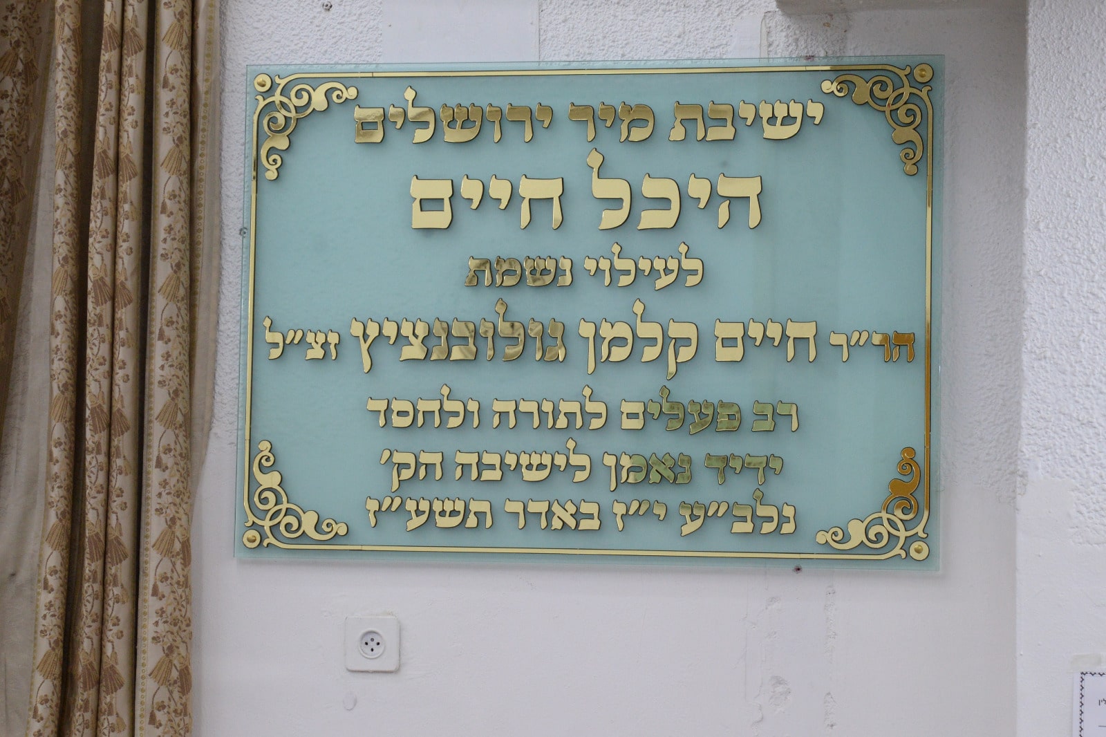 The Yeshiva recently celebrated several new dedications and improvements that are greatly enhancing the talmidim’s surroundings. In the Bais Menachem building bearing the name of Menachem Kohn, there was a new dedication in memory of his son Yossi Kohn z’’l, who was tragically niftar in Meron on Lag Baomer, sponsored by his extended family. The name of Mr. Shlomo Scharf z’’l was added to the Scharf Family Bais Medrash in Bais Yeshaya in his memory. The Mezuza in the Scharf Bais Medrash has also been dedicated in his name.