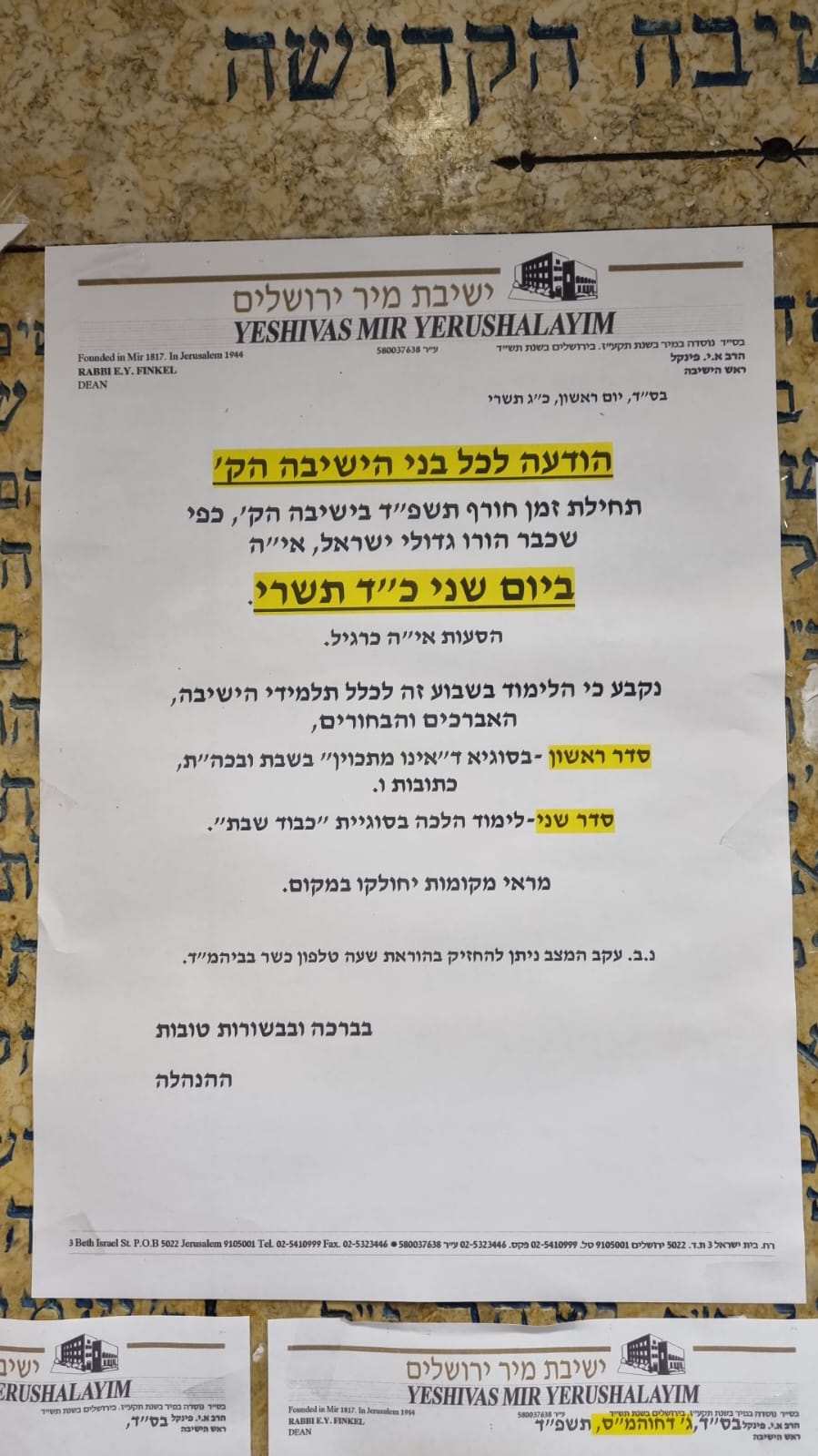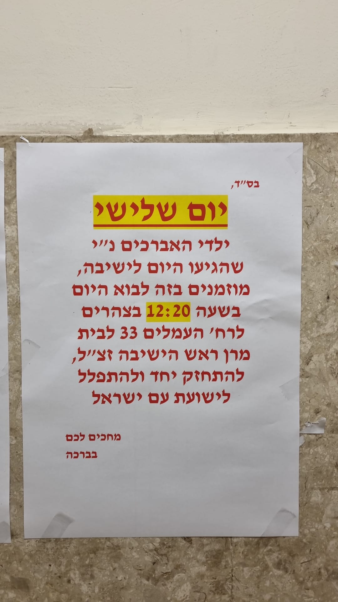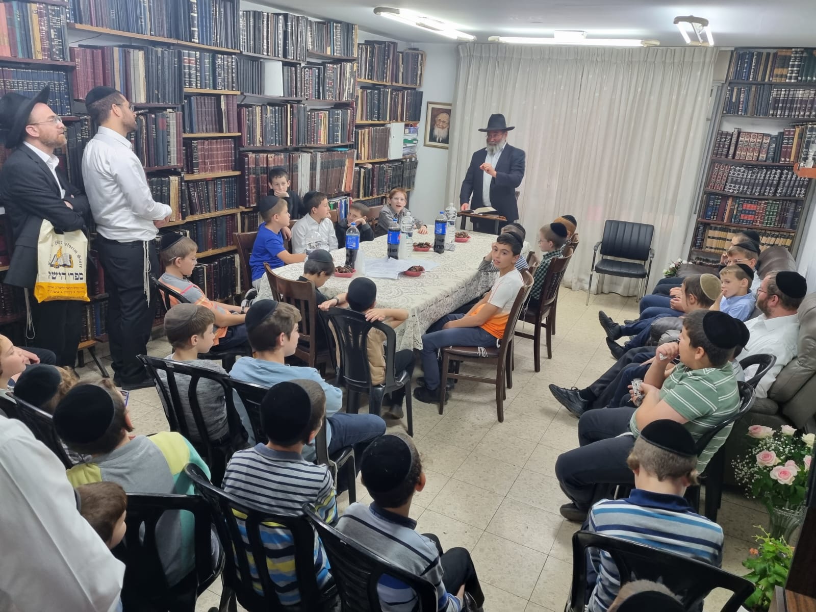 Since the chedorim for the younger boys were closed due to safety concerns, avreichim were encouraged to bring along their sons to Yeshiva; a special learning program was arranged just for them, at the home of the Rosh Hayeshiva zt”l.