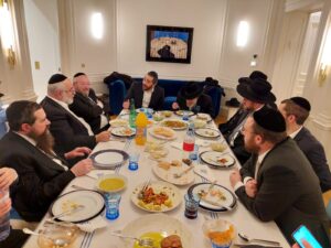 Upon their arrival from Eretz Yisroel on Thursday night, the esteemed visitors were welcomed at a special Kabbalas Panim hosted by Reb Pinchos Cohen. On Friday morning, the Rosh Yeshiva davened at the well-known Rottenberg kehilla; later, Rav Yitzchok Ezrachi addressed the talmidim of the cheder with divrei chizuk.