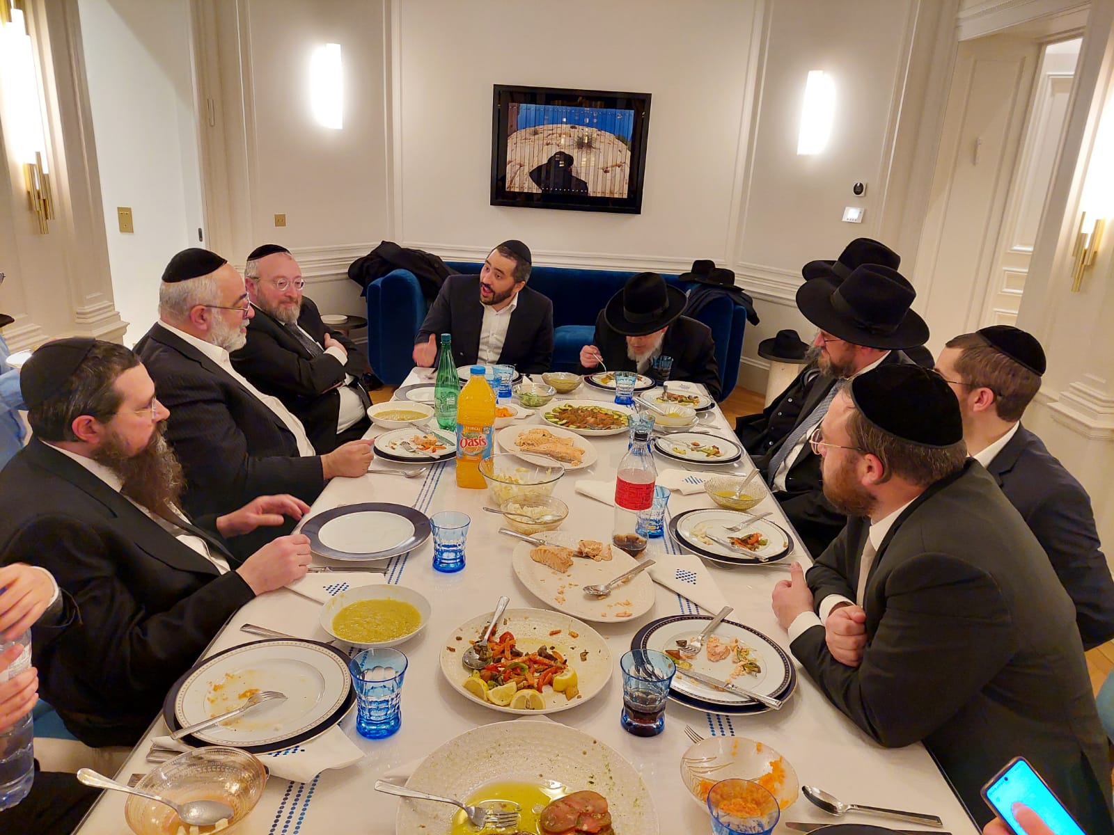 The Friday night Oneg continued until 2 AM, with zemiros, sippurei tzaddikim and Q&A with Rav Ezrachi. The Shabbos morning davening took place kevasikin.