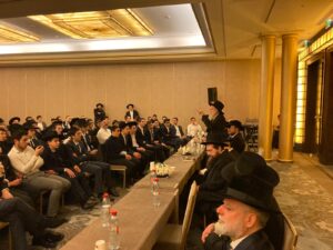 On Shabbos Parshas Vayakhel, A special shabbos of chizuk in France drew a huge crowd of four hundred inspired guests to a hotel in an elevated and enjoyable atmosphere. They were joined by the Rosh Yeshiva, Rav Yitzchok Ezrachi Shlita, Rebbetzin Leah Finkel, Rav Shaya Finkel, and several of the Yeshiva’s roshei chabura of the French talmidim. There was beautiful singing and drashos from the visiting rabbonim – including a special guest, Rav Shimon Galai – at the seudos and throughout the day.