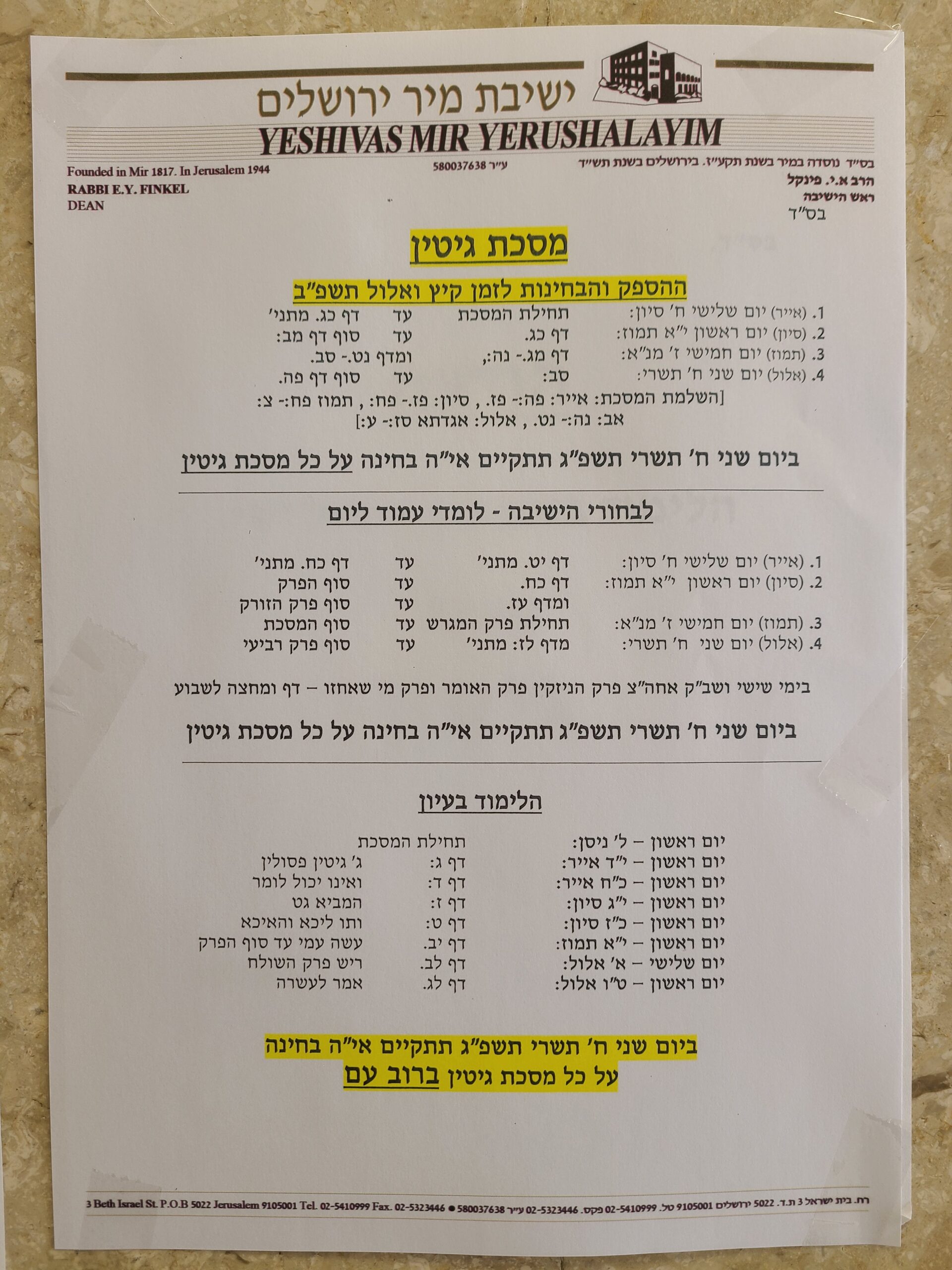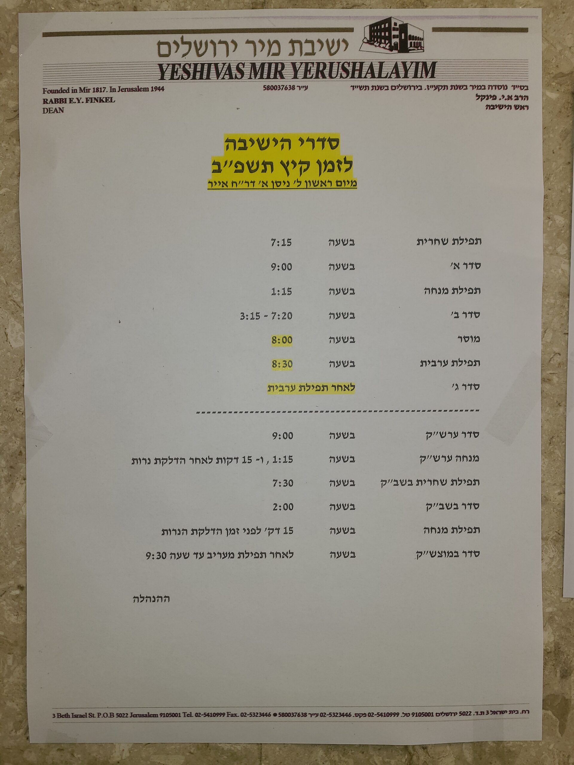 The new zman began with hundreds of new talmidim joining the Yeshiva. The Batei Medrash are packed to capacity; finding a seat is a challenge! To accommodate the growing need for additional space, some of the shiur rooms have been converted into temporary Batei Medrash. Each day, the resounding Kol Torah is loud and inspiring.