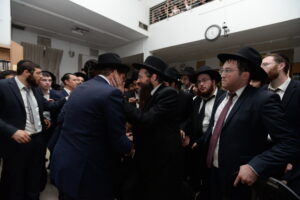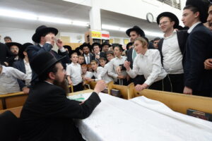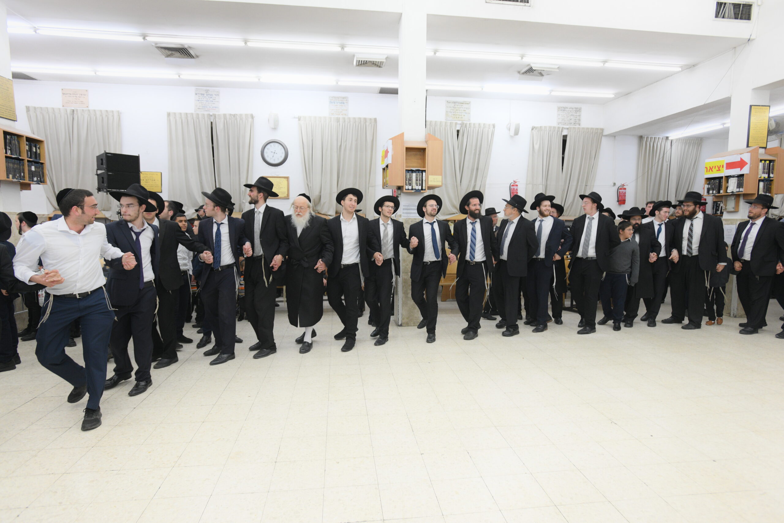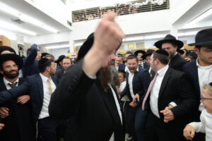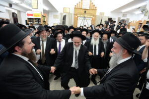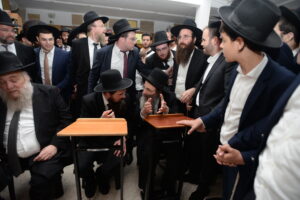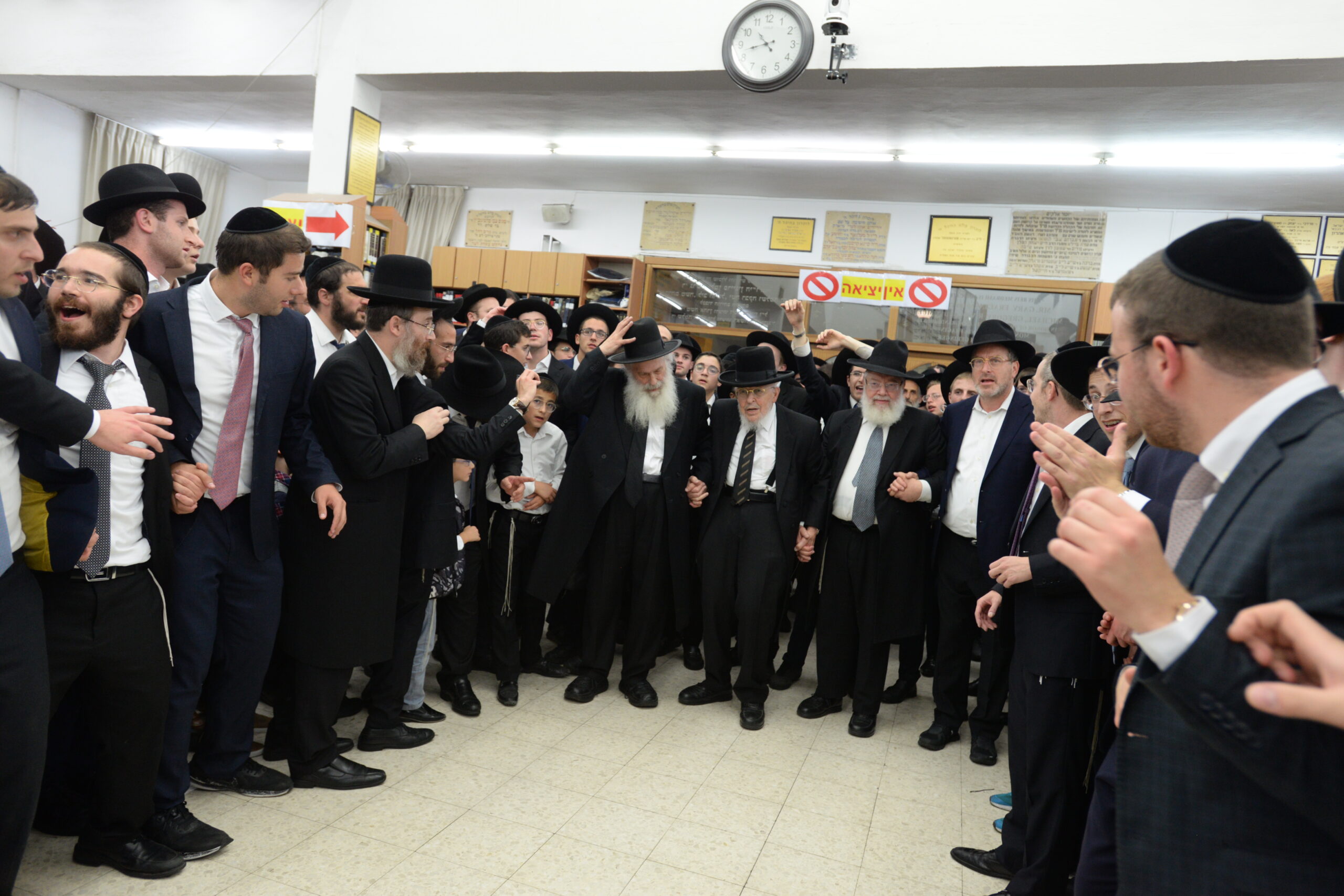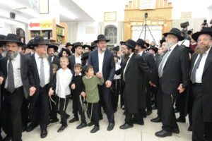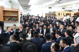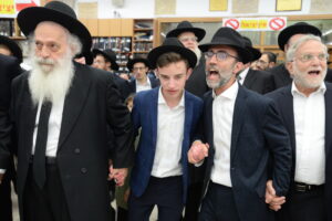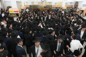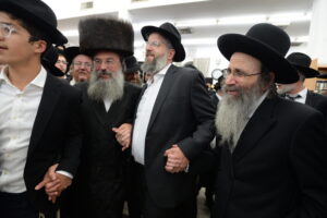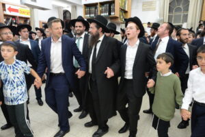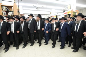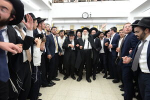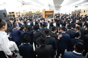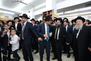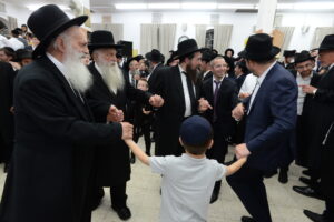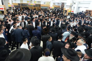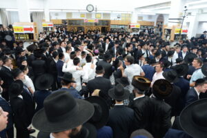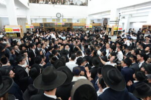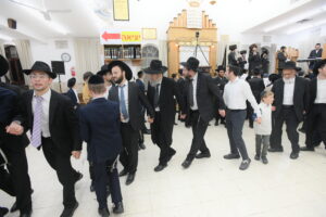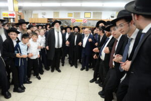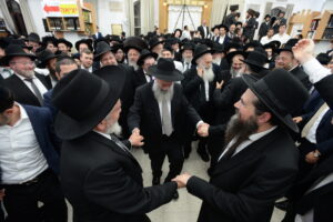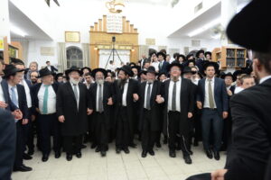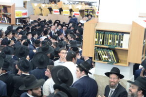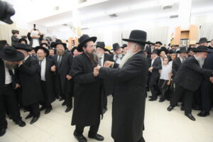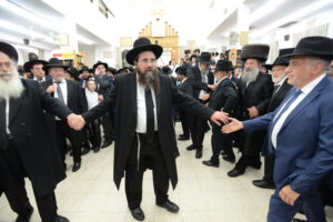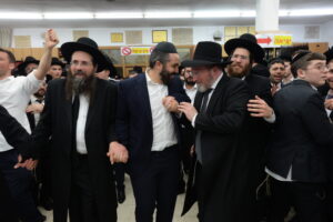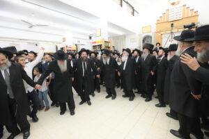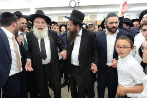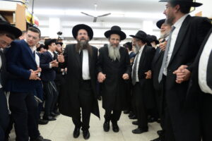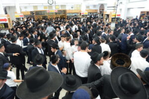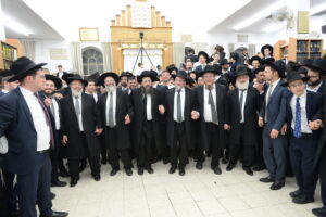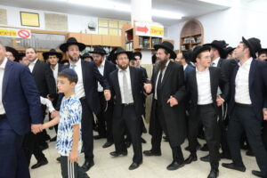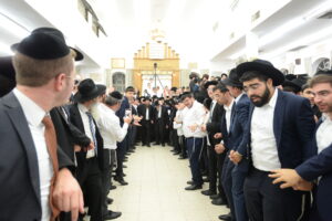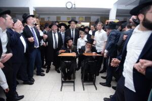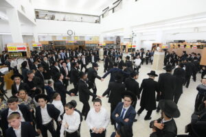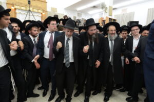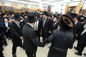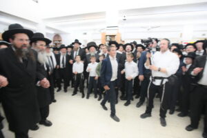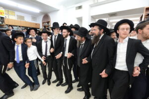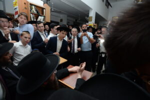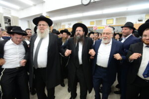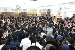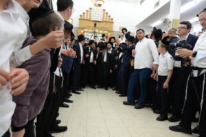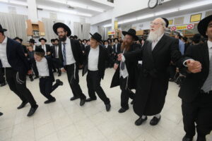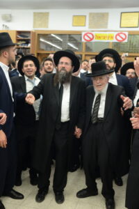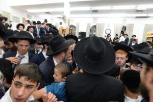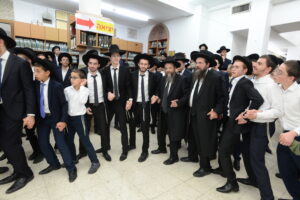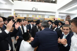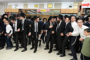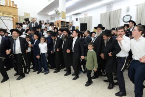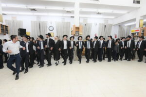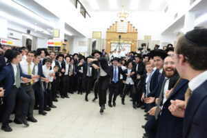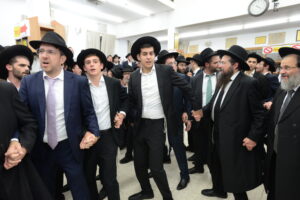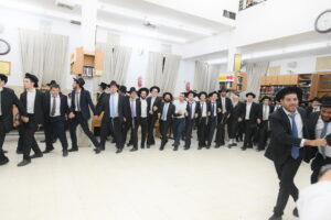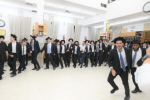 The Yeshiva’s Simchas Beis Hashoeva was held on Thursday, the second night of Chol Hamoed, beginning with music and dancing in the Mercazi Bais Medrash at 9:20. When the Roshei Yeshiva walked in about twenty minutes later, the olam broke out in tremendous excitement as they danced with their Rabbeim for several hours. Many visiting guests joined as well, taking the opportunity to wish the Roshei Yeshiva a Gut Yom Tov. All in all, there were around 9,000 people coming by throughout the night. The highlight of the event, as usual, was the kumzitz with inspiring songs of Yamim Noraim and Geulah at the end of the night, culminating in Leshana Haba’ah Bi’Yerushalayim.