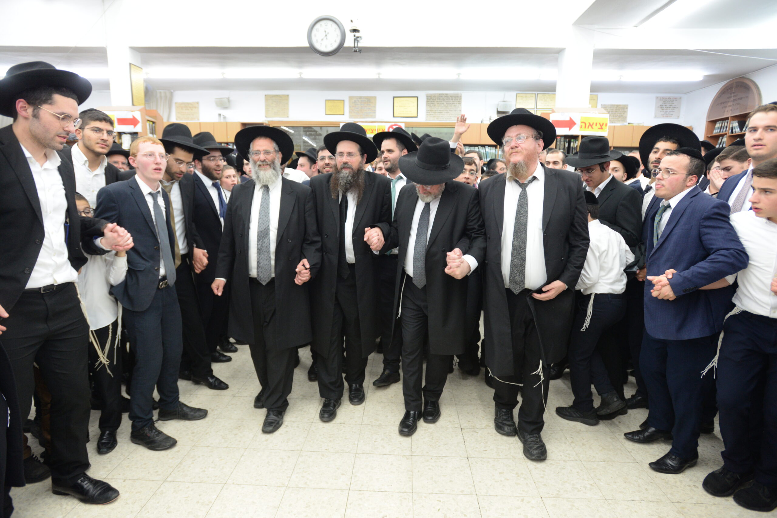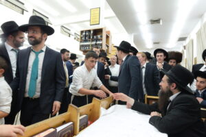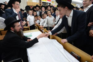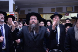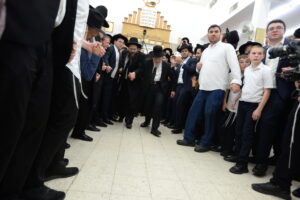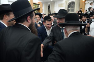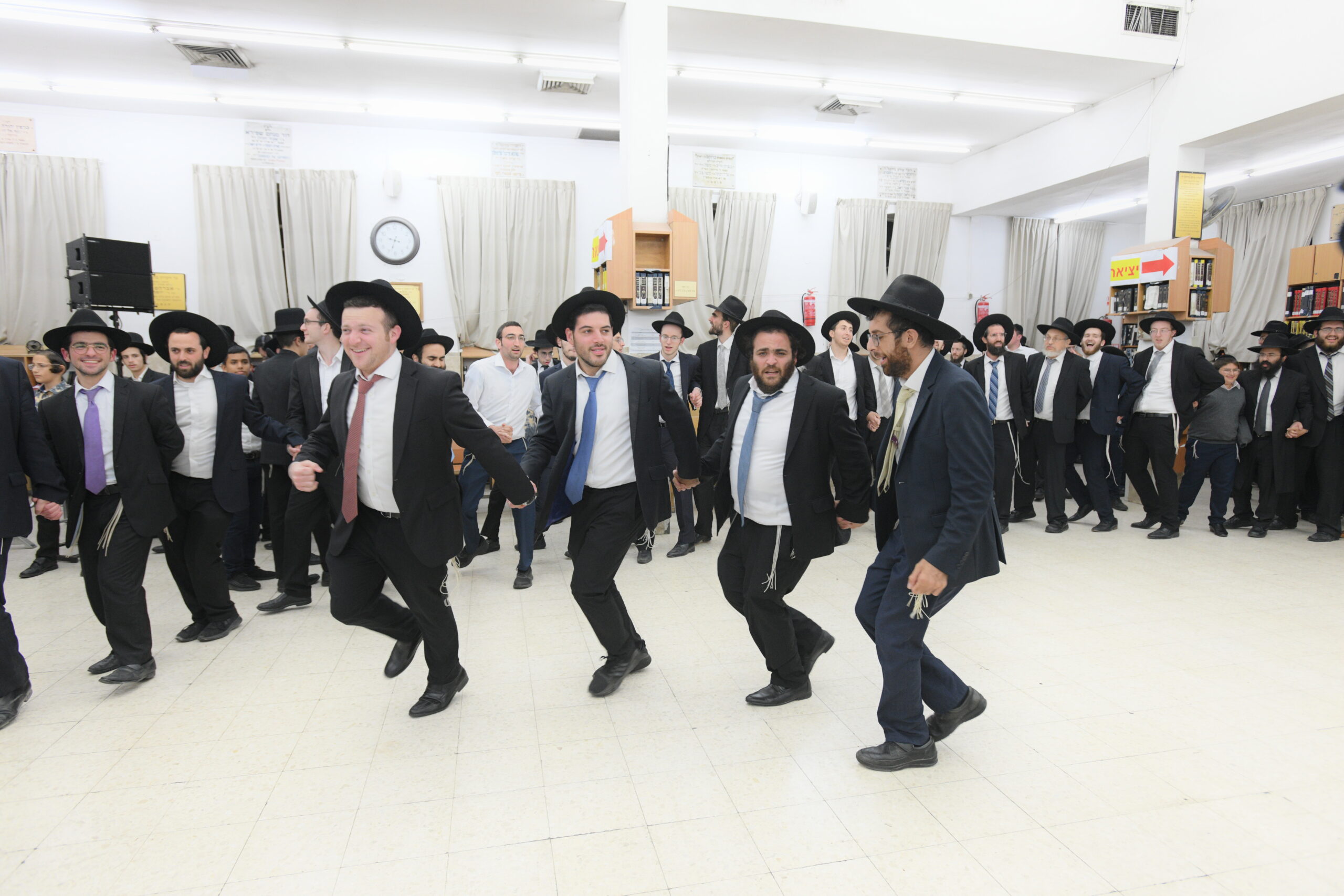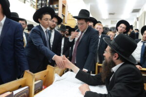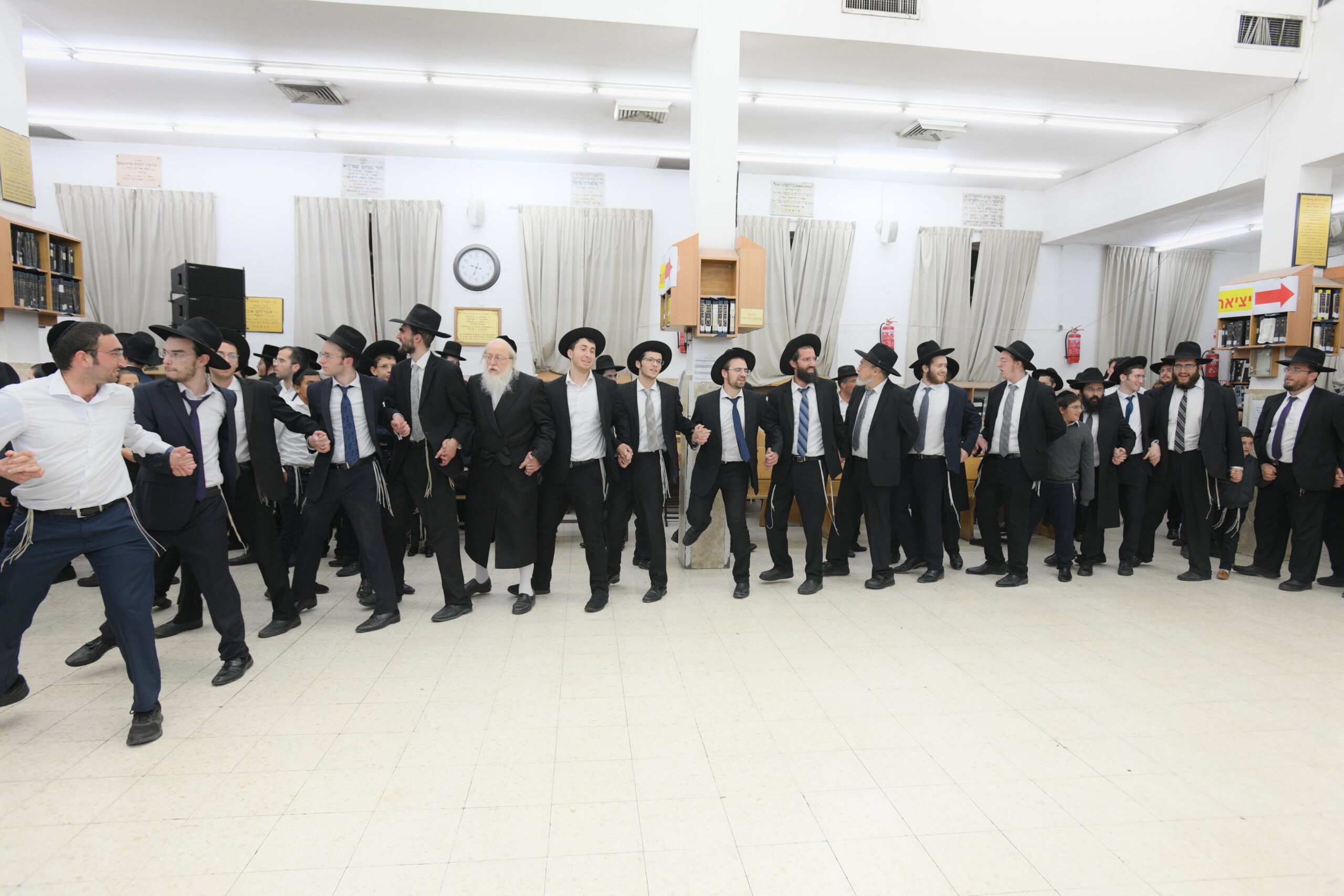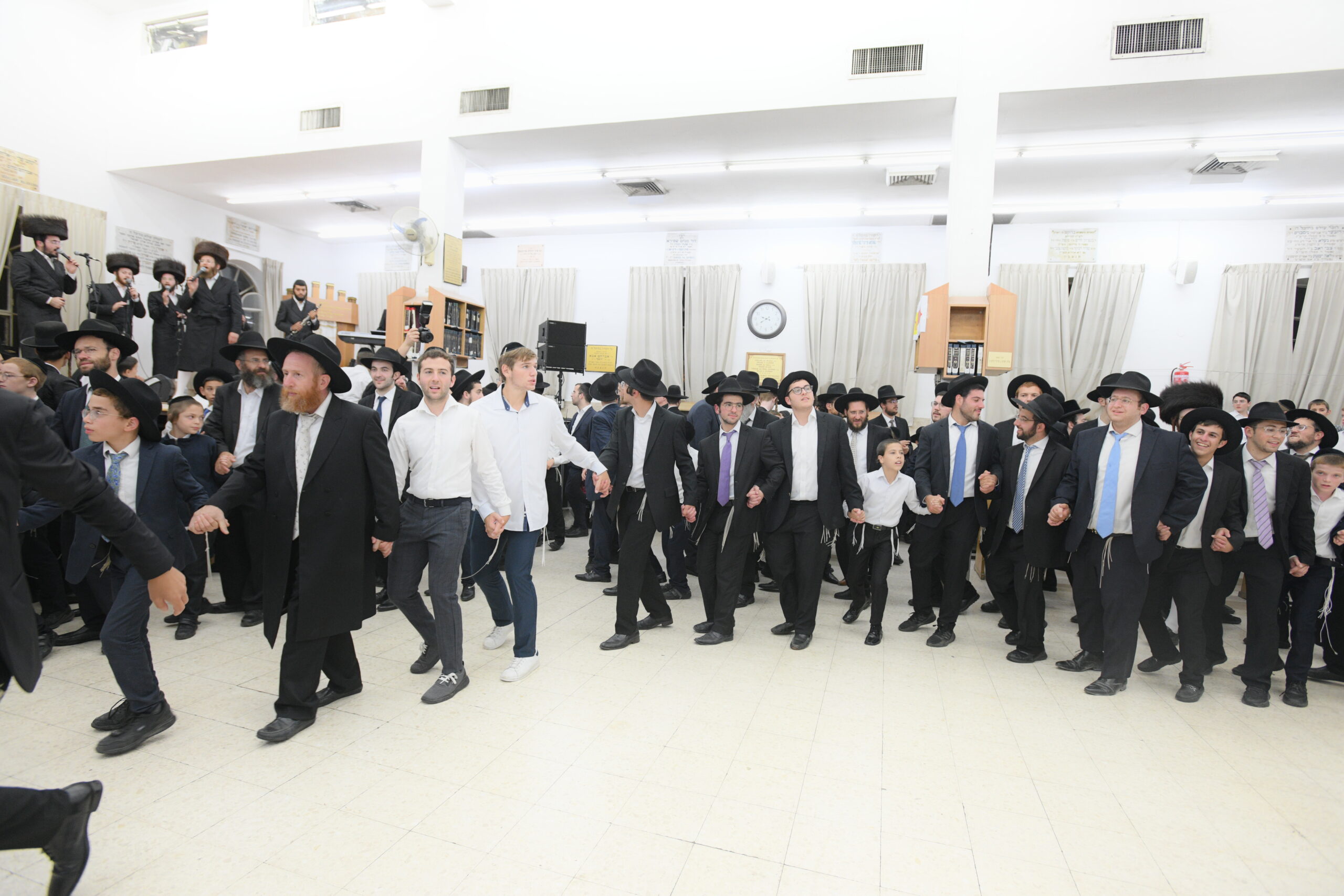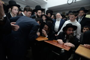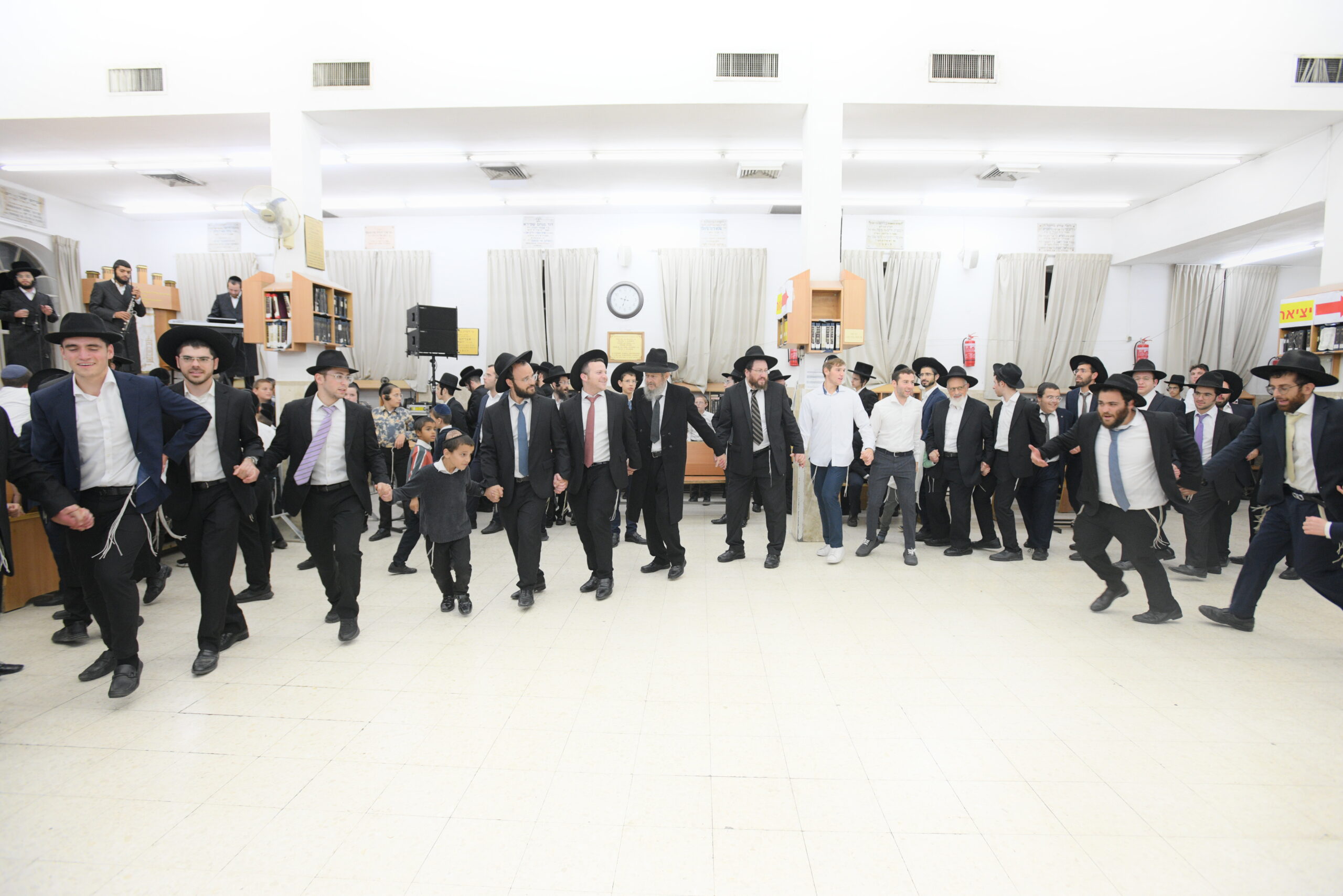 The Yeshiva’s Simchas Beis Hashoeva was held on Thursday, the second night of Chol Hamoed, beginning with music and dancing in the Mercazi Bais Medrash at 9:20. When the Roshei Yeshiva walked in about twenty minutes later, the olam broke out in tremendous excitement as they danced with their Rabbeim for several hours. Many visiting guests joined as well, taking the opportunity to wish the Roshei Yeshiva a Gut Yom Tov. All in all, there were around 9,000 people coming by throughout the night. The highlight of the event, as usual, was the kumzitz with inspiring songs of Yamim Noraim and Geulah at the end of the night, culminating in Leshana Haba’ah Bi’Yerushalayim.