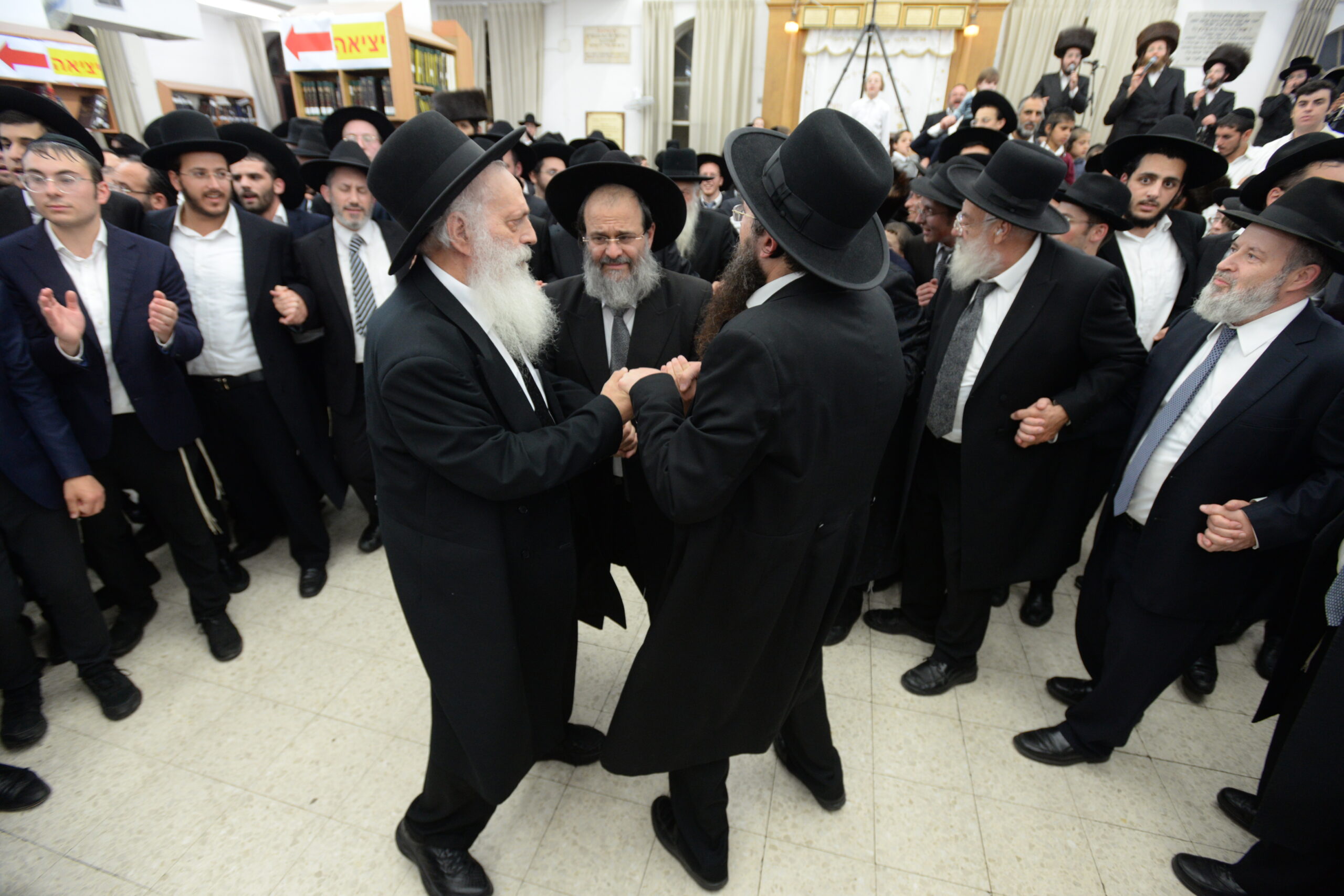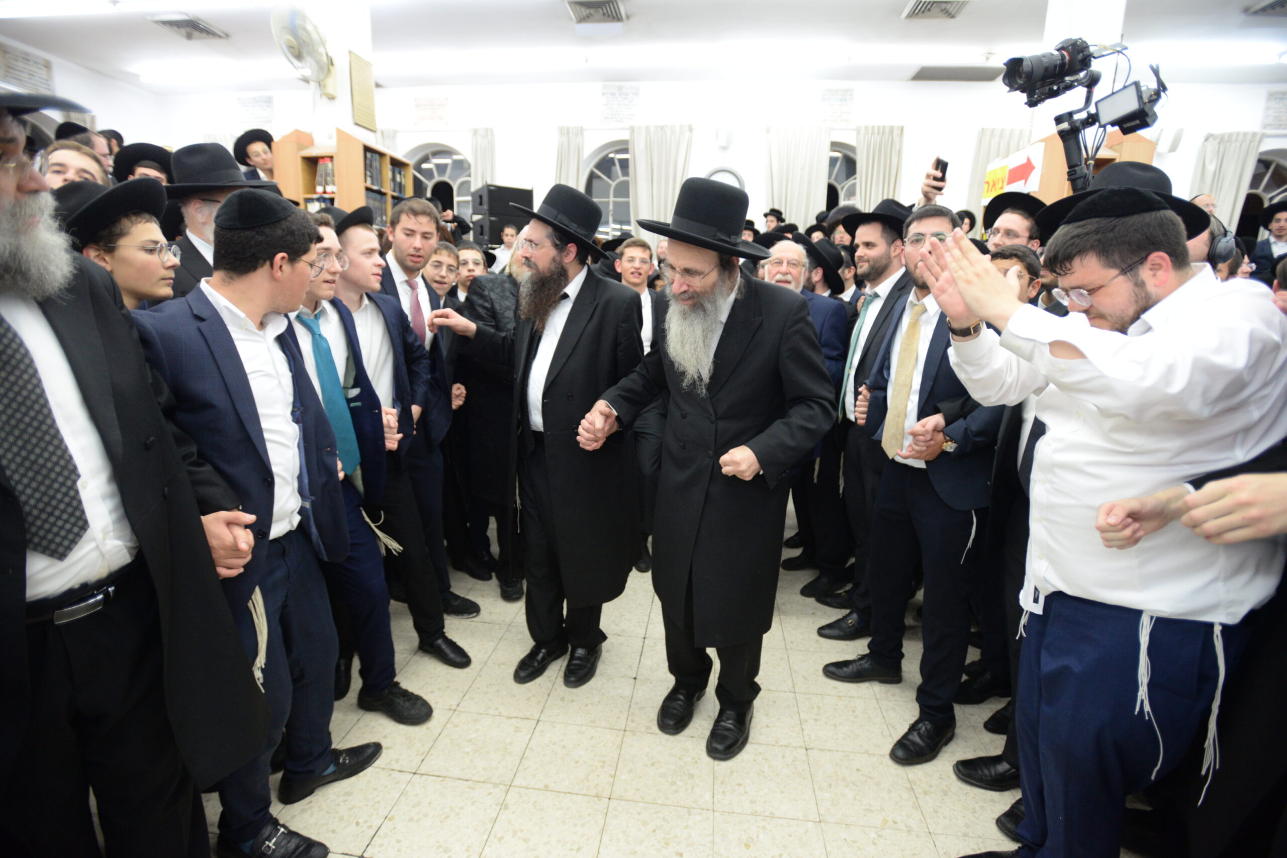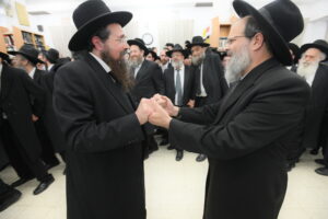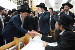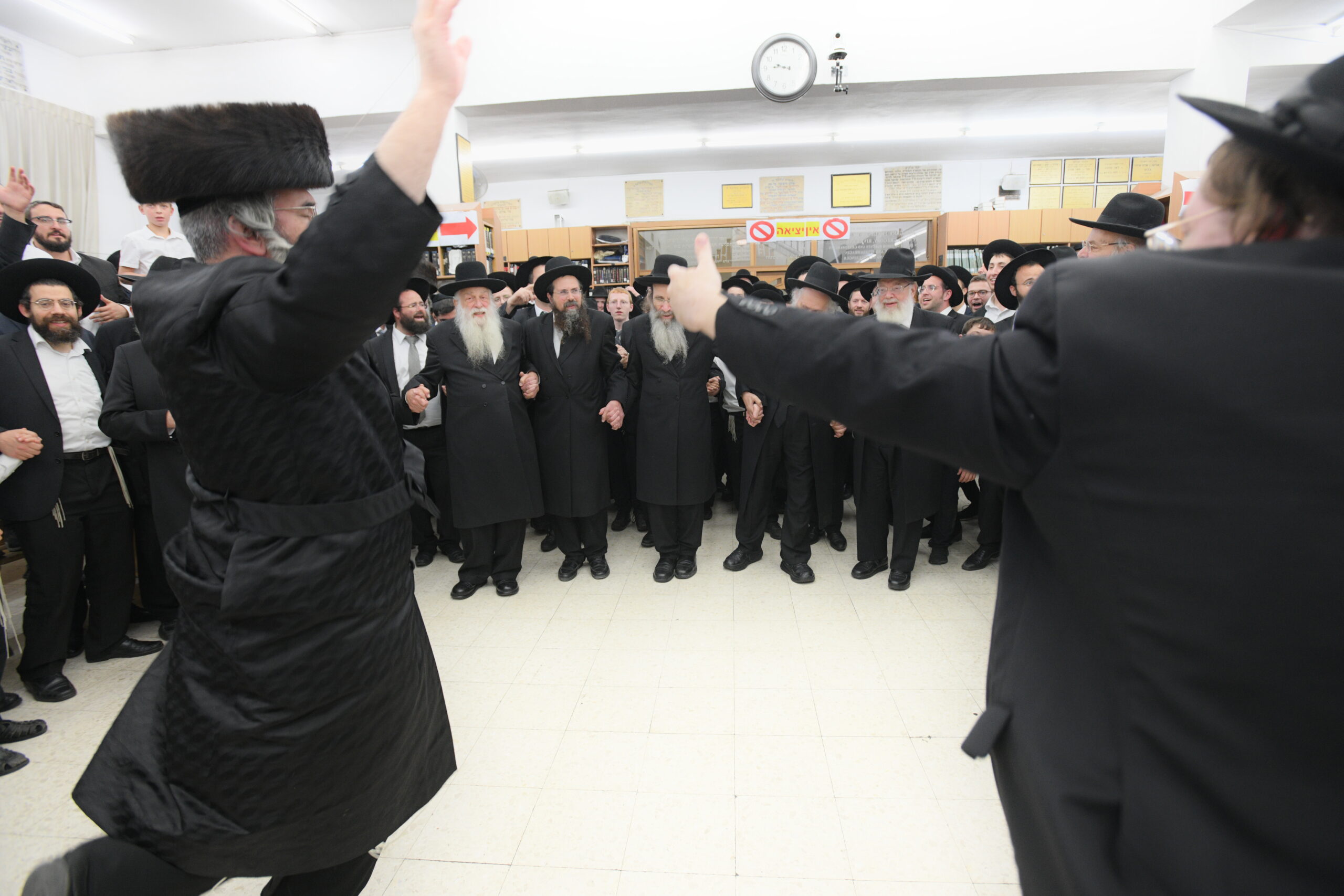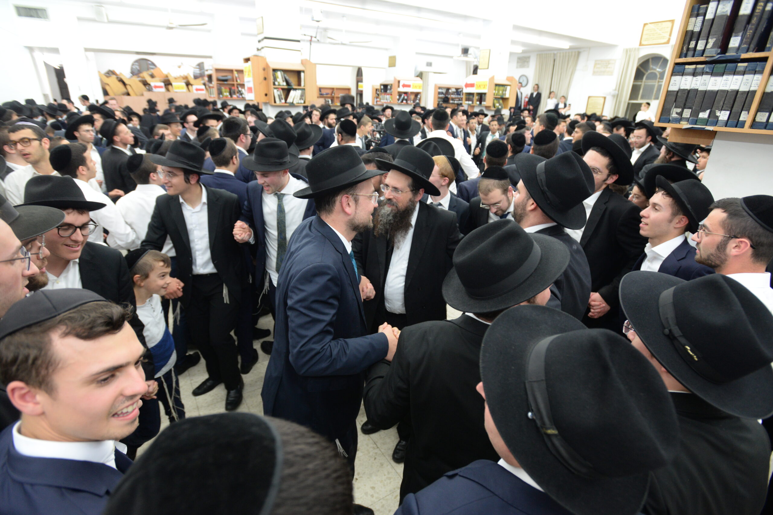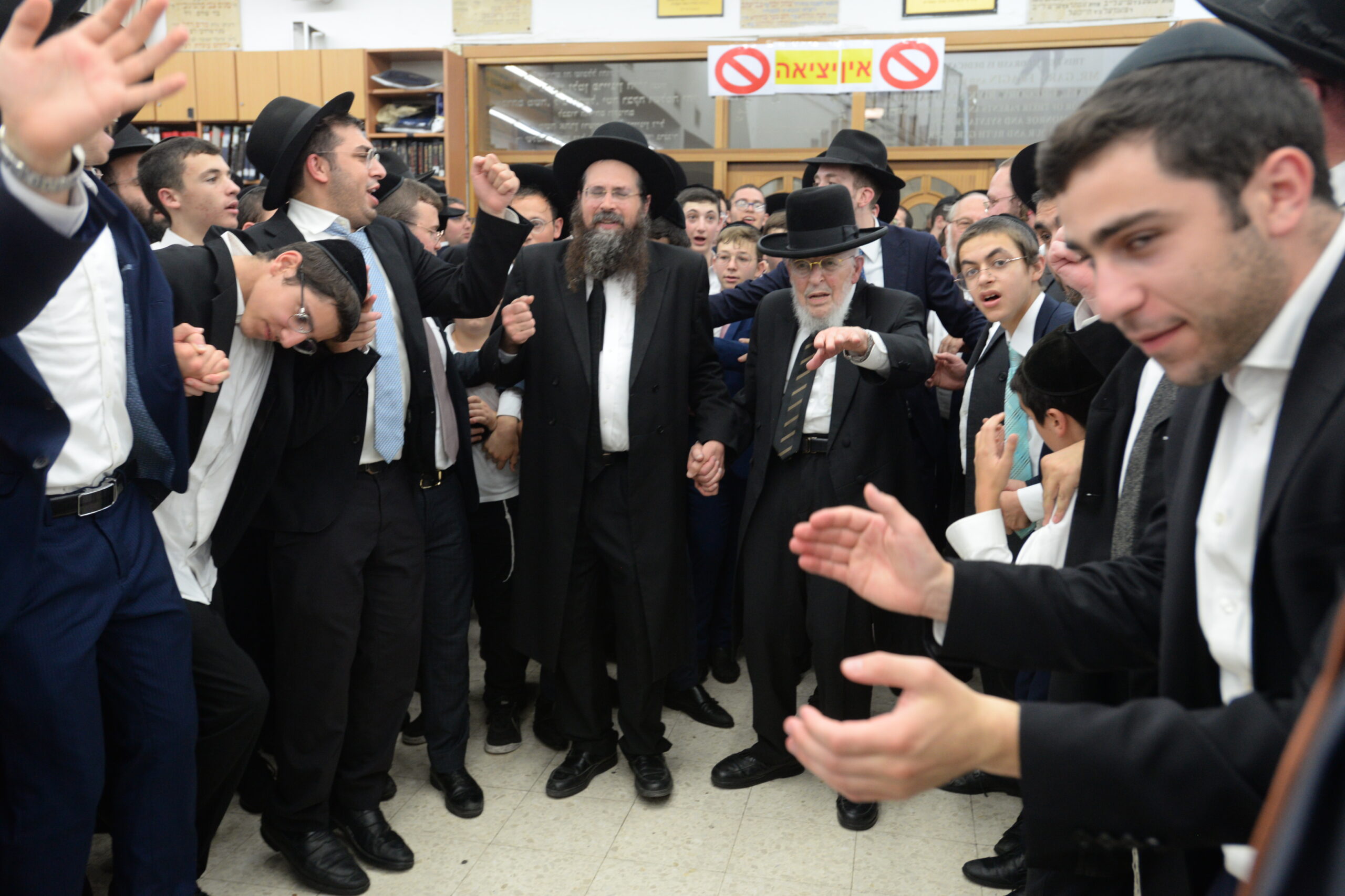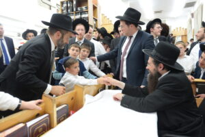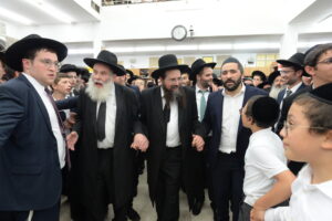 The Yeshiva’s Simchas Beis Hashoeva was held on Thursday, the second night of Chol Hamoed, beginning with music and dancing in the Mercazi Bais Medrash at 9:20. When the Roshei Yeshiva walked in about twenty minutes later, the olam broke out in tremendous excitement as they danced with their Rabbeim for several hours. Many visiting guests joined as well, taking the opportunity to wish the Roshei Yeshiva a Gut Yom Tov. All in all, there were around 9,000 people coming by throughout the night. The highlight of the event, as usual, was the kumzitz with inspiring songs of Yamim Noraim and Geulah at the end of the night, culminating in Leshana Haba’ah Bi’Yerushalayim.
