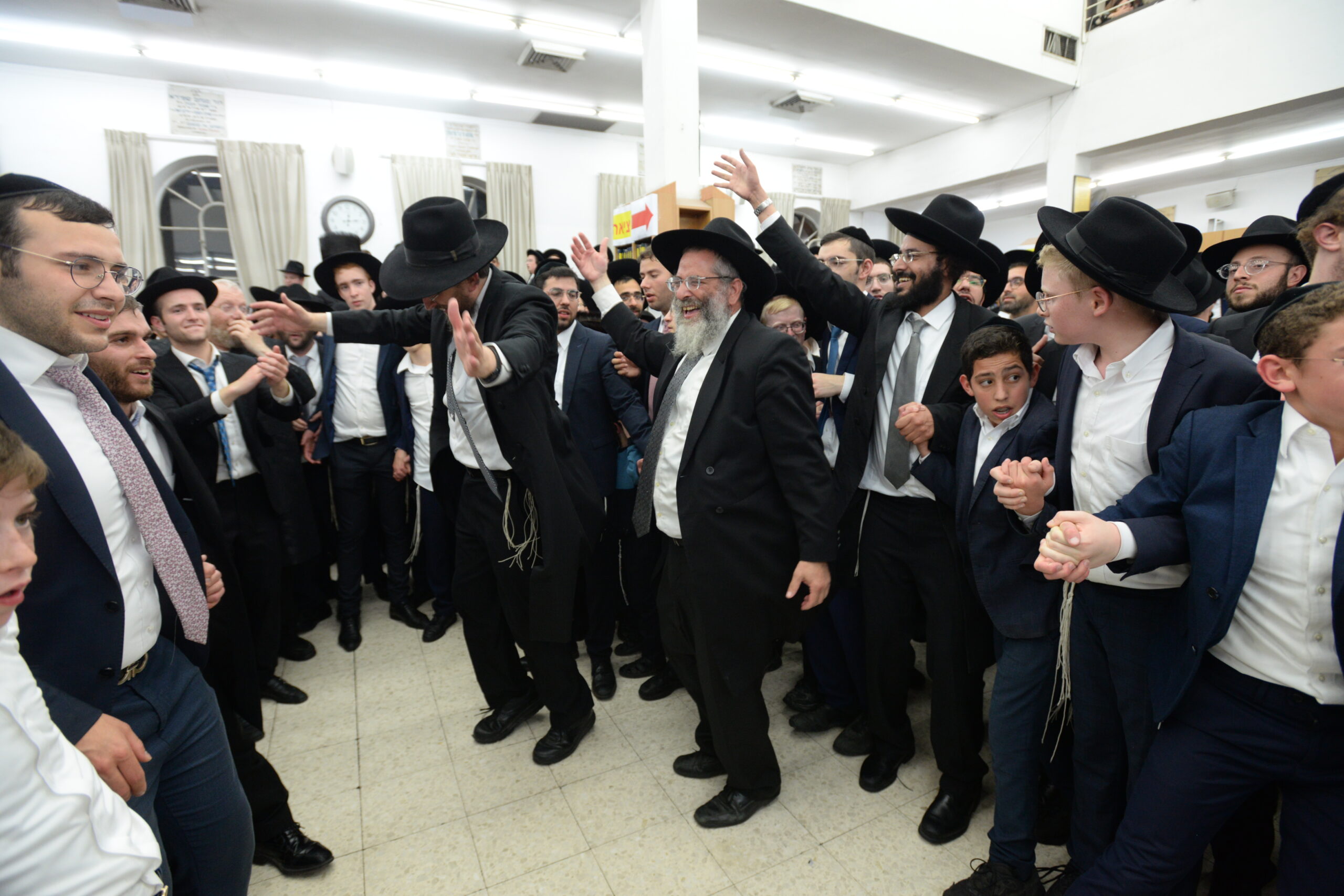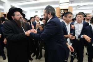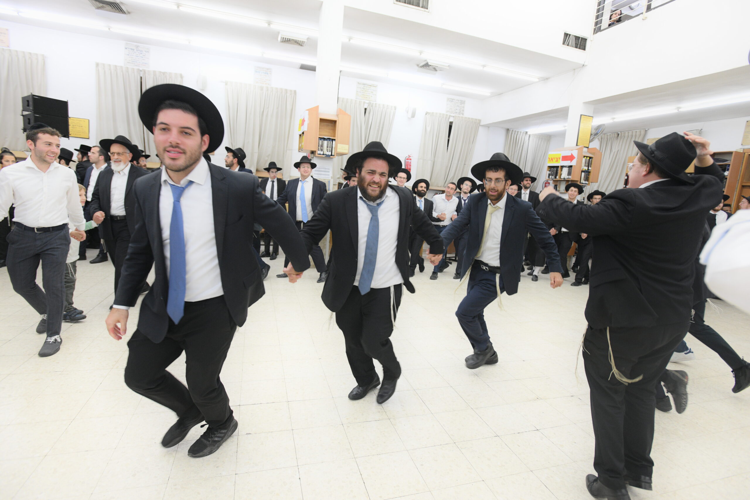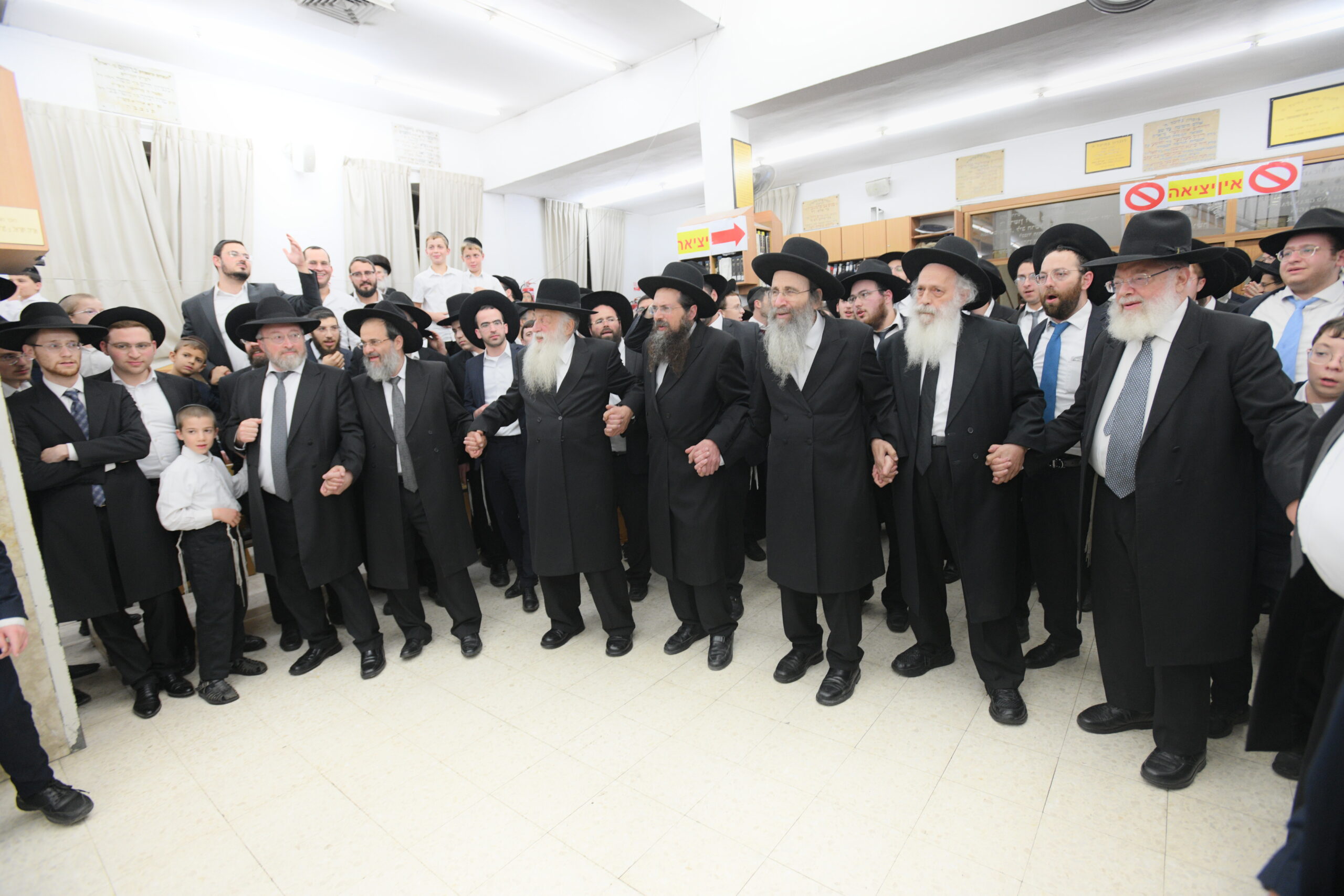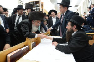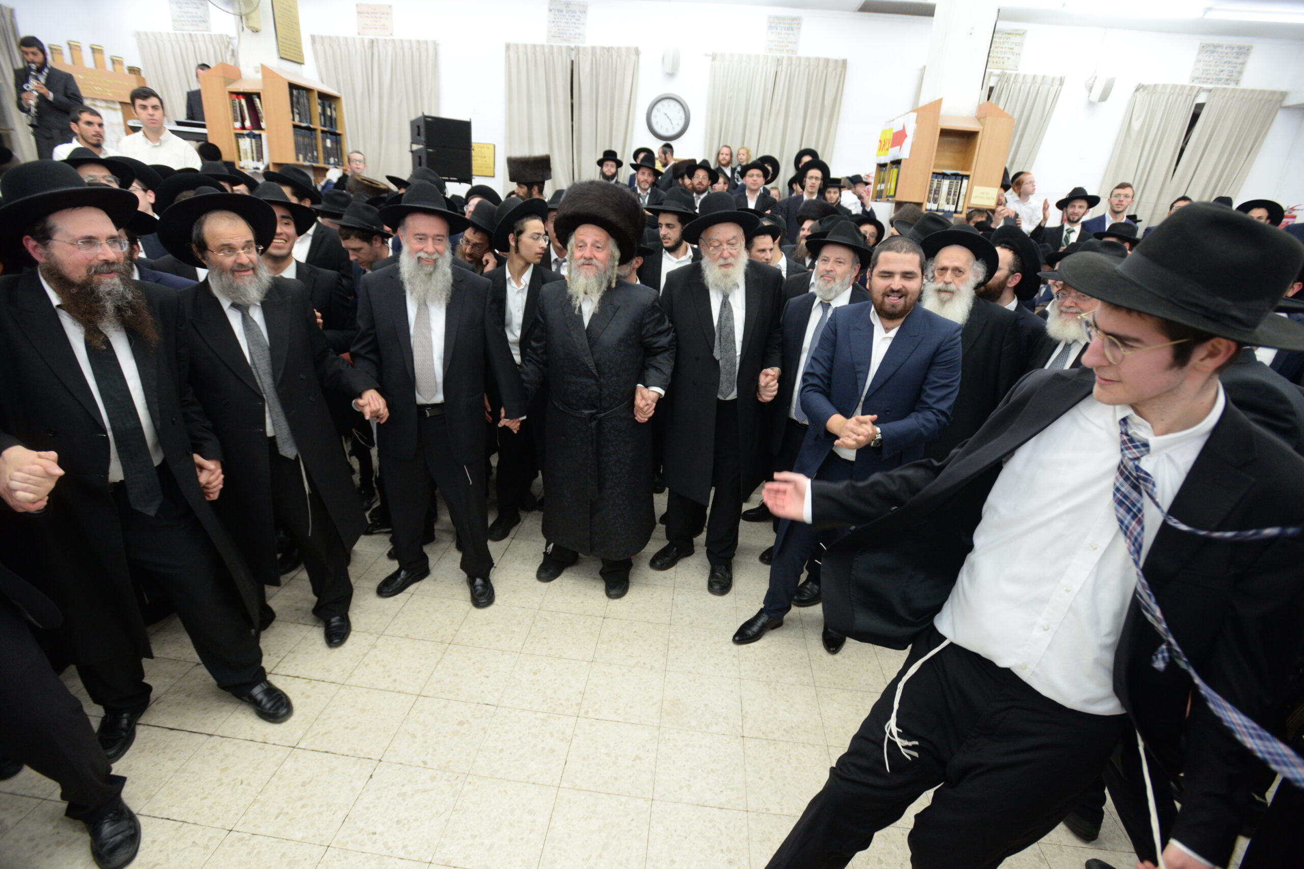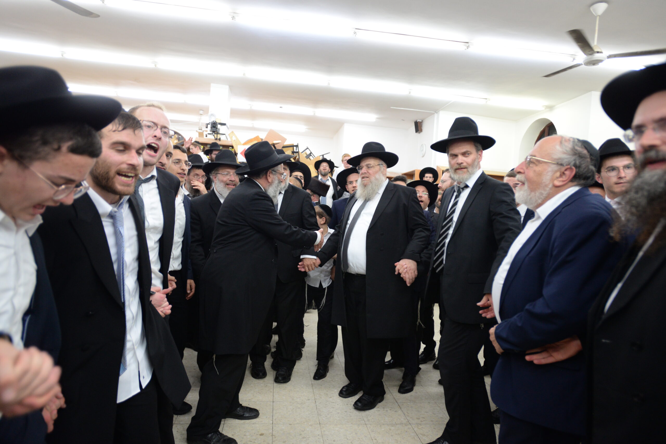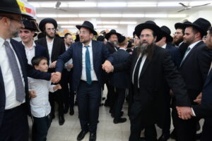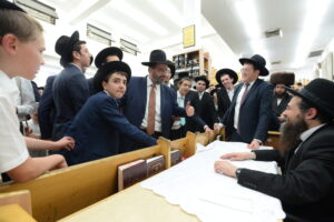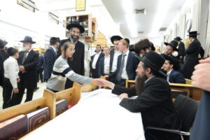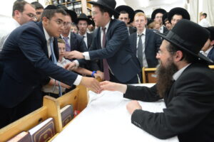The Yeshiva’s Simchas Beis Hashoeva was held on Thursday, the second night of Chol Hamoed, beginning with music and dancing in the Mercazi Bais Medrash at 9:20. When the Roshei Yeshiva walked in about twenty minutes later, the olam broke out in tremendous excitement as they danced with their Rabbeim for several hours. Many visiting guests joined as well, taking the opportunity to wish the Roshei Yeshiva a Gut Yom Tov. All in all, there were around 9,000 people coming by throughout the night. The highlight of the event, as usual, was the kumzitz with inspiring songs of Yamim Noraim and Geulah at the end of the night, culminating in Leshana Haba’ah Bi’Yerushalayim.