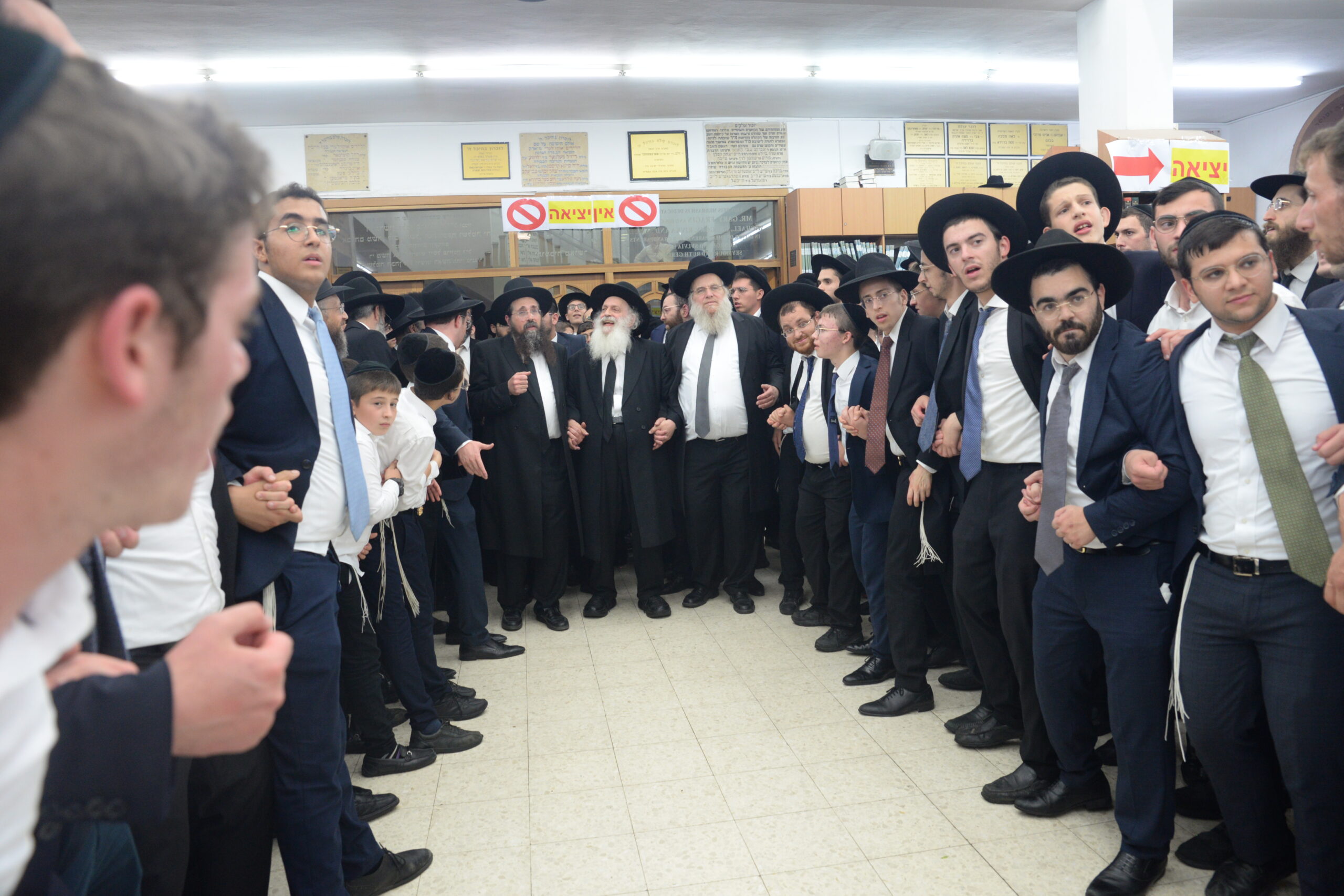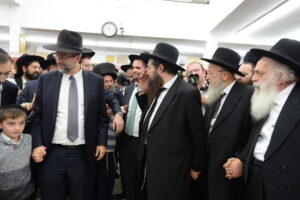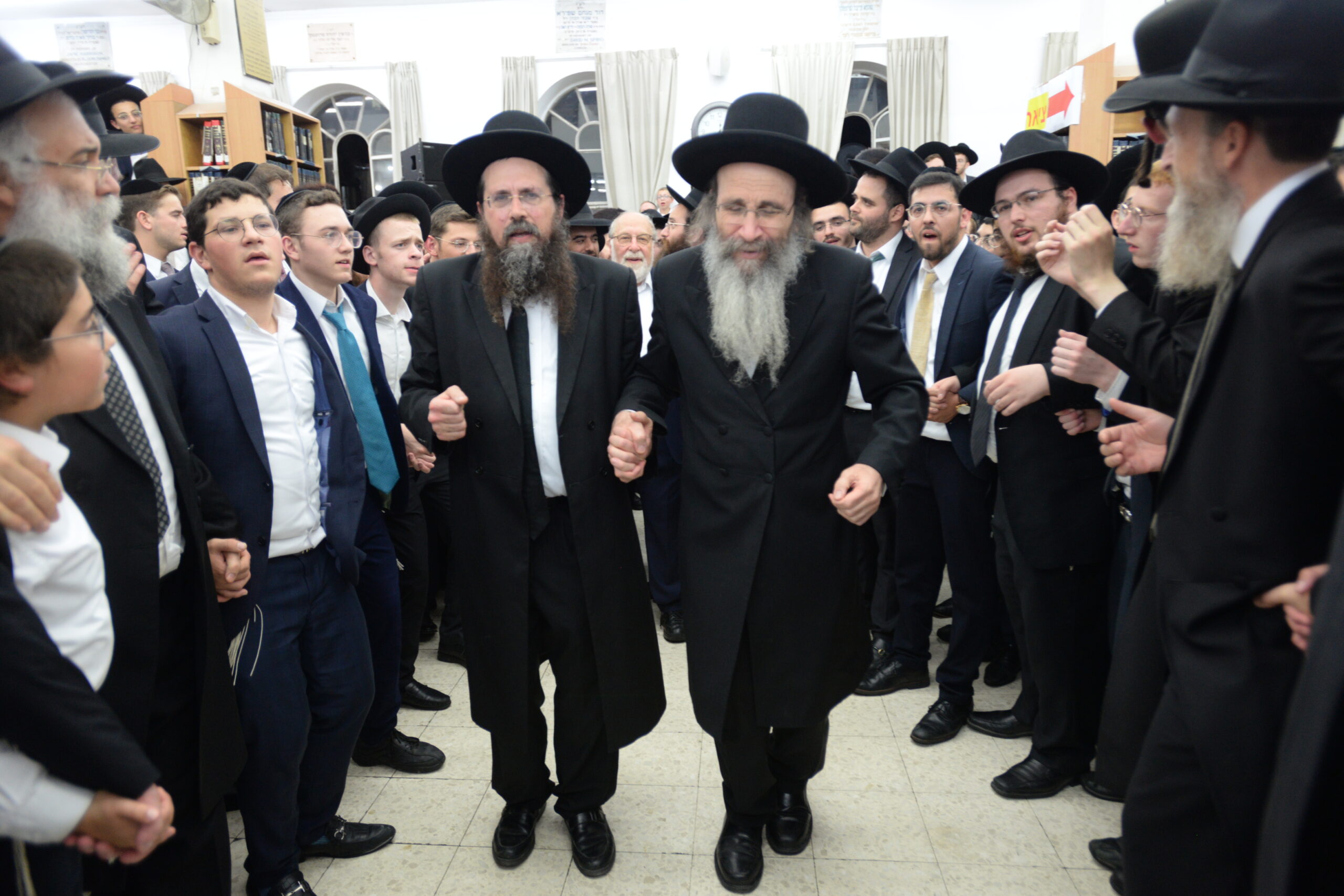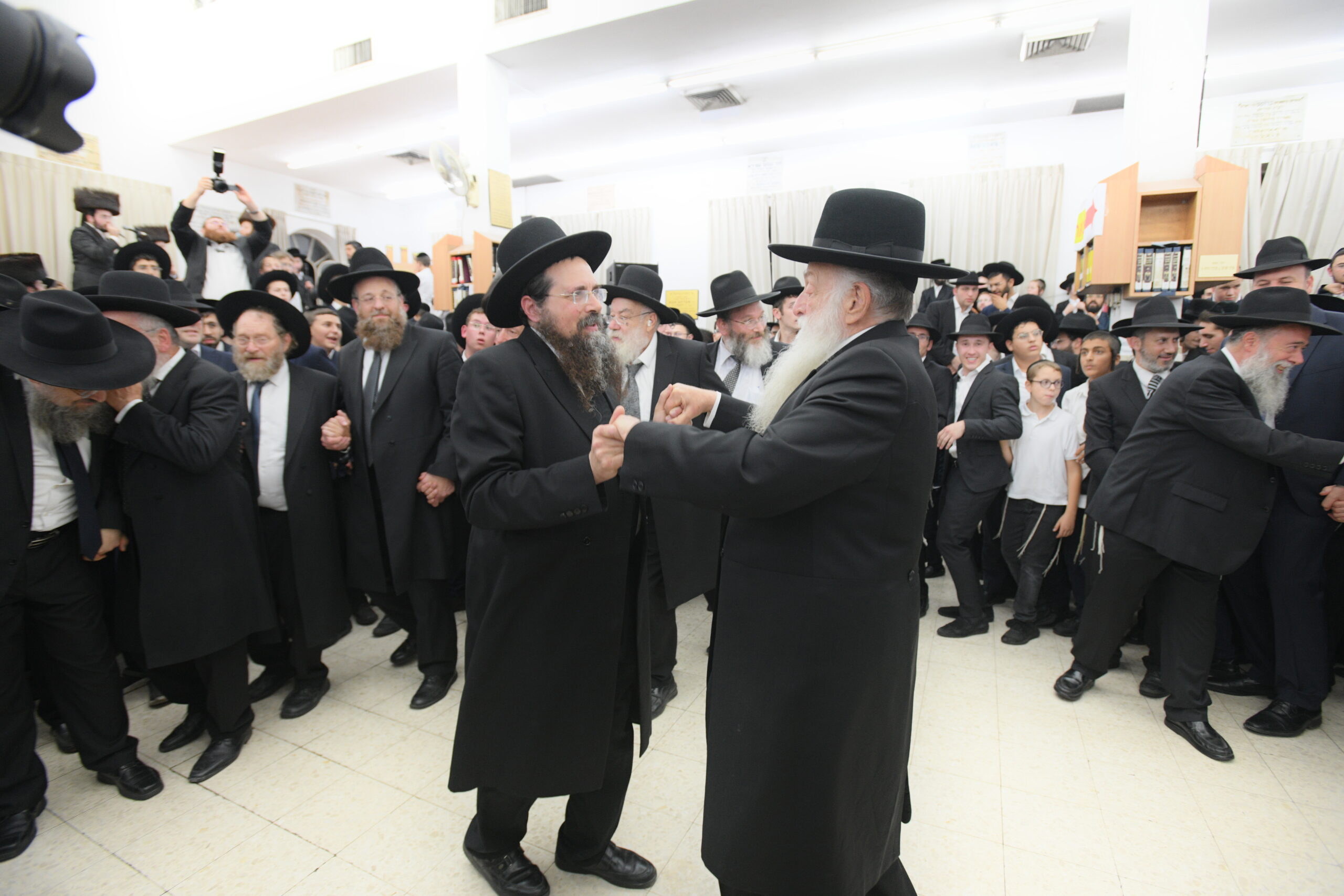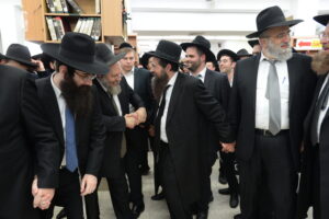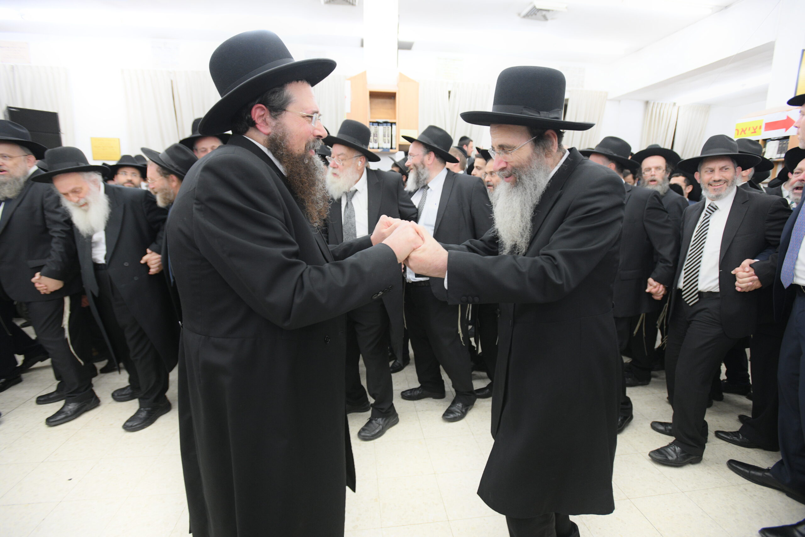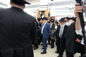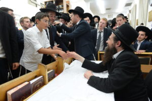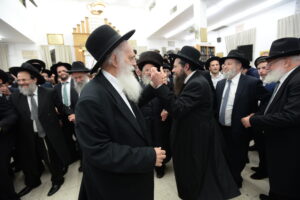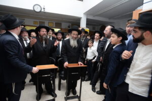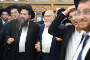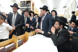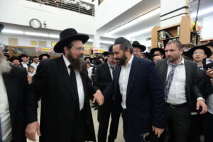 The Yeshiva’s Simchas Beis Hashoeva was held on Thursday, the second night of Chol Hamoed, beginning with music and dancing in the Mercazi Bais Medrash at 9:20. When the Roshei Yeshiva walked in about twenty minutes later, the olam broke out in tremendous excitement as they danced with their Rabbeim for several hours. Many visiting guests joined as well, taking the opportunity to wish the Roshei Yeshiva a Gut Yom Tov. All in all, there were around 9,000 people coming by throughout the night. The highlight of the event, as usual, was the kumzitz with inspiring songs of Yamim Noraim and Geulah at the end of the night, culminating in Leshana Haba’ah Bi’Yerushalayim.