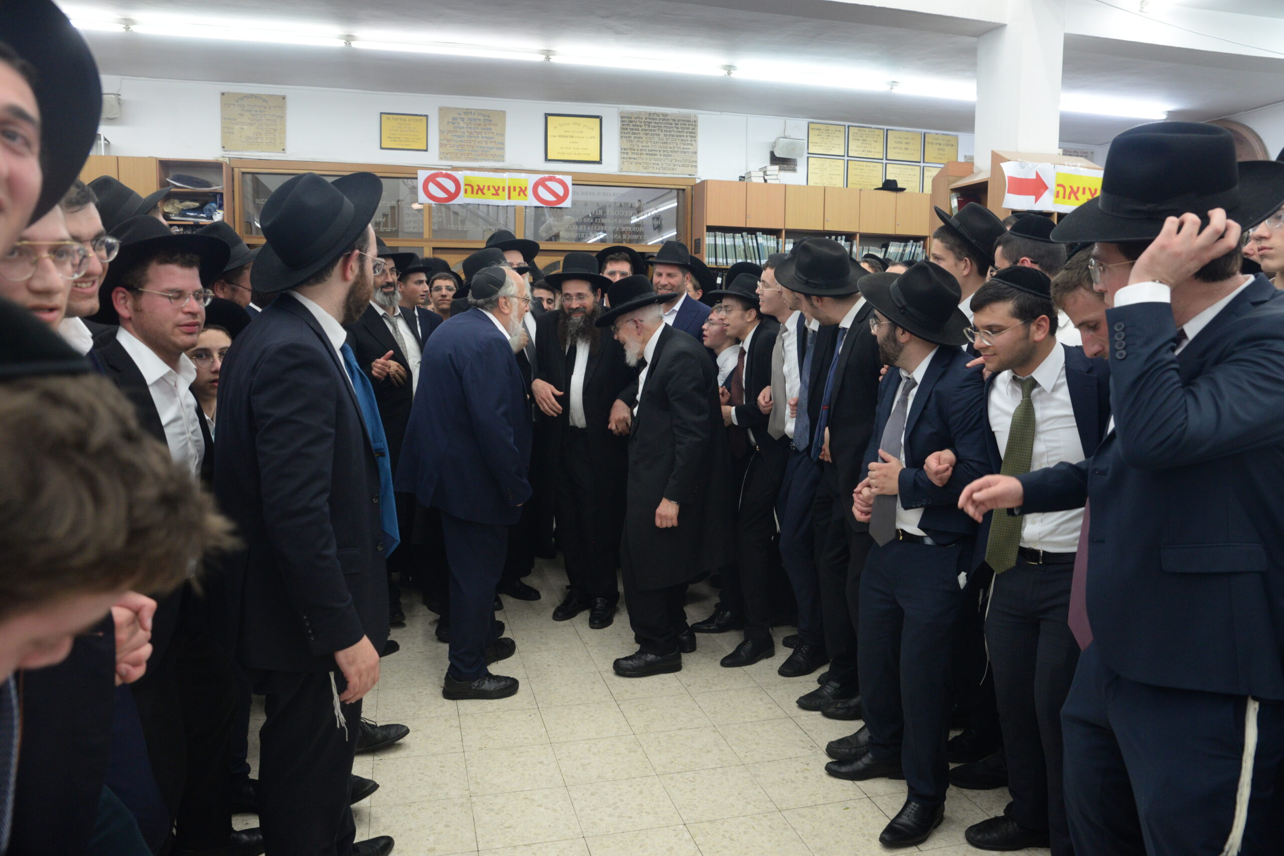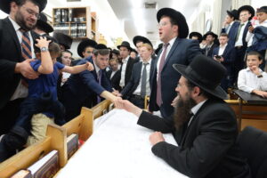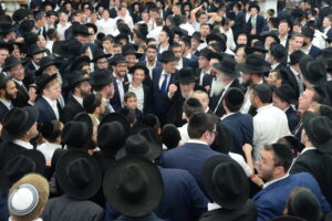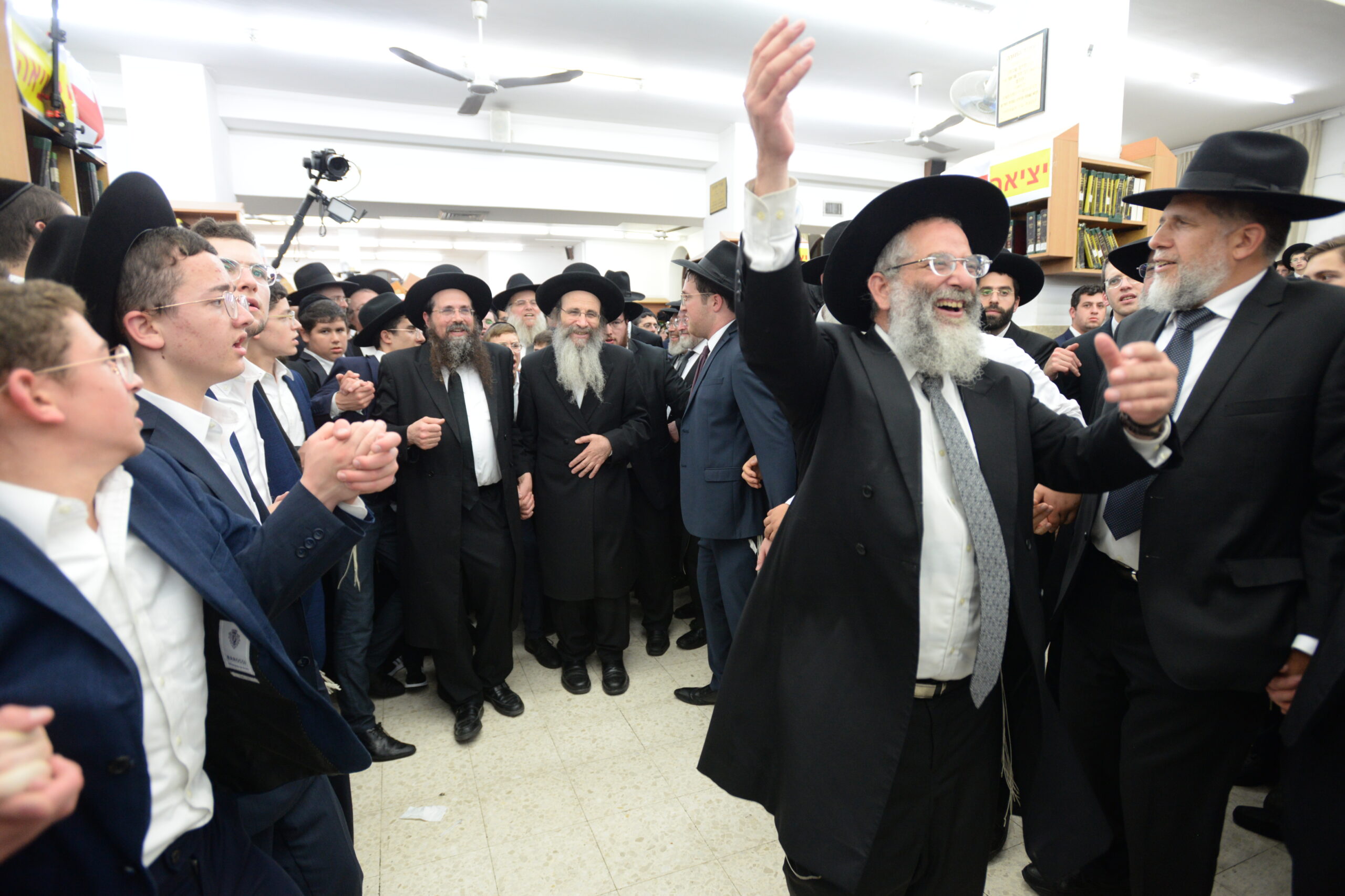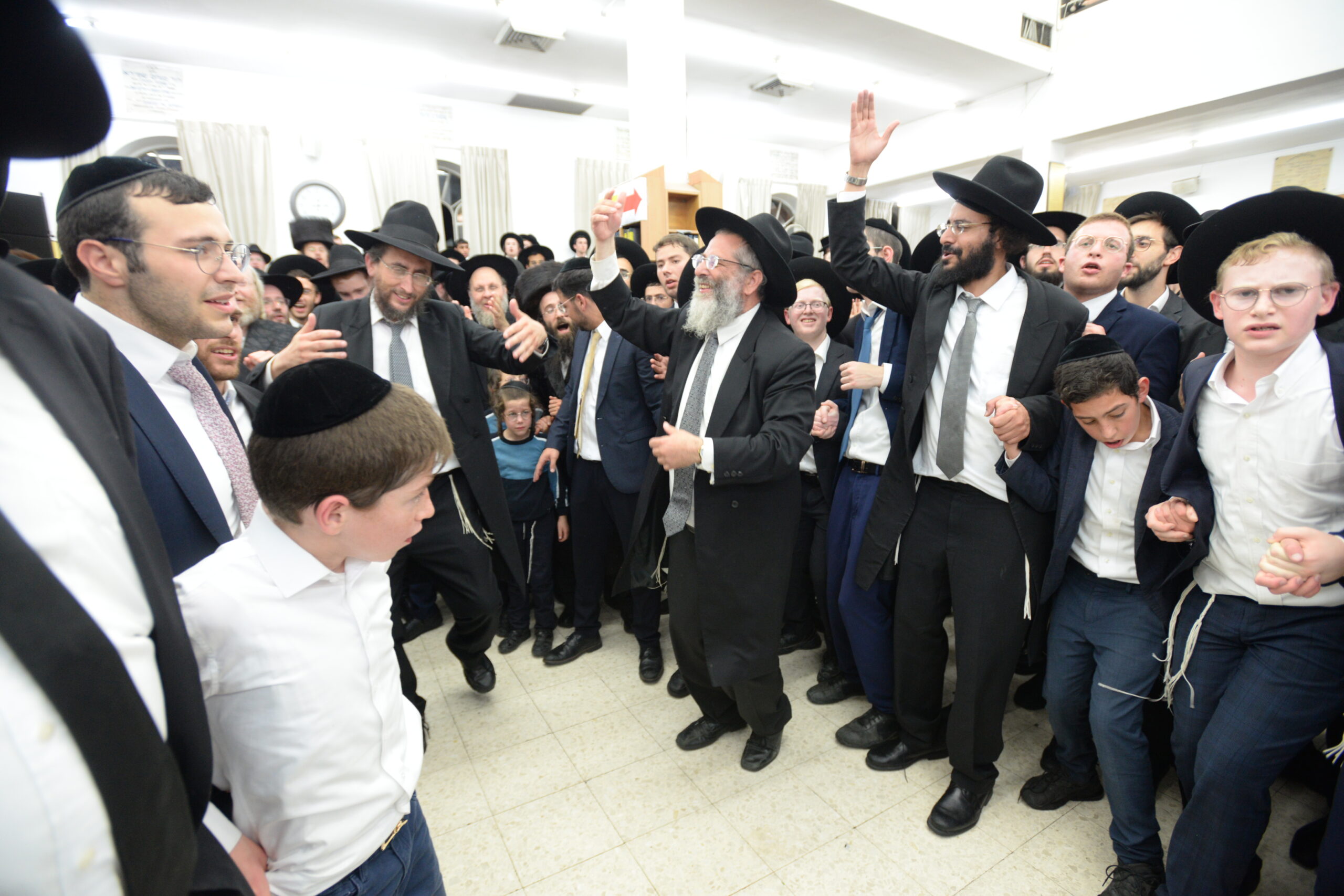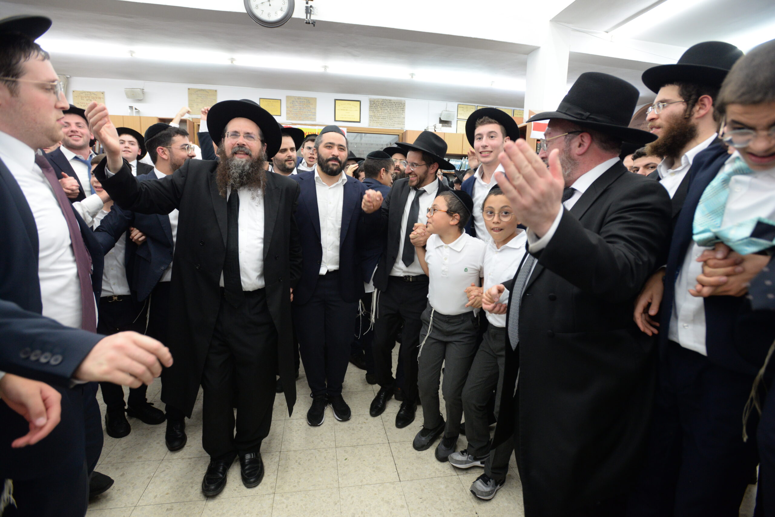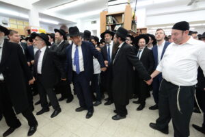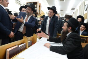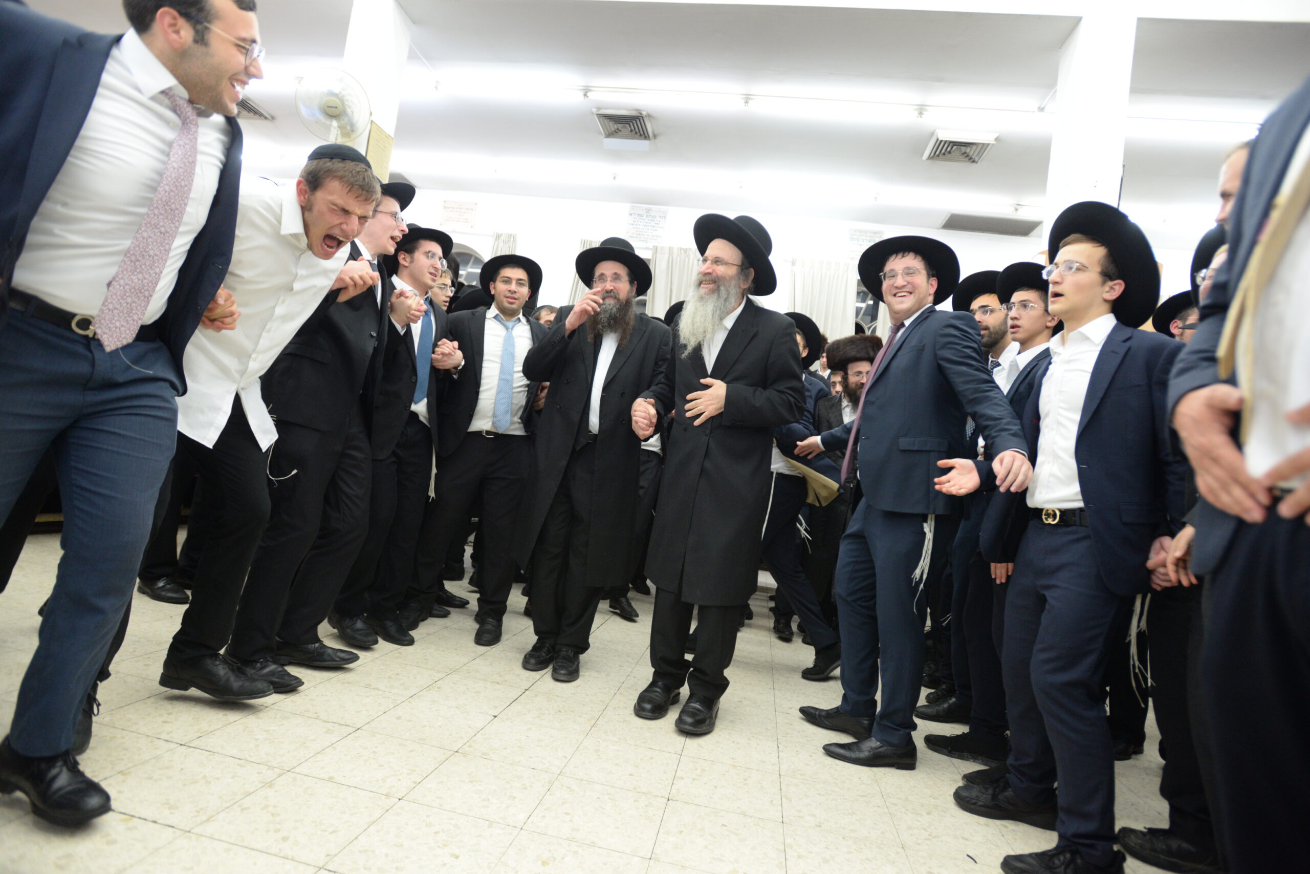 The Yeshiva’s Simchas Beis Hashoeva was held on Thursday, the second night of Chol Hamoed, beginning with music and dancing in the Mercazi Bais Medrash at 9:20. When the Roshei Yeshiva walked in about twenty minutes later, the olam broke out in tremendous excitement as they danced with their Rabbeim for several hours. Many visiting guests joined as well, taking the opportunity to wish the Roshei Yeshiva a Gut Yom Tov. All in all, there were around 9,000 people coming by throughout the night. The highlight of the event, as usual, was the kumzitz with inspiring songs of Yamim Noraim and Geulah at the end of the night, culminating in Leshana Haba’ah Bi’Yerushalayim.