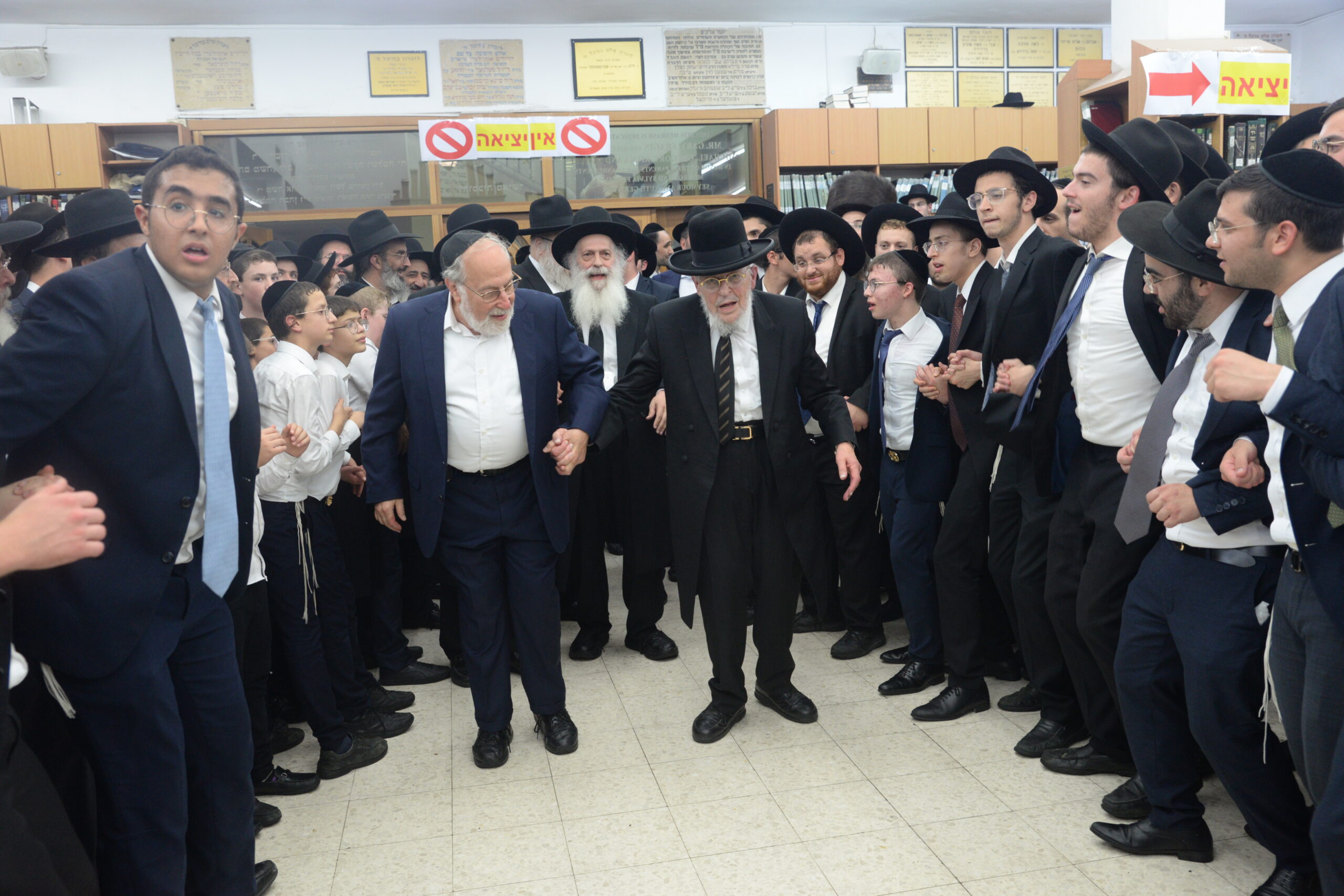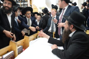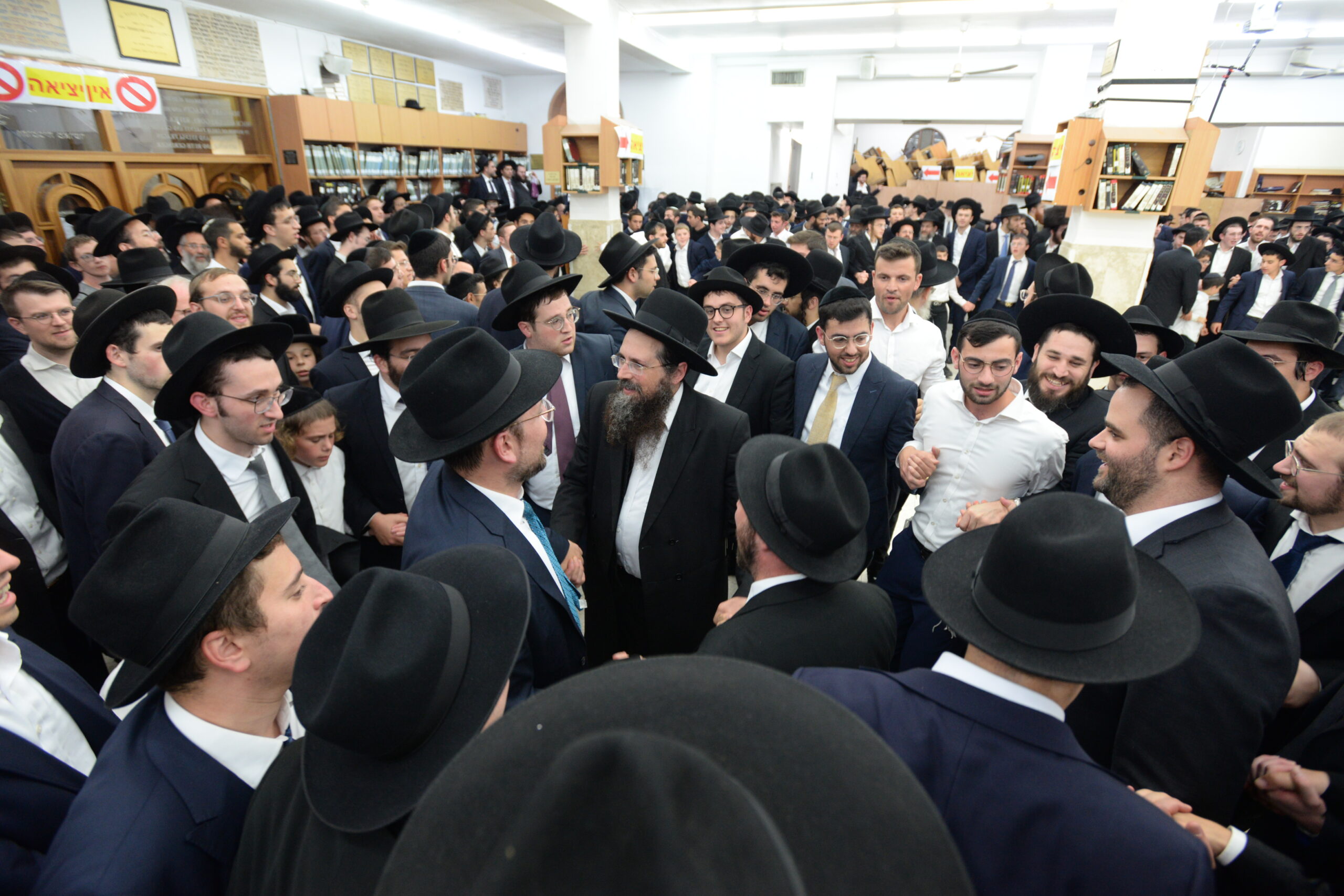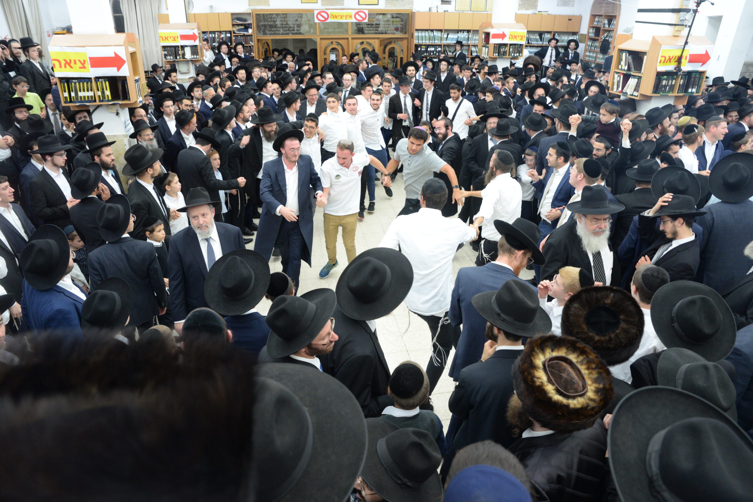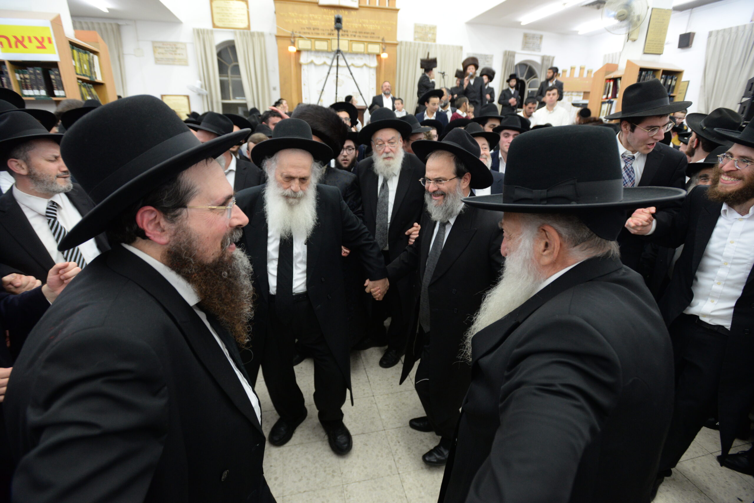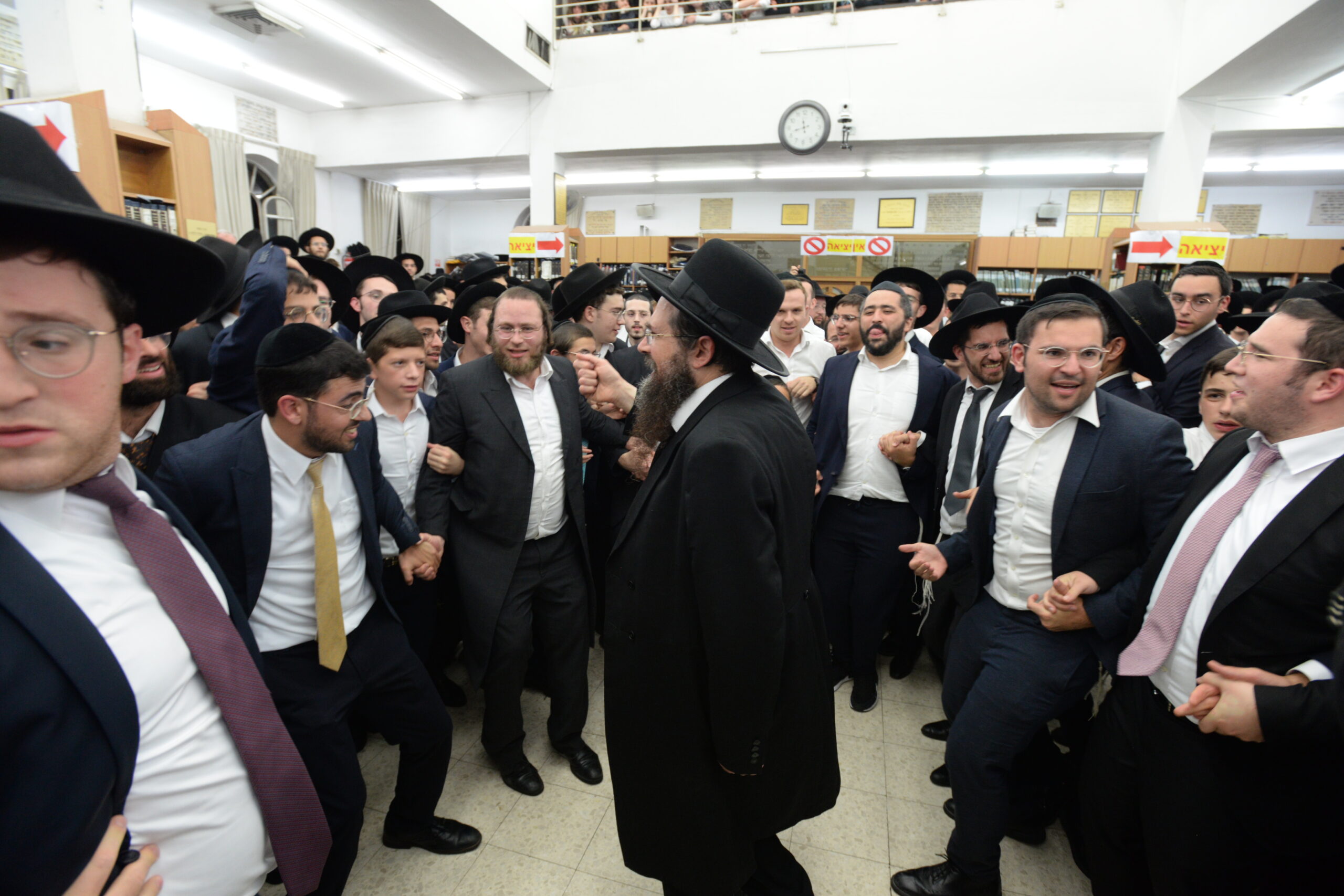 The Yeshiva’s Simchas Beis Hashoeva was held on Thursday, the second night of Chol Hamoed, beginning with music and dancing in the Mercazi Bais Medrash at 9:20. When the Roshei Yeshiva walked in about twenty minutes later, the olam broke out in tremendous excitement as they danced with their Rabbeim for several hours. Many visiting guests joined as well, taking the opportunity to wish the Roshei Yeshiva a Gut Yom Tov. All in all, there were around 9,000 people coming by throughout the night. The highlight of the event, as usual, was the kumzitz with inspiring songs of Yamim Noraim and Geulah at the end of the night, culminating in Leshana Haba’ah Bi’Yerushalayim.