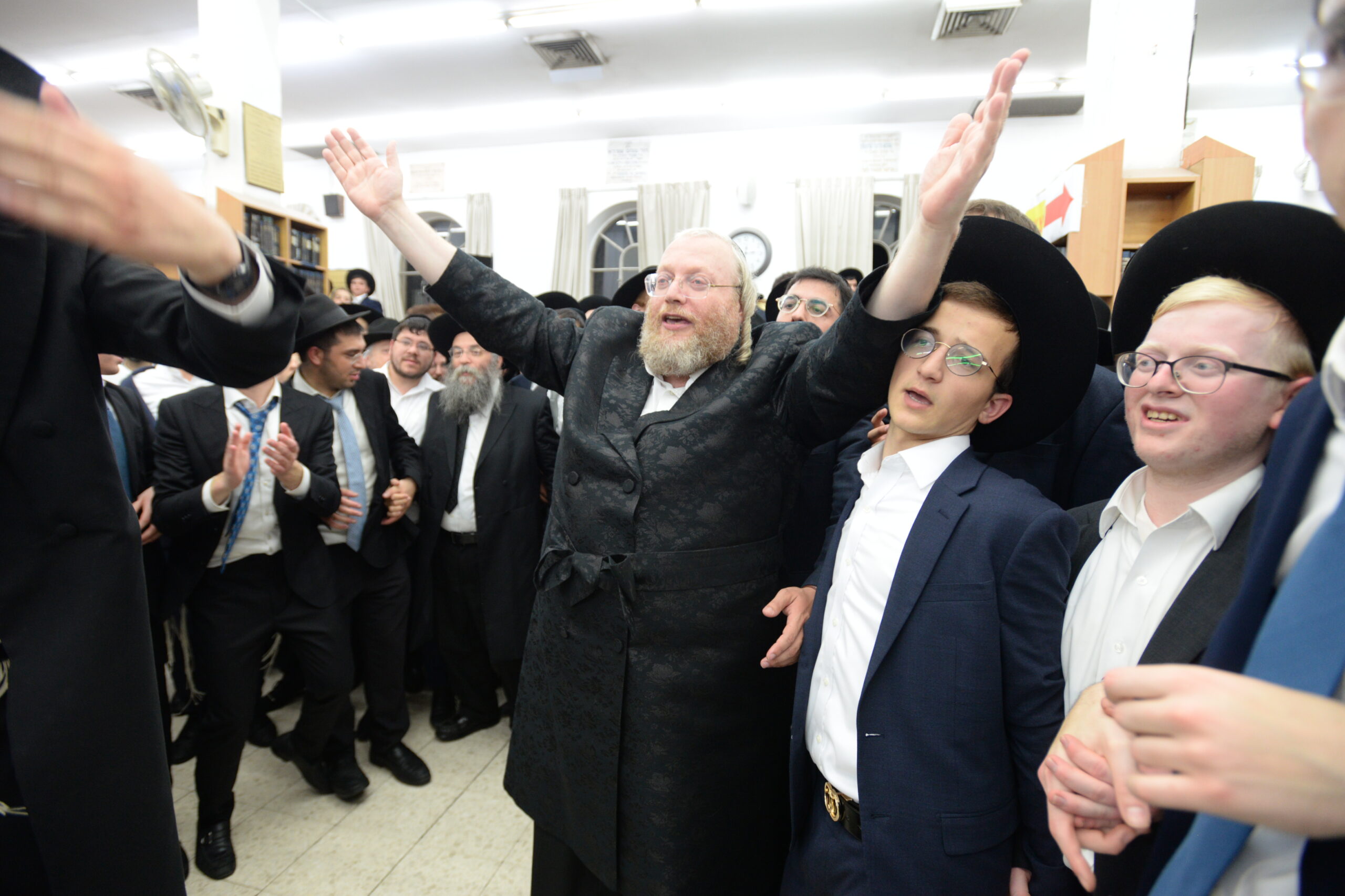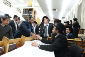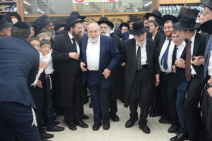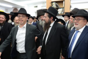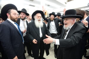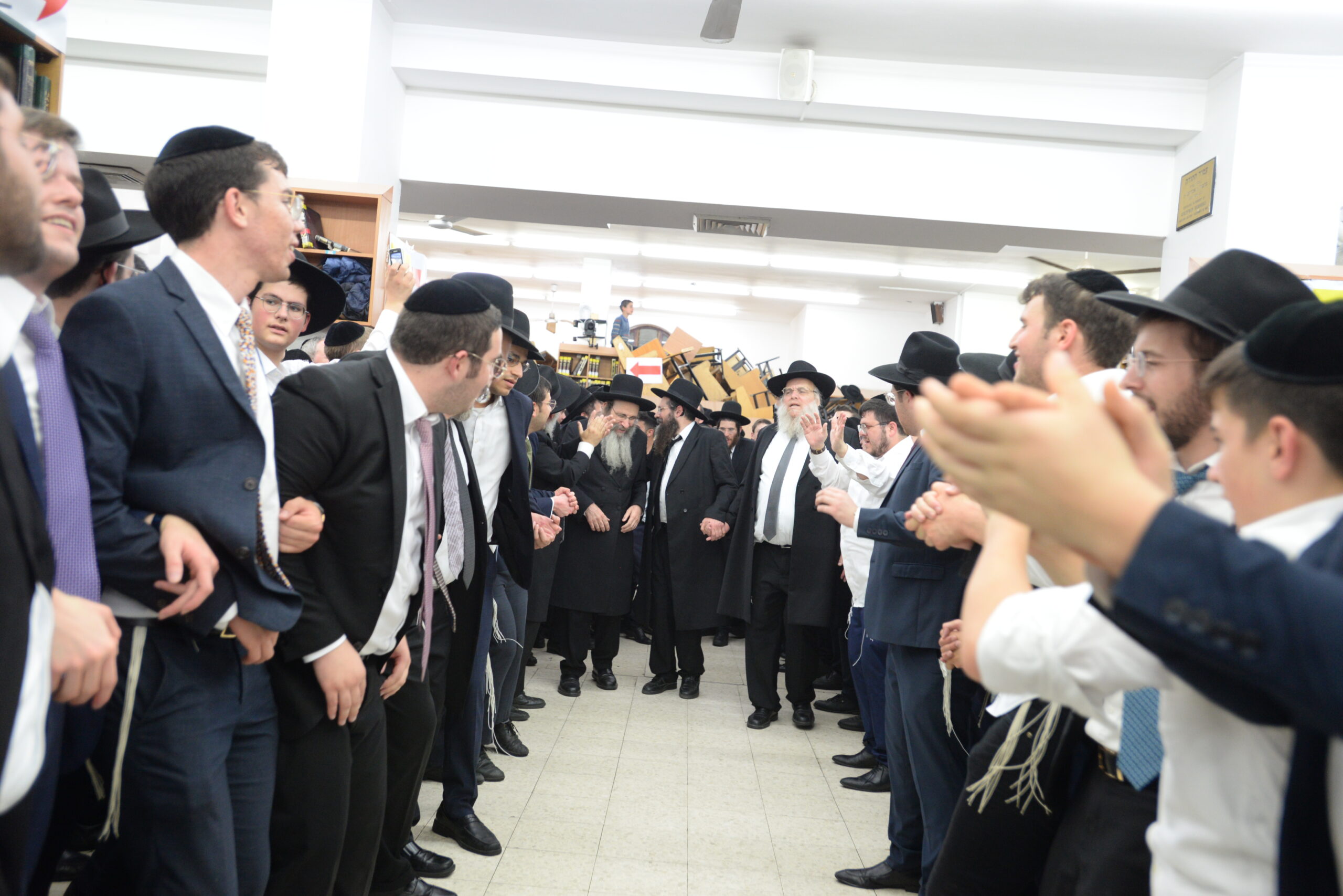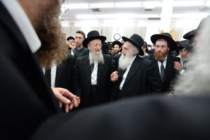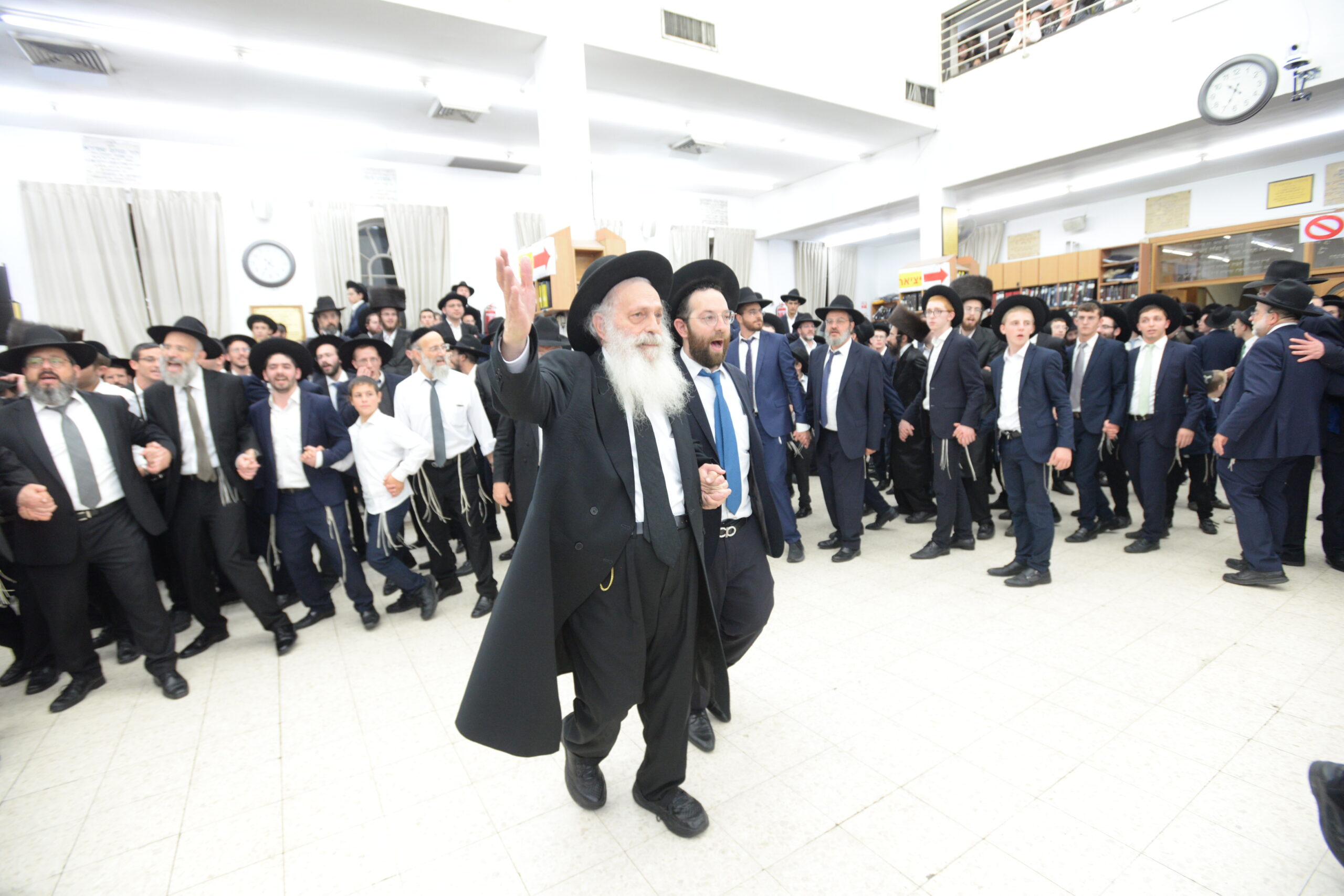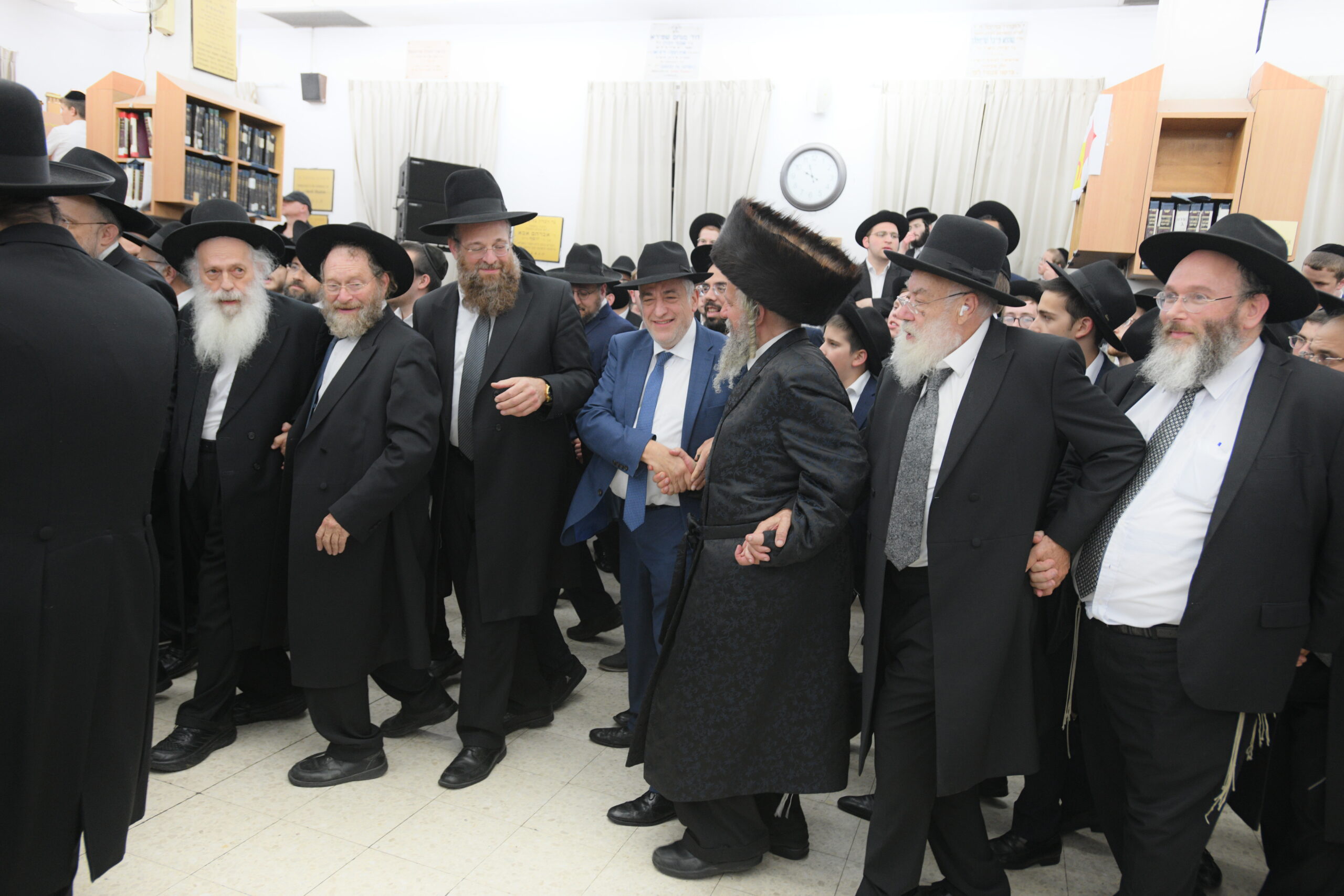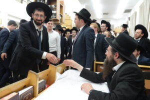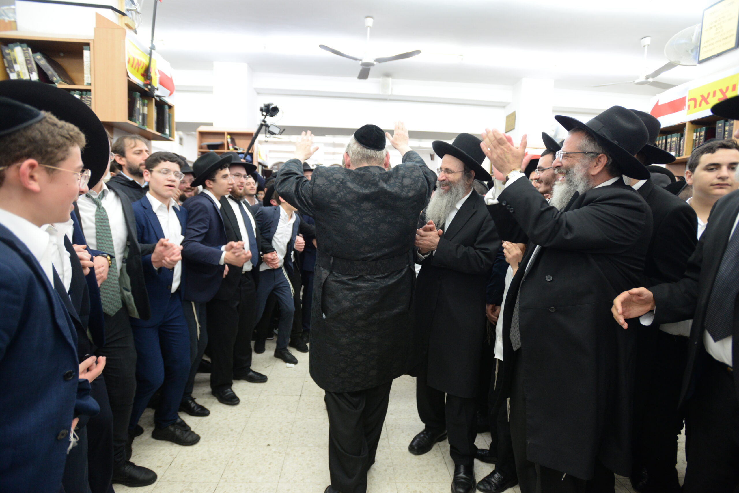 The Yeshiva’s Simchas Beis Hashoeva was held on Thursday, the second night of Chol Hamoed, beginning with music and dancing in the Mercazi Bais Medrash at 9:20. When the Roshei Yeshiva walked in about twenty minutes later, the olam broke out in tremendous excitement as they danced with their Rabbeim for several hours. Many visiting guests joined as well, taking the opportunity to wish the Roshei Yeshiva a Gut Yom Tov. All in all, there were around 9,000 people coming by throughout the night. The highlight of the event, as usual, was the kumzitz with inspiring songs of Yamim Noraim and Geulah at the end of the night, culminating in Leshana Haba’ah Bi’Yerushalayim.