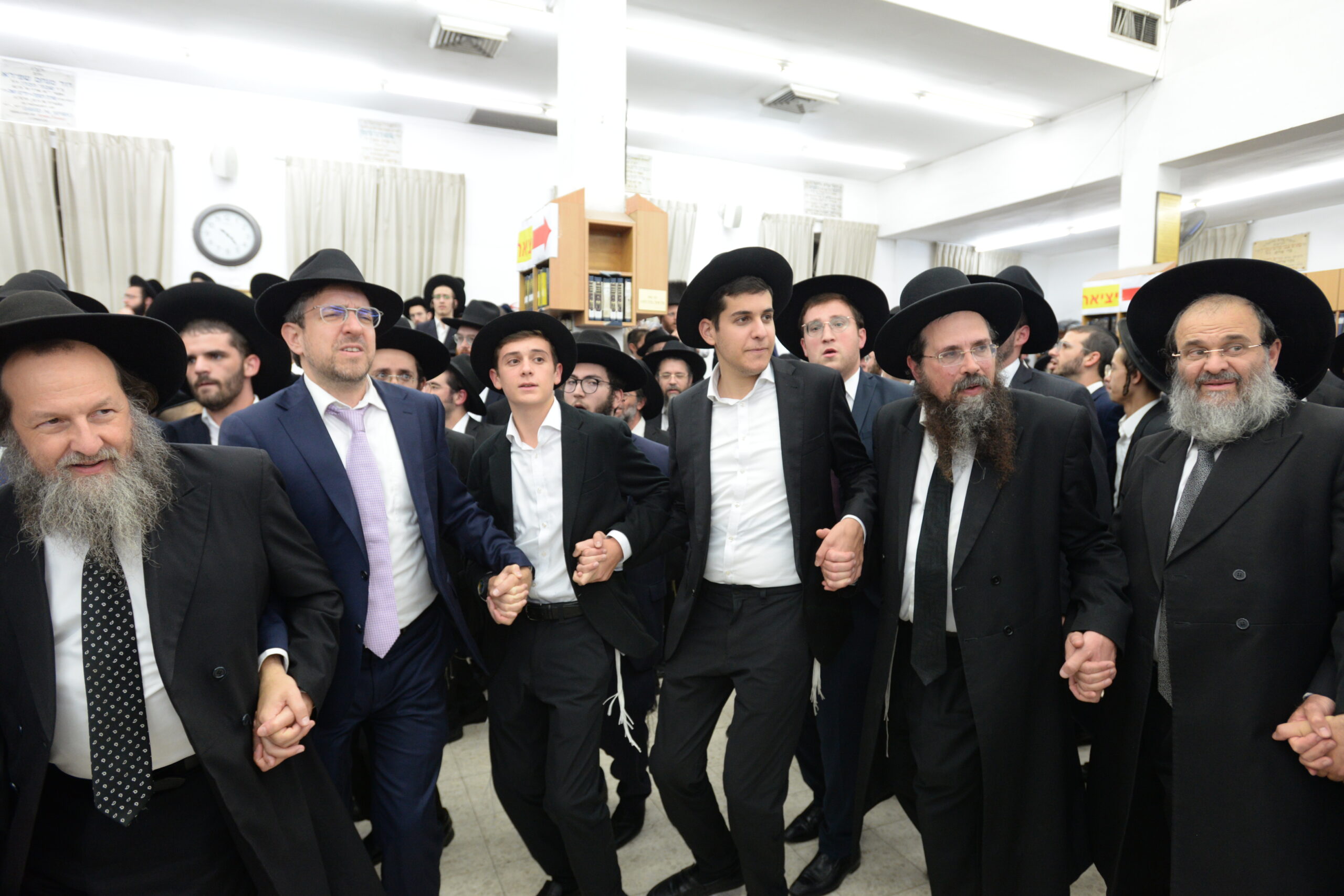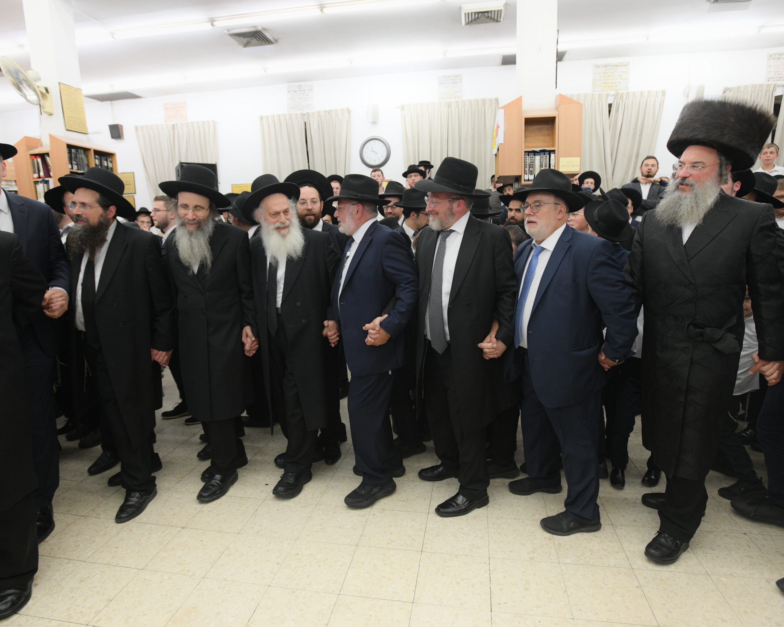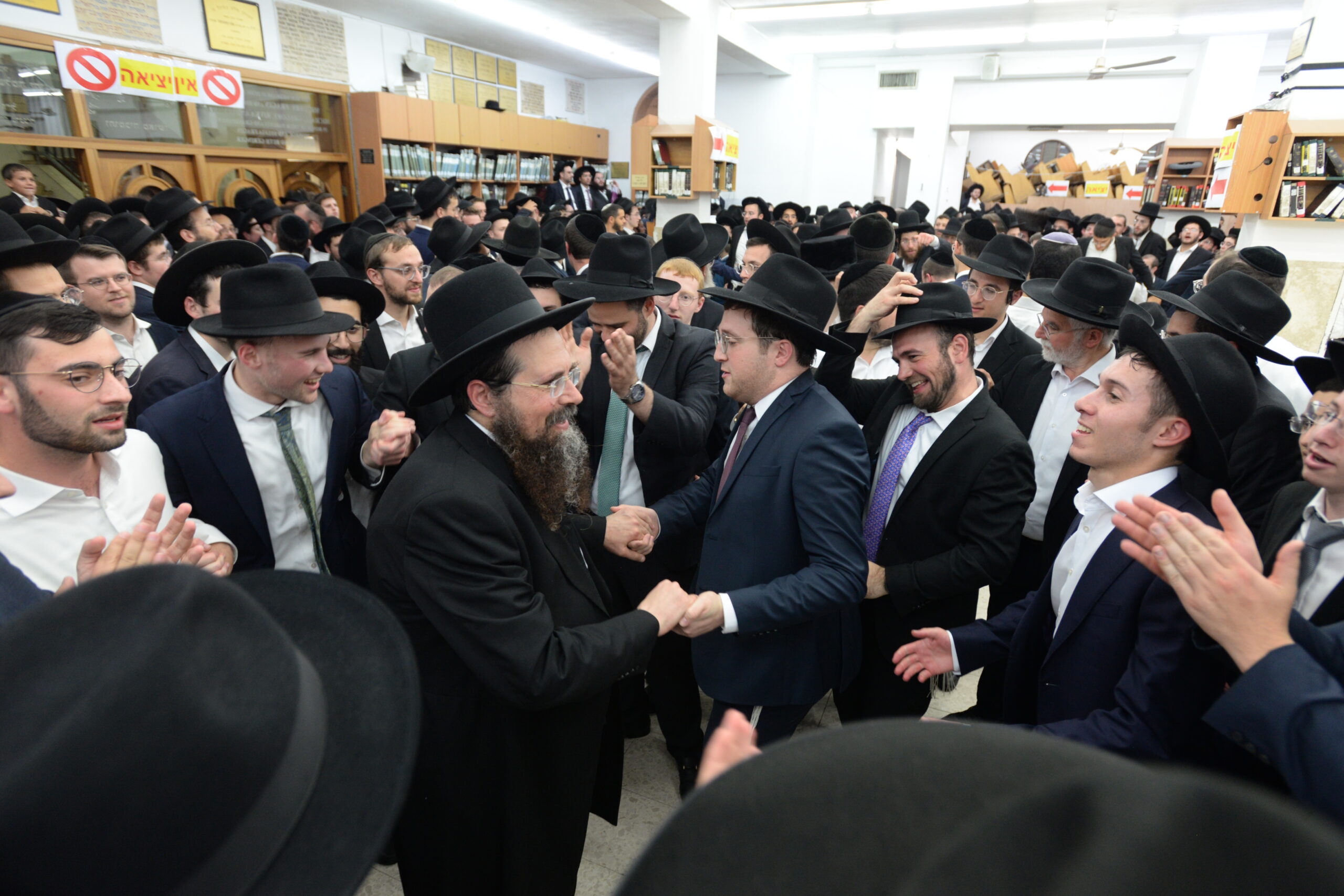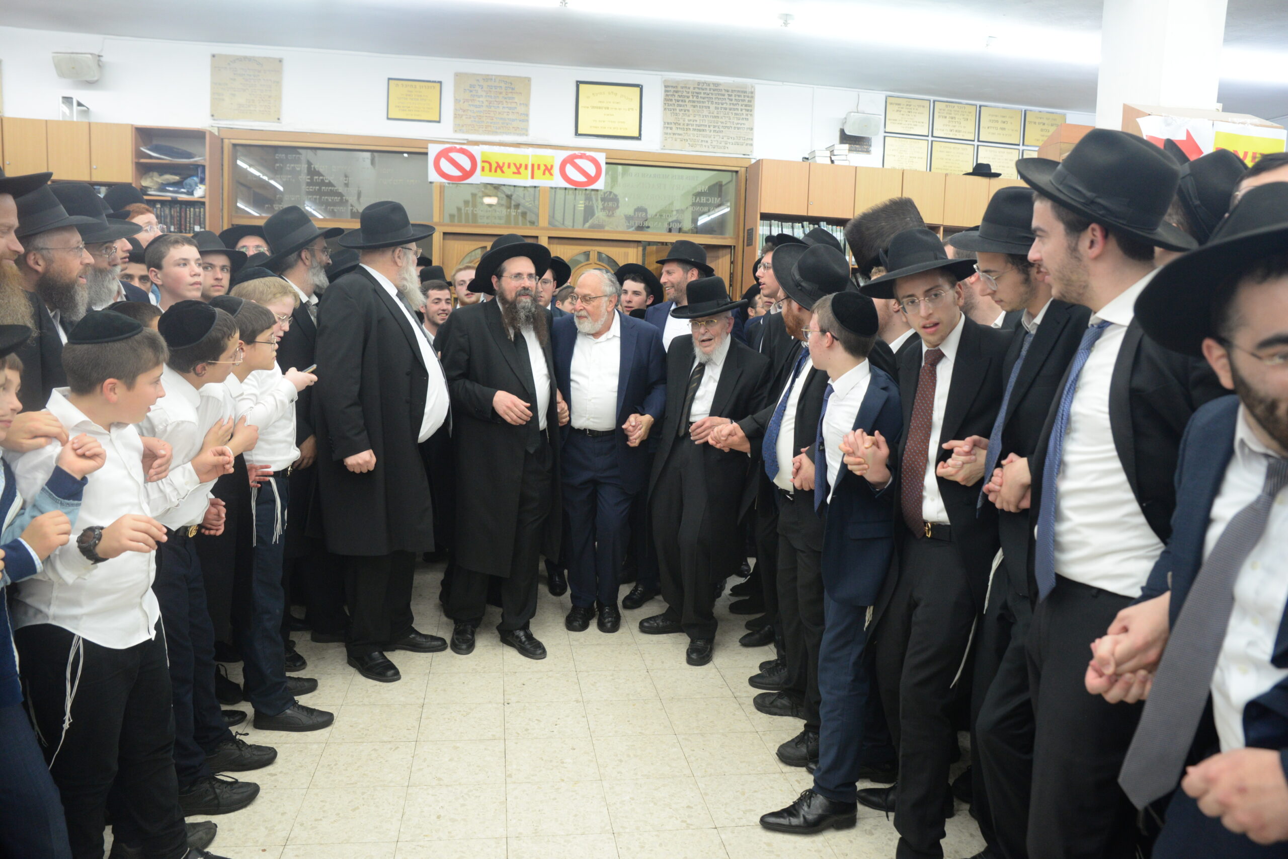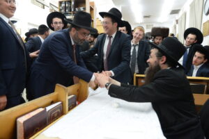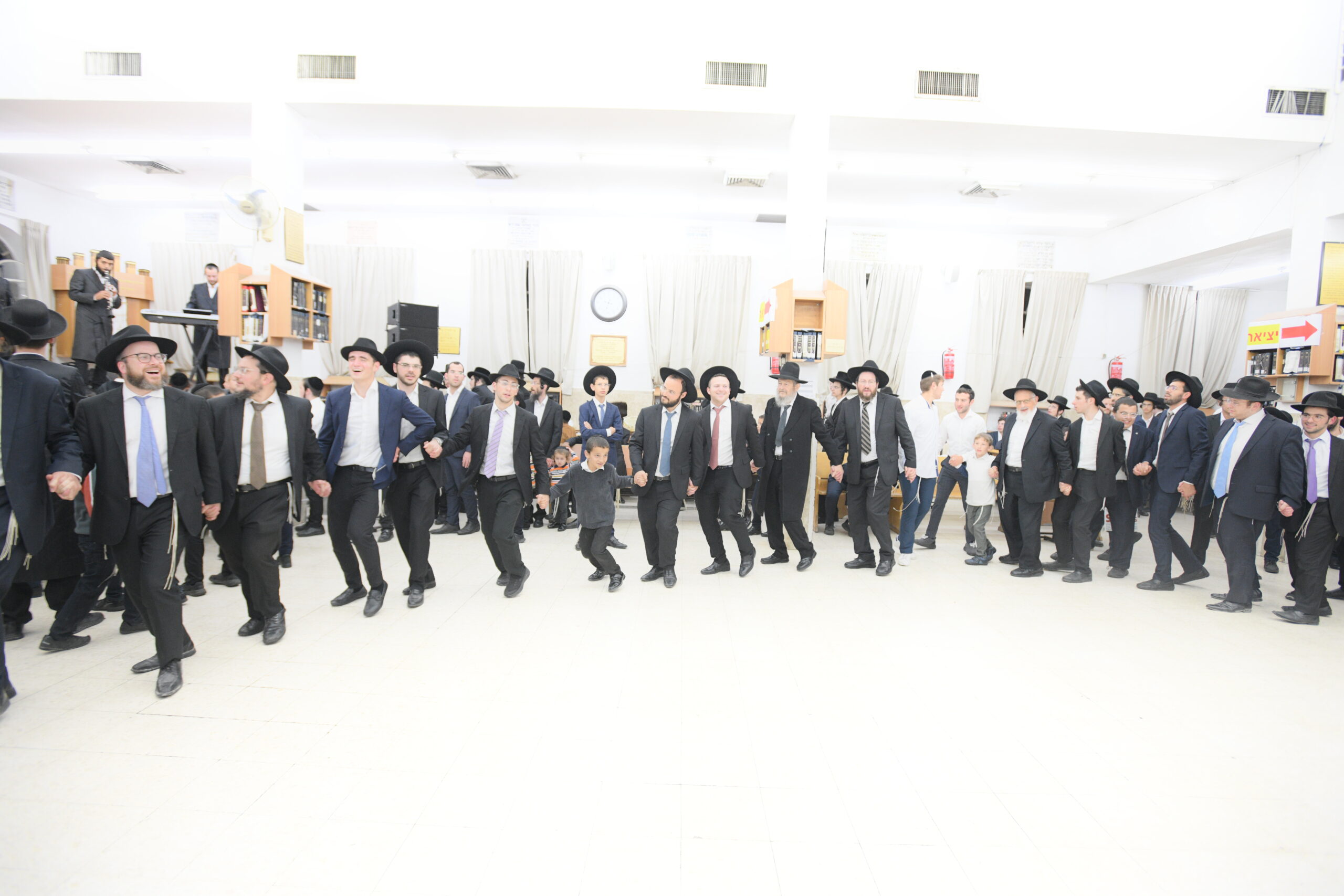 The Yeshiva’s Simchas Beis Hashoeva was held on Thursday, the second night of Chol Hamoed, beginning with music and dancing in the Mercazi Bais Medrash at 9:20. When the Roshei Yeshiva walked in about twenty minutes later, the olam broke out in tremendous excitement as they danced with their Rabbeim for several hours. Many visiting guests joined as well, taking the opportunity to wish the Roshei Yeshiva a Gut Yom Tov. All in all, there were around 9,000 people coming by throughout the night. The highlight of the event, as usual, was the kumzitz with inspiring songs of Yamim Noraim and Geulah at the end of the night, culminating in Leshana Haba’ah Bi’Yerushalayim.