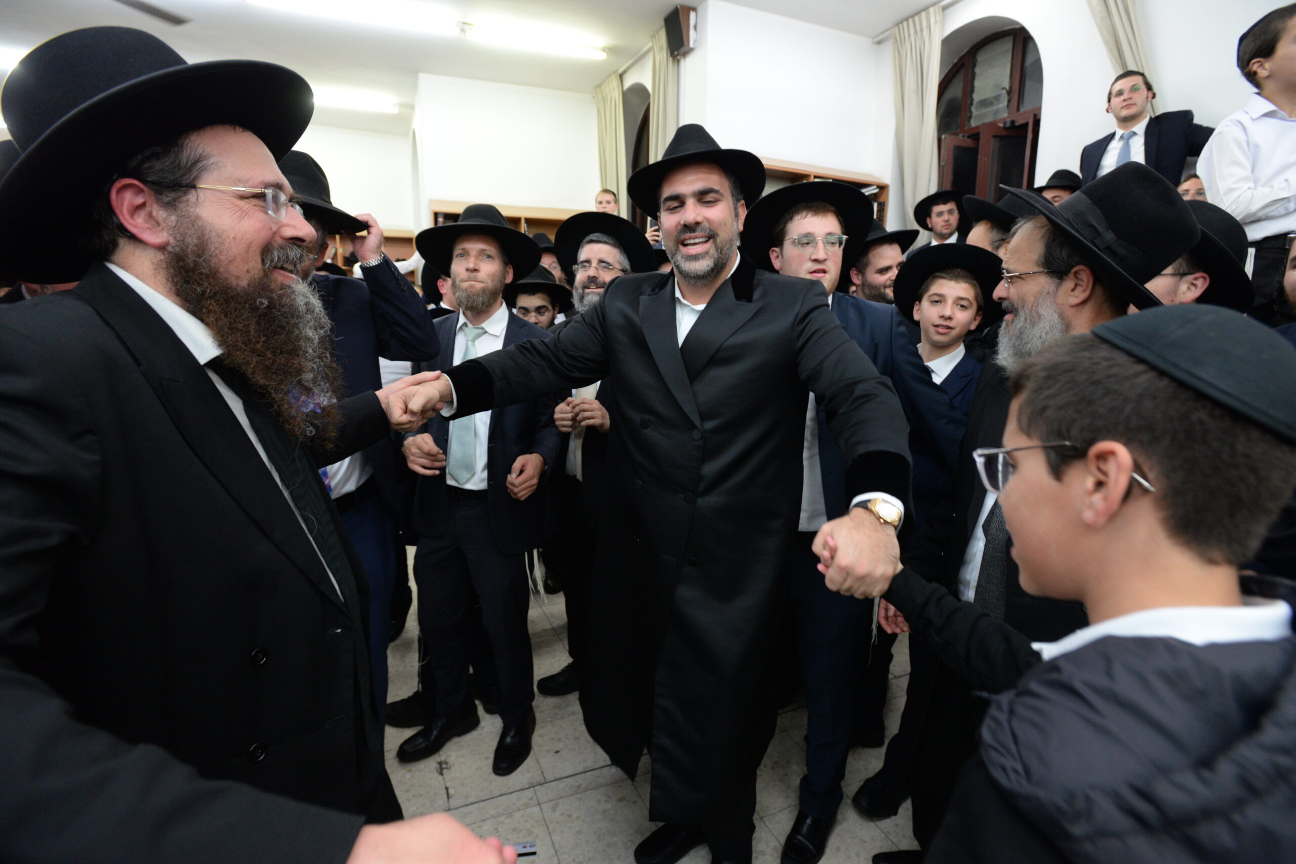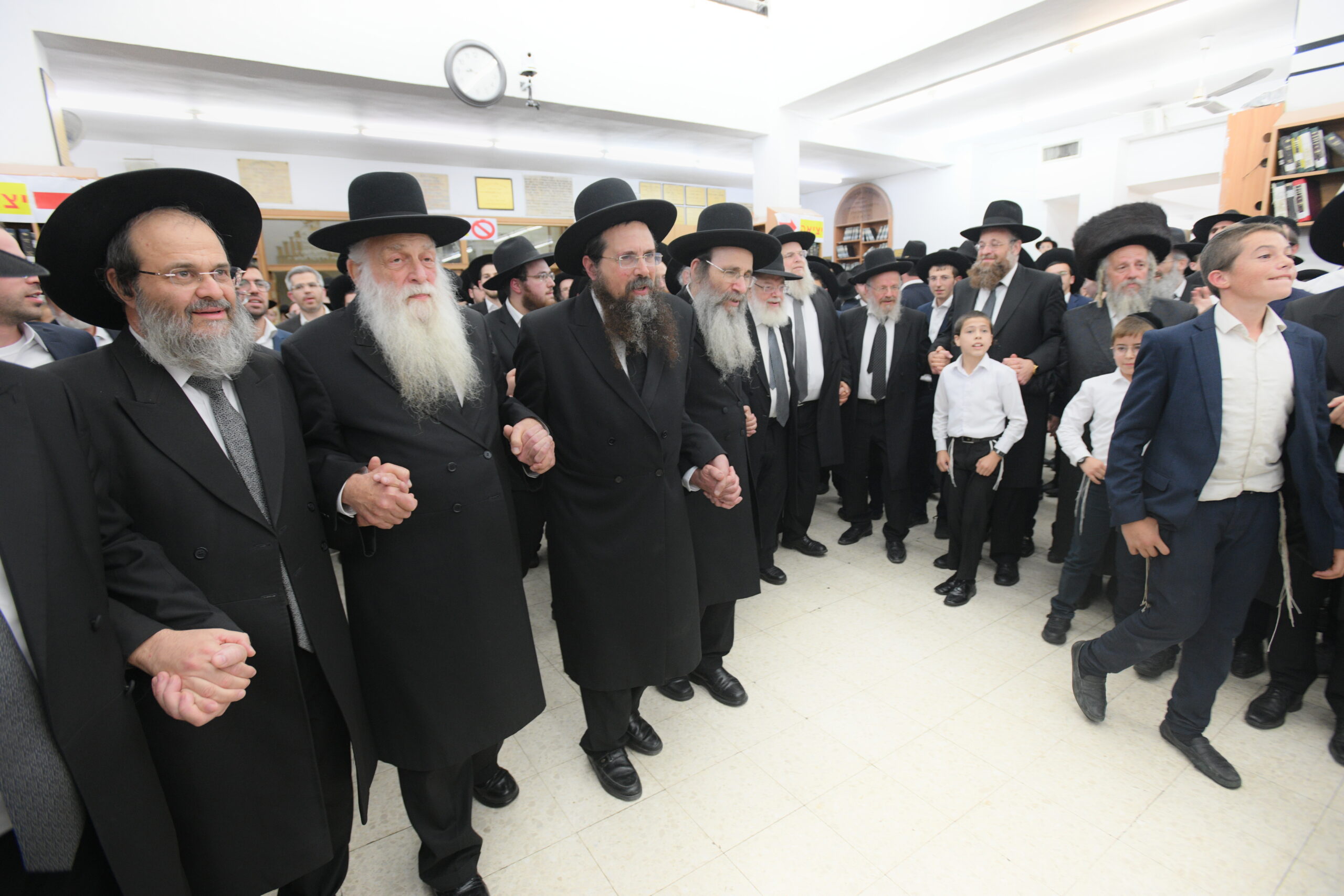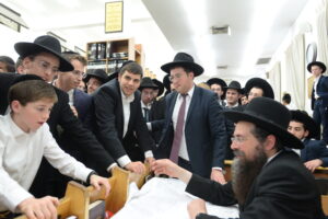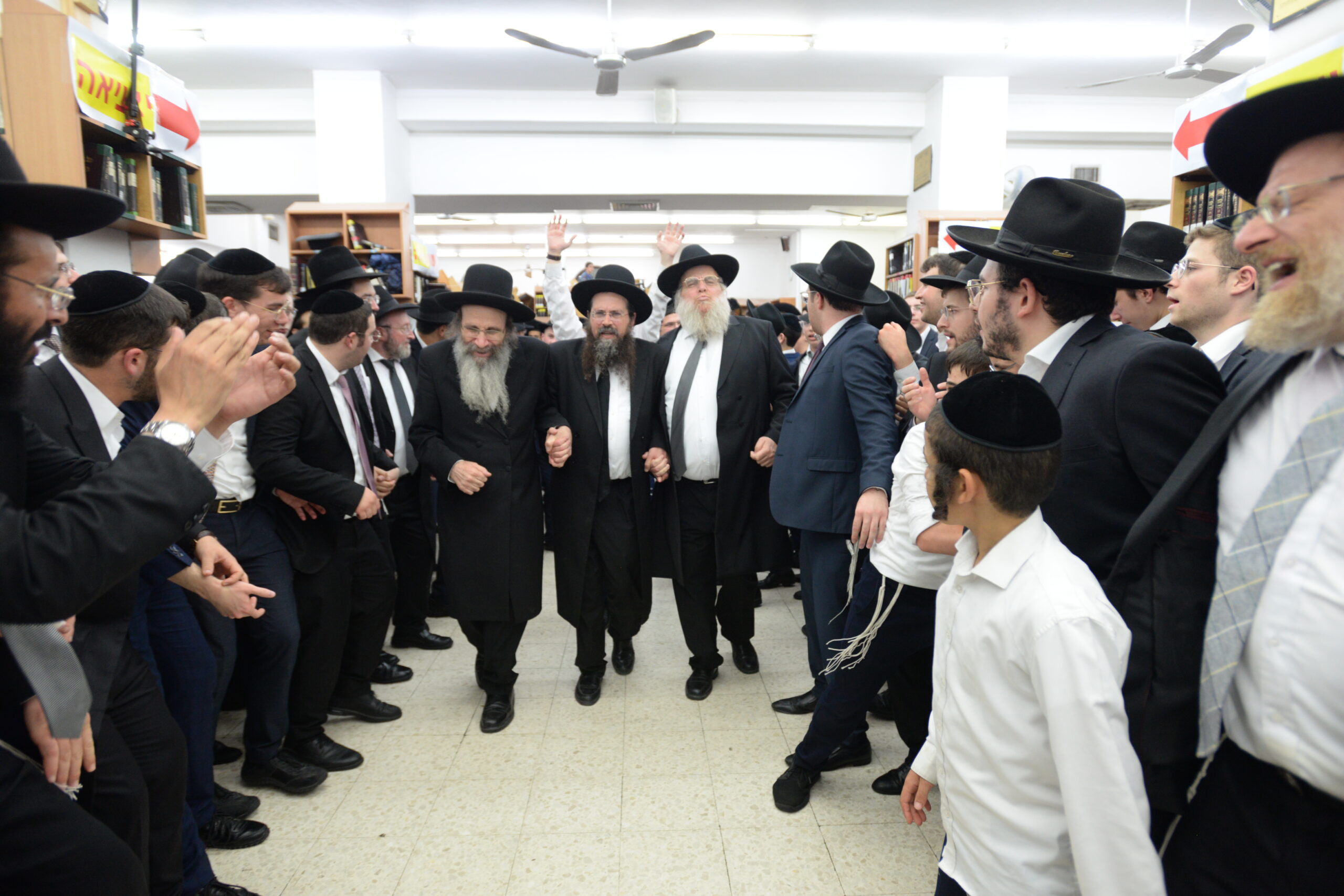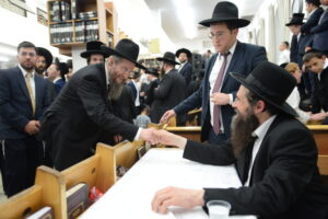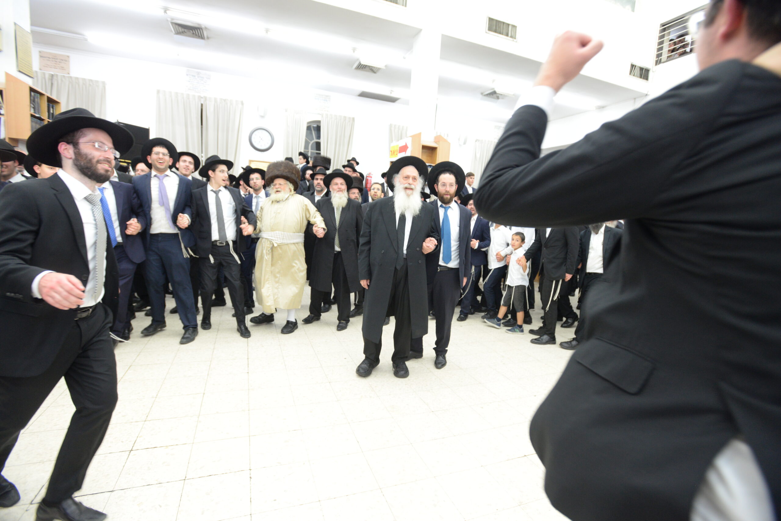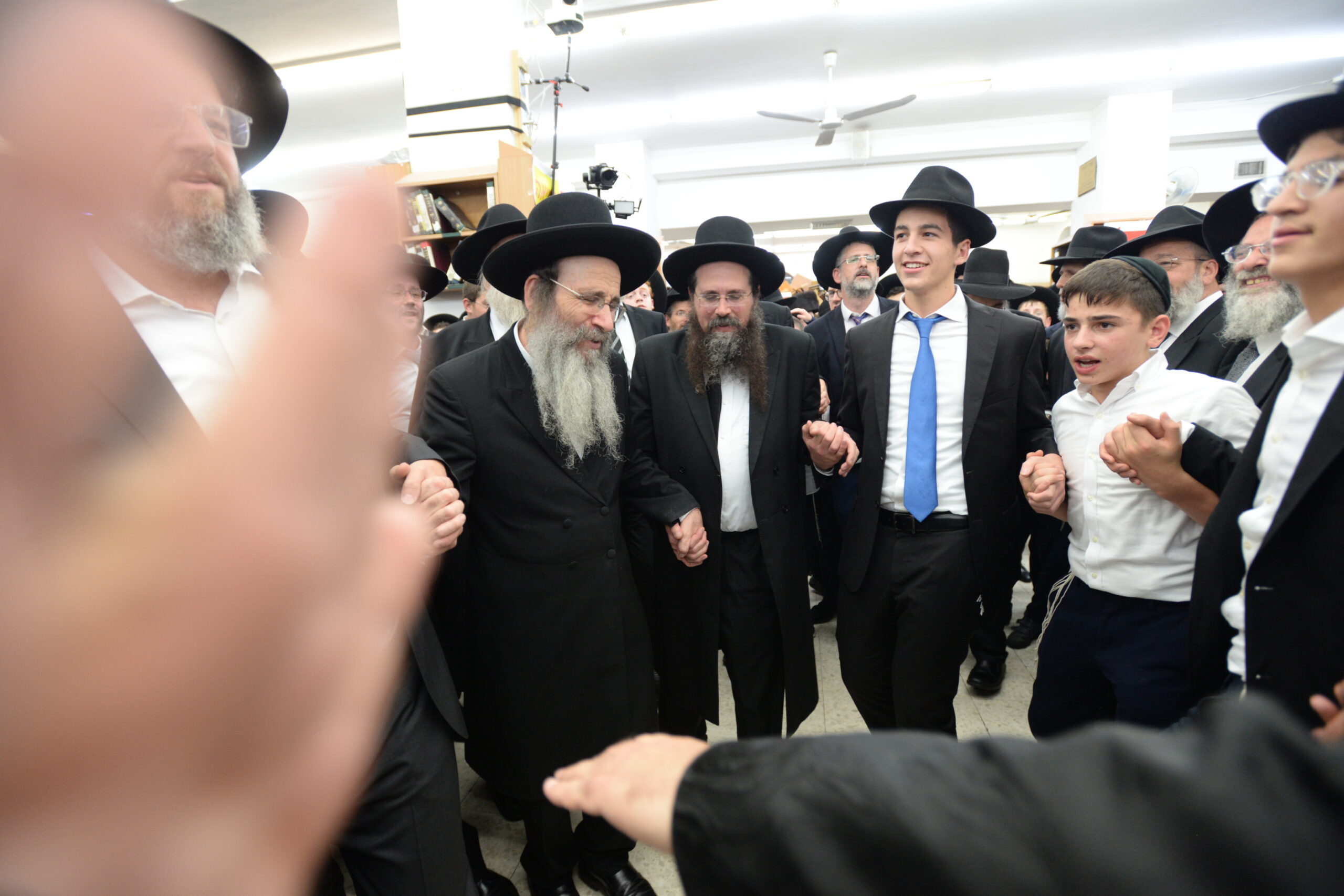 The Yeshiva’s Simchas Beis Hashoeva was held on Thursday, the second night of Chol Hamoed, beginning with music and dancing in the Mercazi Bais Medrash at 9:20. When the Roshei Yeshiva walked in about twenty minutes later, the olam broke out in tremendous excitement as they danced with their Rabbeim for several hours. Many visiting guests joined as well, taking the opportunity to wish the Roshei Yeshiva a Gut Yom Tov. All in all, there were around 9,000 people coming by throughout the night. The highlight of the event, as usual, was the kumzitz with inspiring songs of Yamim Noraim and Geulah at the end of the night, culminating in Leshana Haba’ah Bi’Yerushalayim.