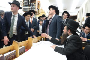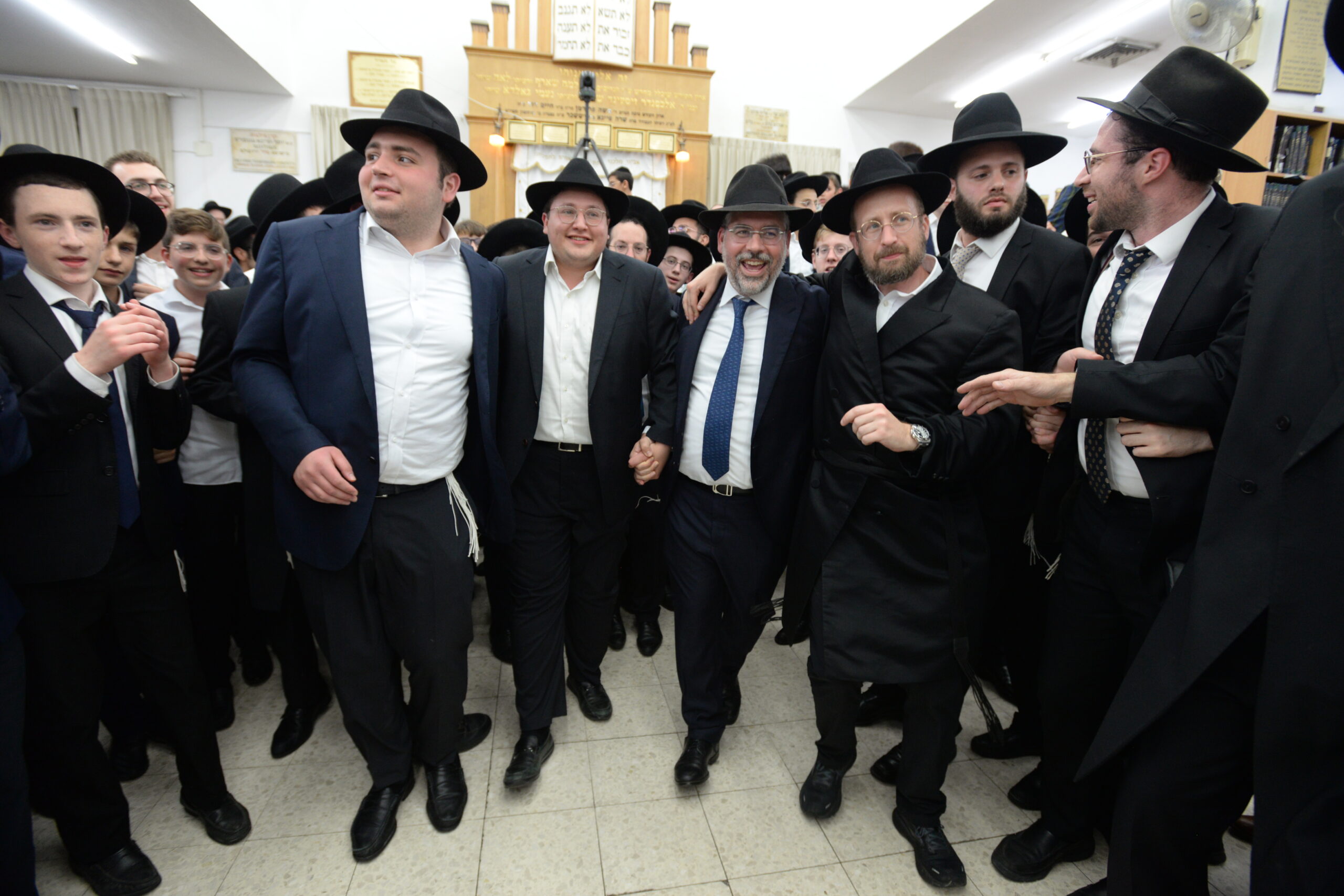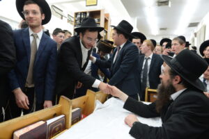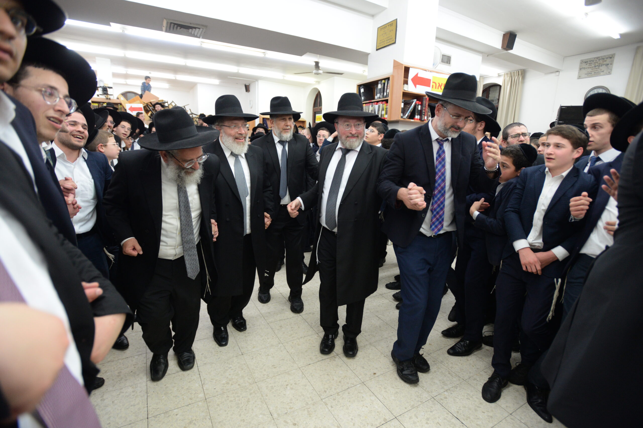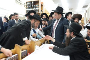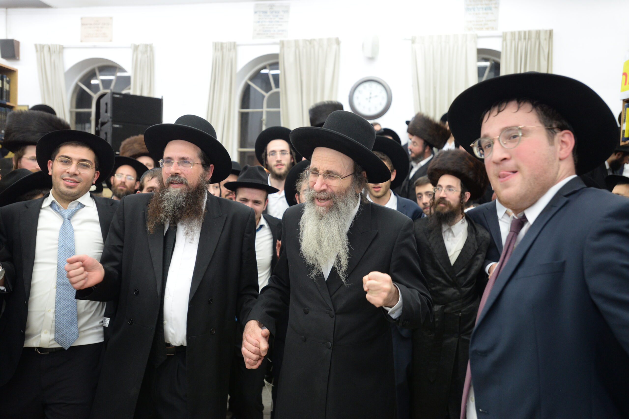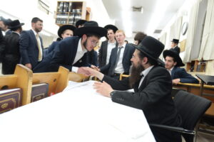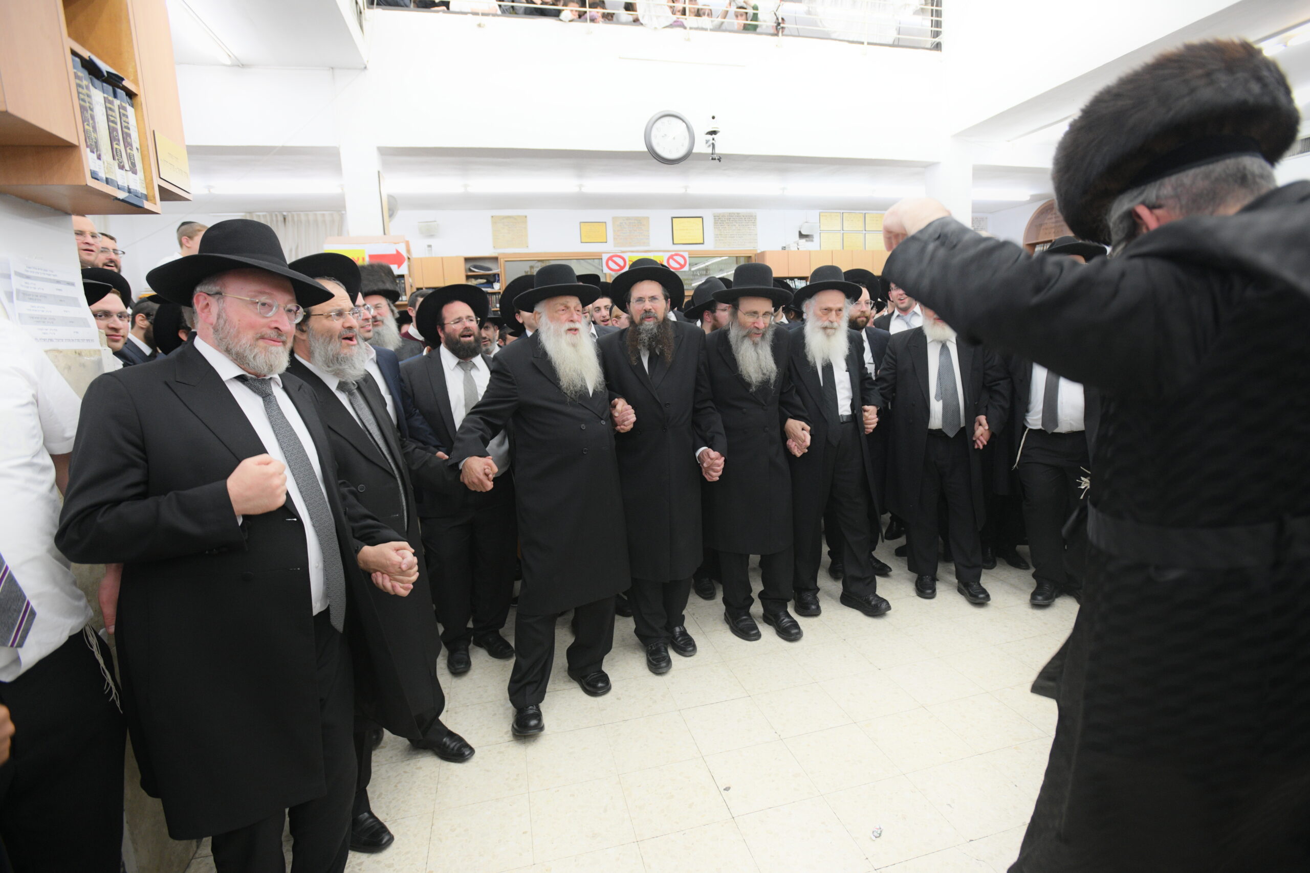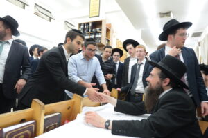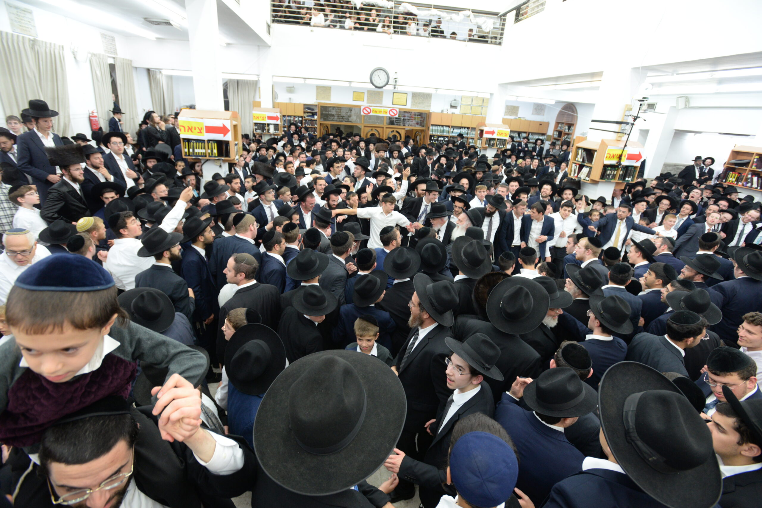 The Yeshiva’s Simchas Beis Hashoeva was held on Thursday, the second night of Chol Hamoed, beginning with music and dancing in the Mercazi Bais Medrash at 9:20. When the Roshei Yeshiva walked in about twenty minutes later, the olam broke out in tremendous excitement as they danced with their Rabbeim for several hours. Many visiting guests joined as well, taking the opportunity to wish the Roshei Yeshiva a Gut Yom Tov. All in all, there were around 9,000 people coming by throughout the night. The highlight of the event, as usual, was the kumzitz with inspiring songs of Yamim Noraim and Geulah at the end of the night, culminating in Leshana Haba’ah Bi’Yerushalayim.