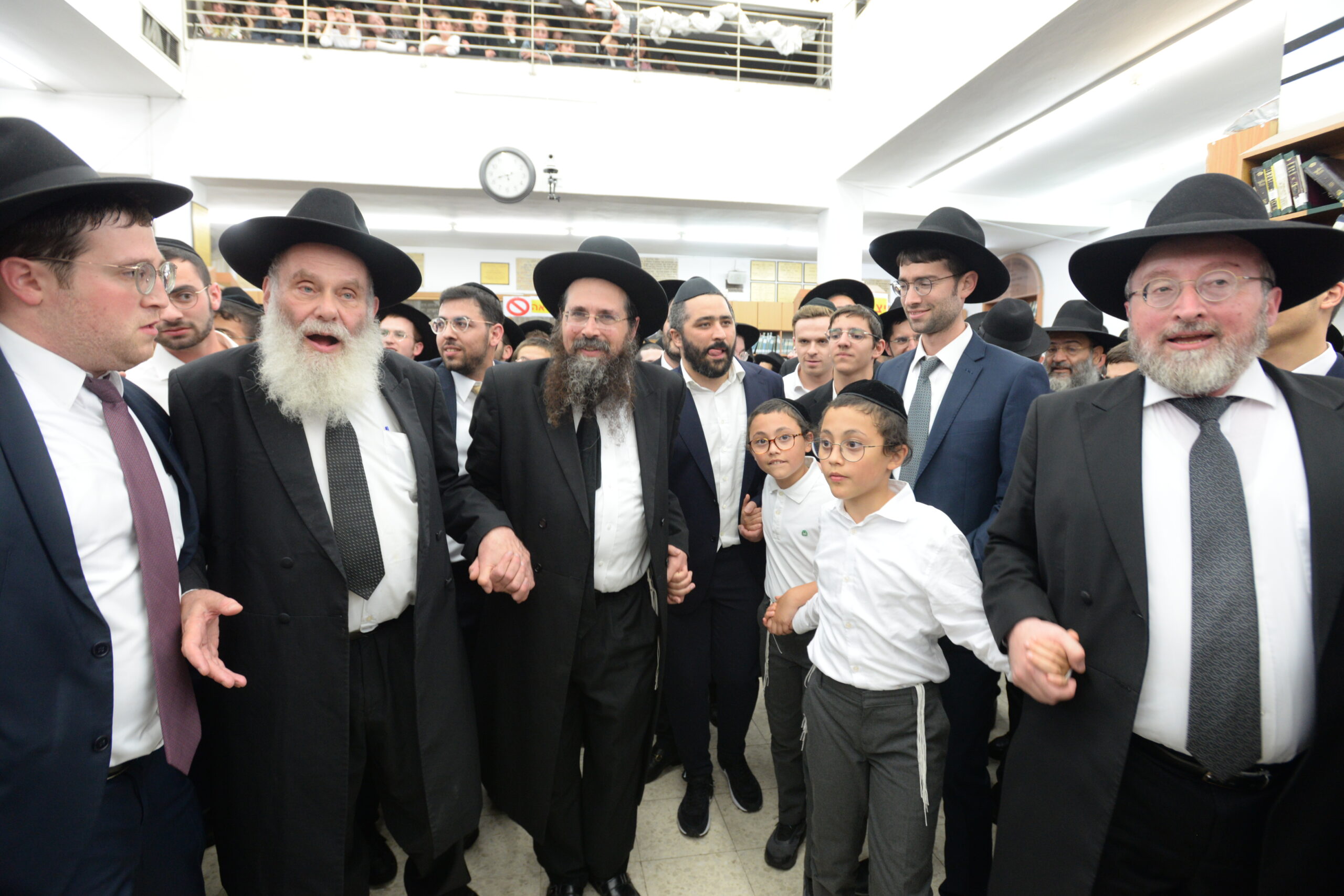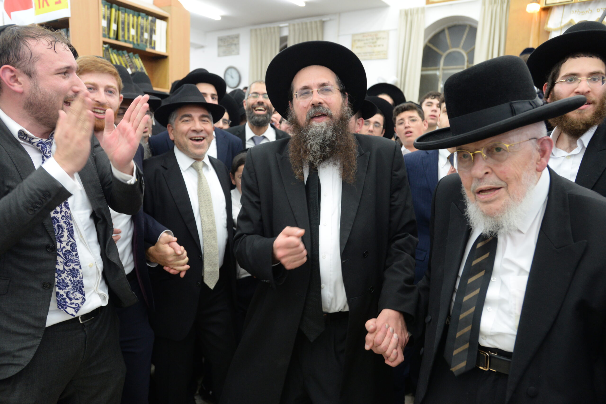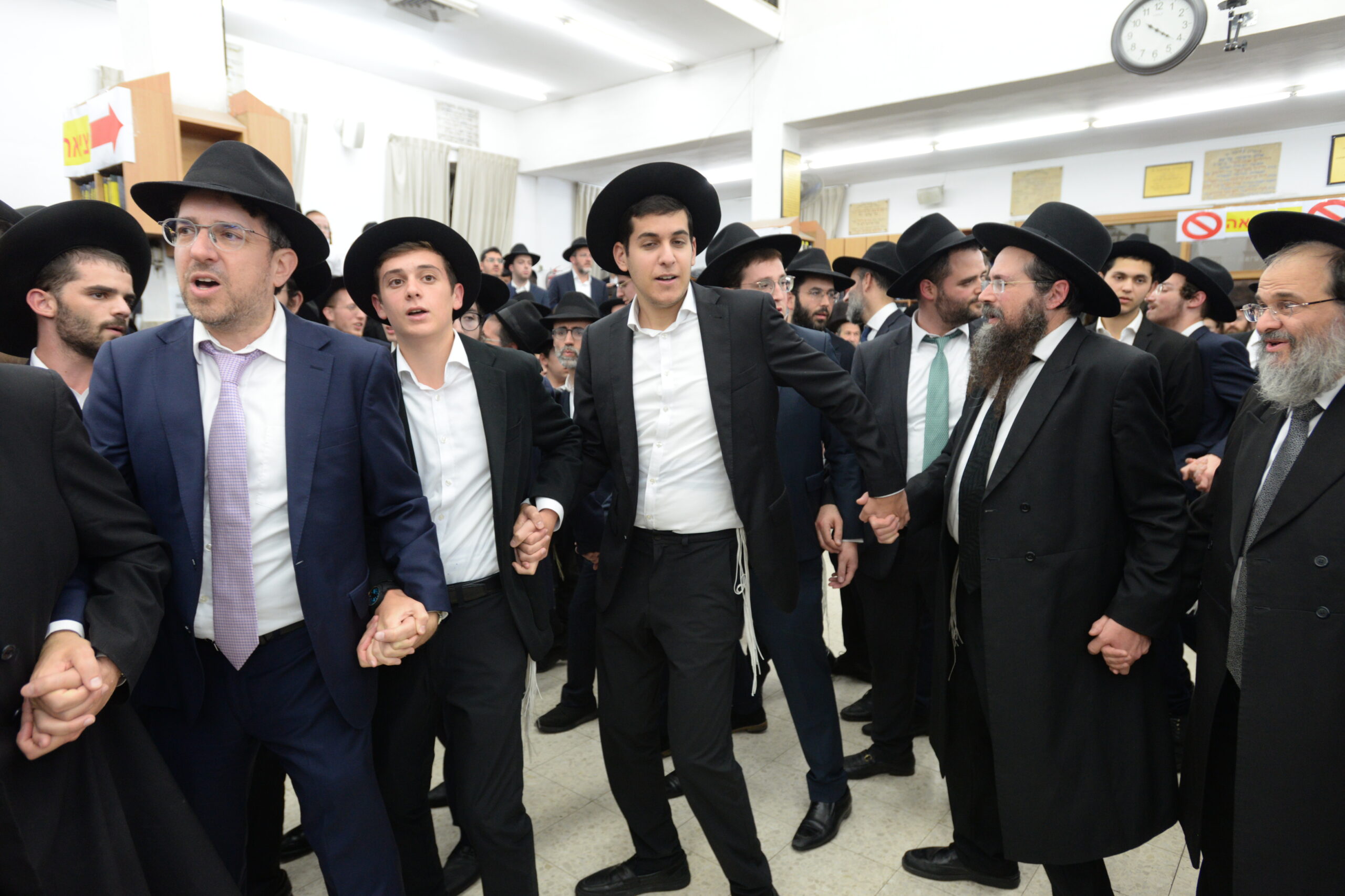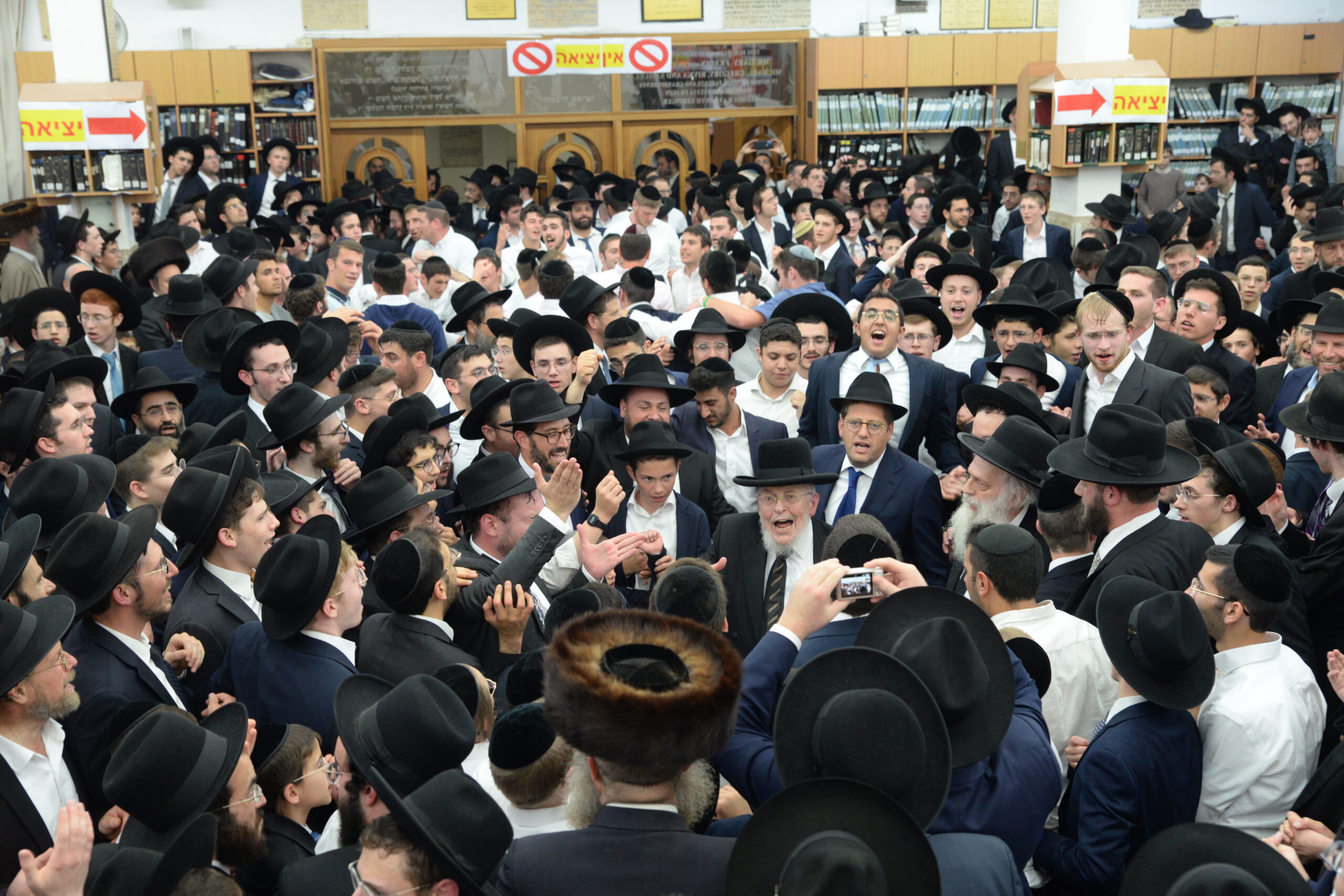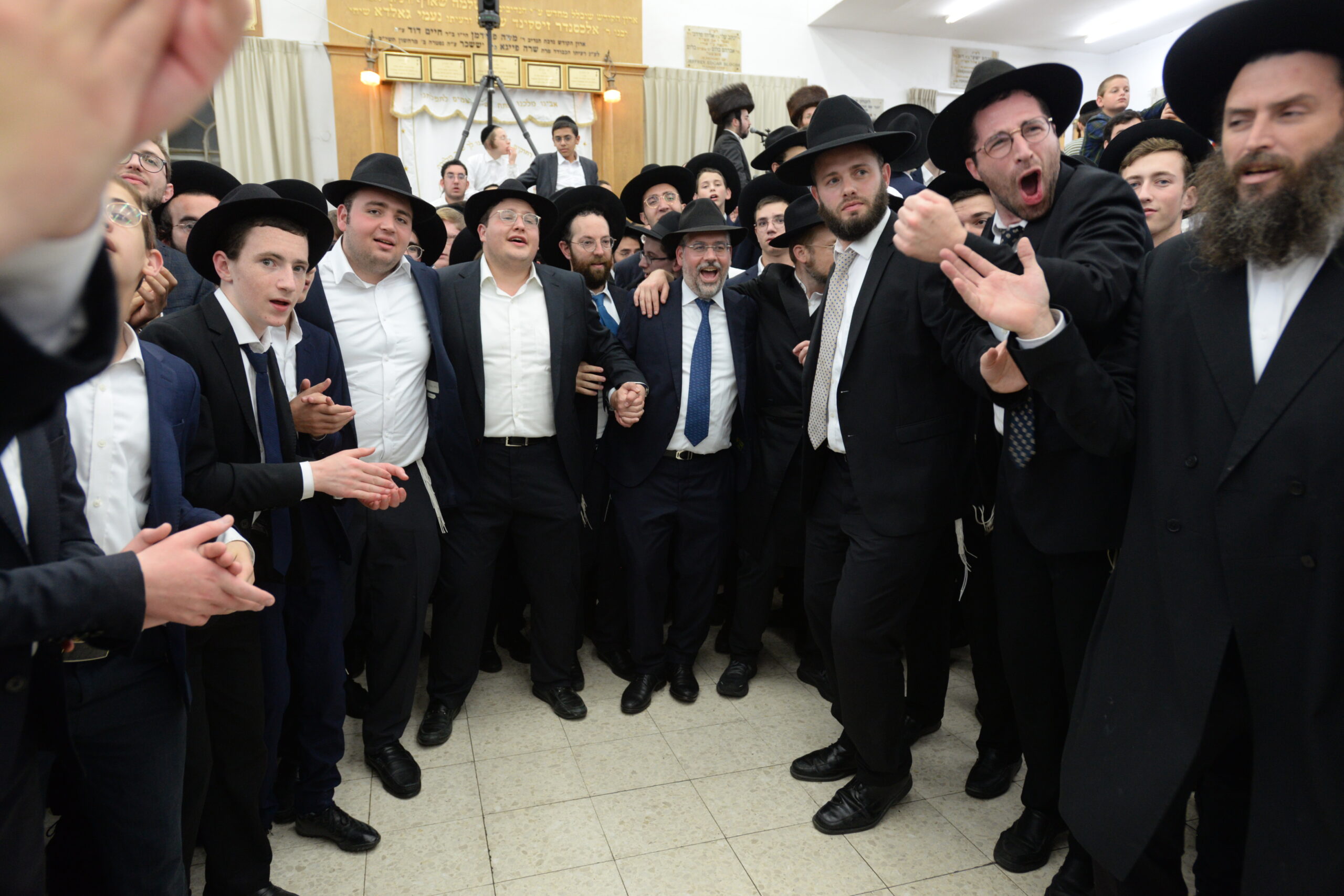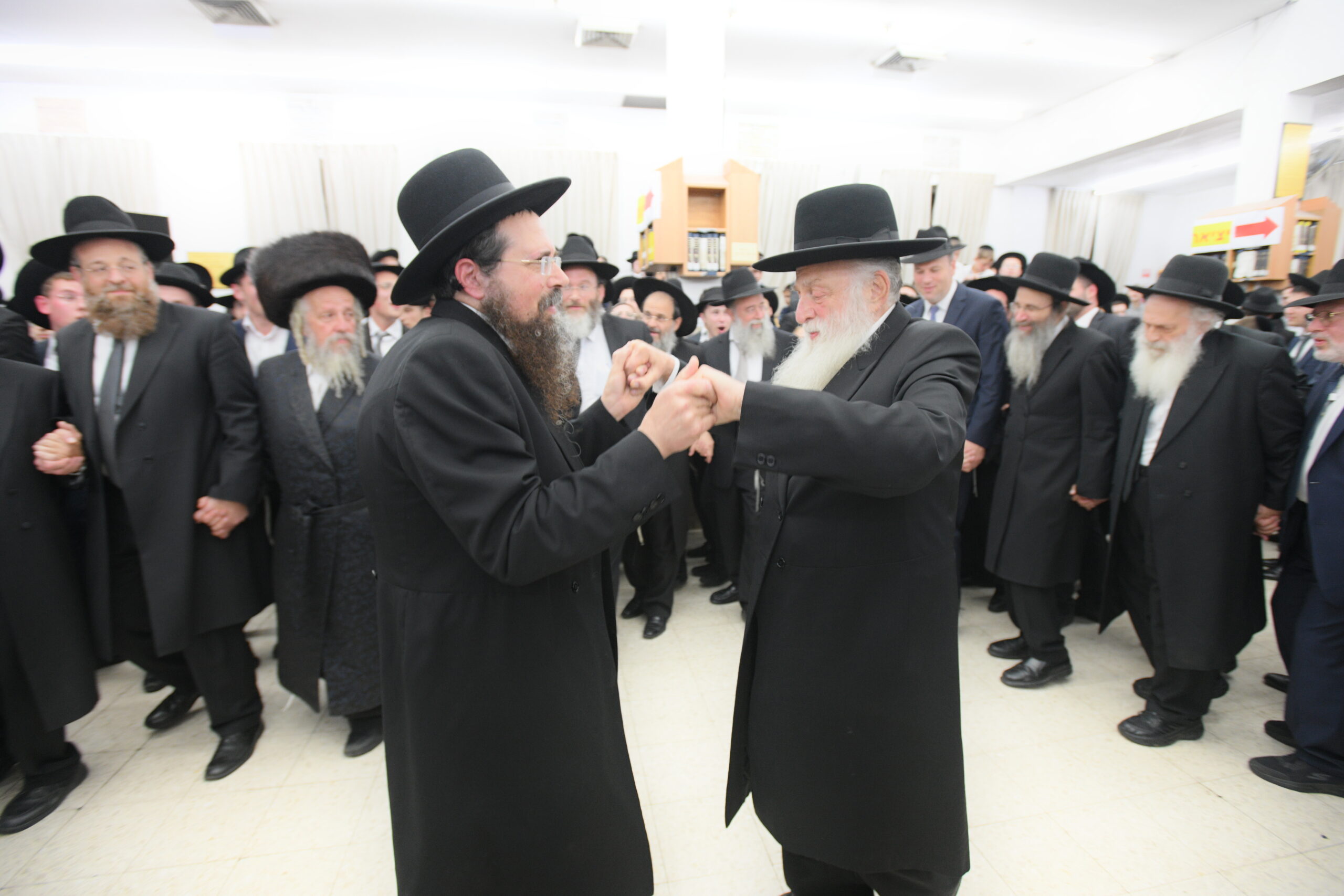The Yeshiva’s Simchas Beis Hashoeva was held on Thursday, the second night of Chol Hamoed, beginning with music and dancing in the Mercazi Bais Medrash at 9:20. When the Roshei Yeshiva walked in about twenty minutes later, the olam broke out in tremendous excitement as they danced with their Rabbeim for several hours. Many visiting guests joined as well, taking the opportunity to wish the Roshei Yeshiva a Gut Yom Tov. All in all, there were around 9,000 people coming by throughout the night. The highlight of the event, as usual, was the kumzitz with inspiring songs of Yamim Noraim and Geulah at the end of the night, culminating in Leshana Haba’ah Bi’Yerushalayim.