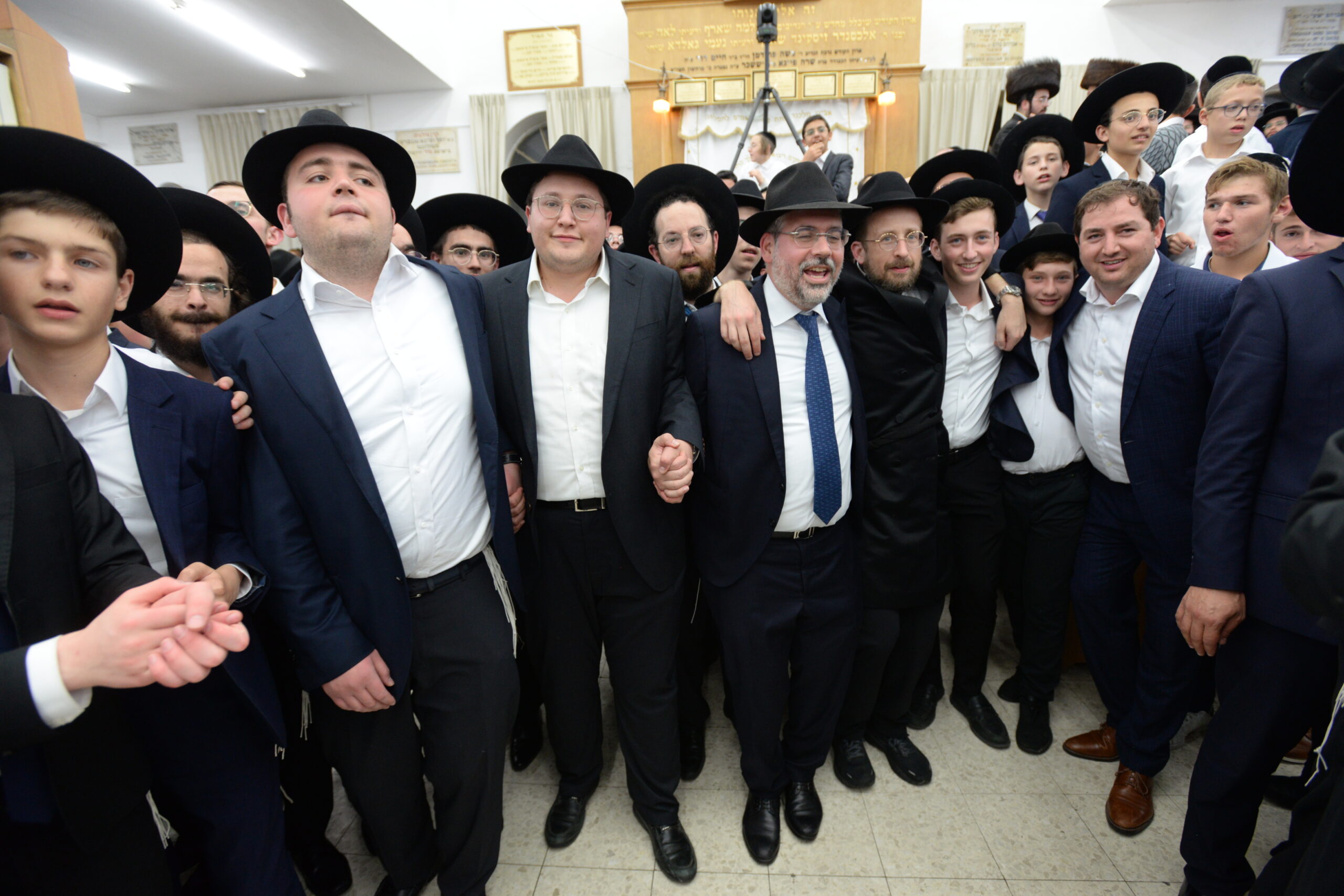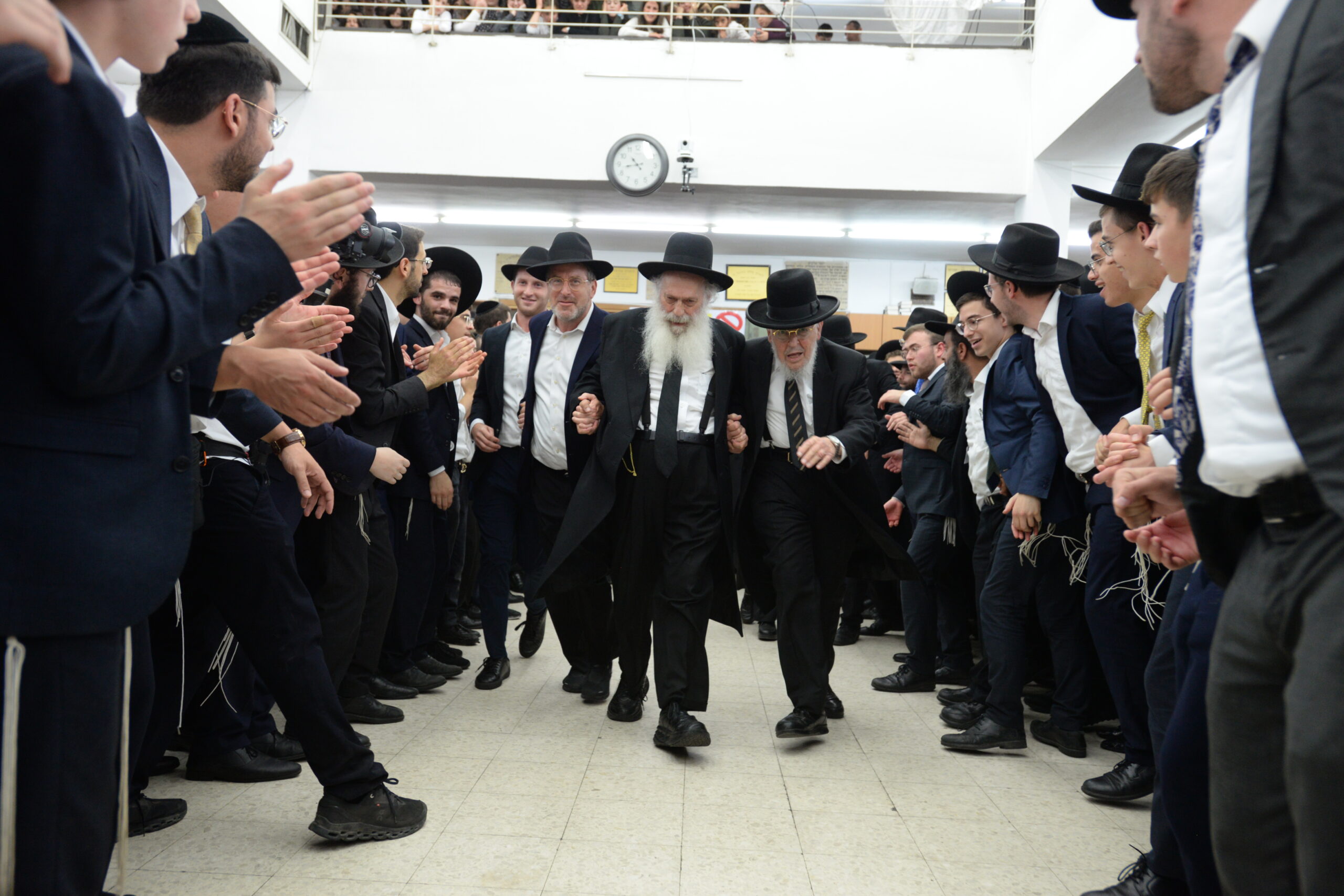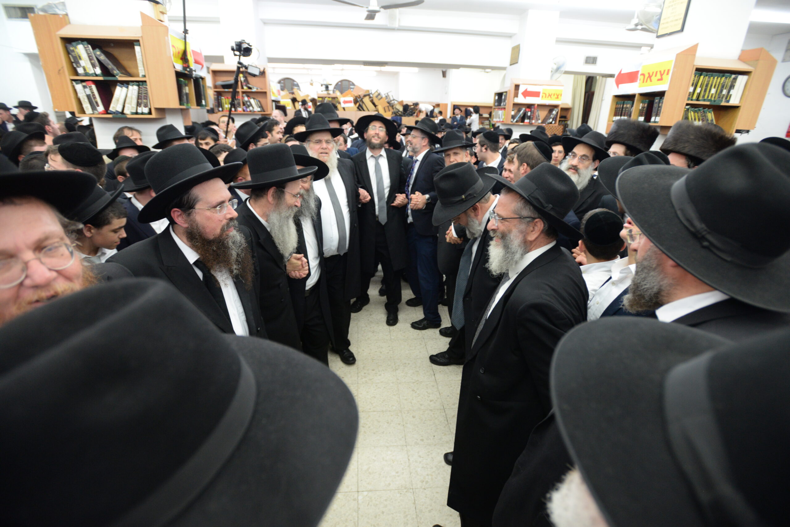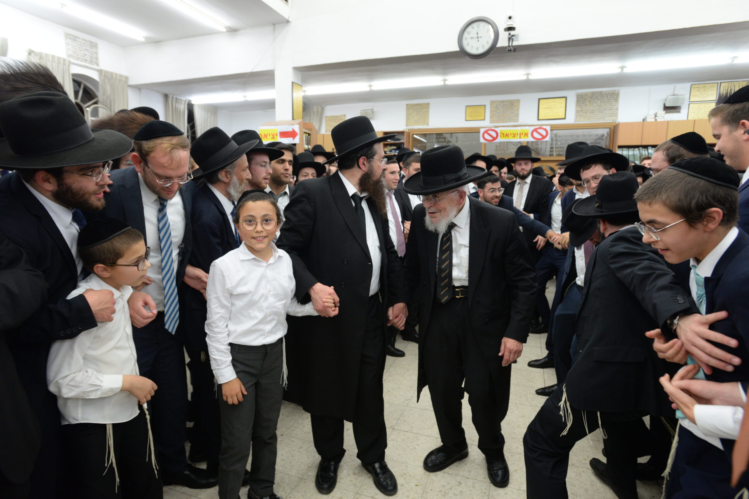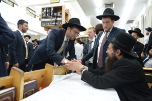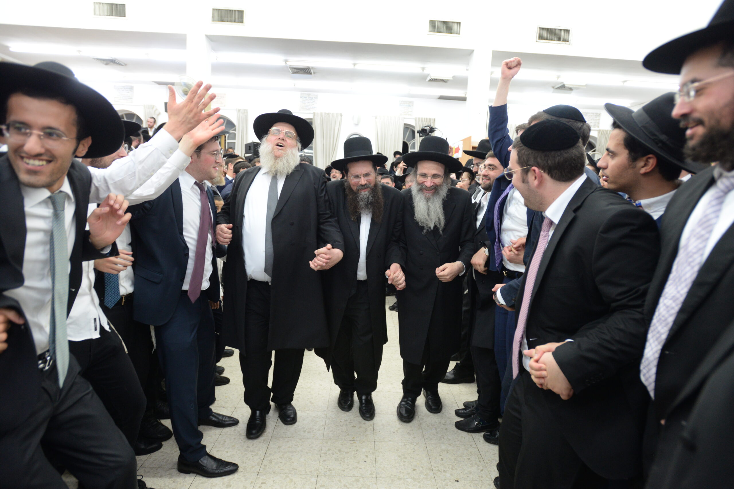 The Yeshiva’s Simchas Beis Hashoeva was held on Thursday, the second night of Chol Hamoed, beginning with music and dancing in the Mercazi Bais Medrash at 9:20. When the Roshei Yeshiva walked in about twenty minutes later, the olam broke out in tremendous excitement as they danced with their Rabbeim for several hours. Many visiting guests joined as well, taking the opportunity to wish the Roshei Yeshiva a Gut Yom Tov. All in all, there were around 9,000 people coming by throughout the night. The highlight of the event, as usual, was the kumzitz with inspiring songs of Yamim Noraim and Geulah at the end of the night, culminating in Leshana Haba’ah Bi’Yerushalayim.