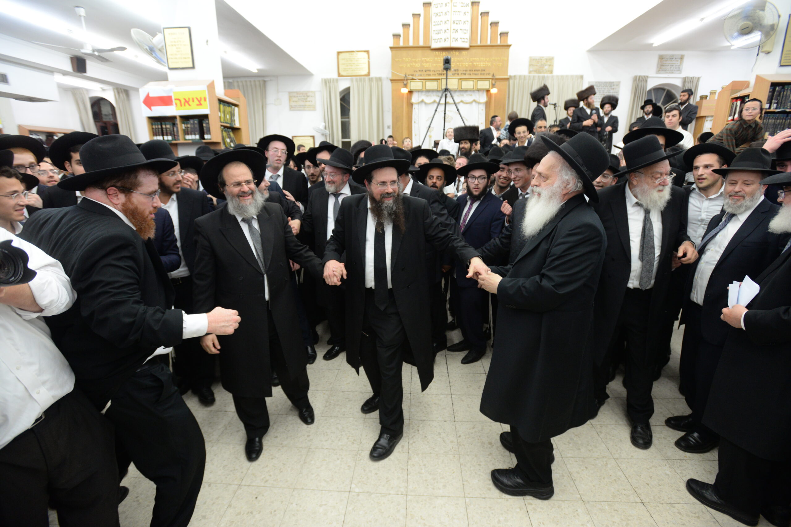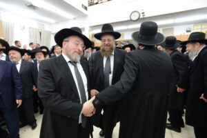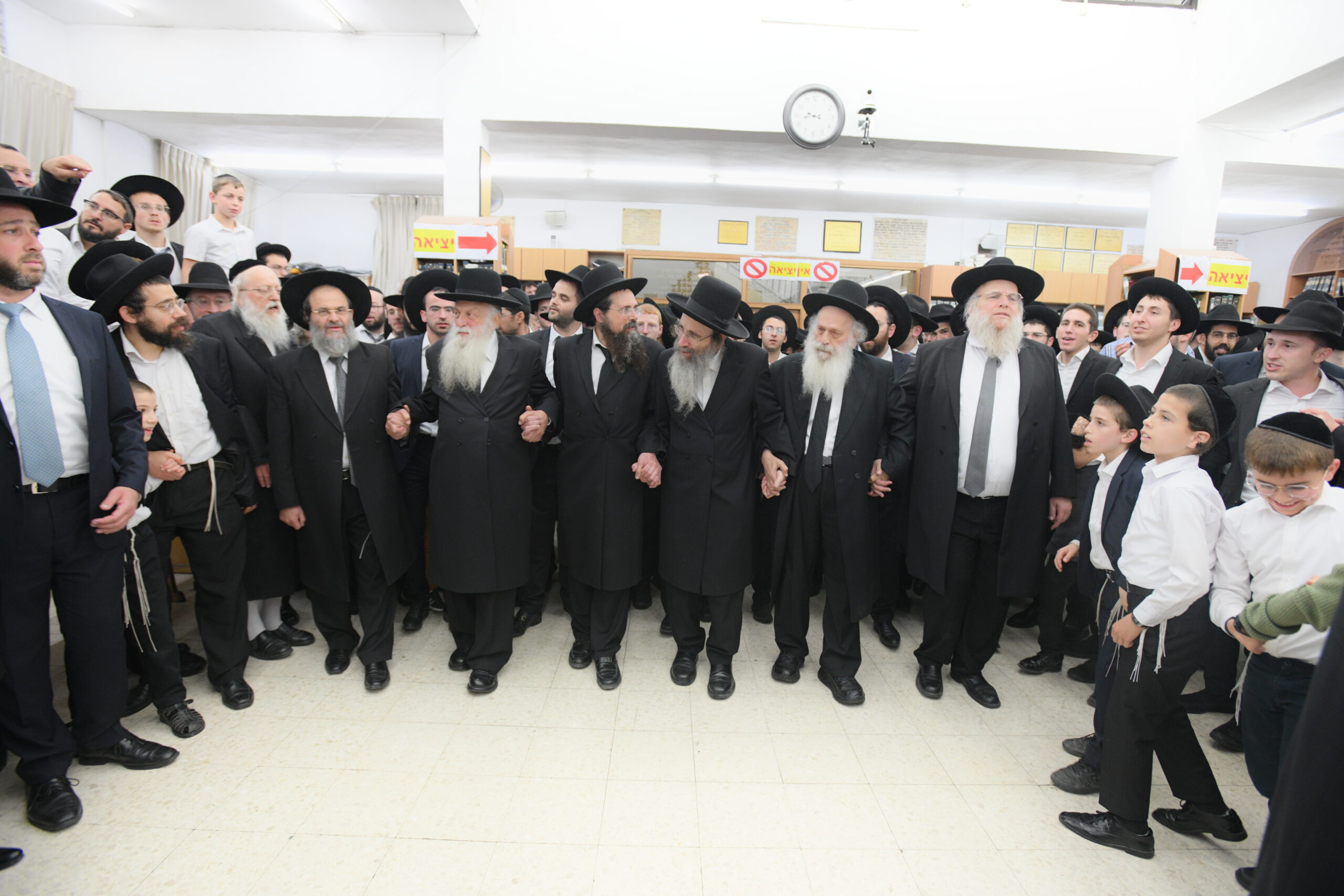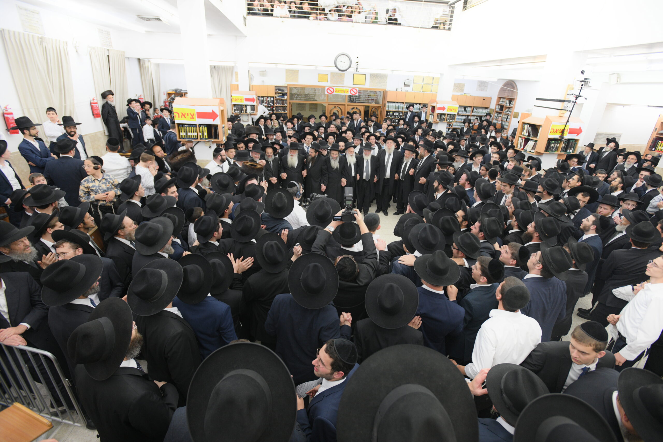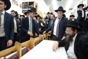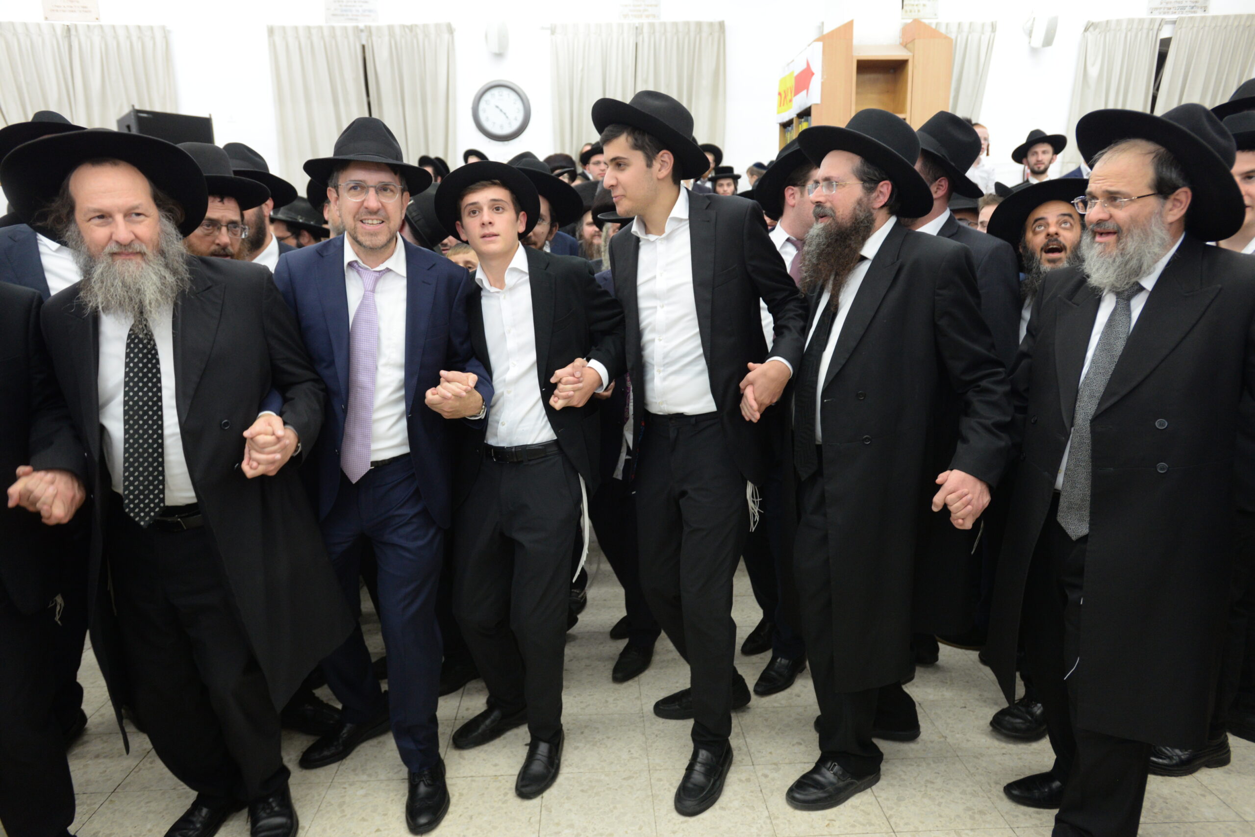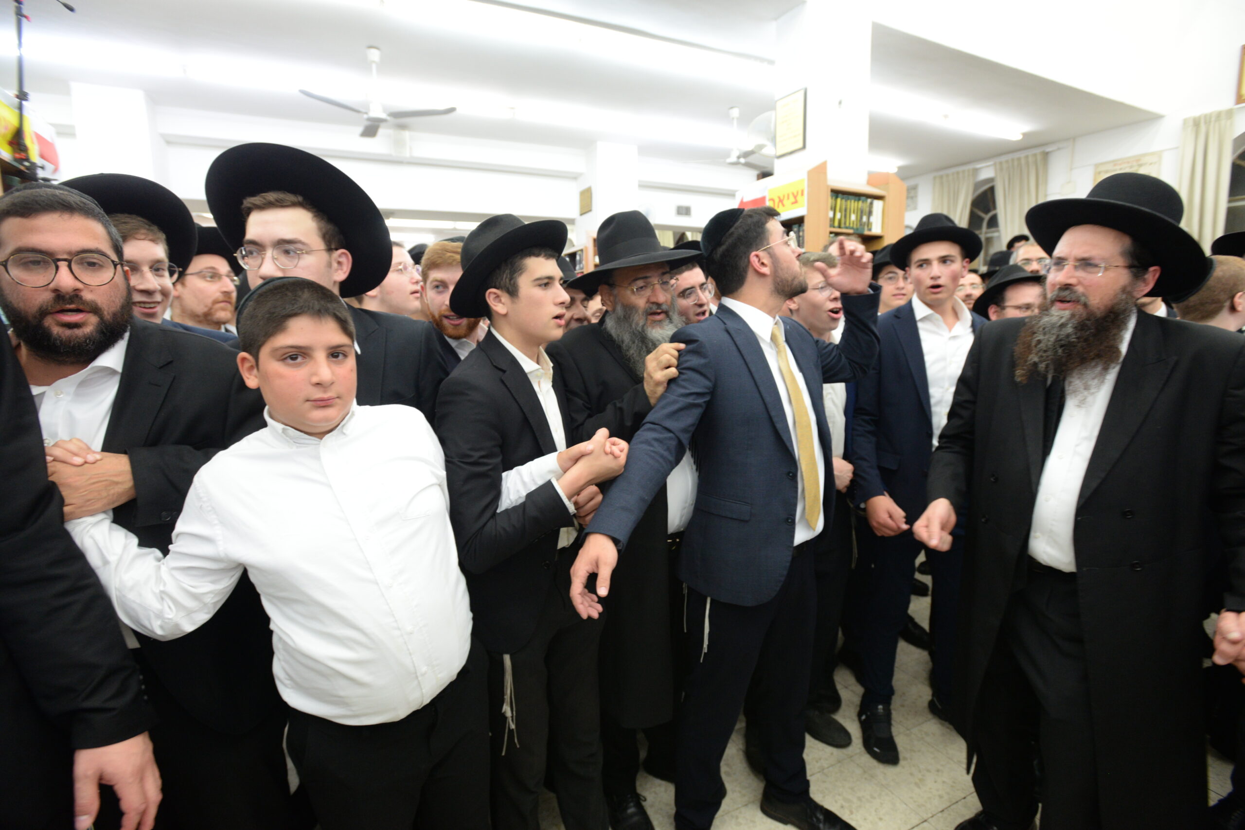 The Yeshiva’s Simchas Beis Hashoeva was held on Thursday, the second night of Chol Hamoed, beginning with music and dancing in the Mercazi Bais Medrash at 9:20. When the Roshei Yeshiva walked in about twenty minutes later, the olam broke out in tremendous excitement as they danced with their Rabbeim for several hours. Many visiting guests joined as well, taking the opportunity to wish the Roshei Yeshiva a Gut Yom Tov. All in all, there were around 9,000 people coming by throughout the night. The highlight of the event, as usual, was the kumzitz with inspiring songs of Yamim Noraim and Geulah at the end of the night, culminating in Leshana Haba’ah Bi’Yerushalayim.