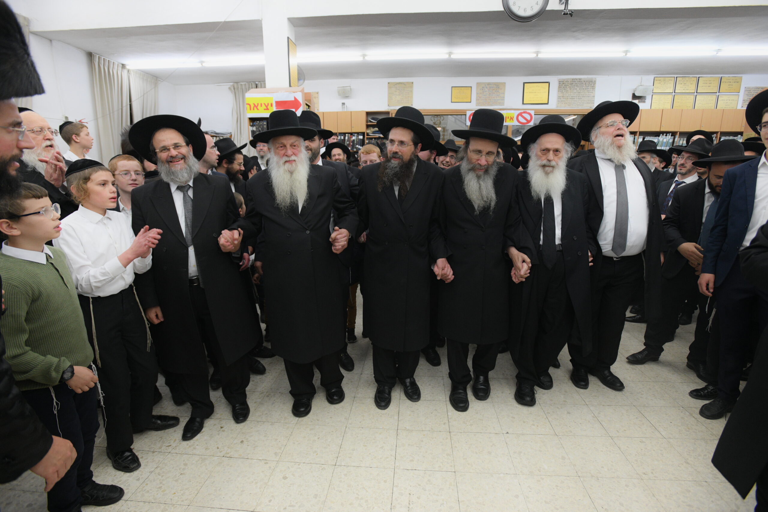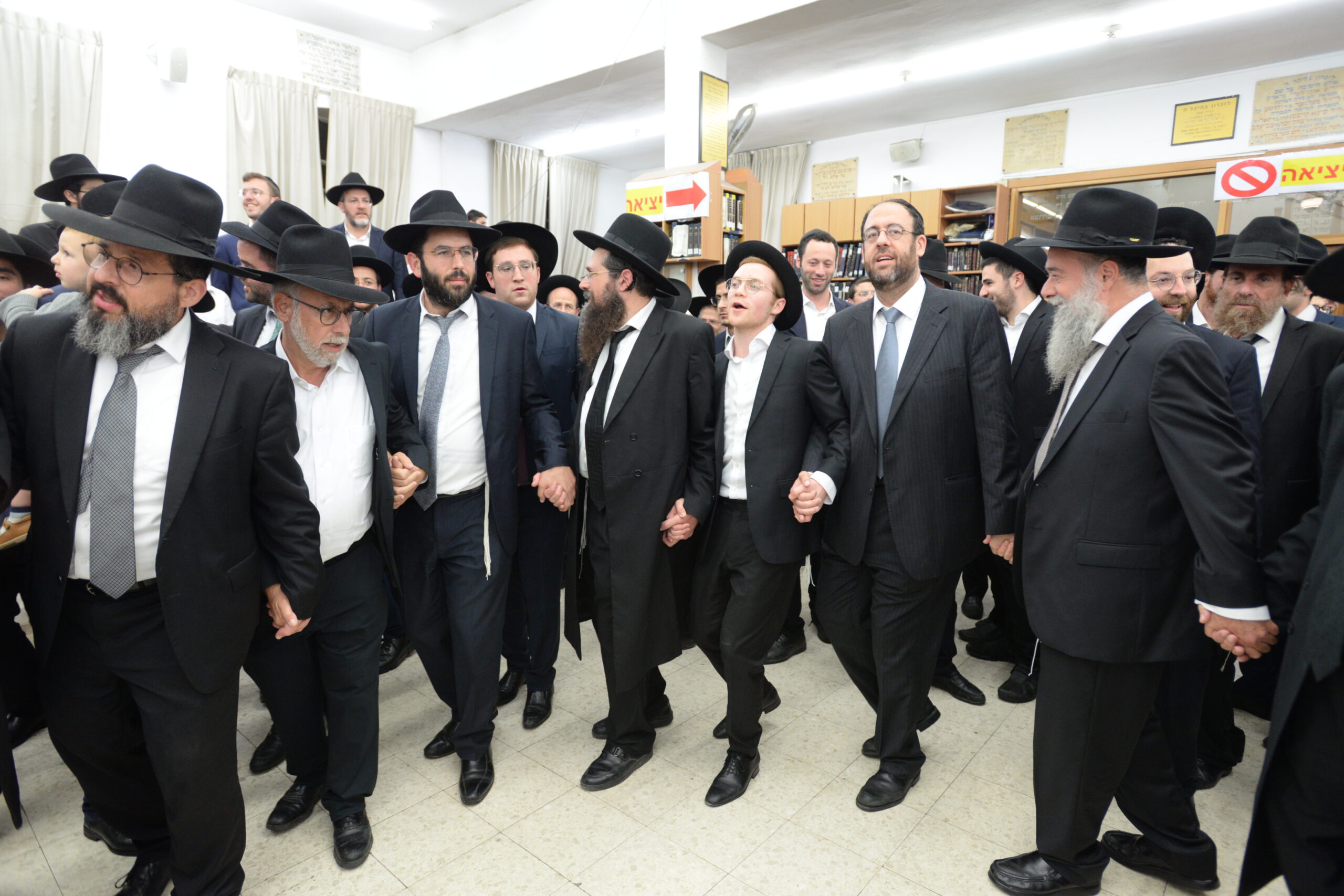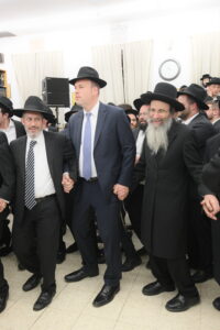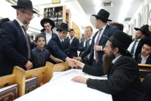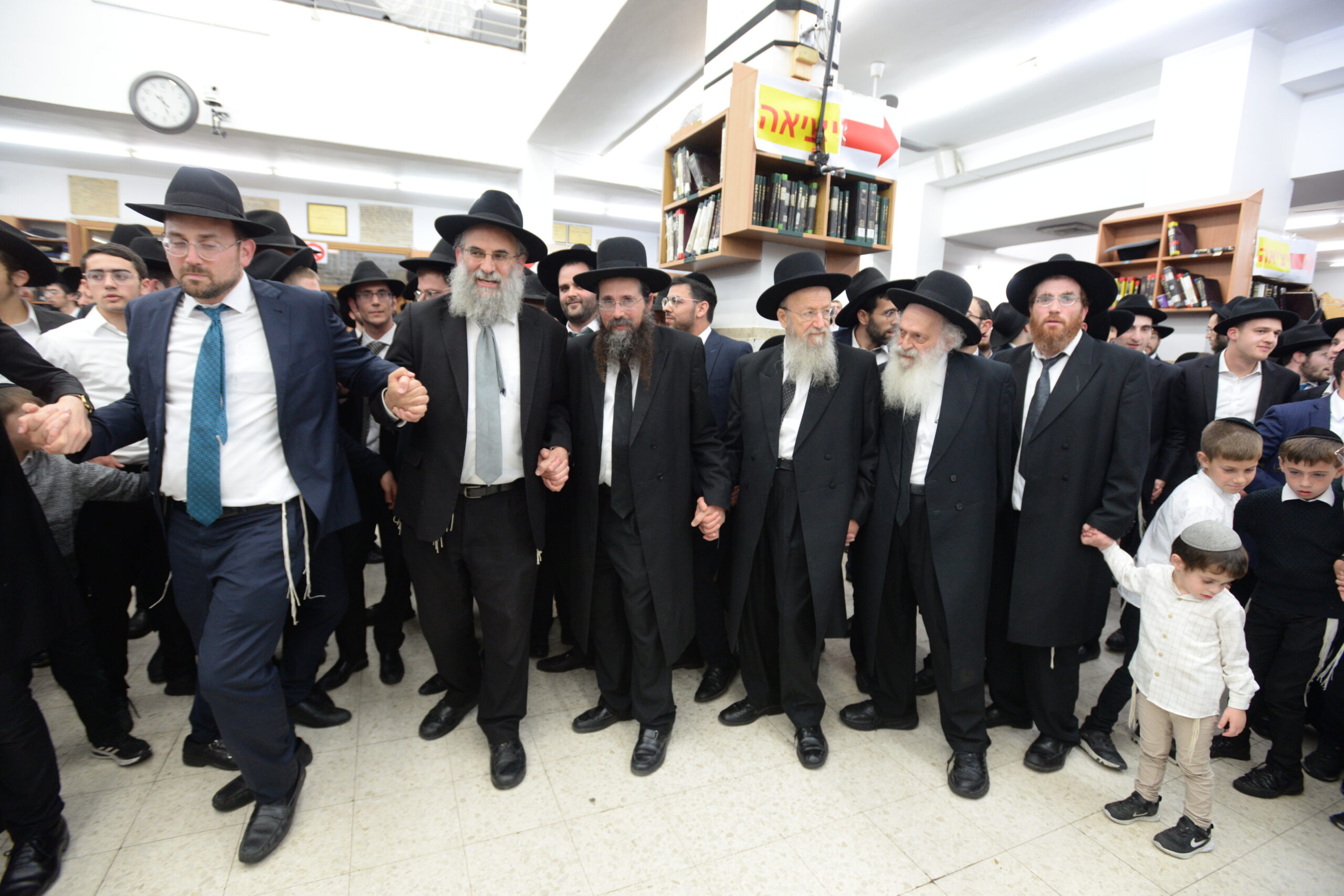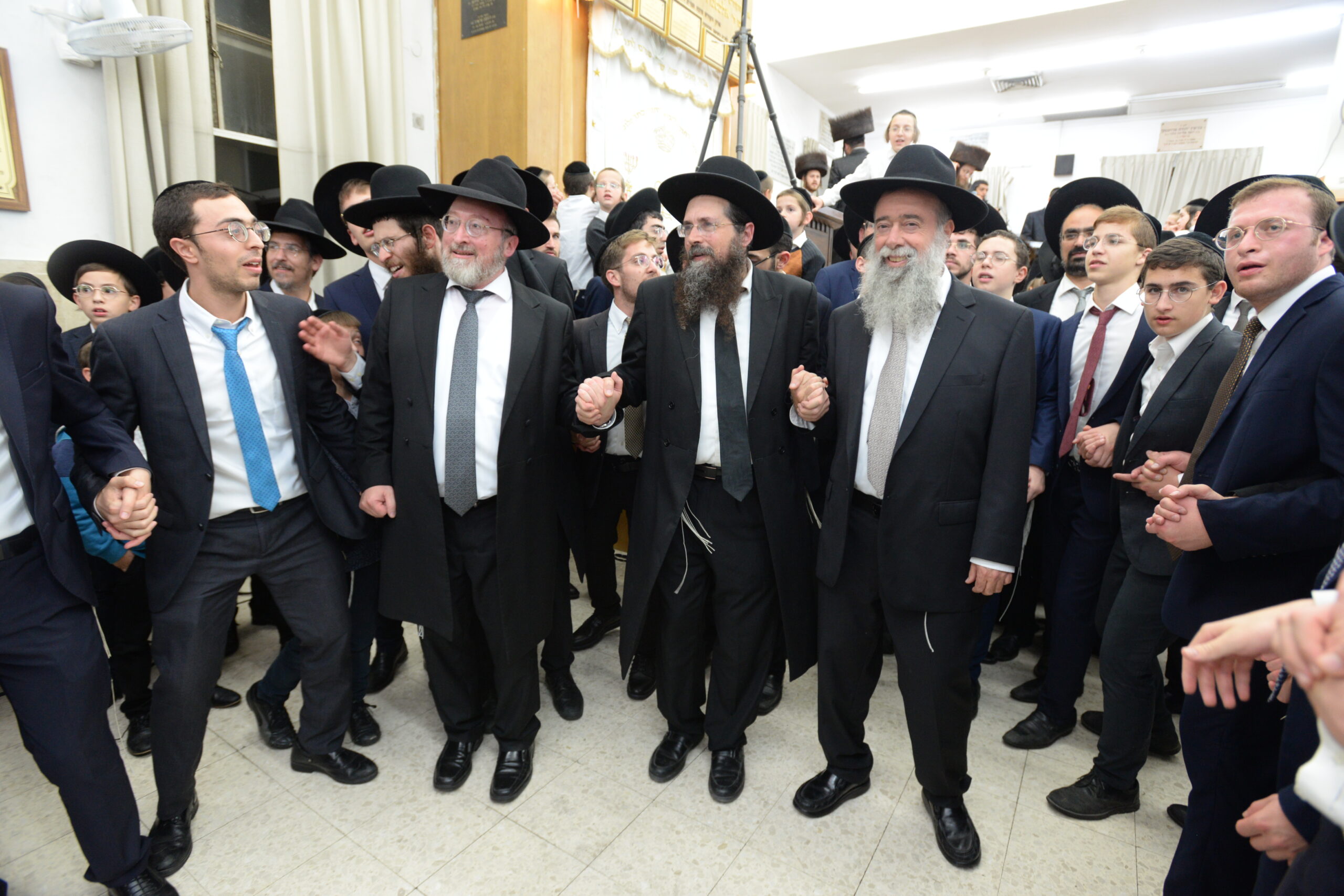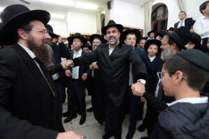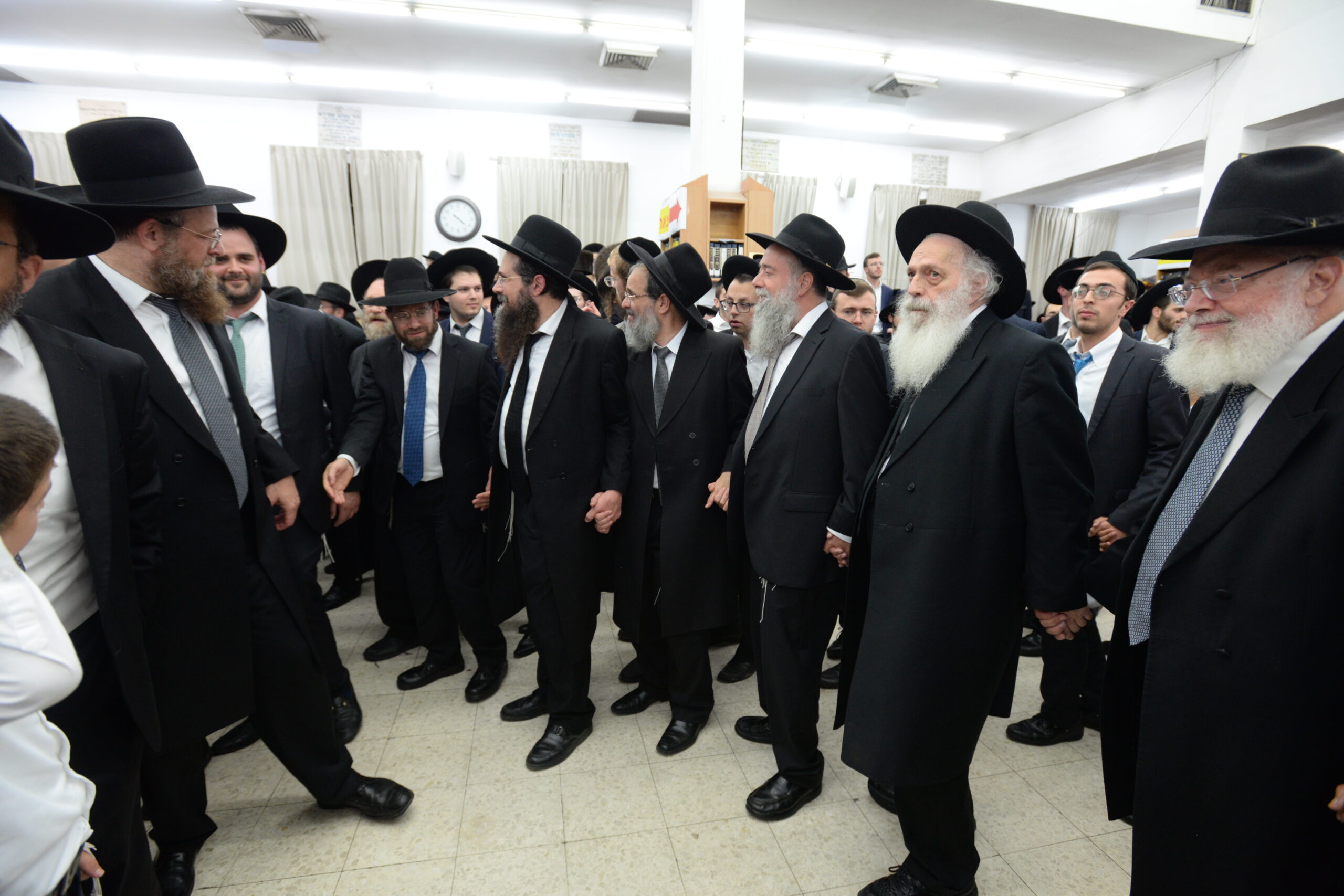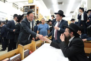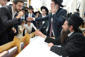 The Yeshiva’s Simchas Beis Hashoeva was held on Thursday, the second night of Chol Hamoed, beginning with music and dancing in the Mercazi Bais Medrash at 9:20. When the Roshei Yeshiva walked in about twenty minutes later, the olam broke out in tremendous excitement as they danced with their Rabbeim for several hours. Many visiting guests joined as well, taking the opportunity to wish the Roshei Yeshiva a Gut Yom Tov. All in all, there were around 9,000 people coming by throughout the night. The highlight of the event, as usual, was the kumzitz with inspiring songs of Yamim Noraim and Geulah at the end of the night, culminating in Leshana Haba’ah Bi’Yerushalayim.