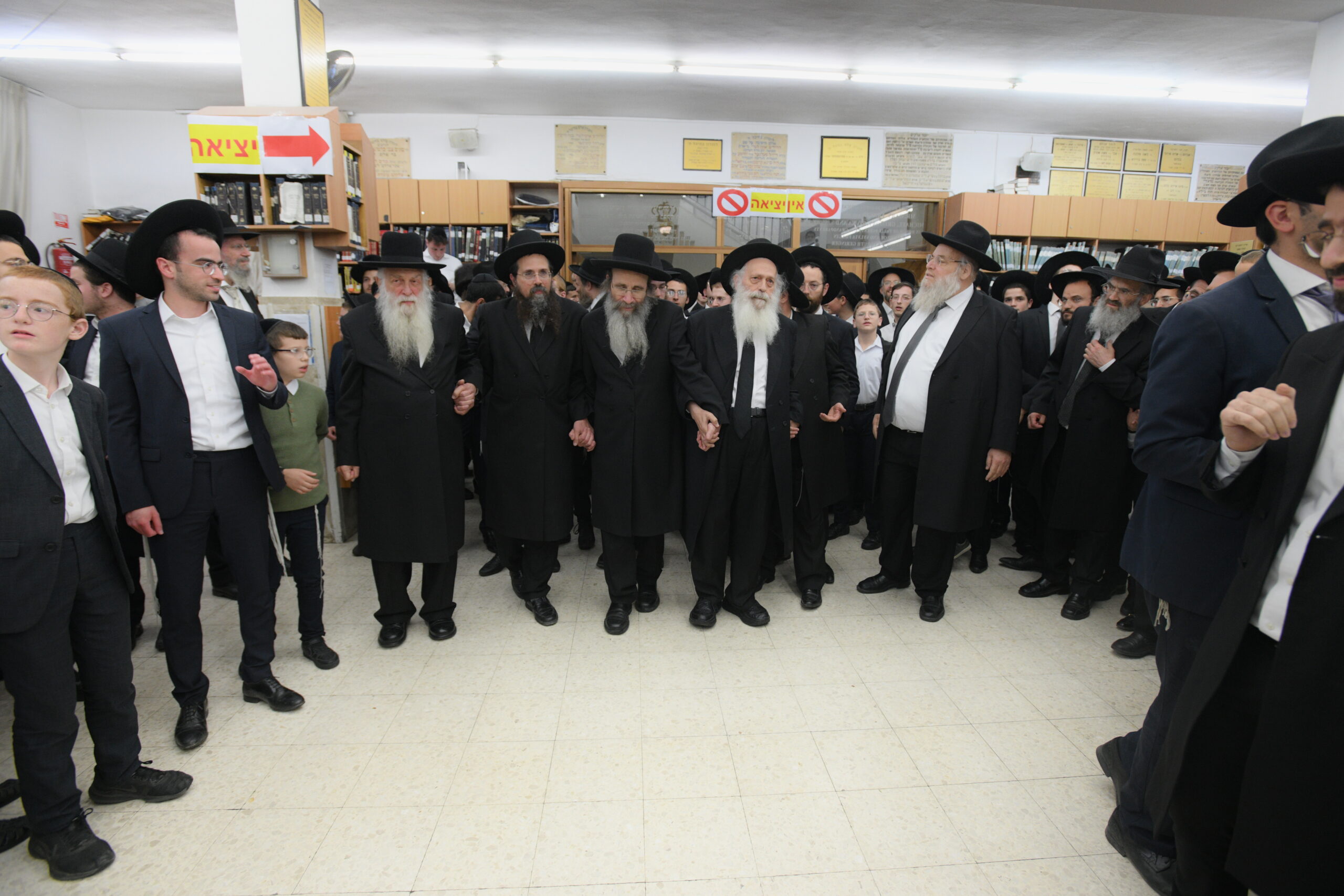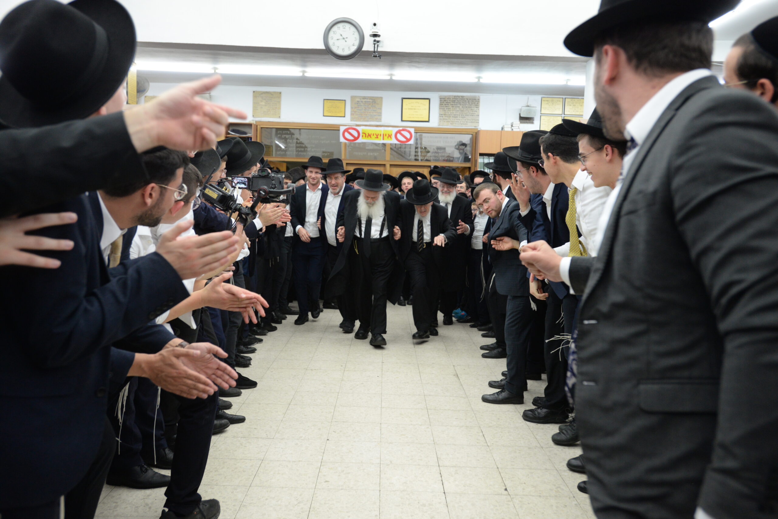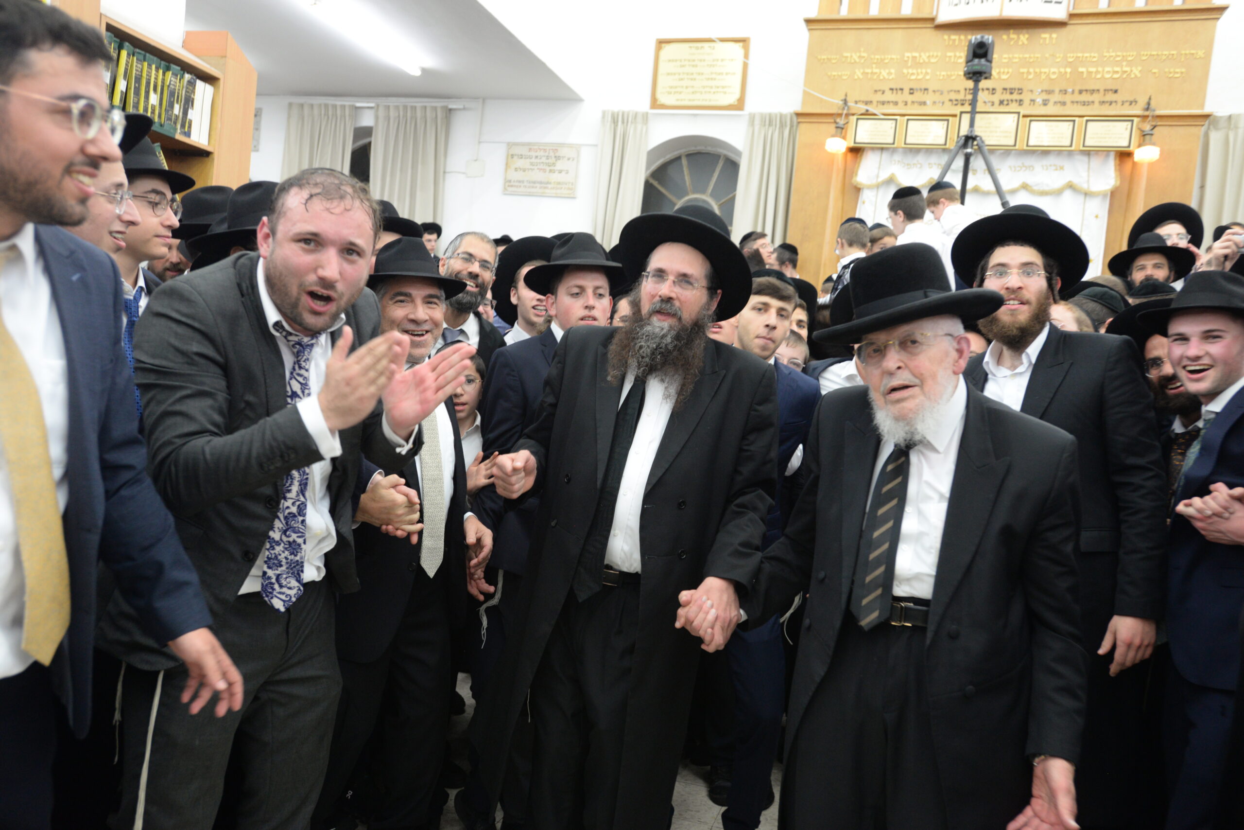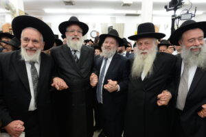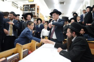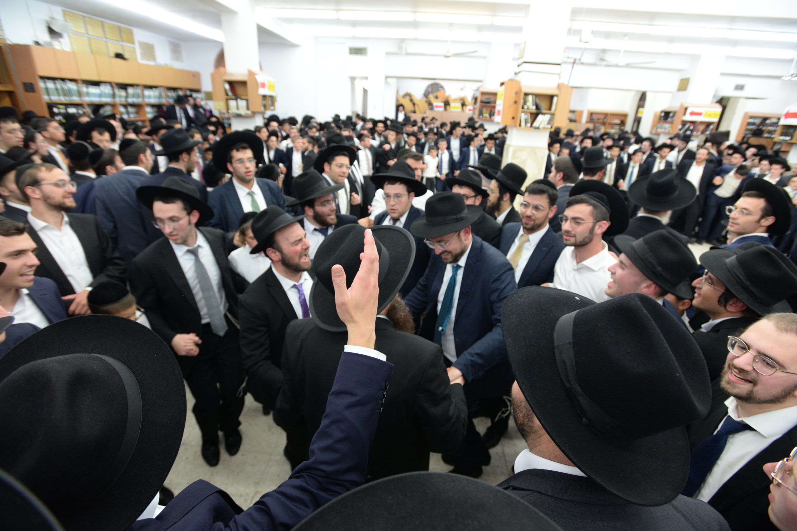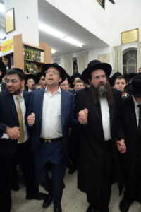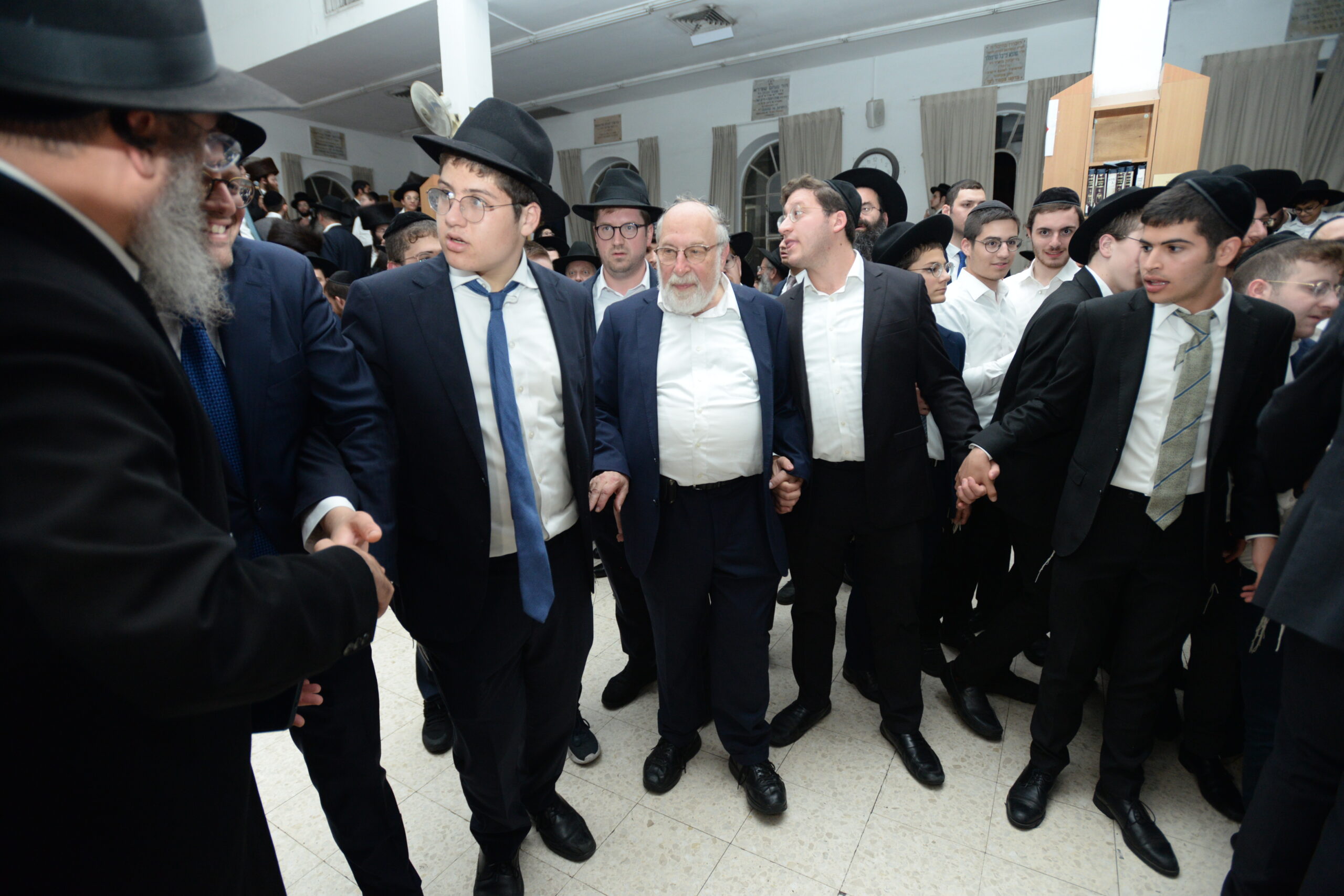 The Yeshiva’s Simchas Beis Hashoeva was held on Thursday, the second night of Chol Hamoed, beginning with music and dancing in the Mercazi Bais Medrash at 9:20. When the Roshei Yeshiva walked in about twenty minutes later, the olam broke out in tremendous excitement as they danced with their Rabbeim for several hours. Many visiting guests joined as well, taking the opportunity to wish the Roshei Yeshiva a Gut Yom Tov. All in all, there were around 9,000 people coming by throughout the night. The highlight of the event, as usual, was the kumzitz with inspiring songs of Yamim Noraim and Geulah at the end of the night, culminating in Leshana Haba’ah Bi’Yerushalayim.