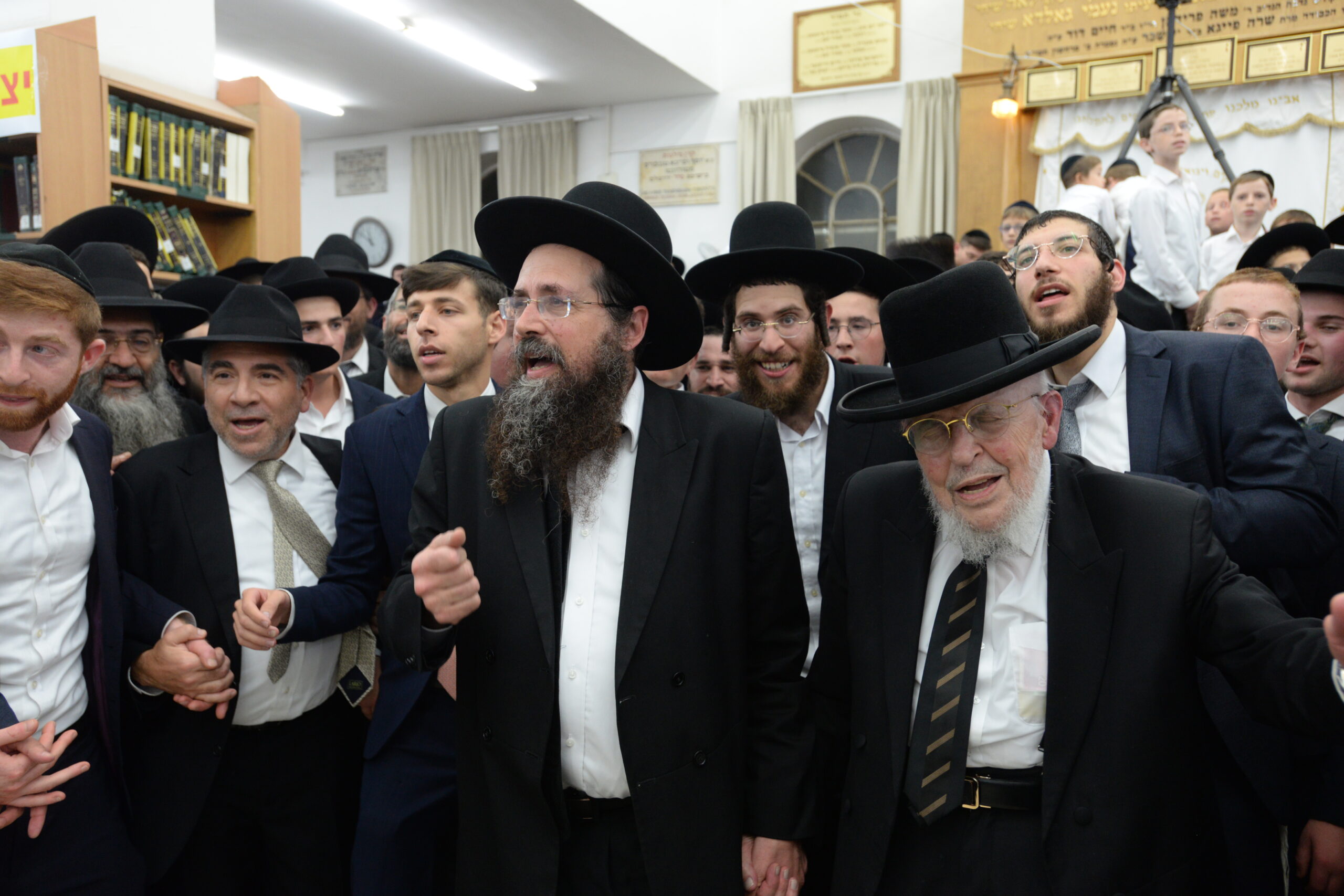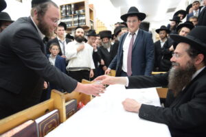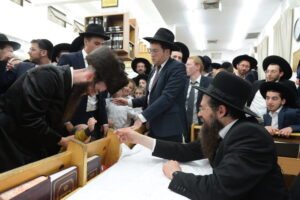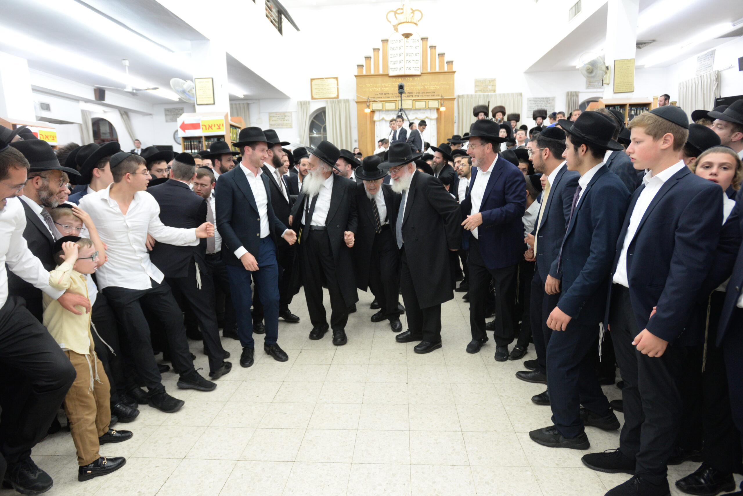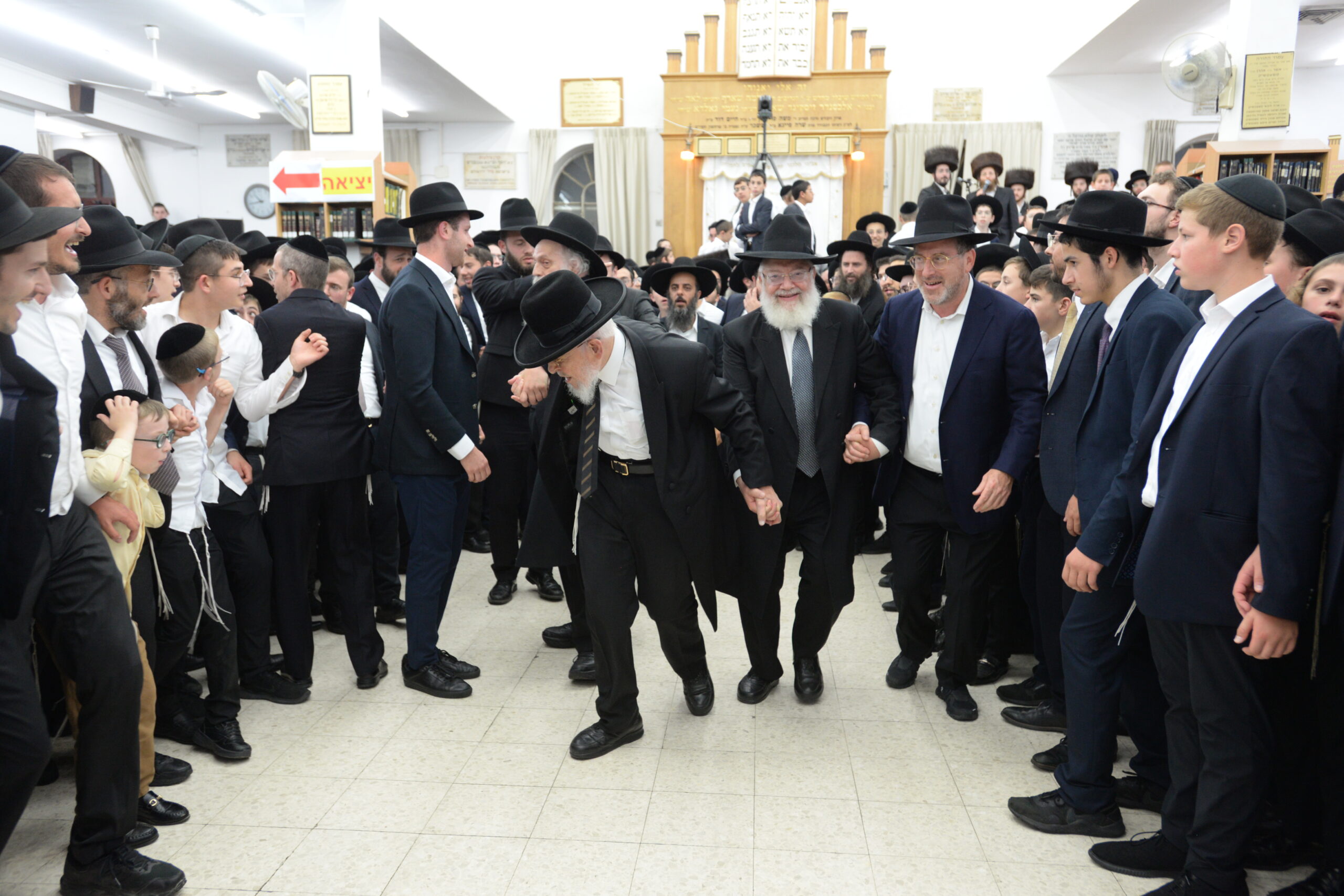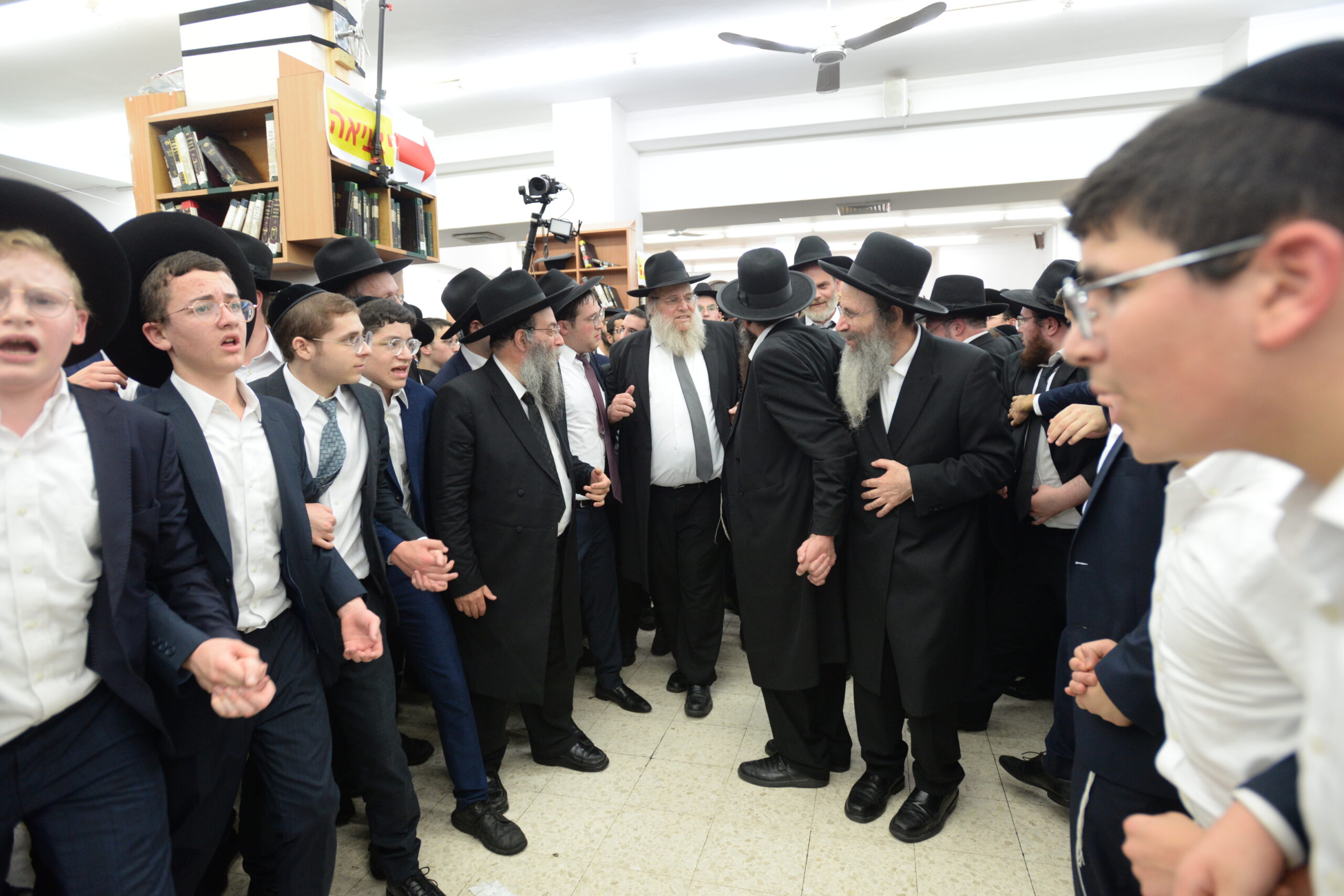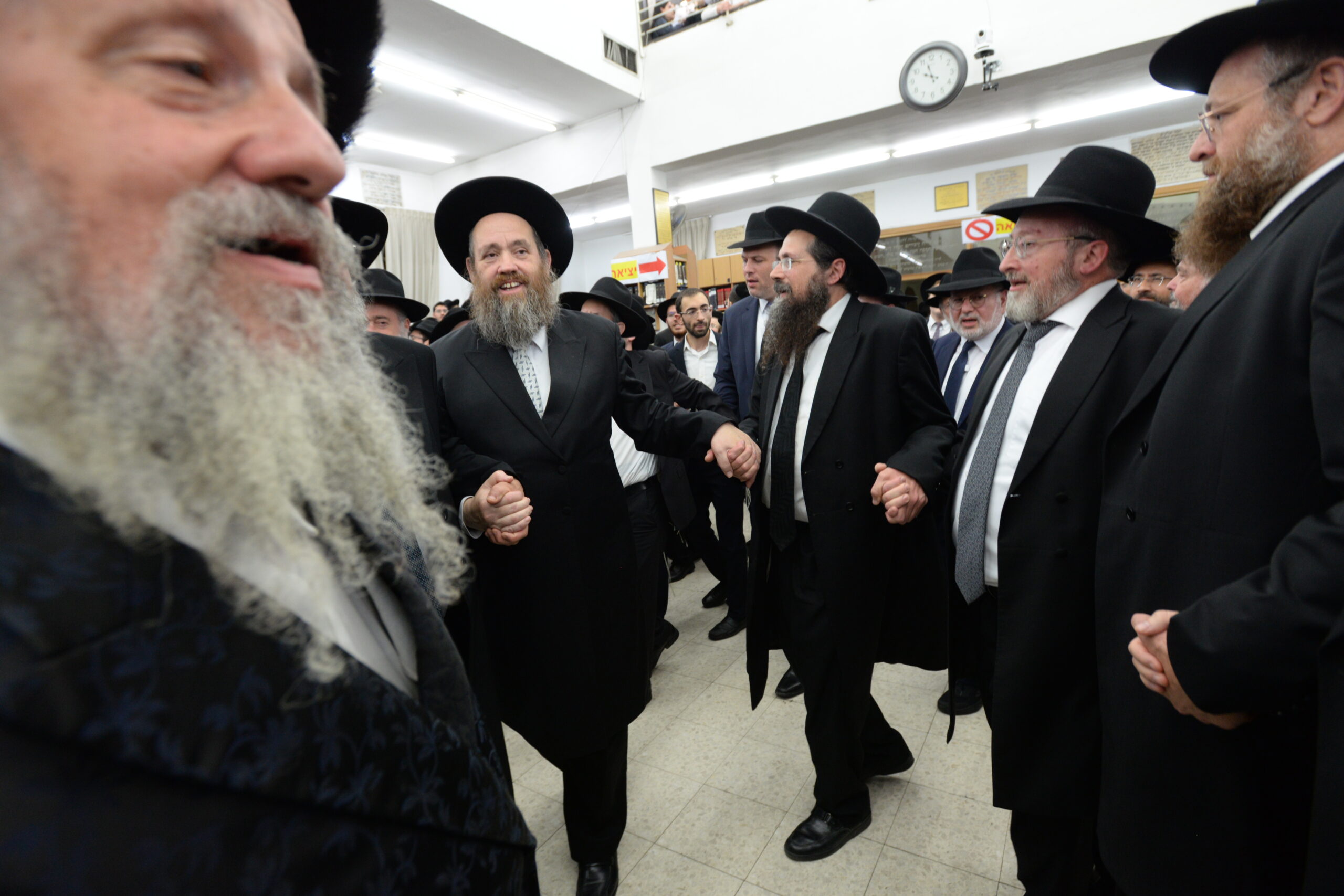 The Yeshiva’s Simchas Beis Hashoeva was held on Thursday, the second night of Chol Hamoed, beginning with music and dancing in the Mercazi Bais Medrash at 9:20. When the Roshei Yeshiva walked in about twenty minutes later, the olam broke out in tremendous excitement as they danced with their Rabbeim for several hours. Many visiting guests joined as well, taking the opportunity to wish the Roshei Yeshiva a Gut Yom Tov. All in all, there were around 9,000 people coming by throughout the night. The highlight of the event, as usual, was the kumzitz with inspiring songs of Yamim Noraim and Geulah at the end of the night, culminating in Leshana Haba’ah Bi’Yerushalayim.