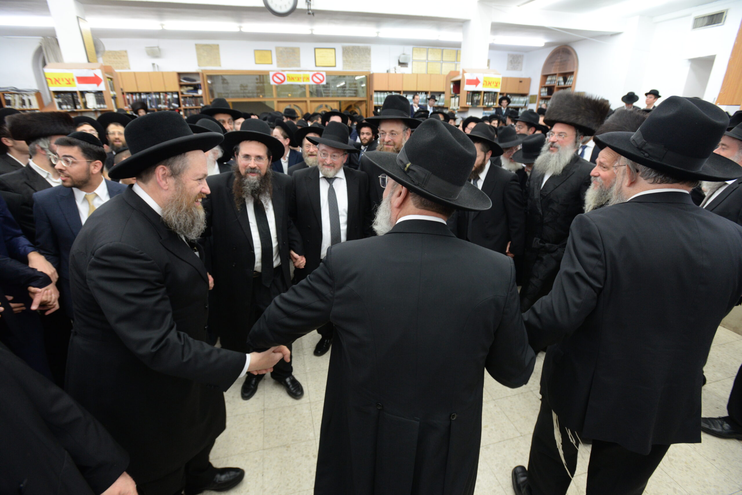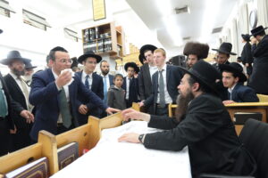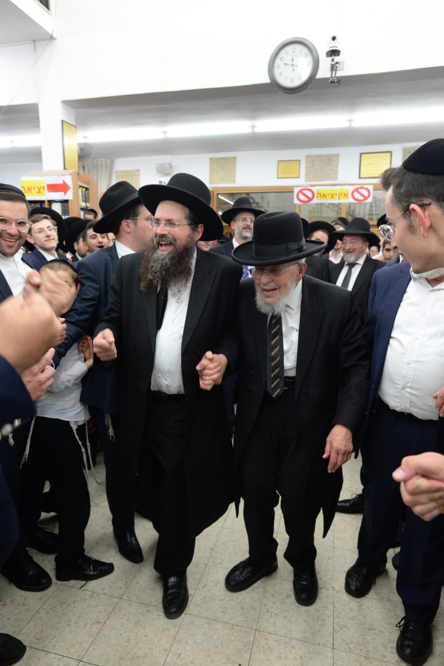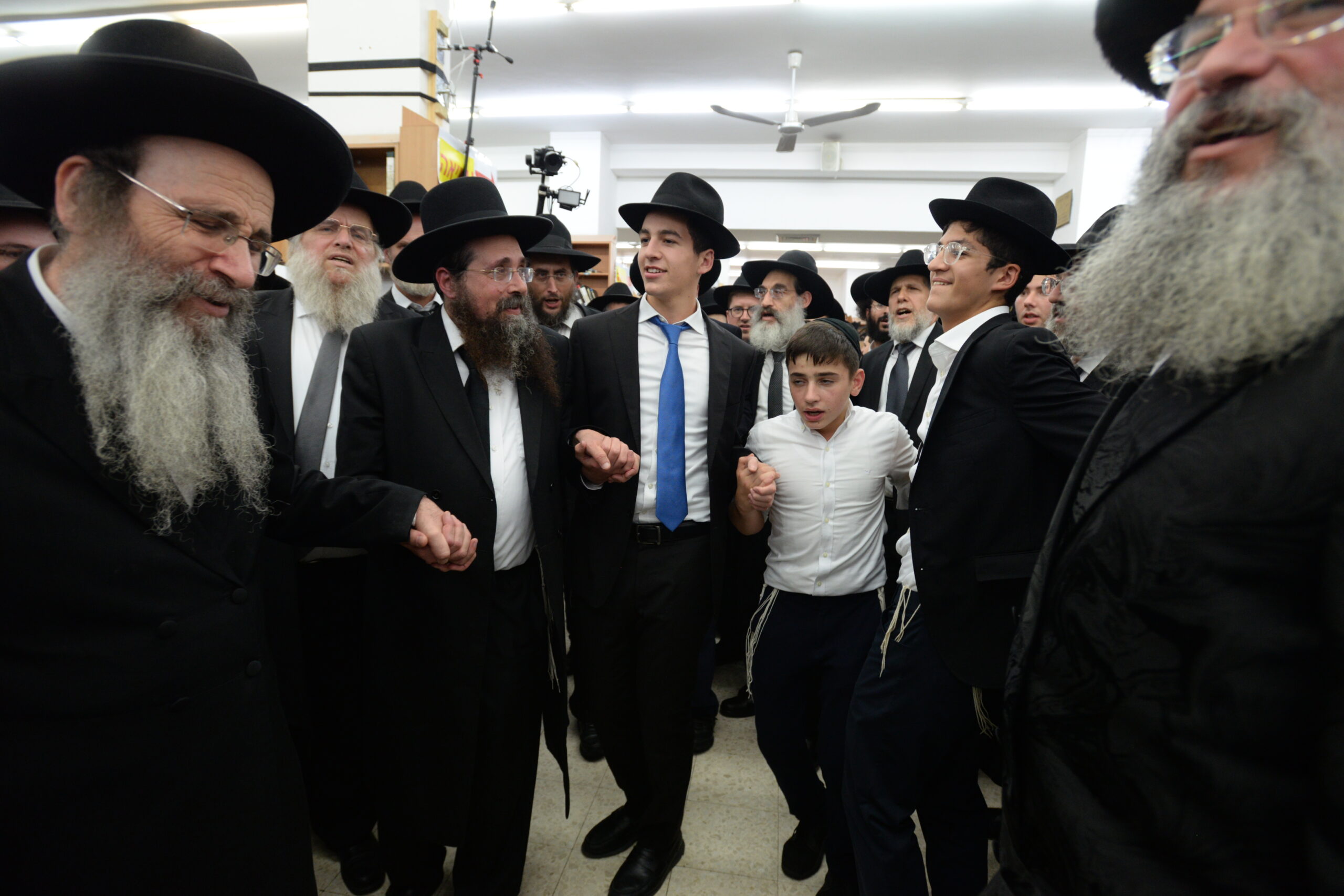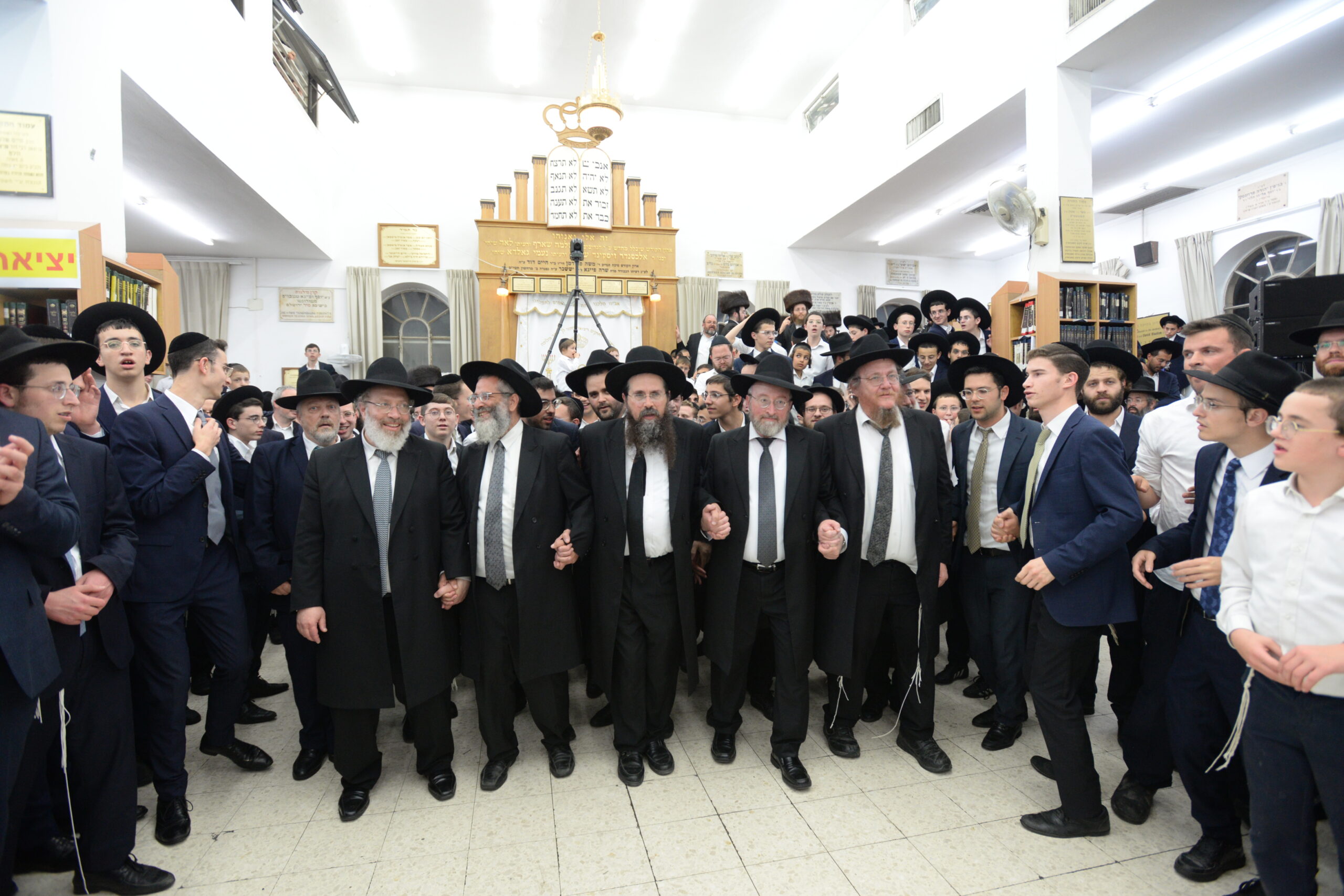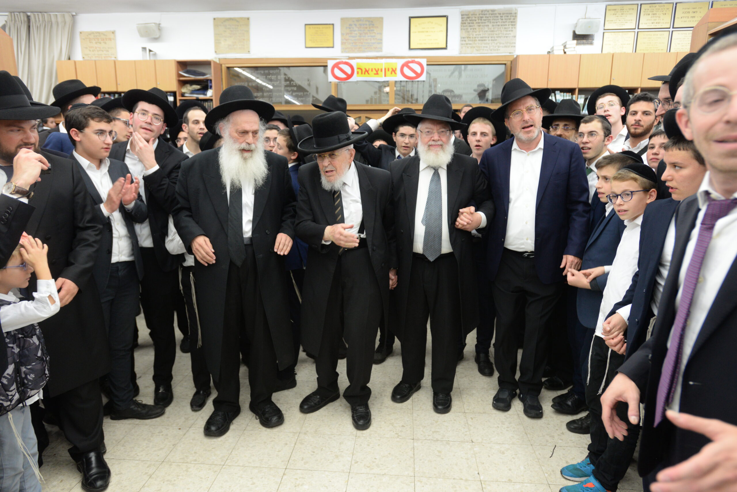 The Yeshiva’s Simchas Beis Hashoeva was held on Thursday, the second night of Chol Hamoed, beginning with music and dancing in the Mercazi Bais Medrash at 9:20. When the Roshei Yeshiva walked in about twenty minutes later, the olam broke out in tremendous excitement as they danced with their Rabbeim for several hours. Many visiting guests joined as well, taking the opportunity to wish the Roshei Yeshiva a Gut Yom Tov. All in all, there were around 9,000 people coming by throughout the night. The highlight of the event, as usual, was the kumzitz with inspiring songs of Yamim Noraim and Geulah at the end of the night, culminating in Leshana Haba’ah Bi’Yerushalayim.