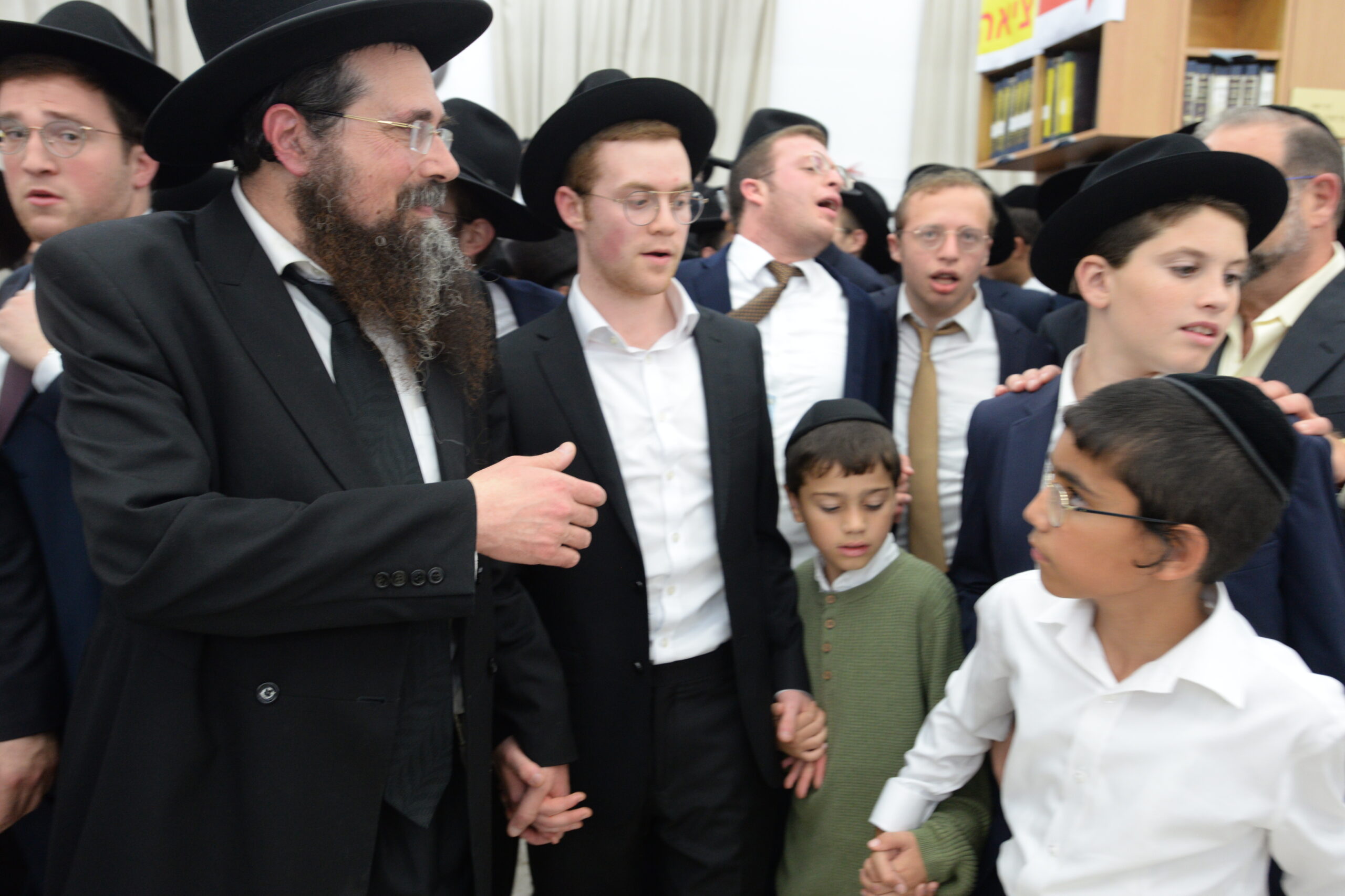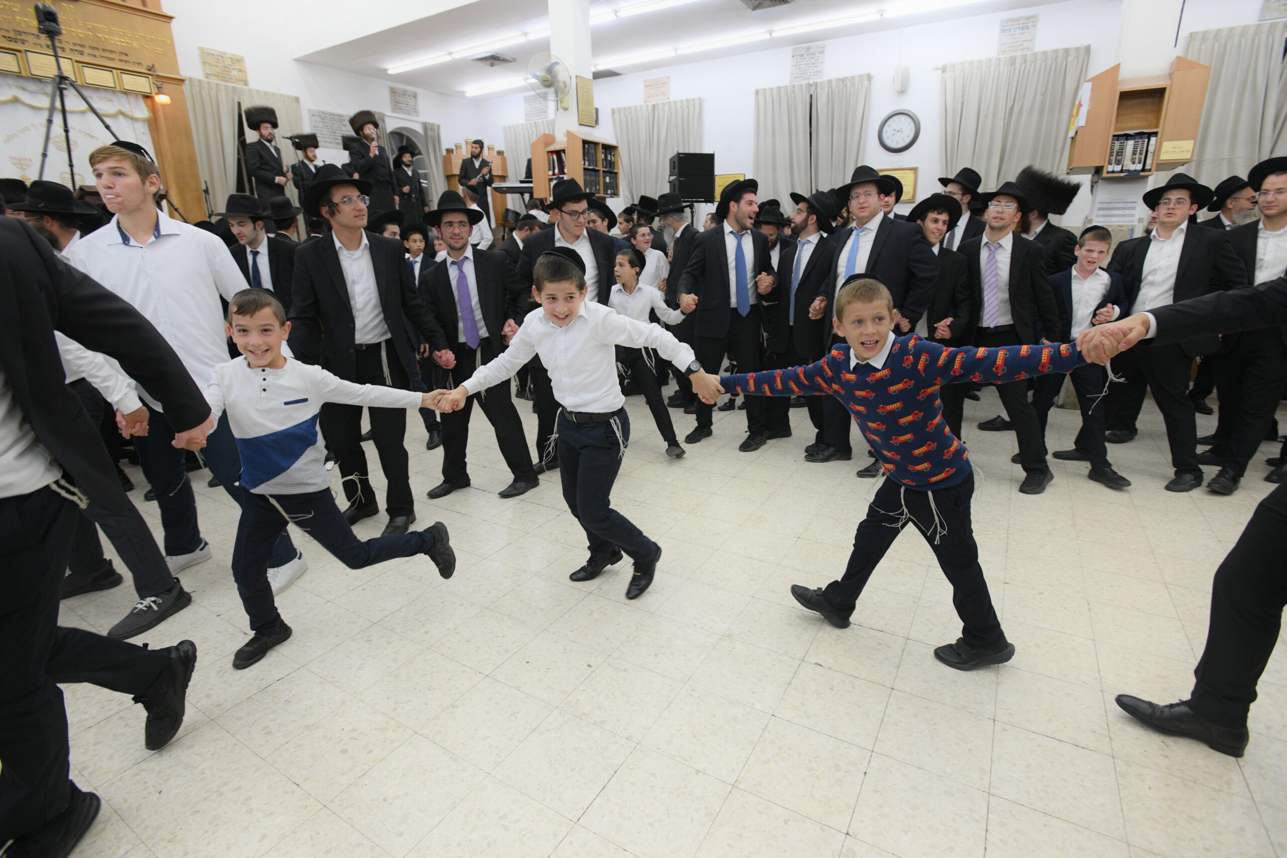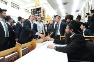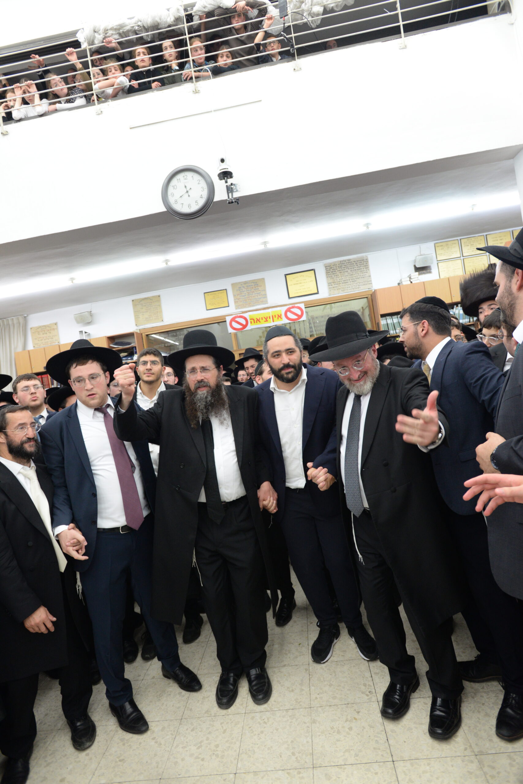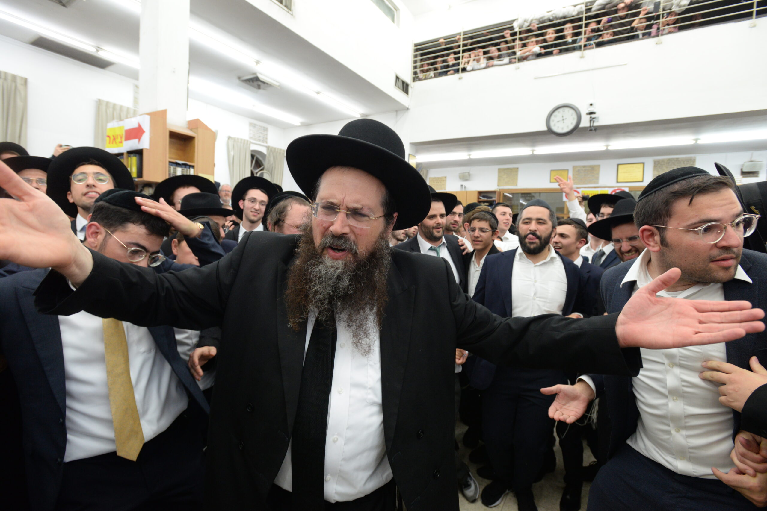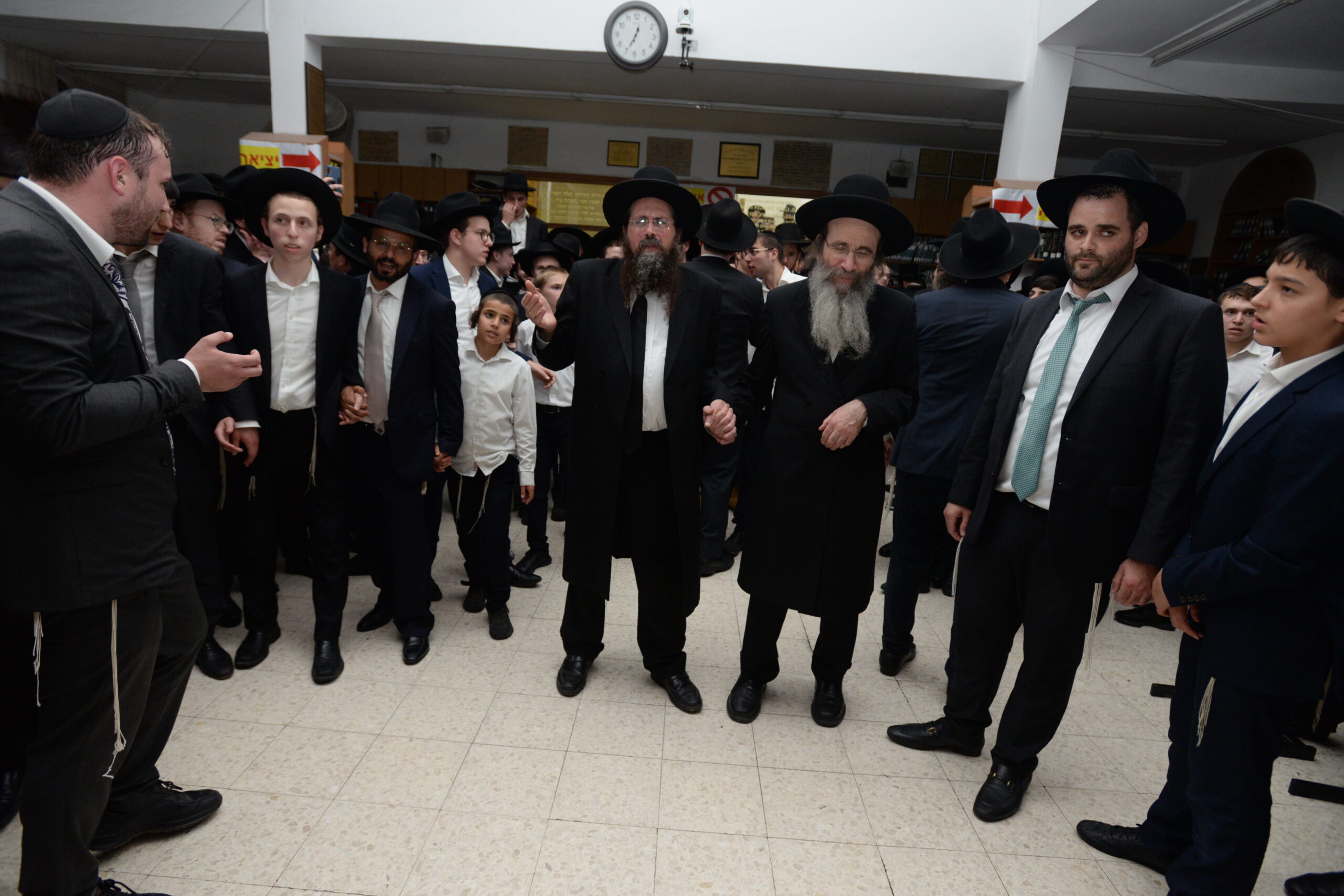 The Yeshiva’s Simchas Beis Hashoeva was held on Thursday, the second night of Chol Hamoed, beginning with music and dancing in the Mercazi Bais Medrash at 9:20. When the Roshei Yeshiva walked in about twenty minutes later, the olam broke out in tremendous excitement as they danced with their Rabbeim for several hours. Many visiting guests joined as well, taking the opportunity to wish the Roshei Yeshiva a Gut Yom Tov. All in all, there were around 9,000 people coming by throughout the night. The highlight of the event, as usual, was the kumzitz with inspiring songs of Yamim Noraim and Geulah at the end of the night, culminating in Leshana Haba’ah Bi’Yerushalayim.