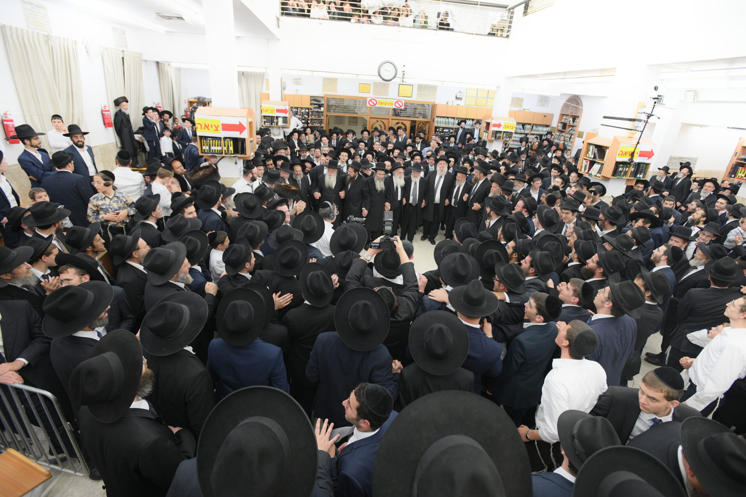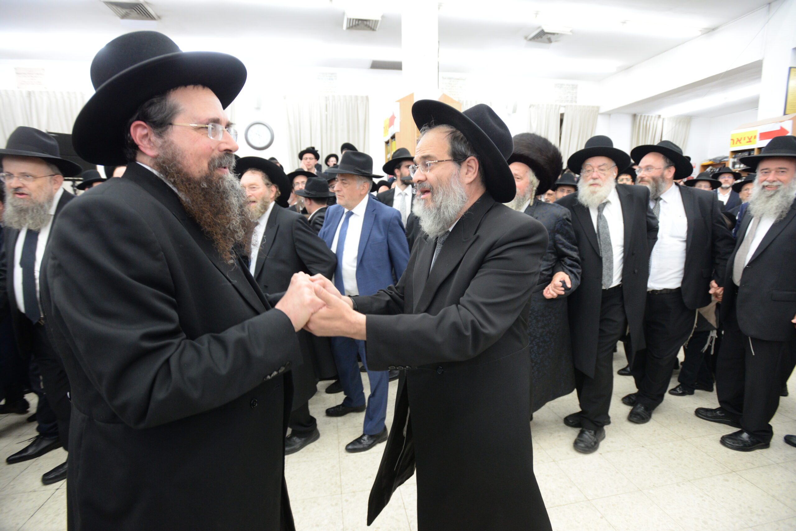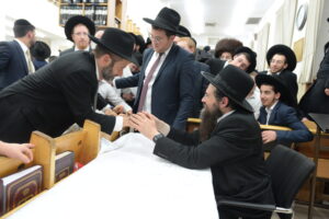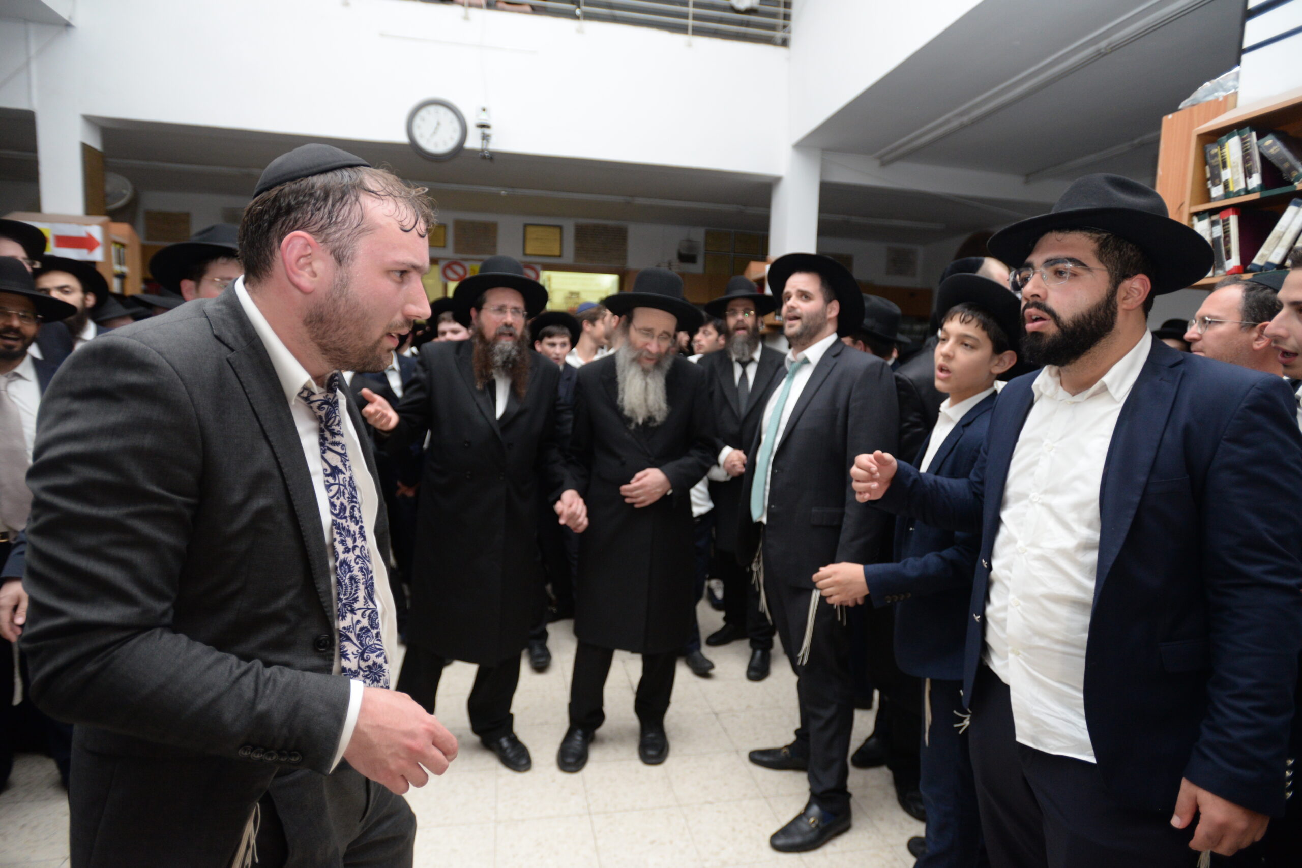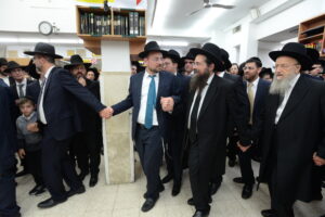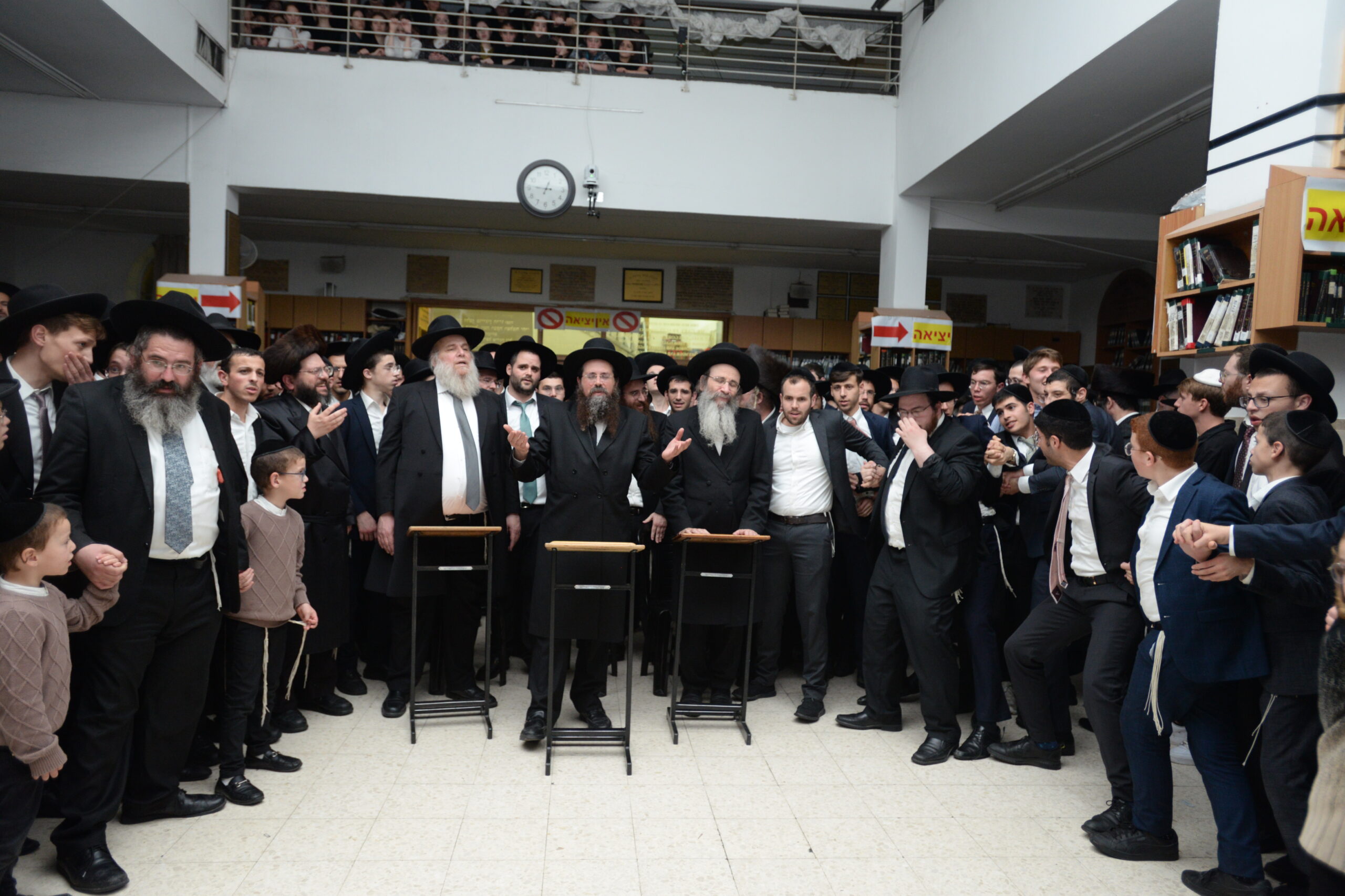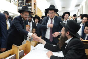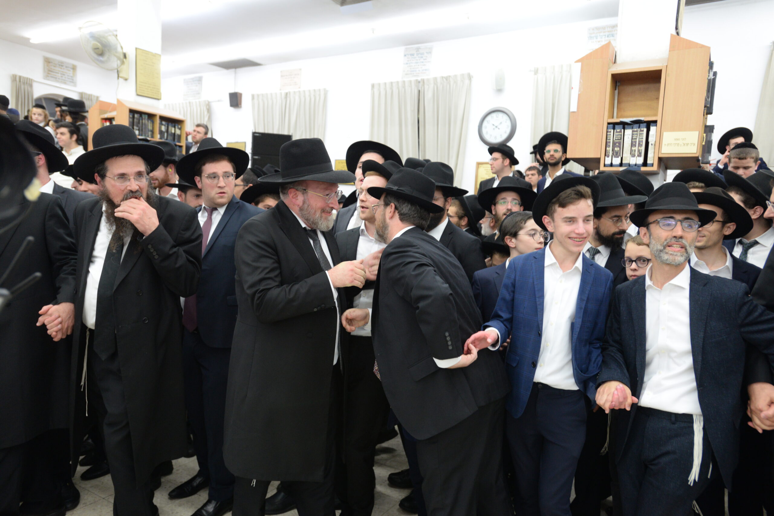 The Yeshiva’s Simchas Beis Hashoeva was held on Thursday, the second night of Chol Hamoed, beginning with music and dancing in the Mercazi Bais Medrash at 9:20. When the Roshei Yeshiva walked in about twenty minutes later, the olam broke out in tremendous excitement as they danced with their Rabbeim for several hours. Many visiting guests joined as well, taking the opportunity to wish the Roshei Yeshiva a Gut Yom Tov. All in all, there were around 9,000 people coming by throughout the night. The highlight of the event, as usual, was the kumzitz with inspiring songs of Yamim Noraim and Geulah at the end of the night, culminating in Leshana Haba’ah Bi’Yerushalayim.