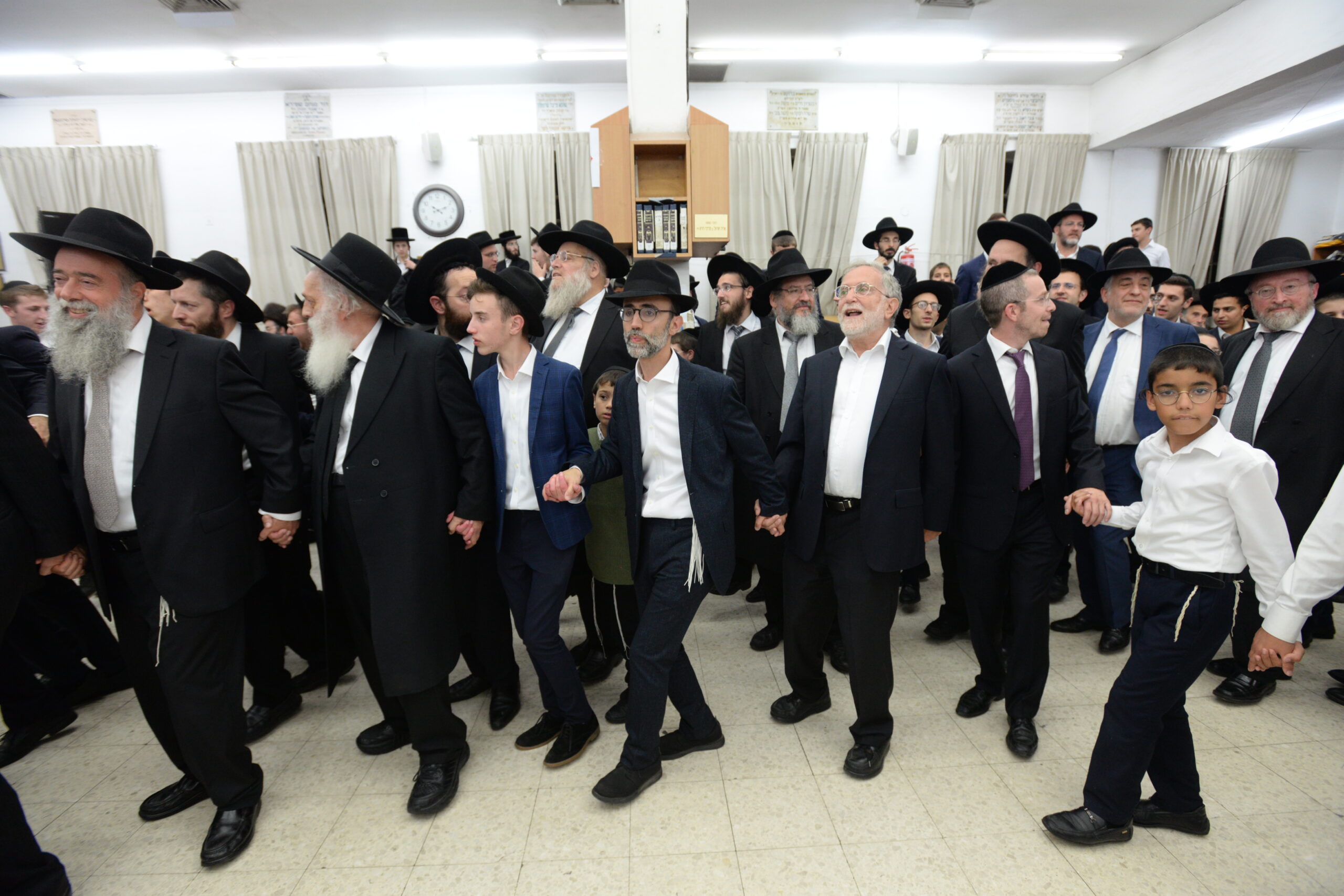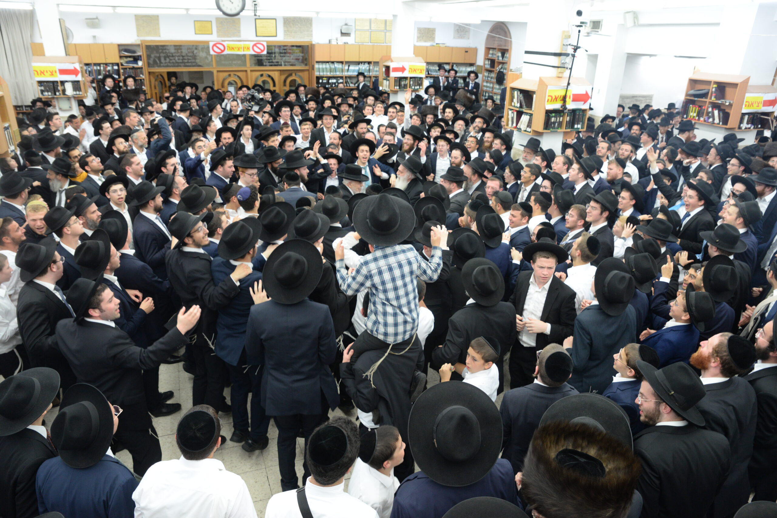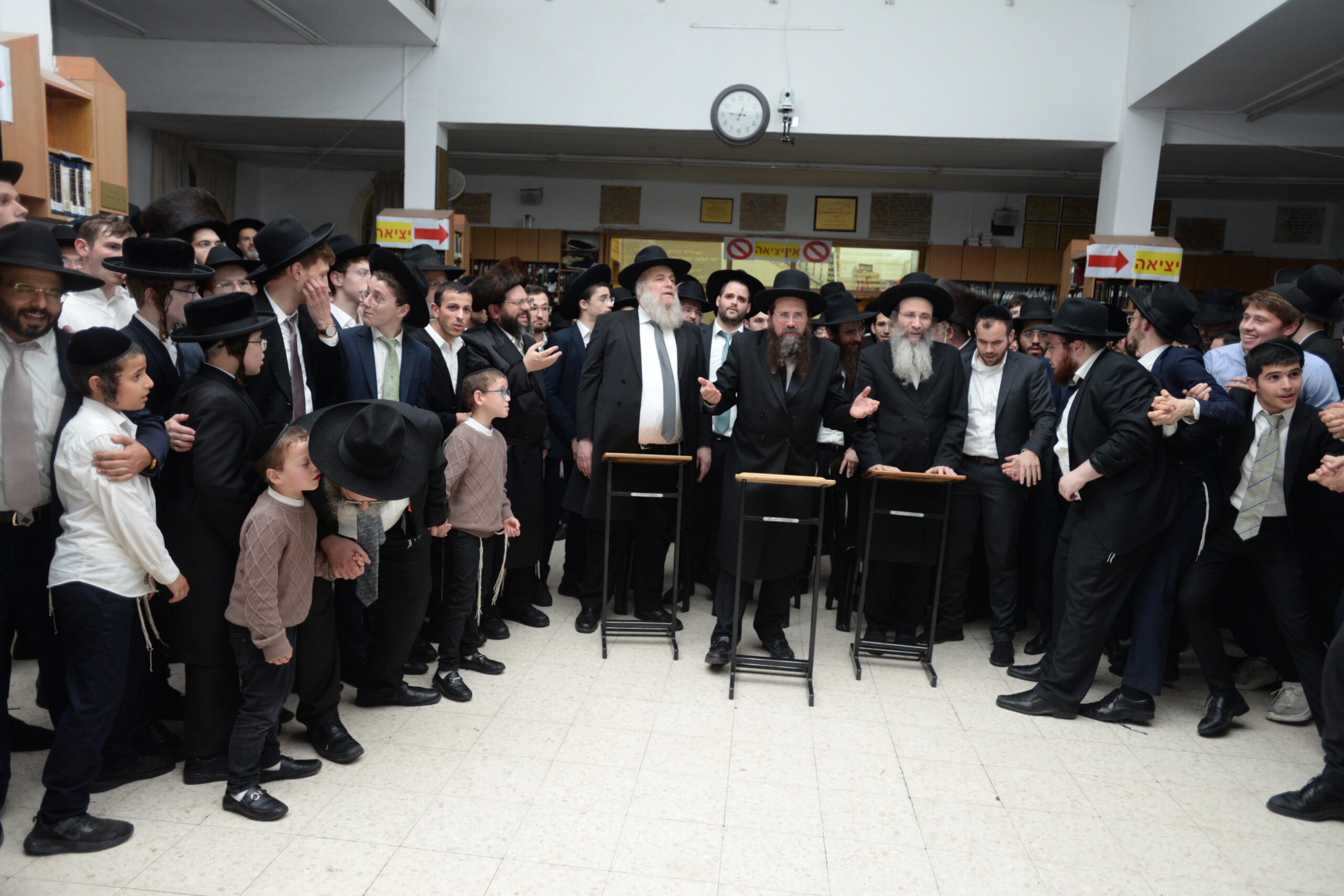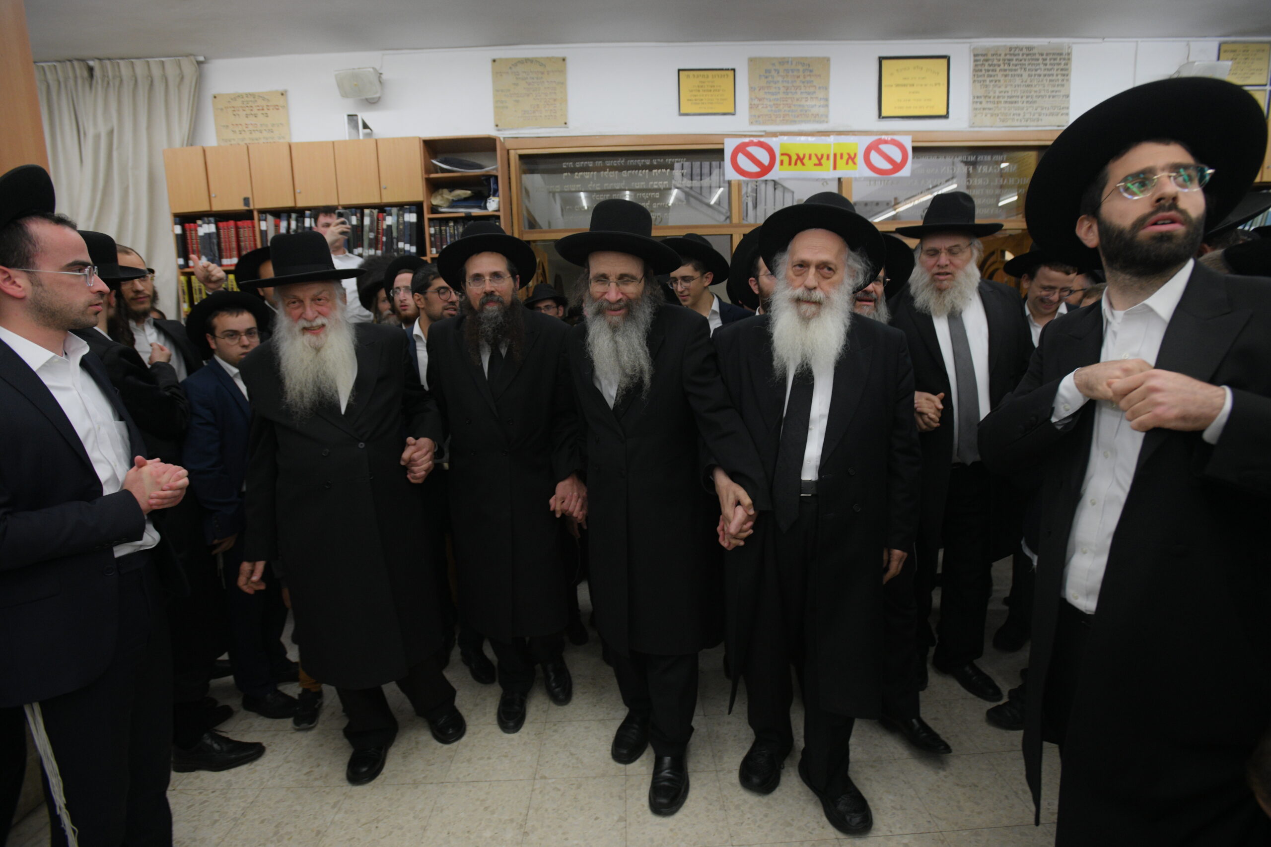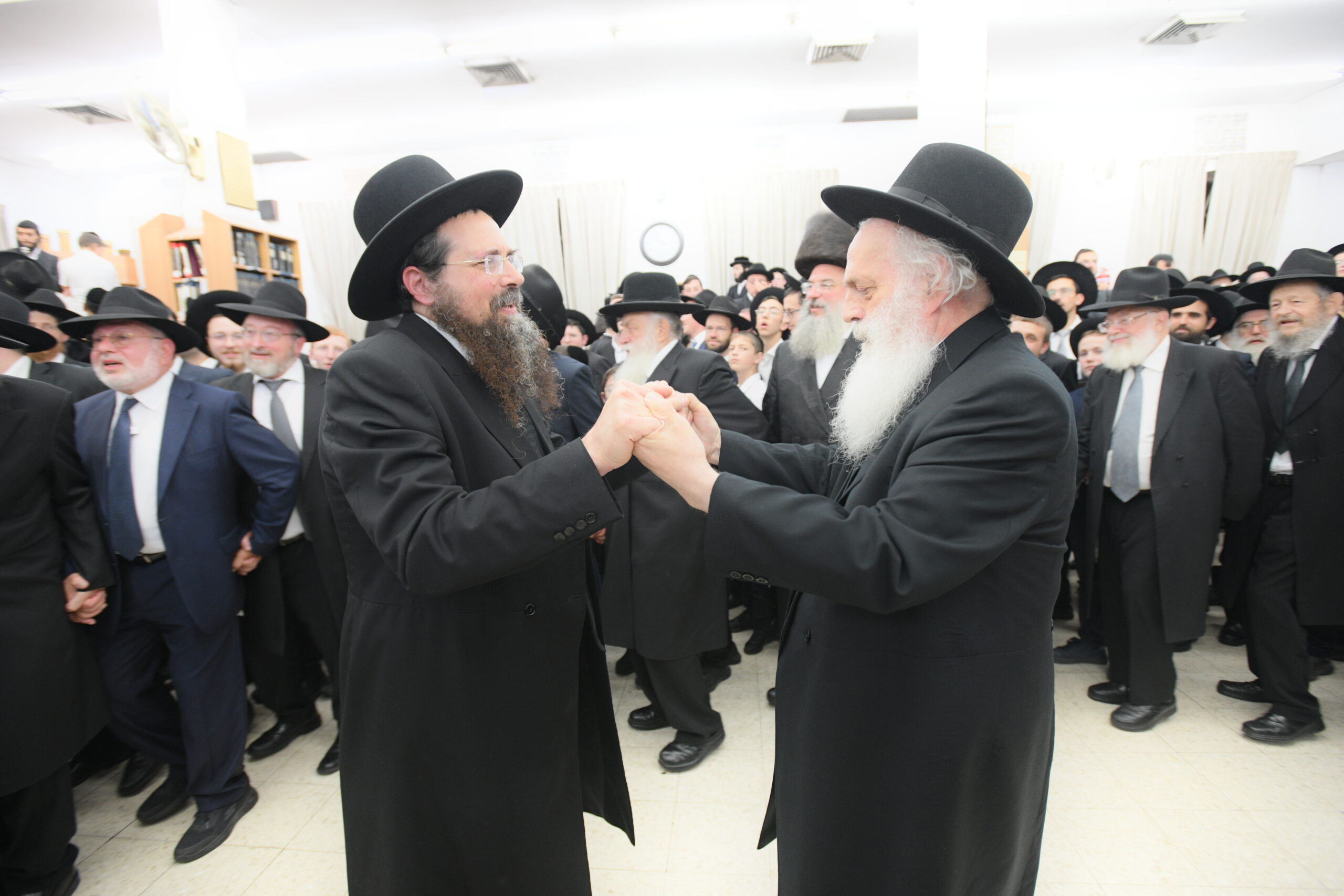 The Yeshiva’s Simchas Beis Hashoeva was held on Thursday, the second night of Chol Hamoed, beginning with music and dancing in the Mercazi Bais Medrash at 9:20. When the Roshei Yeshiva walked in about twenty minutes later, the olam broke out in tremendous excitement as they danced with their Rabbeim for several hours. Many visiting guests joined as well, taking the opportunity to wish the Roshei Yeshiva a Gut Yom Tov. All in all, there were around 9,000 people coming by throughout the night. The highlight of the event, as usual, was the kumzitz with inspiring songs of Yamim Noraim and Geulah at the end of the night, culminating in Leshana Haba’ah Bi’Yerushalayim.
