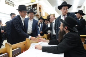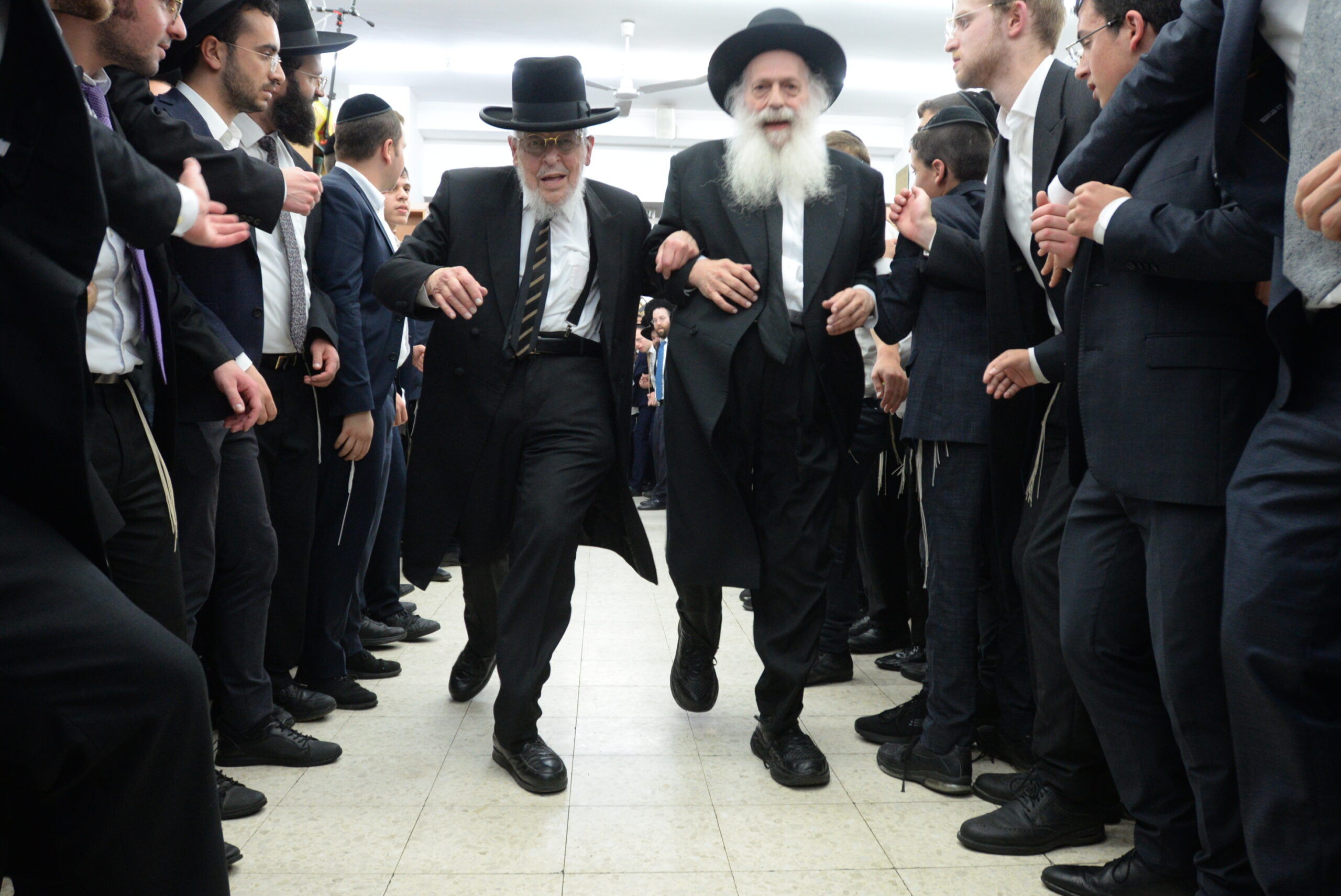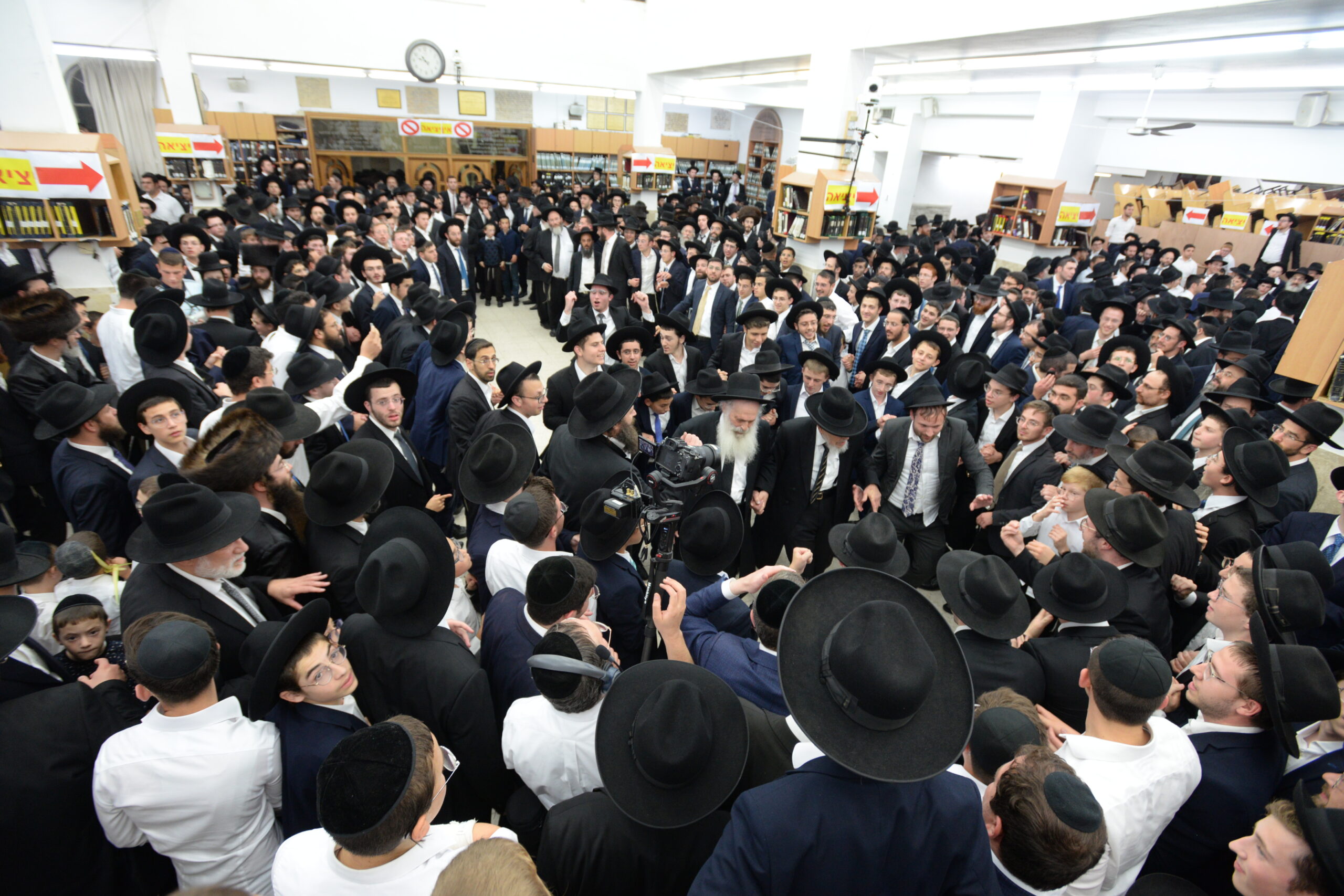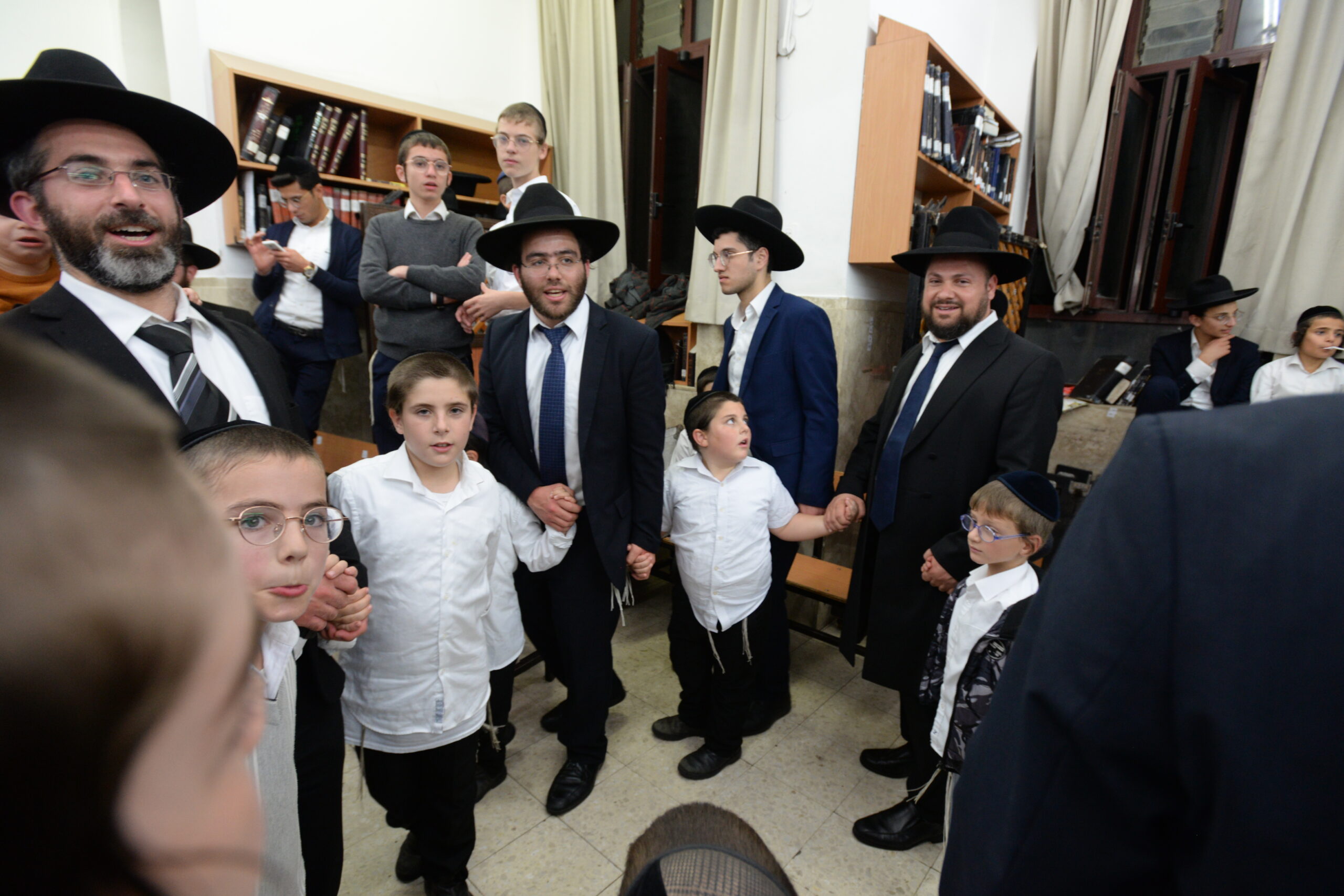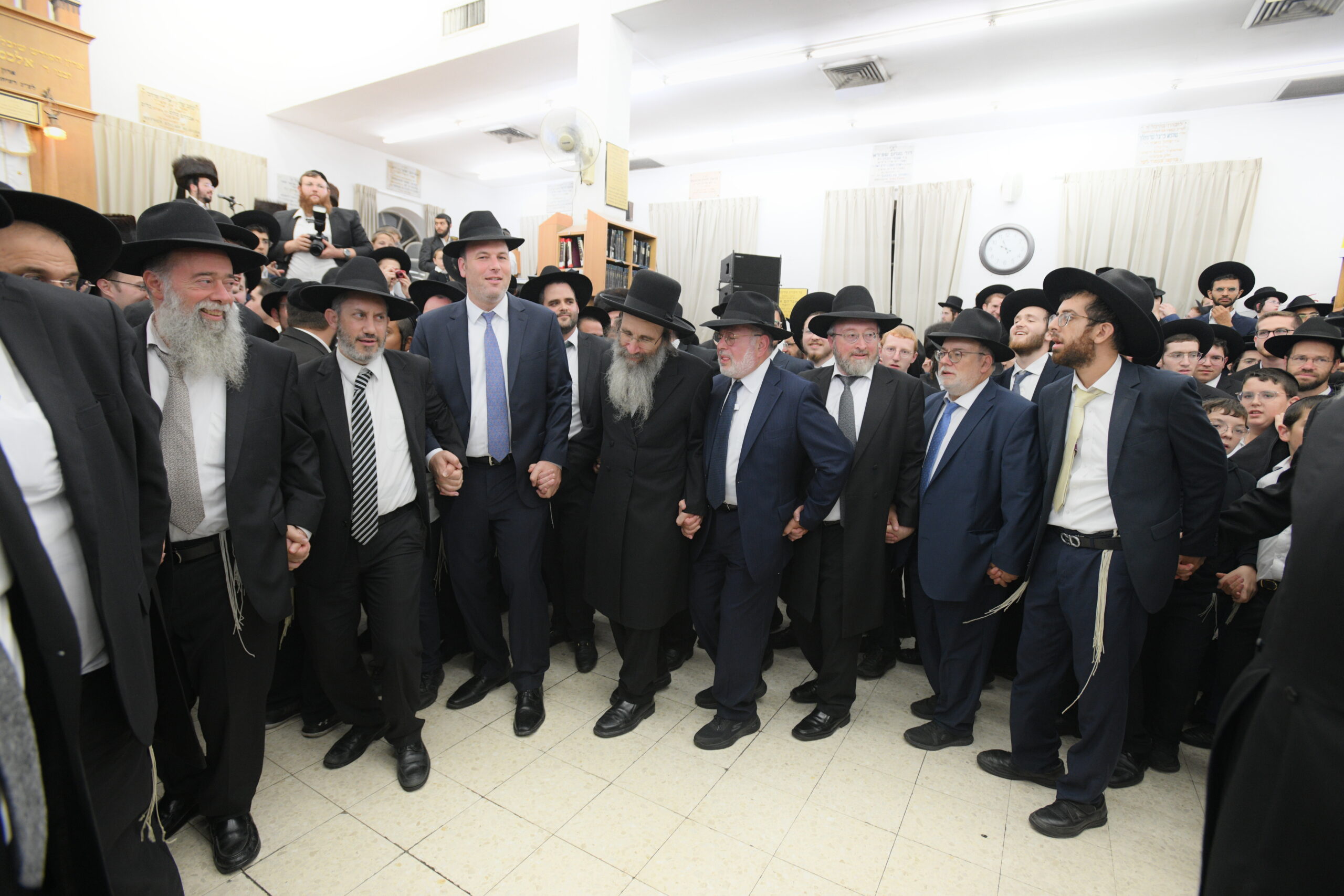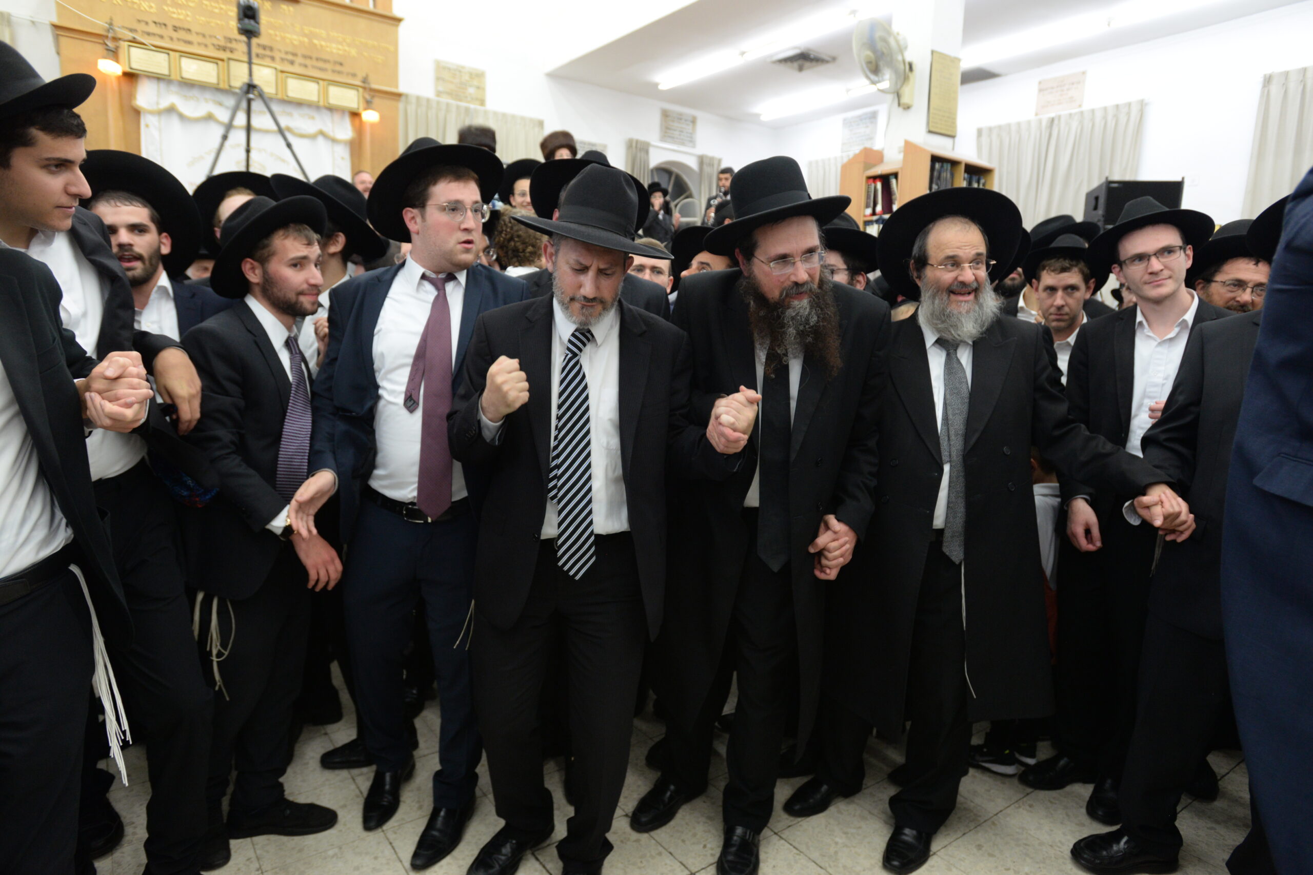 The Yeshiva’s Simchas Beis Hashoeva was held on Thursday, the second night of Chol Hamoed, beginning with music and dancing in the Mercazi Bais Medrash at 9:20. When the Roshei Yeshiva walked in about twenty minutes later, the olam broke out in tremendous excitement as they danced with their Rabbeim for several hours. Many visiting guests joined as well, taking the opportunity to wish the Roshei Yeshiva a Gut Yom Tov. All in all, there were around 9,000 people coming by throughout the night. The highlight of the event, as usual, was the kumzitz with inspiring songs of Yamim Noraim and Geulah at the end of the night, culminating in Leshana Haba’ah Bi’Yerushalayim.