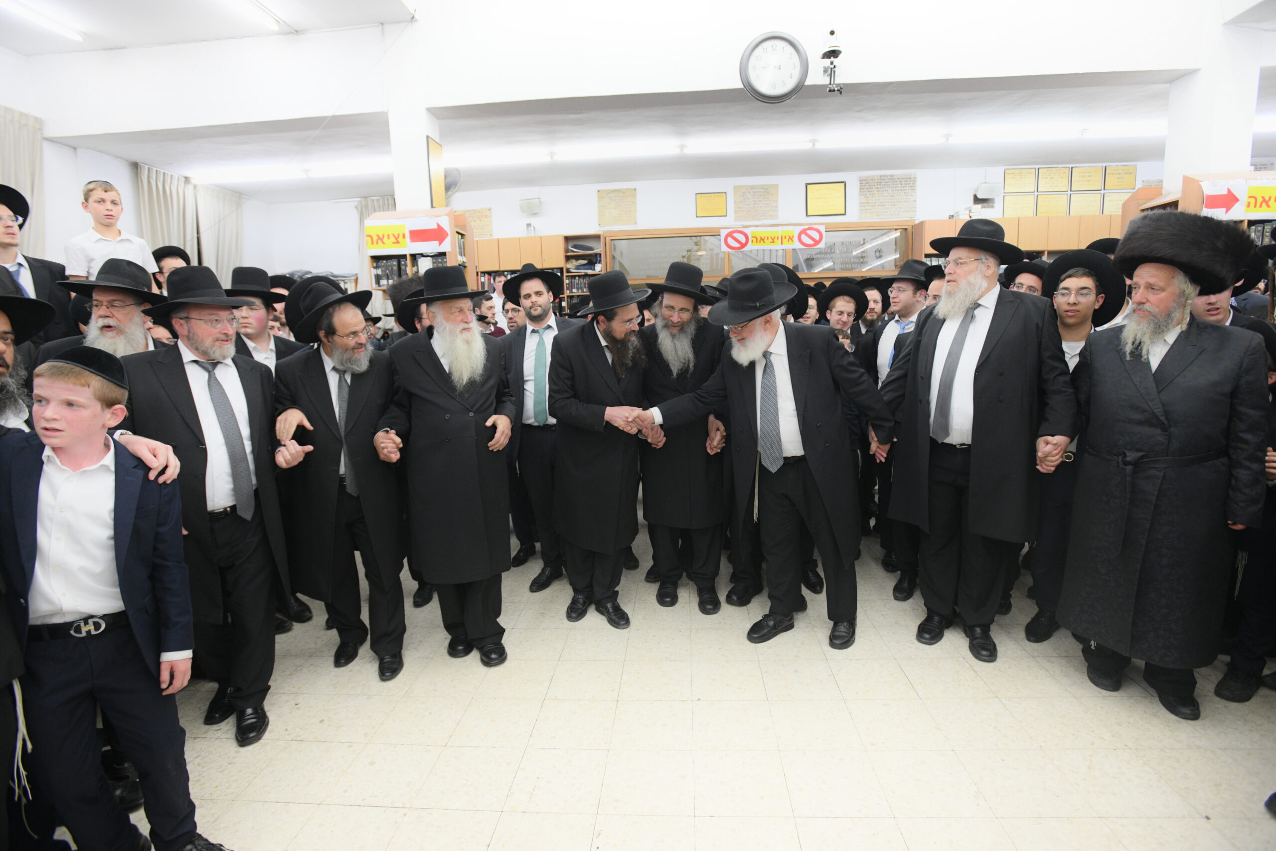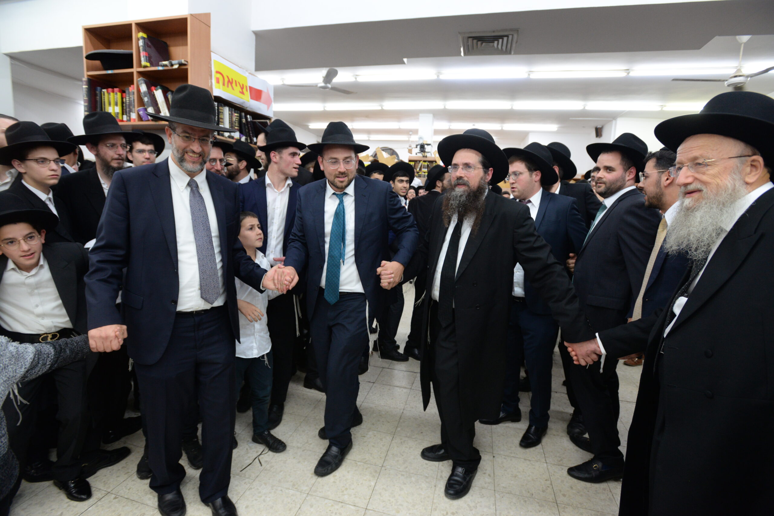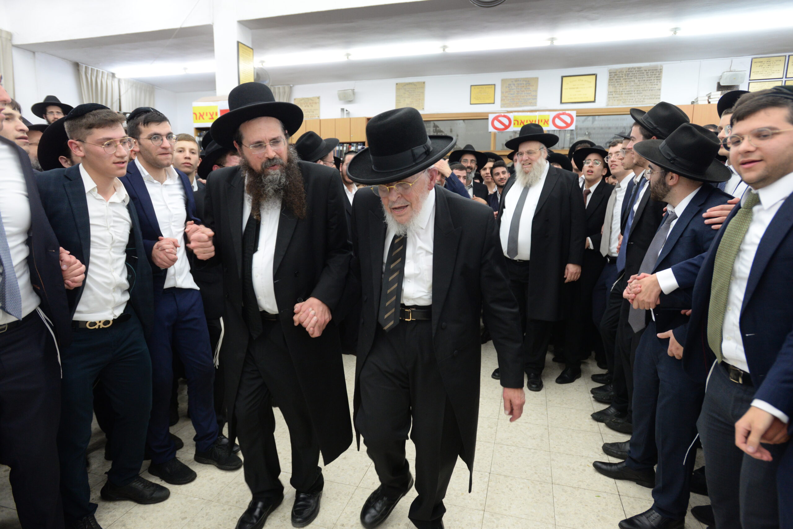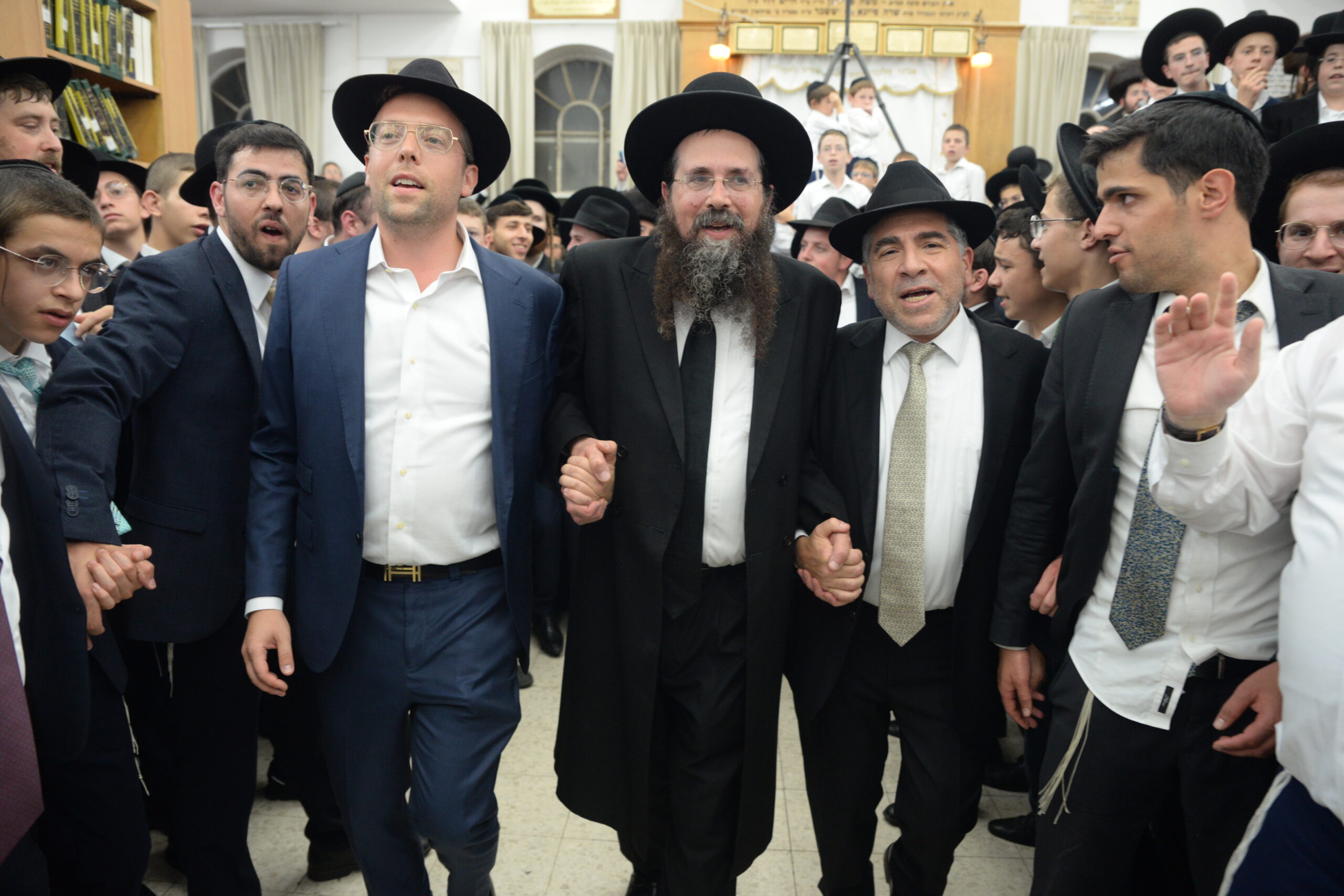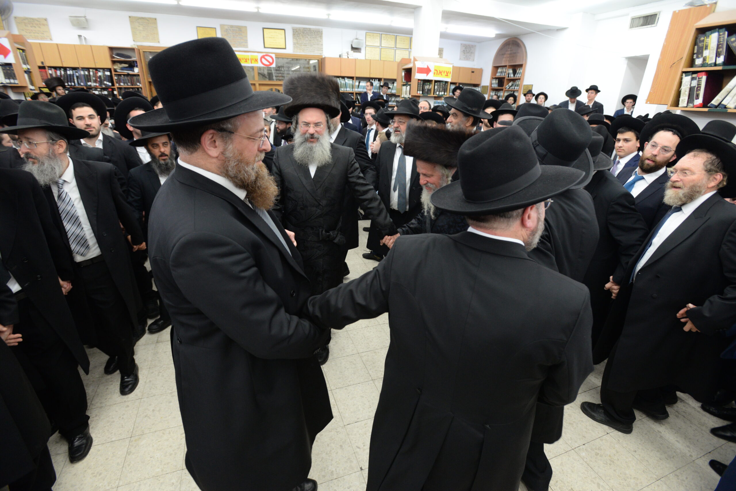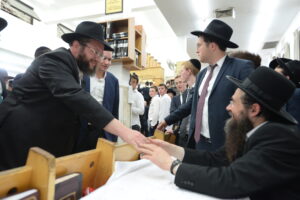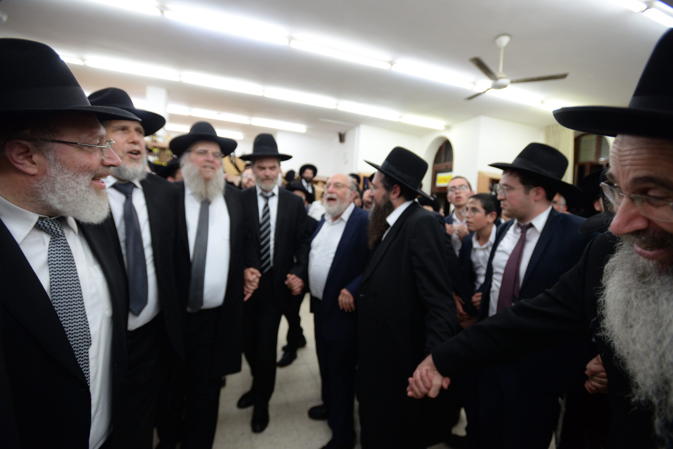 The Yeshiva’s Simchas Beis Hashoeva was held on Thursday, the second night of Chol Hamoed, beginning with music and dancing in the Mercazi Bais Medrash at 9:20. When the Roshei Yeshiva walked in about twenty minutes later, the olam broke out in tremendous excitement as they danced with their Rabbeim for several hours. Many visiting guests joined as well, taking the opportunity to wish the Roshei Yeshiva a Gut Yom Tov. All in all, there were around 9,000 people coming by throughout the night. The highlight of the event, as usual, was the kumzitz with inspiring songs of Yamim Noraim and Geulah at the end of the night, culminating in Leshana Haba’ah Bi’Yerushalayim.