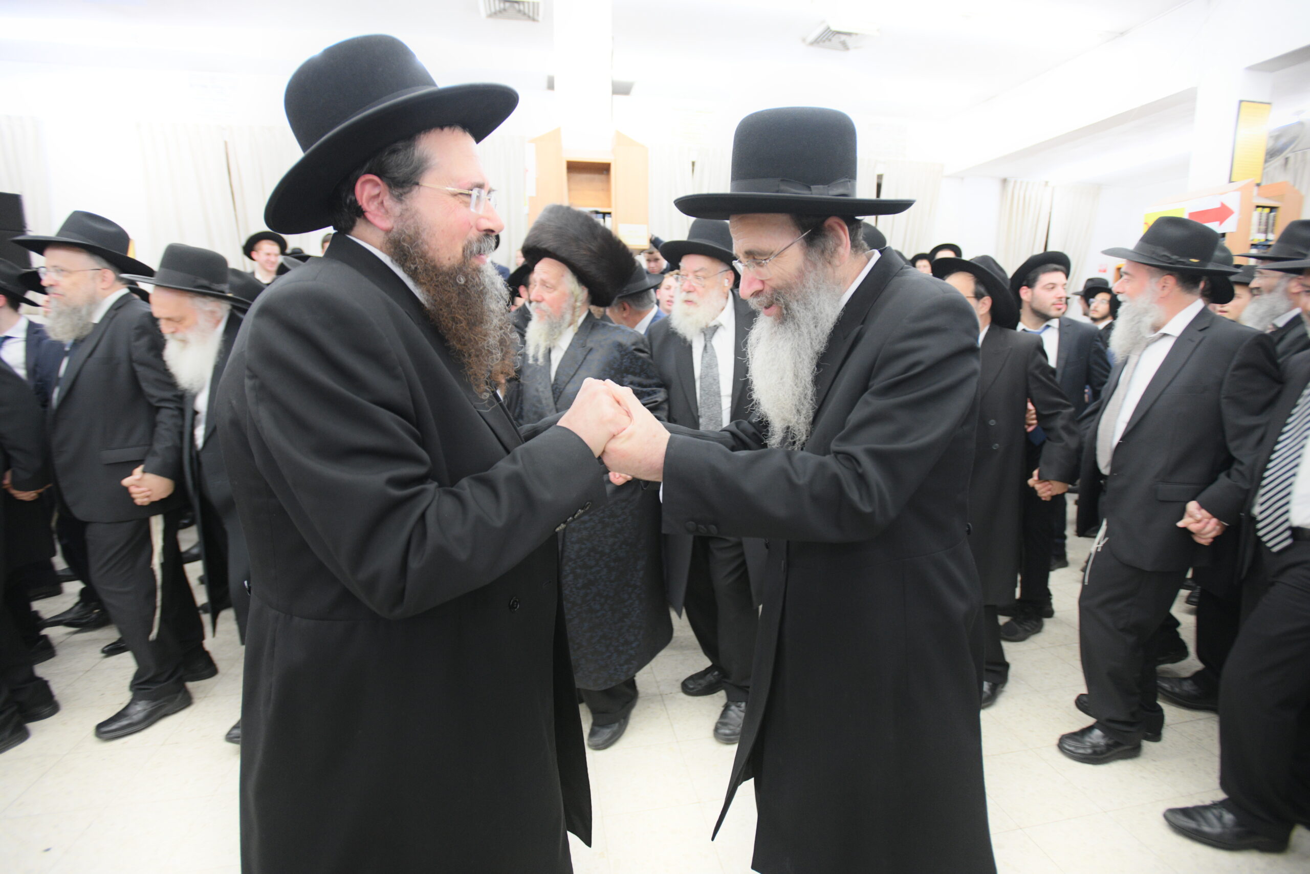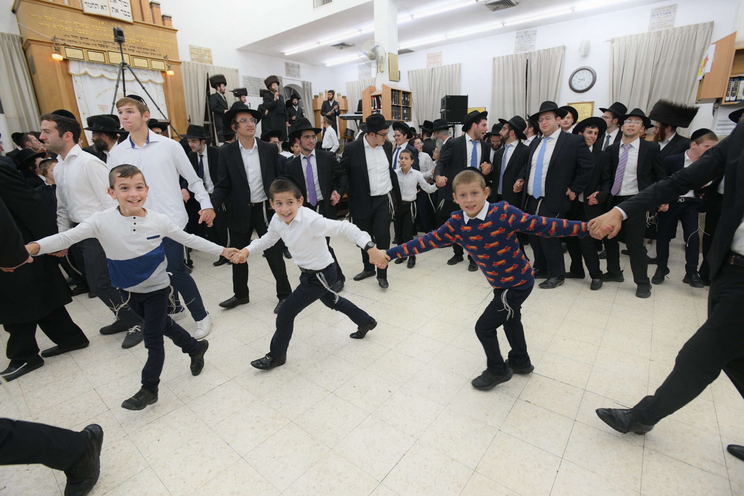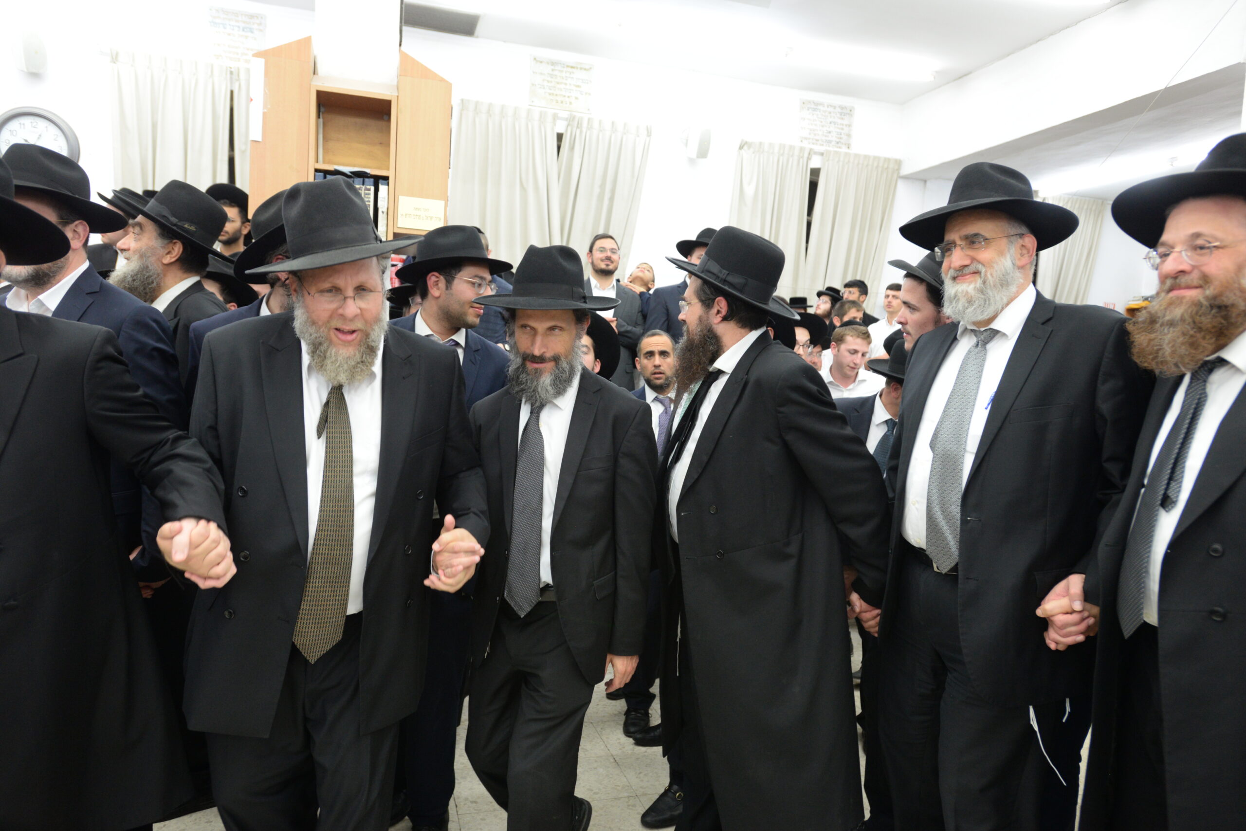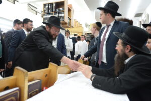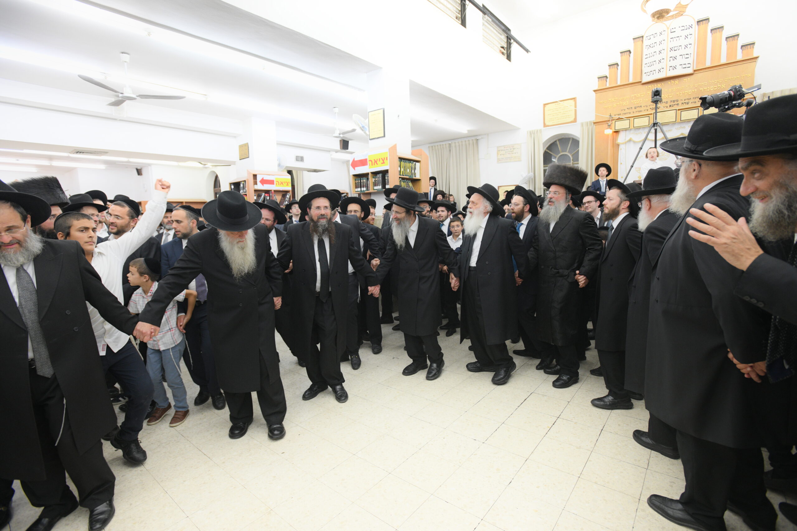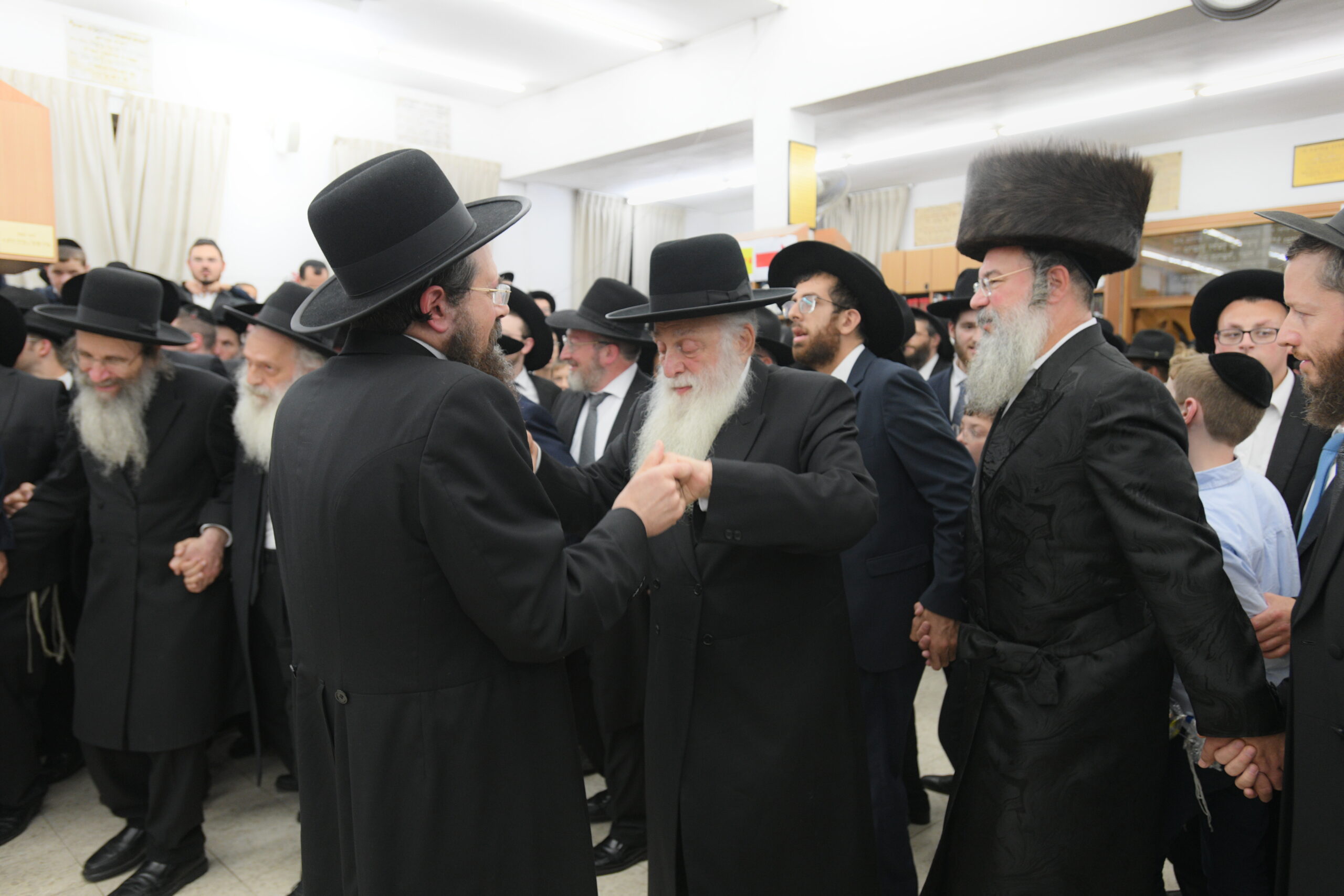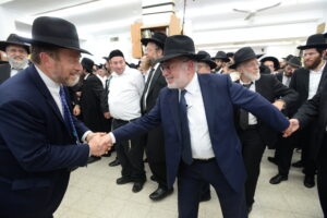 The Yeshiva’s Simchas Beis Hashoeva was held on Thursday, the second night of Chol Hamoed, beginning with music and dancing in the Mercazi Bais Medrash at 9:20. When the Roshei Yeshiva walked in about twenty minutes later, the olam broke out in tremendous excitement as they danced with their Rabbeim for several hours. Many visiting guests joined as well, taking the opportunity to wish the Roshei Yeshiva a Gut Yom Tov. All in all, there were around 9,000 people coming by throughout the night. The highlight of the event, as usual, was the kumzitz with inspiring songs of Yamim Noraim and Geulah at the end of the night, culminating in Leshana Haba’ah Bi’Yerushalayim.