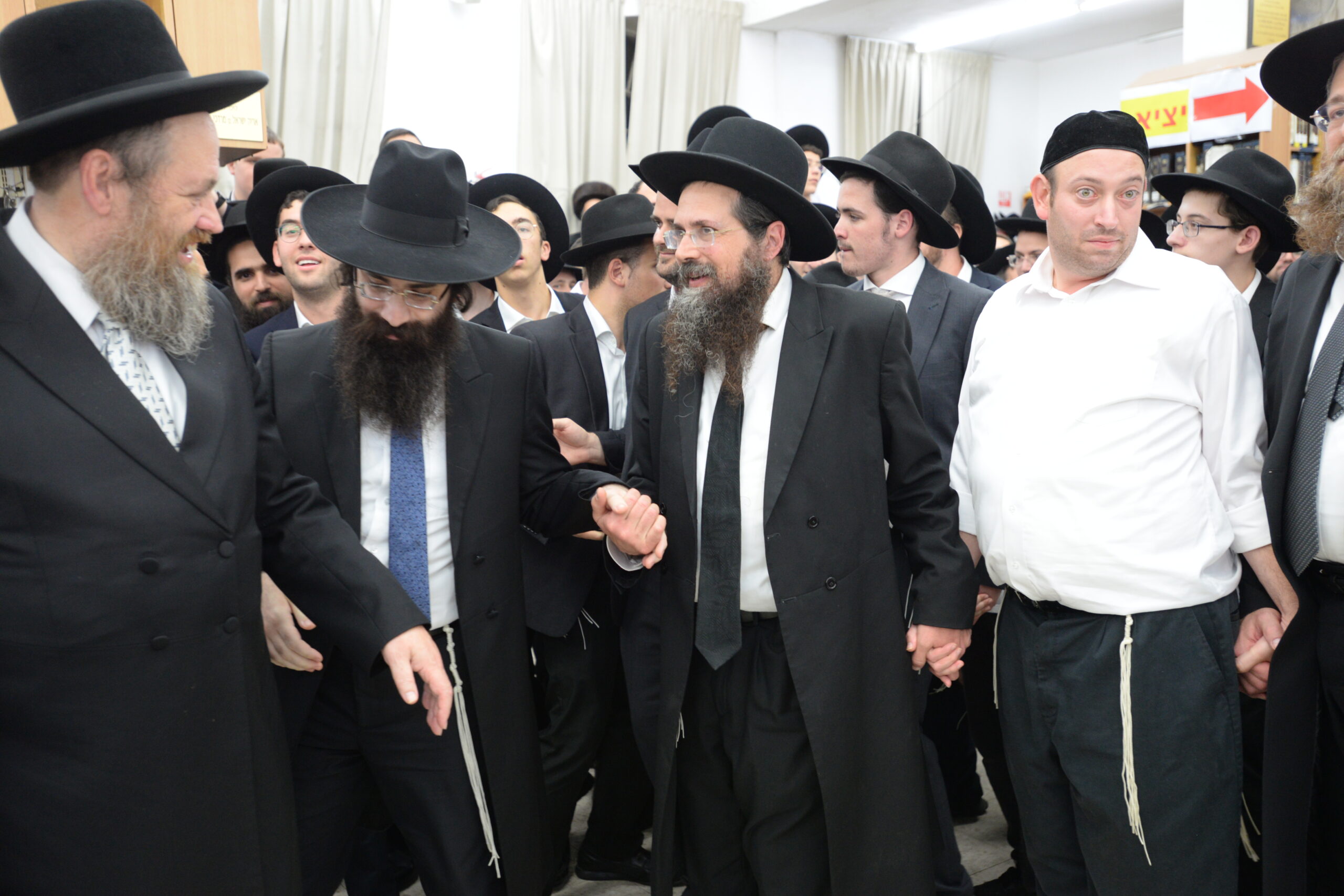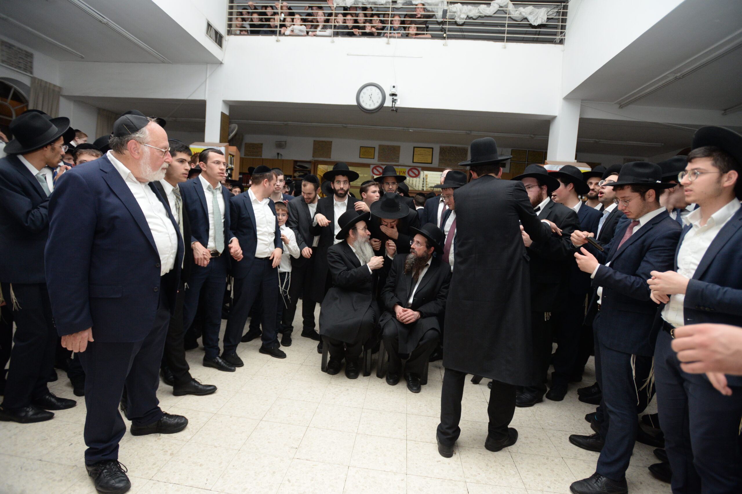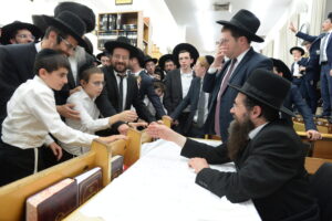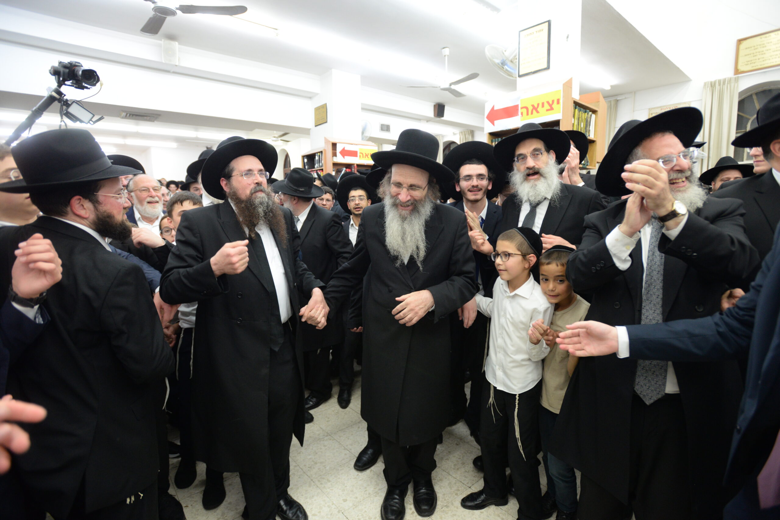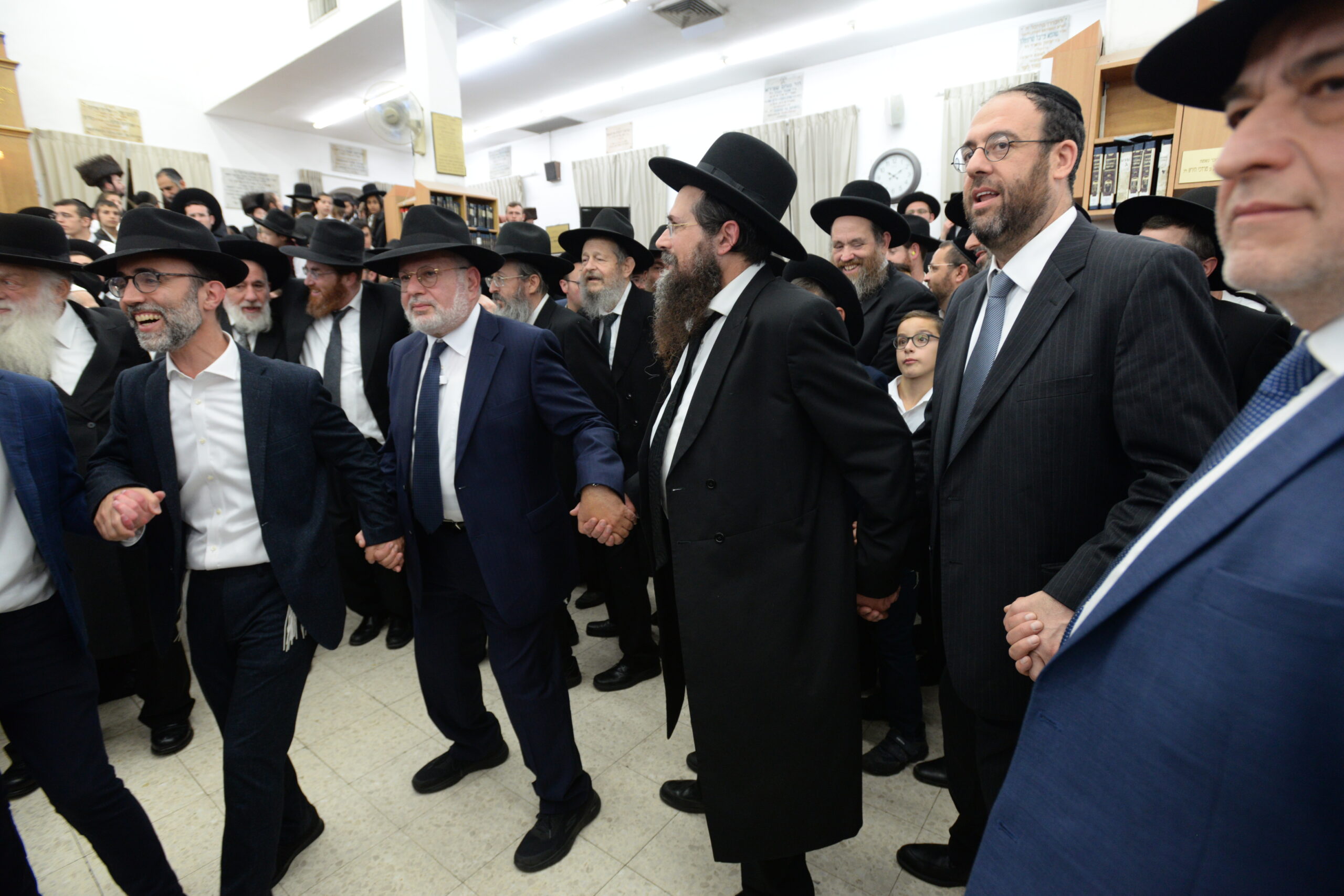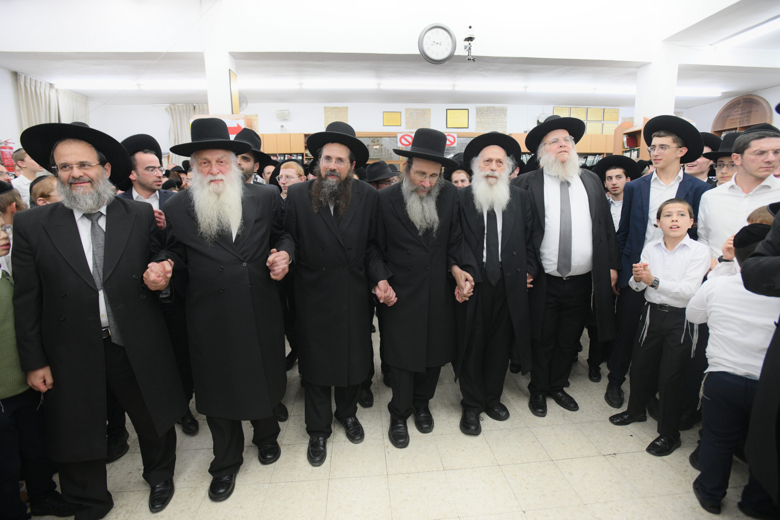The Yeshiva’s Simchas Beis Hashoeva was held on Thursday, the second night of Chol Hamoed, beginning with music and dancing in the Mercazi Bais Medrash at 9:20. When the Roshei Yeshiva walked in about twenty minutes later, the olam broke out in tremendous excitement as they danced with their Rabbeim for several hours. Many visiting guests joined as well, taking the opportunity to wish the Roshei Yeshiva a Gut Yom Tov. All in all, there were around 9,000 people coming by throughout the night. The highlight of the event, as usual, was the kumzitz with inspiring songs of Yamim Noraim and Geulah at the end of the night, culminating in Leshana Haba’ah Bi’Yerushalayim.