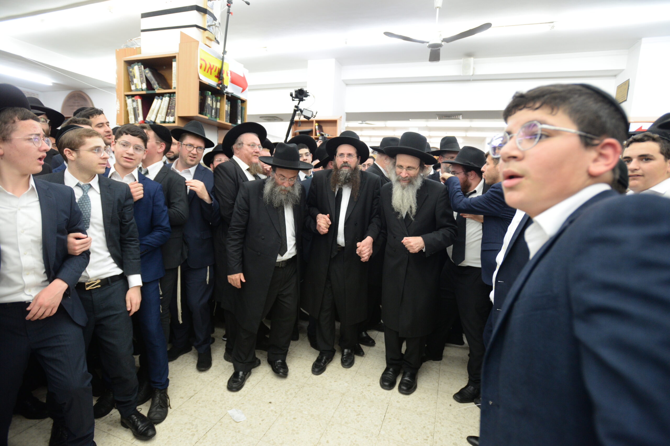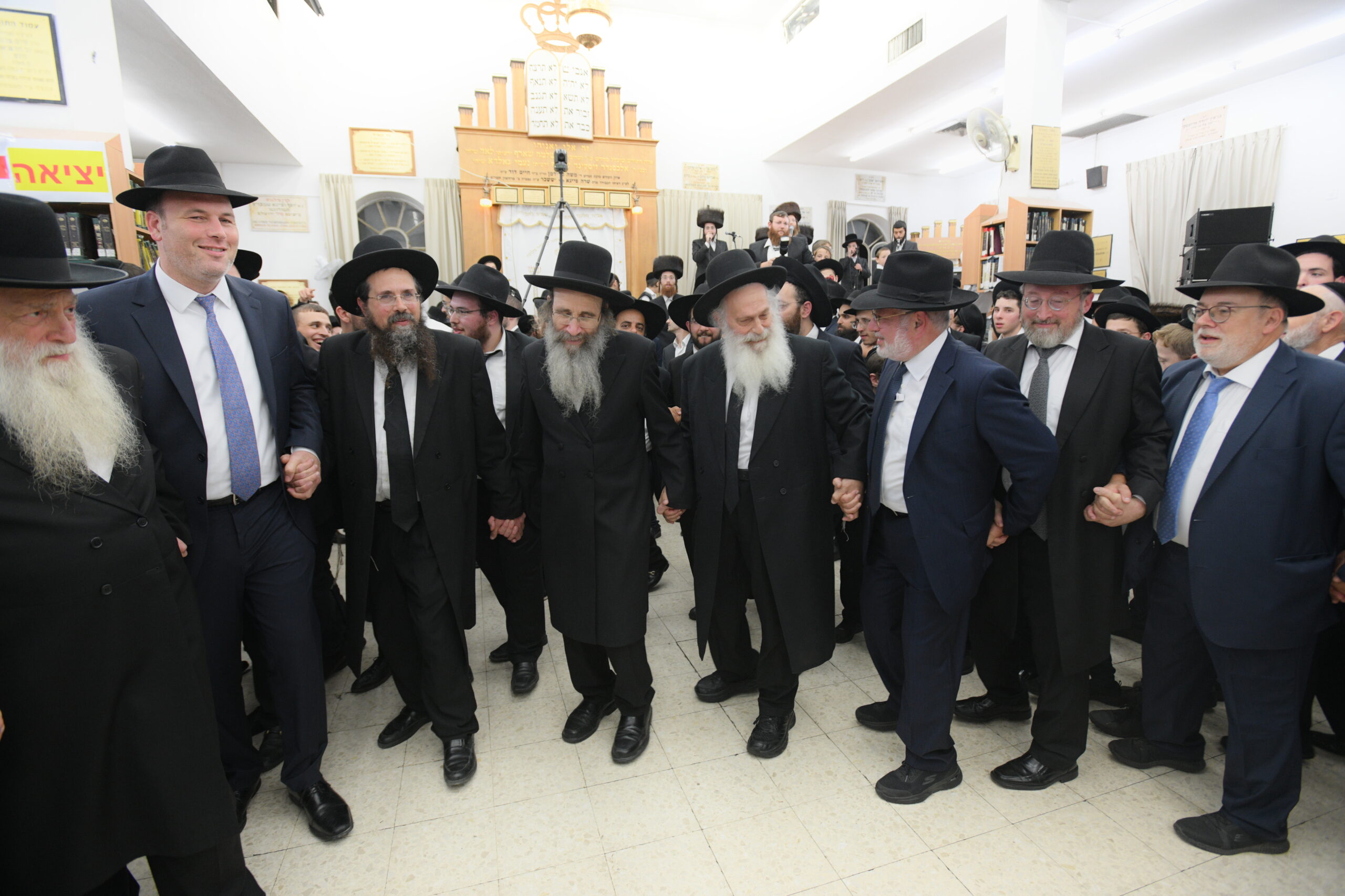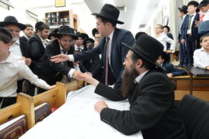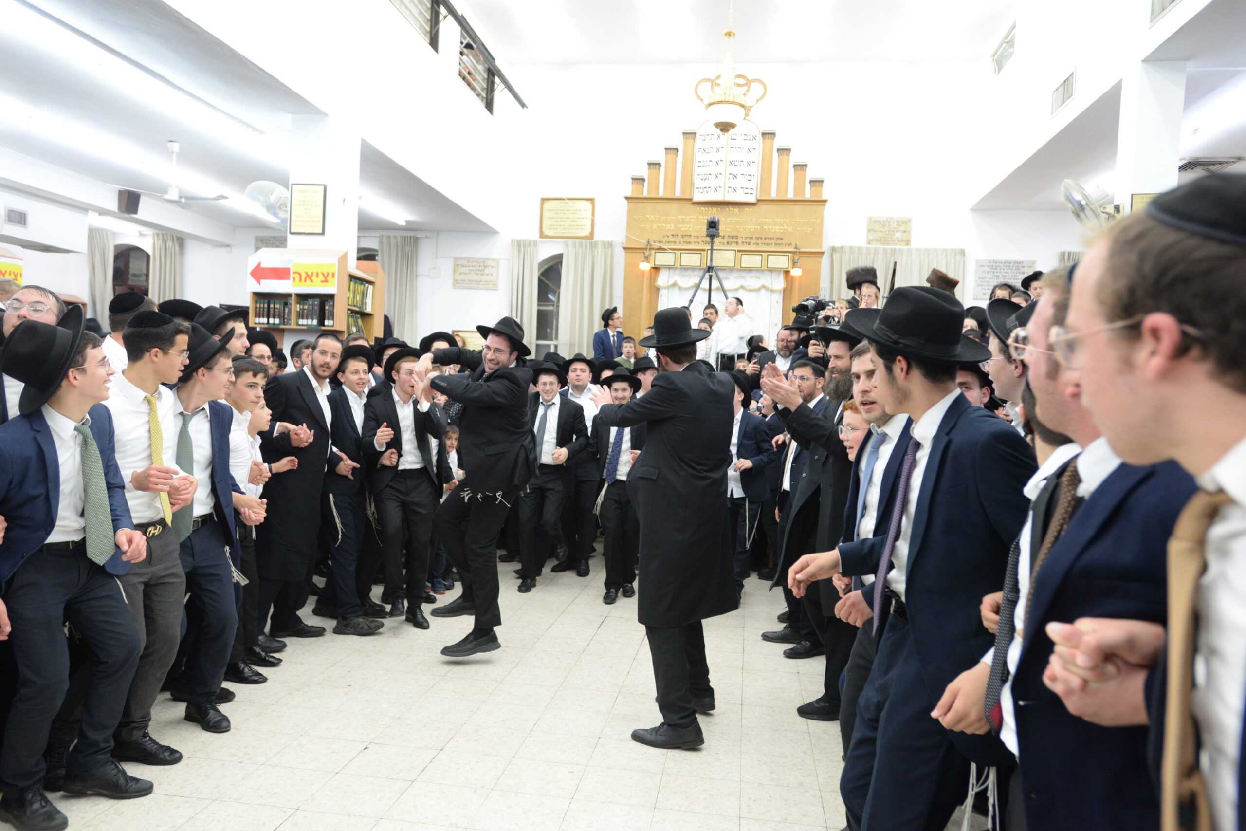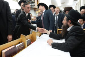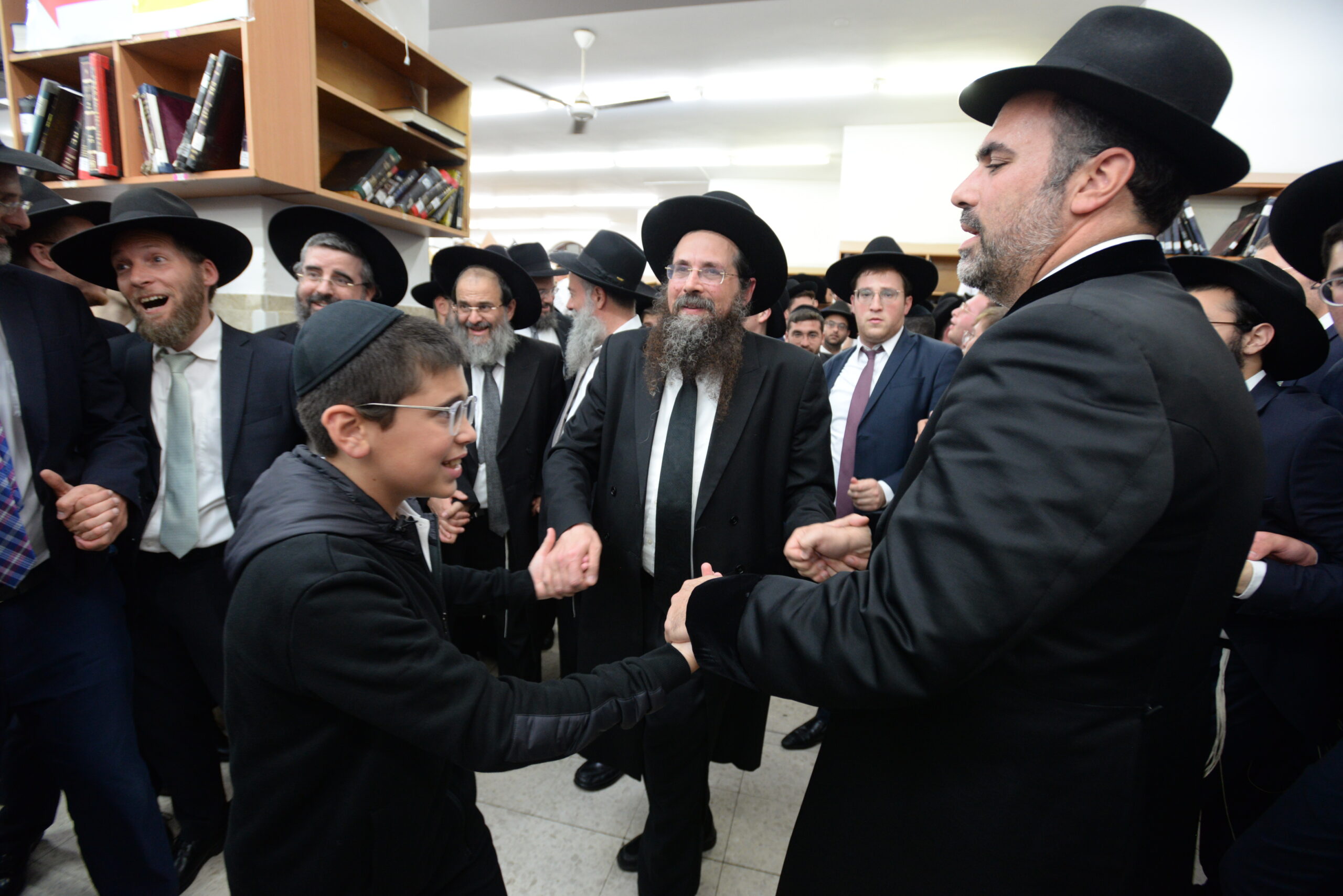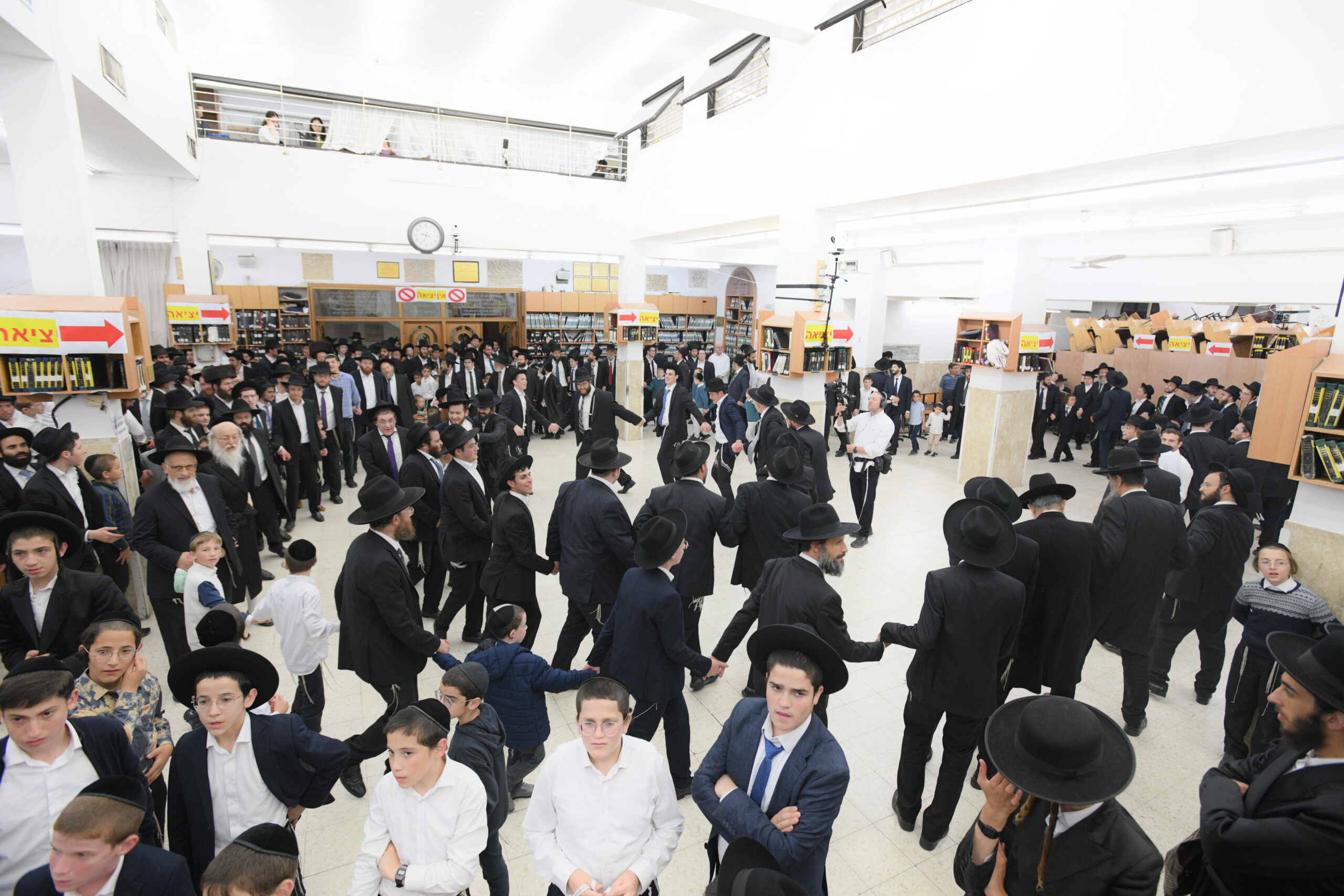 The Yeshiva’s Simchas Beis Hashoeva was held on Thursday, the second night of Chol Hamoed, beginning with music and dancing in the Mercazi Bais Medrash at 9:20. When the Roshei Yeshiva walked in about twenty minutes later, the olam broke out in tremendous excitement as they danced with their Rabbeim for several hours. Many visiting guests joined as well, taking the opportunity to wish the Roshei Yeshiva a Gut Yom Tov. All in all, there were around 9,000 people coming by throughout the night. The highlight of the event, as usual, was the kumzitz with inspiring songs of Yamim Noraim and Geulah at the end of the night, culminating in Leshana Haba’ah Bi’Yerushalayim.