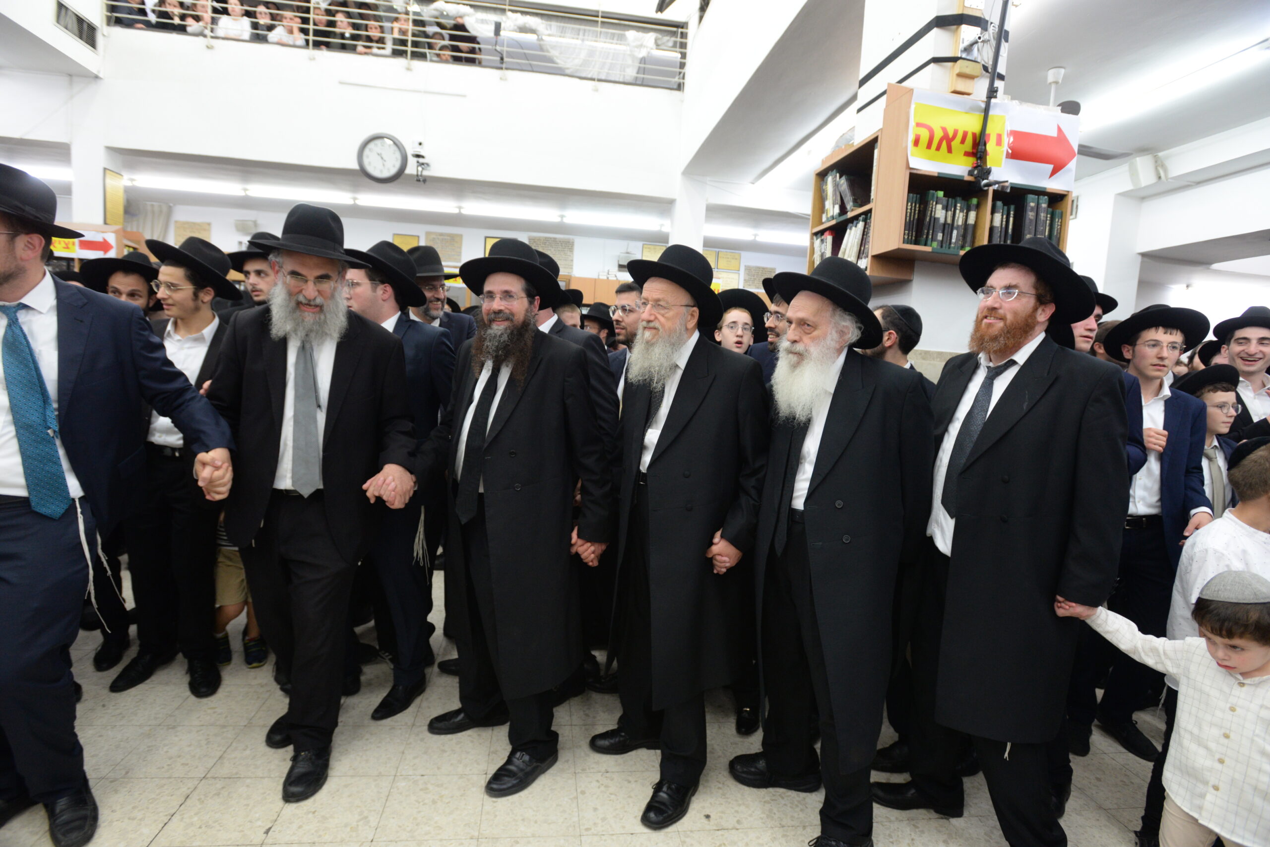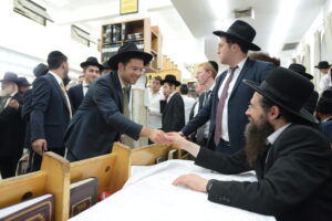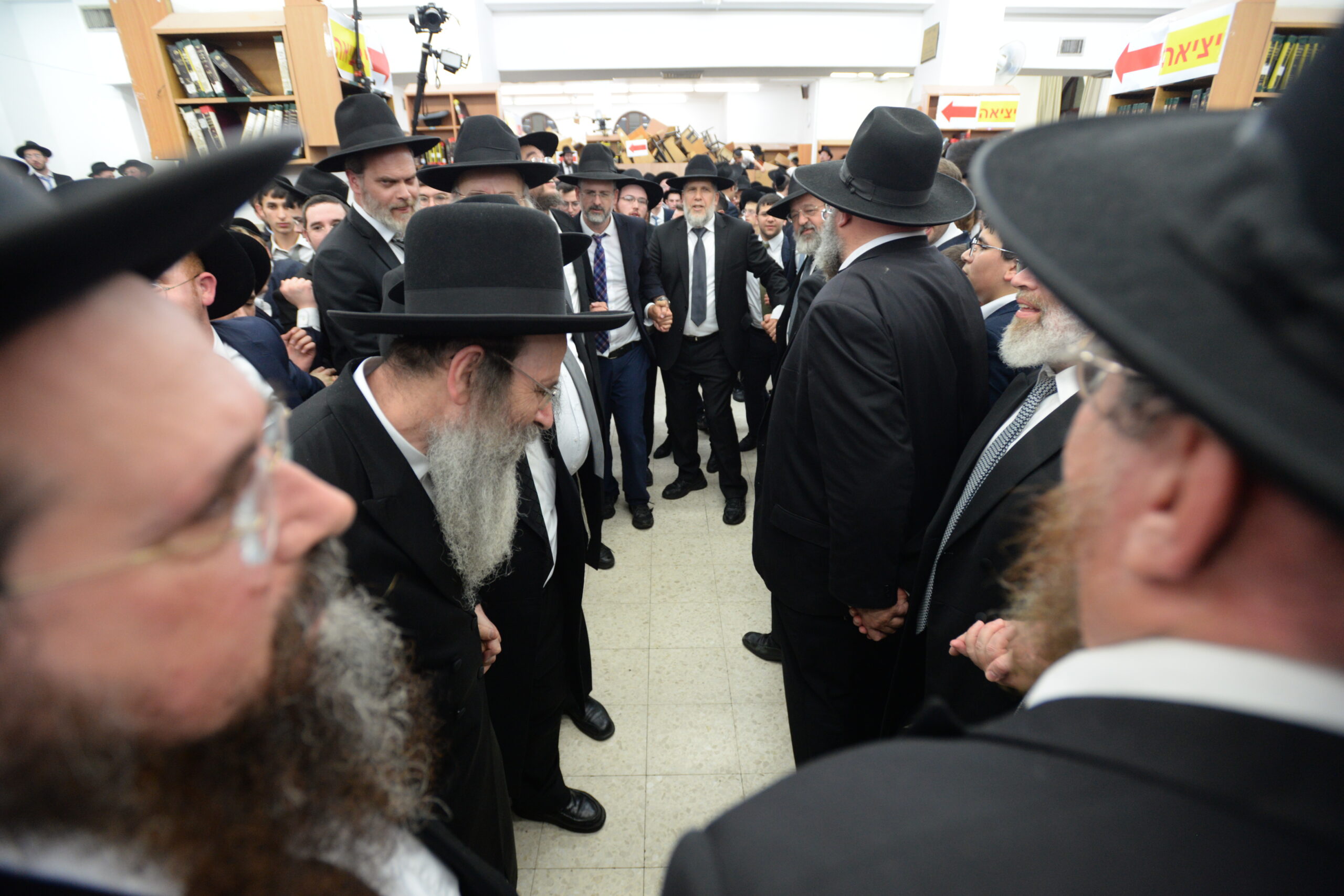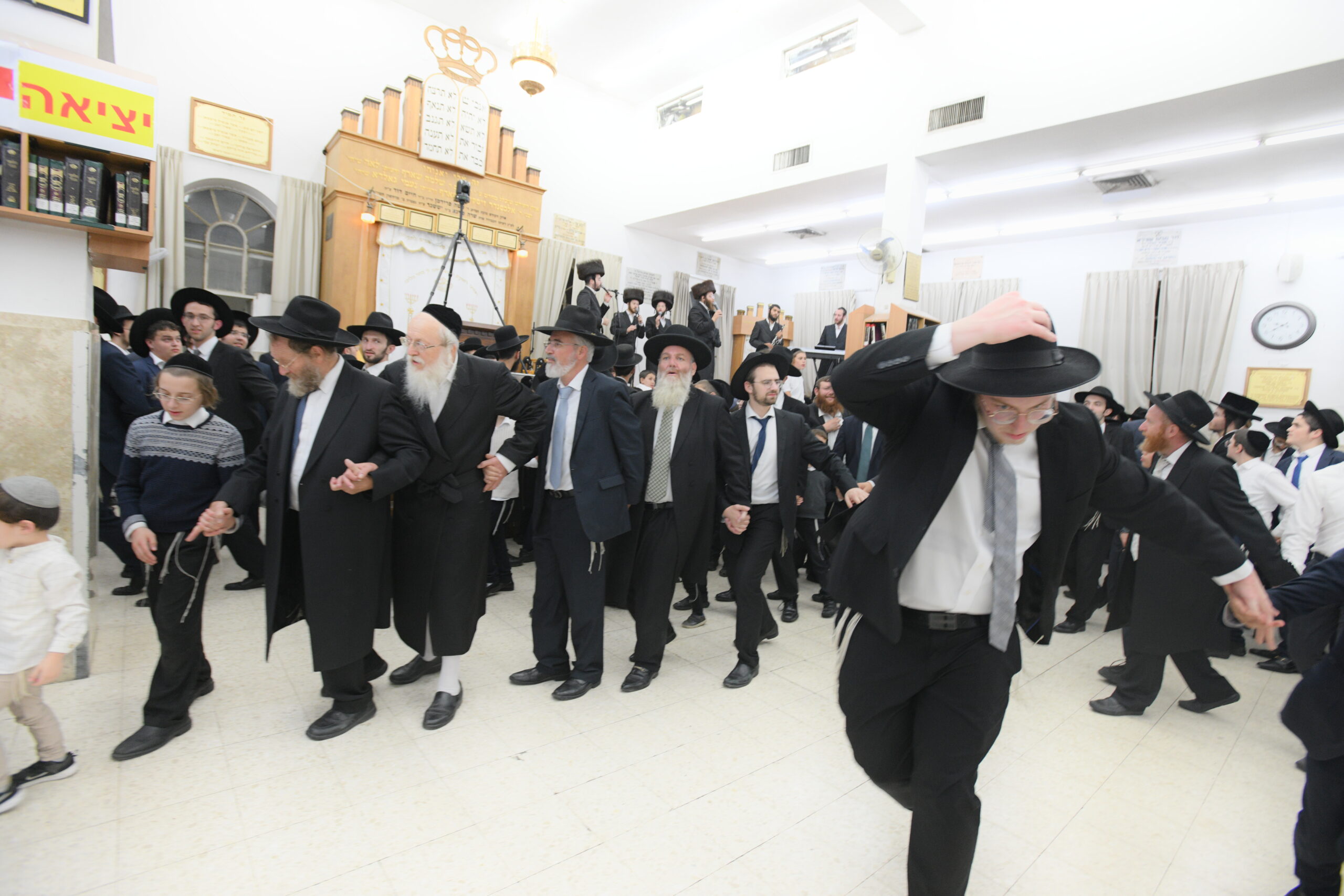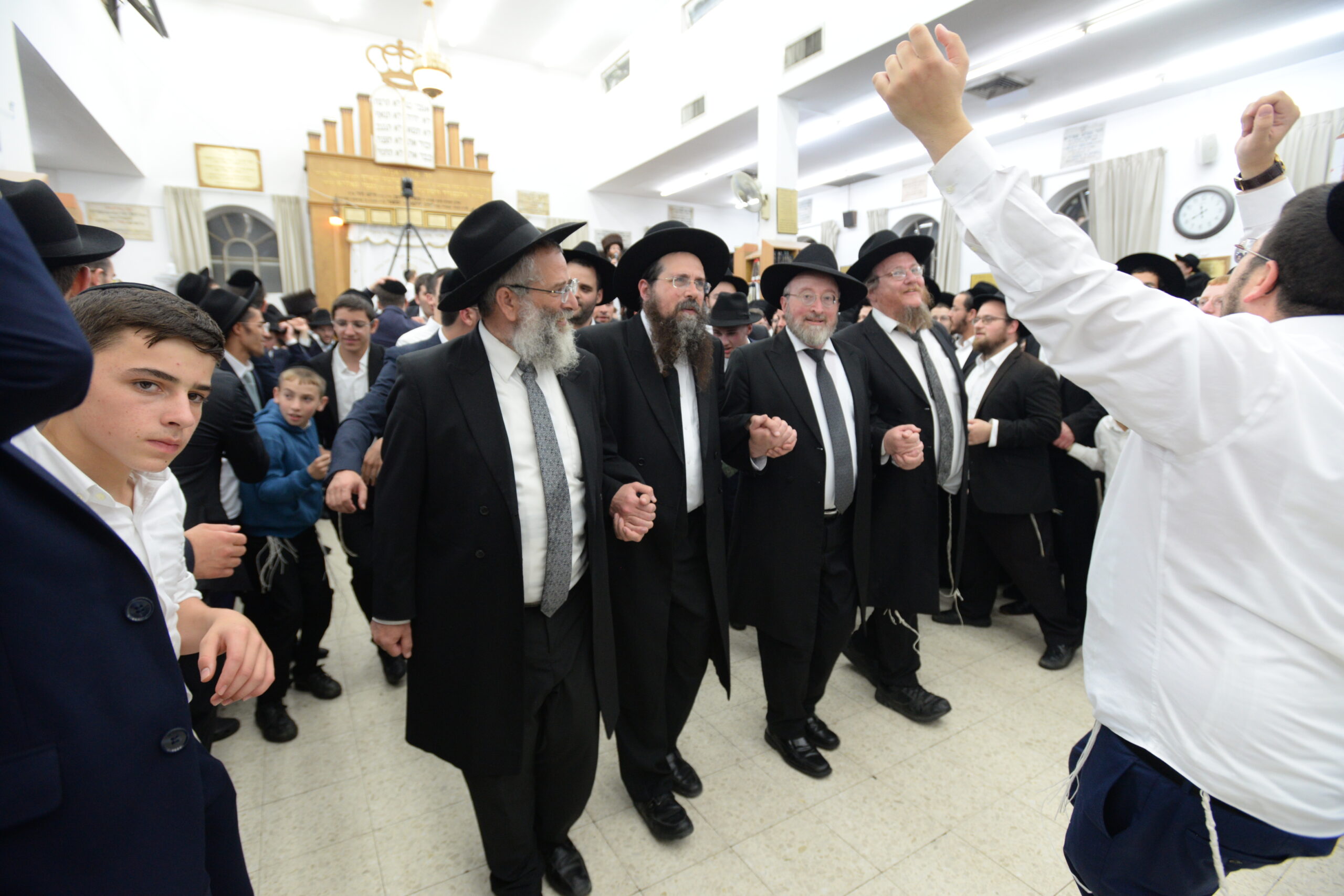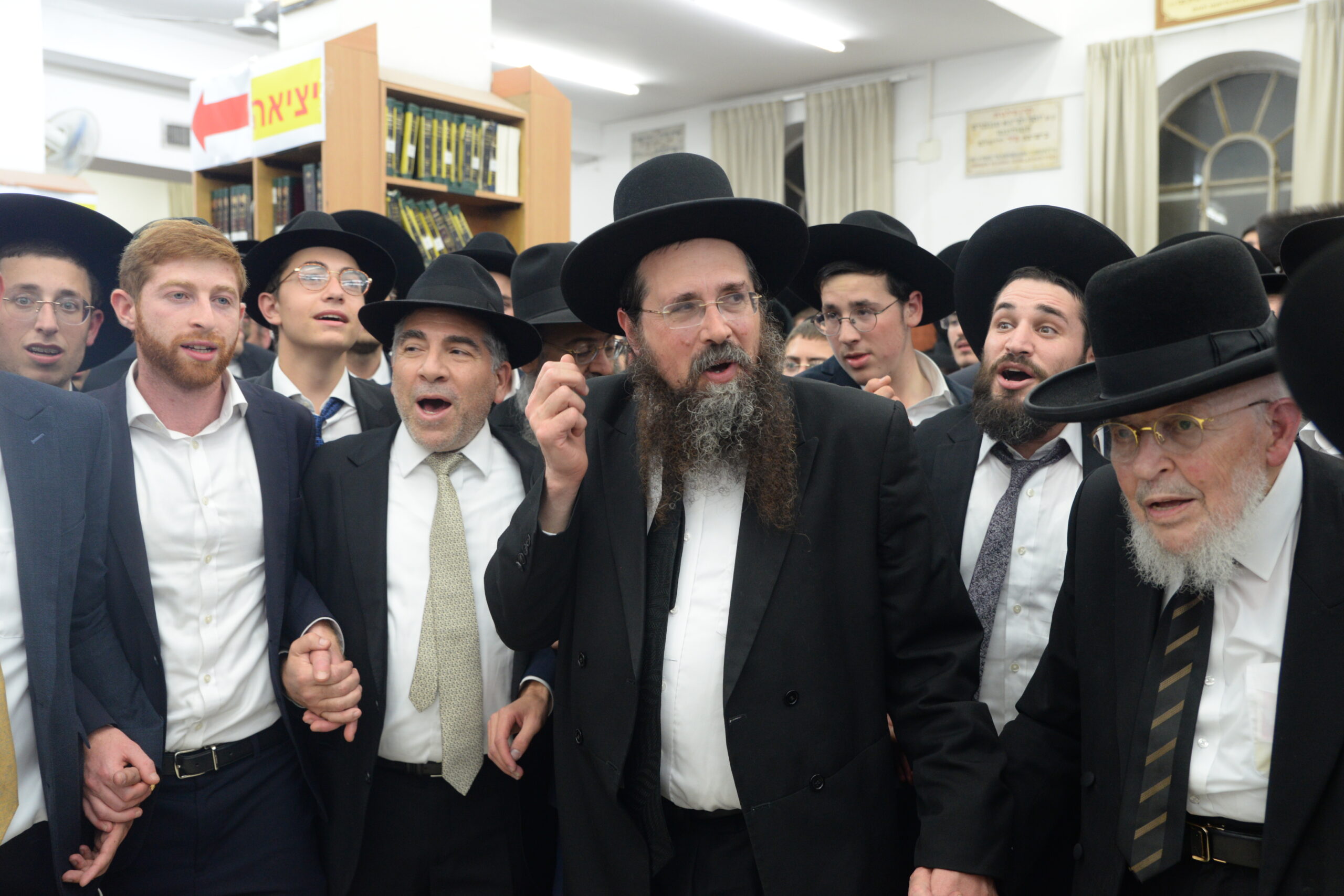 The Yeshiva’s Simchas Beis Hashoeva was held on Thursday, the second night of Chol Hamoed, beginning with music and dancing in the Mercazi Bais Medrash at 9:20. When the Roshei Yeshiva walked in about twenty minutes later, the olam broke out in tremendous excitement as they danced with their Rabbeim for several hours. Many visiting guests joined as well, taking the opportunity to wish the Roshei Yeshiva a Gut Yom Tov. All in all, there were around 9,000 people coming by throughout the night. The highlight of the event, as usual, was the kumzitz with inspiring songs of Yamim Noraim and Geulah at the end of the night, culminating in Leshana Haba’ah Bi’Yerushalayim.