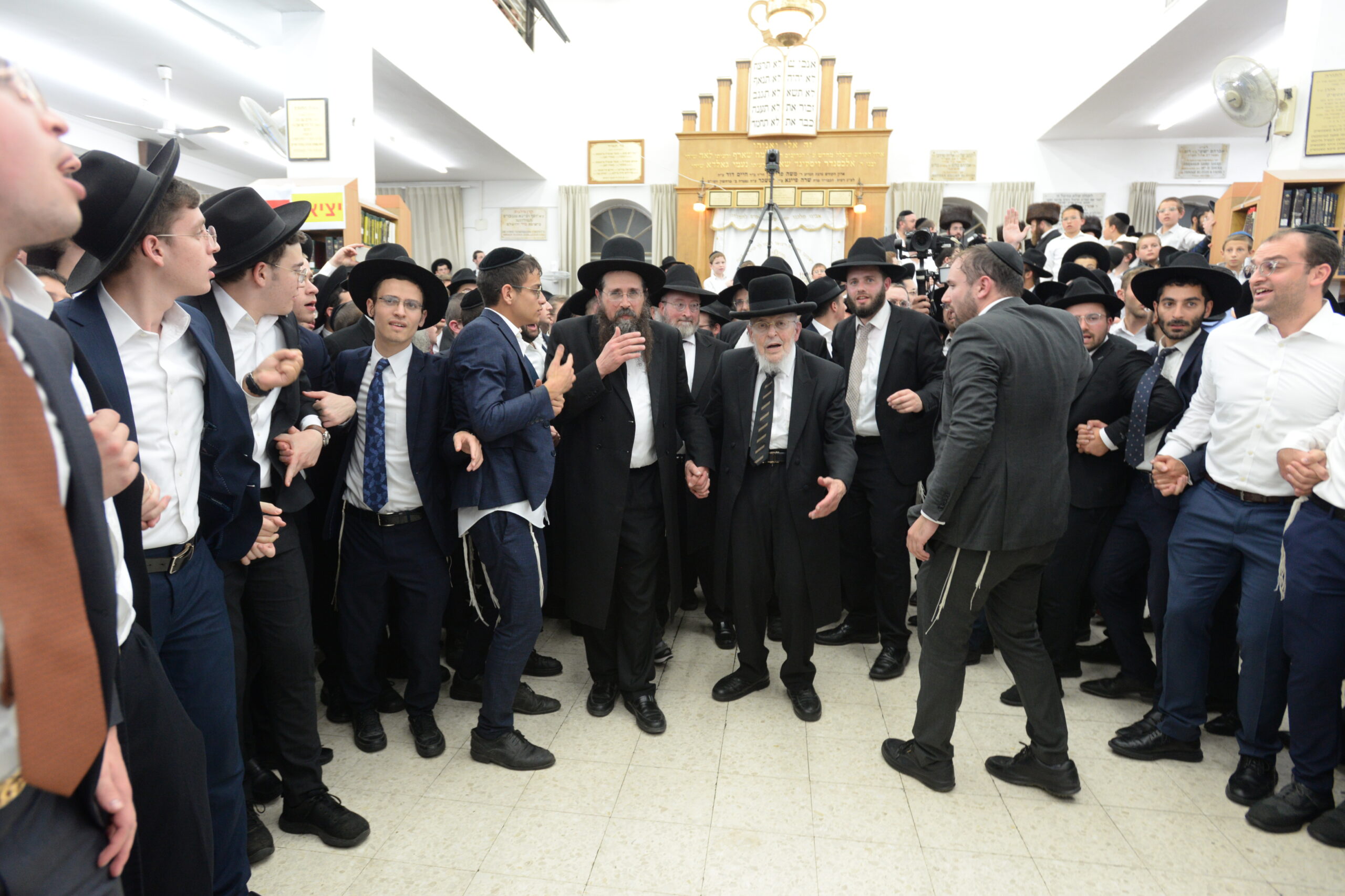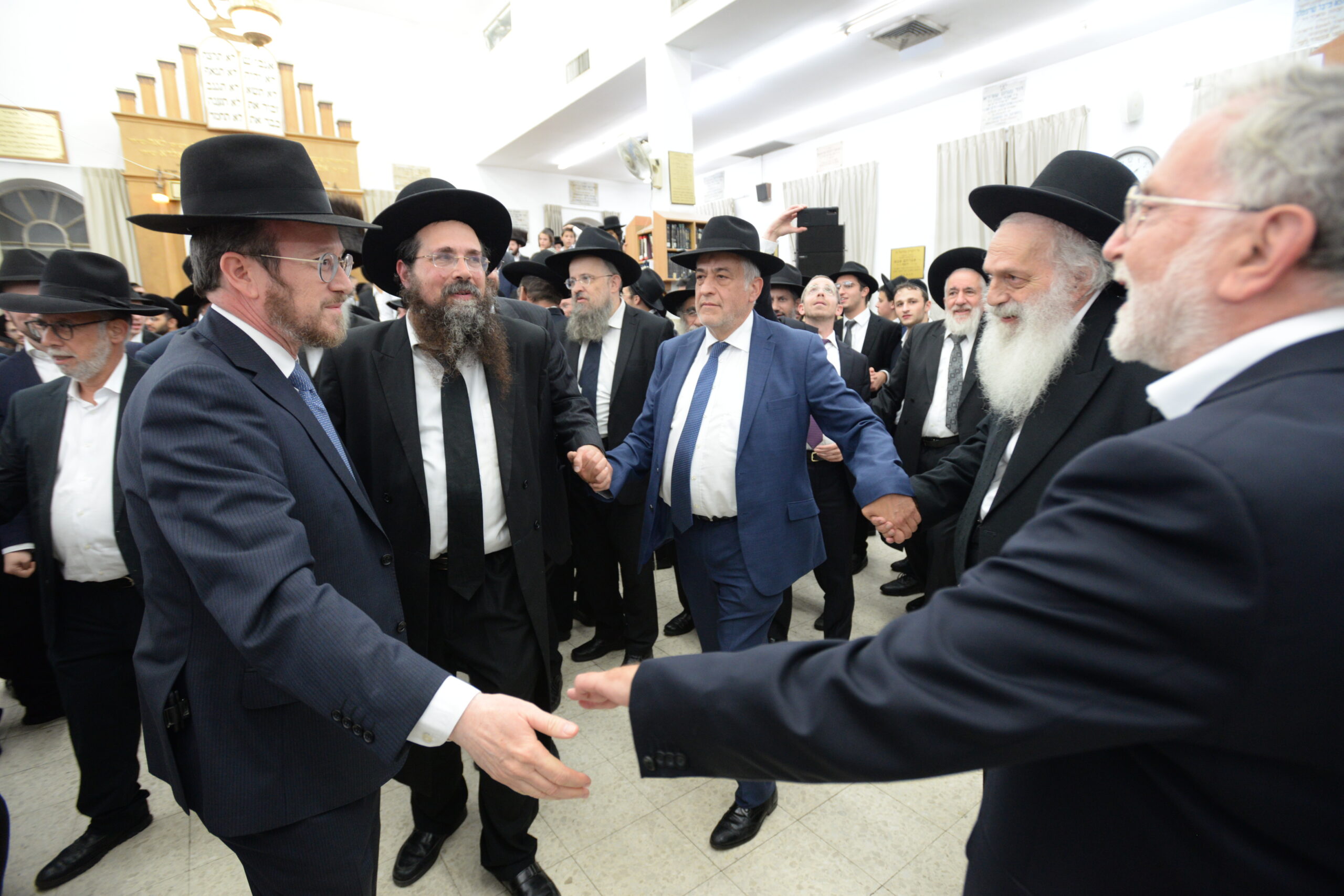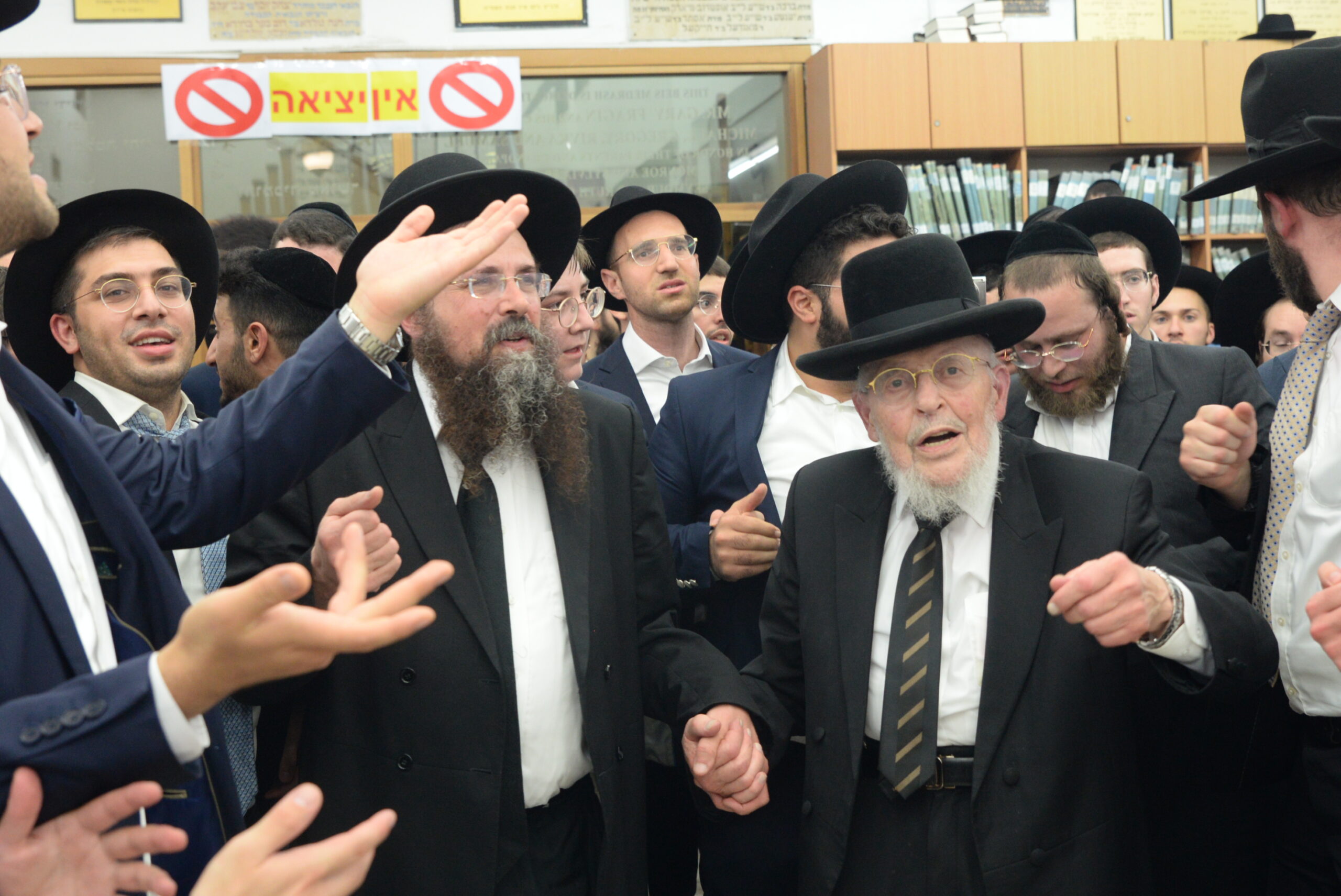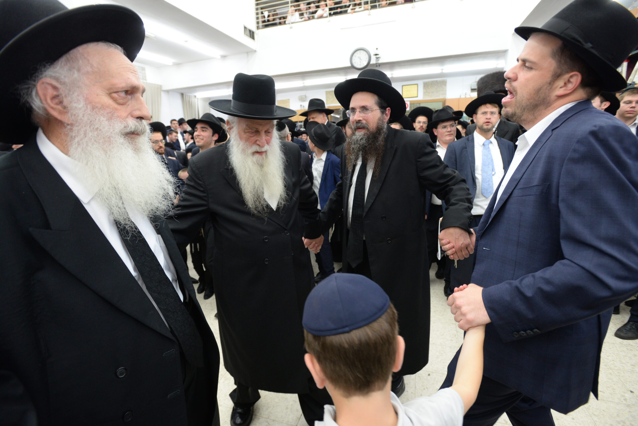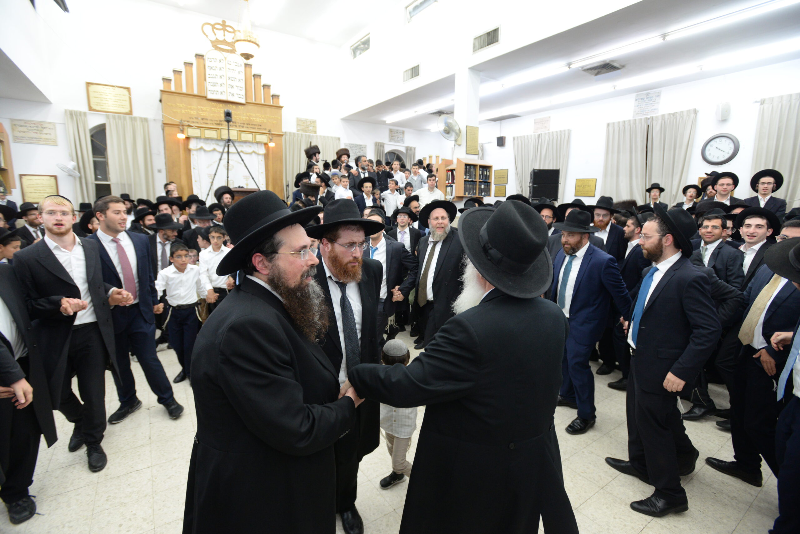 The Yeshiva’s Simchas Beis Hashoeva was held on Thursday, the second night of Chol Hamoed, beginning with music and dancing in the Mercazi Bais Medrash at 9:20. When the Roshei Yeshiva walked in about twenty minutes later, the olam broke out in tremendous excitement as they danced with their Rabbeim for several hours. Many visiting guests joined as well, taking the opportunity to wish the Roshei Yeshiva a Gut Yom Tov. All in all, there were around 9,000 people coming by throughout the night. The highlight of the event, as usual, was the kumzitz with inspiring songs of Yamim Noraim and Geulah at the end of the night, culminating in Leshana Haba’ah Bi’Yerushalayim.