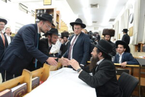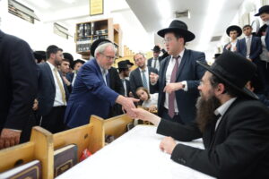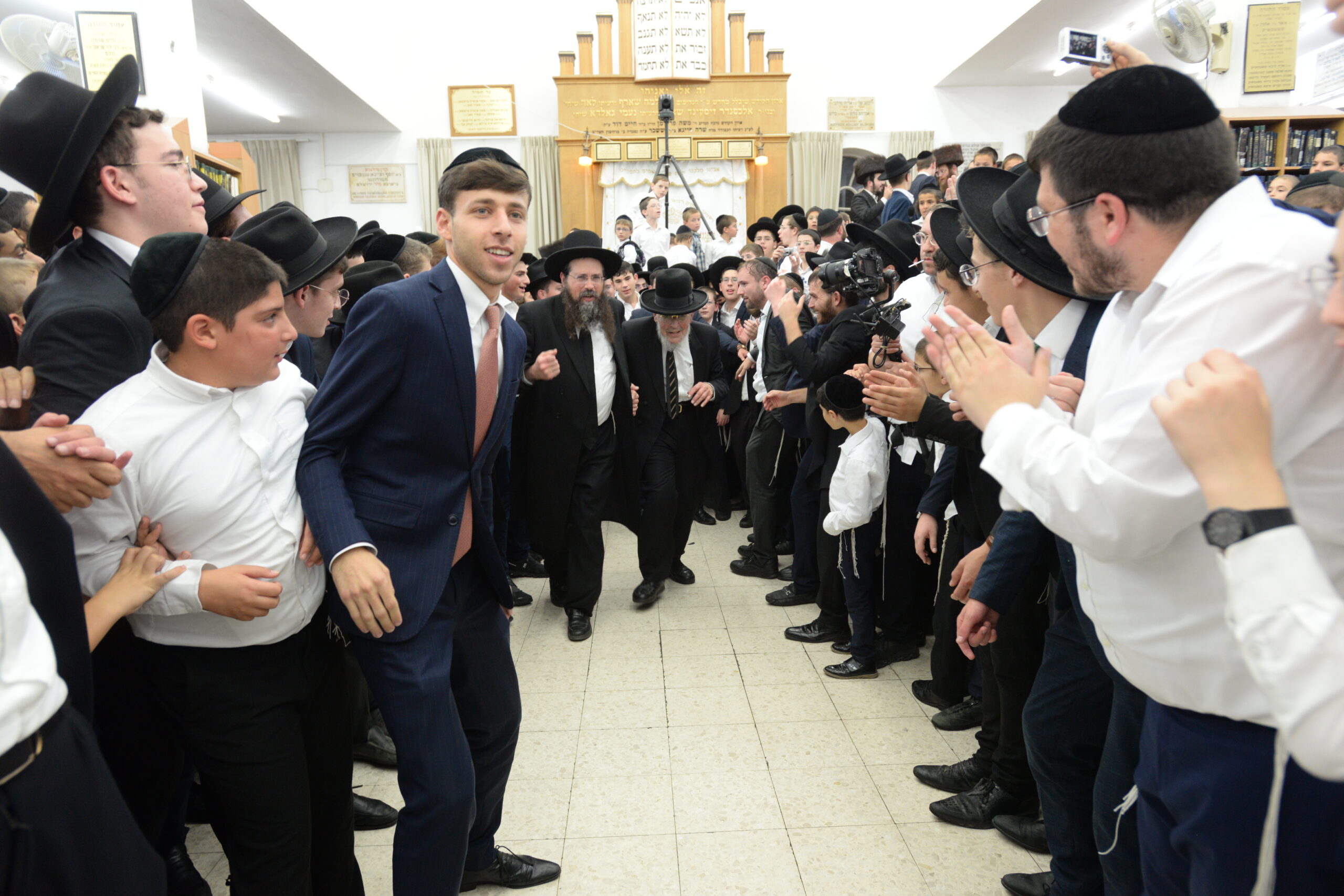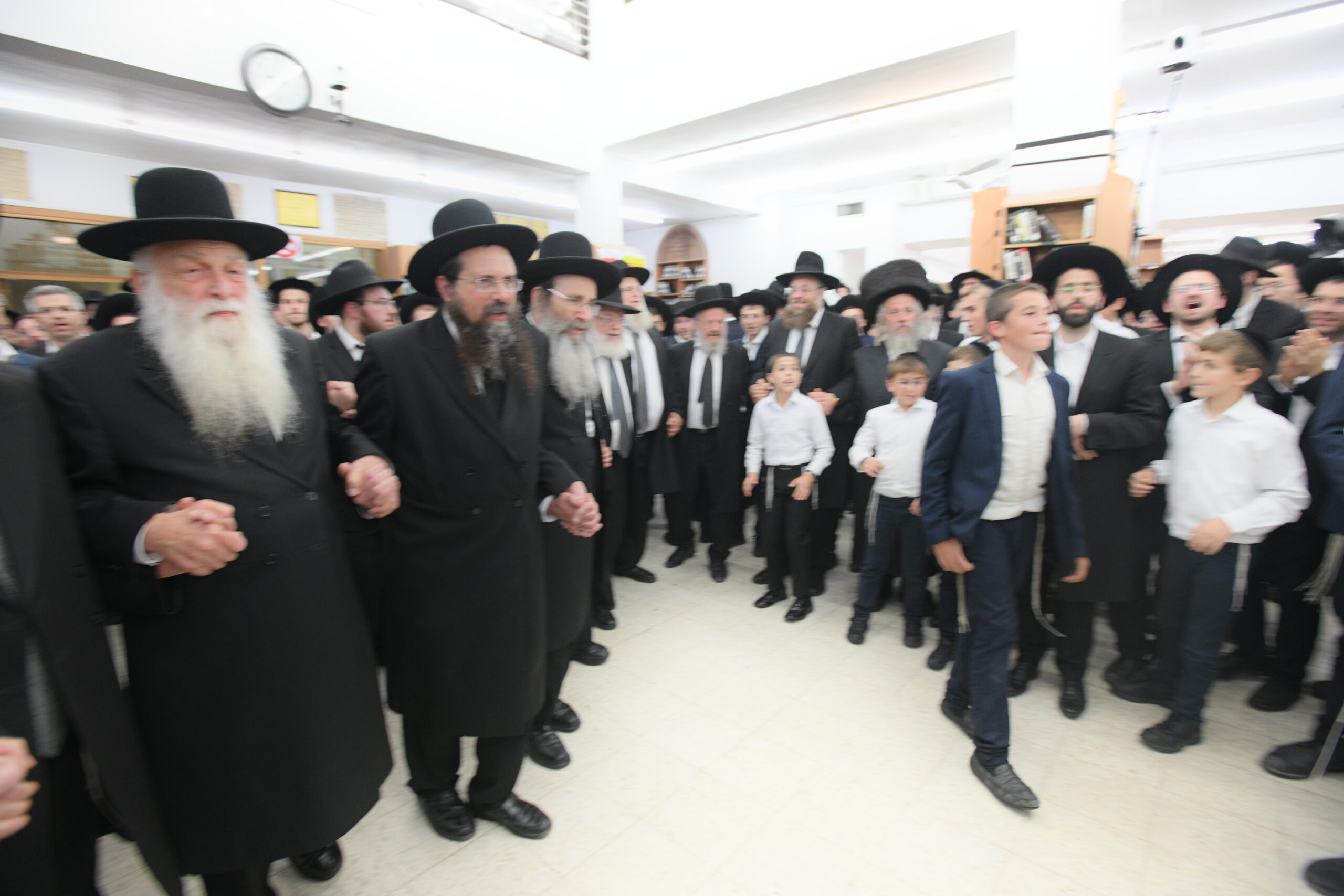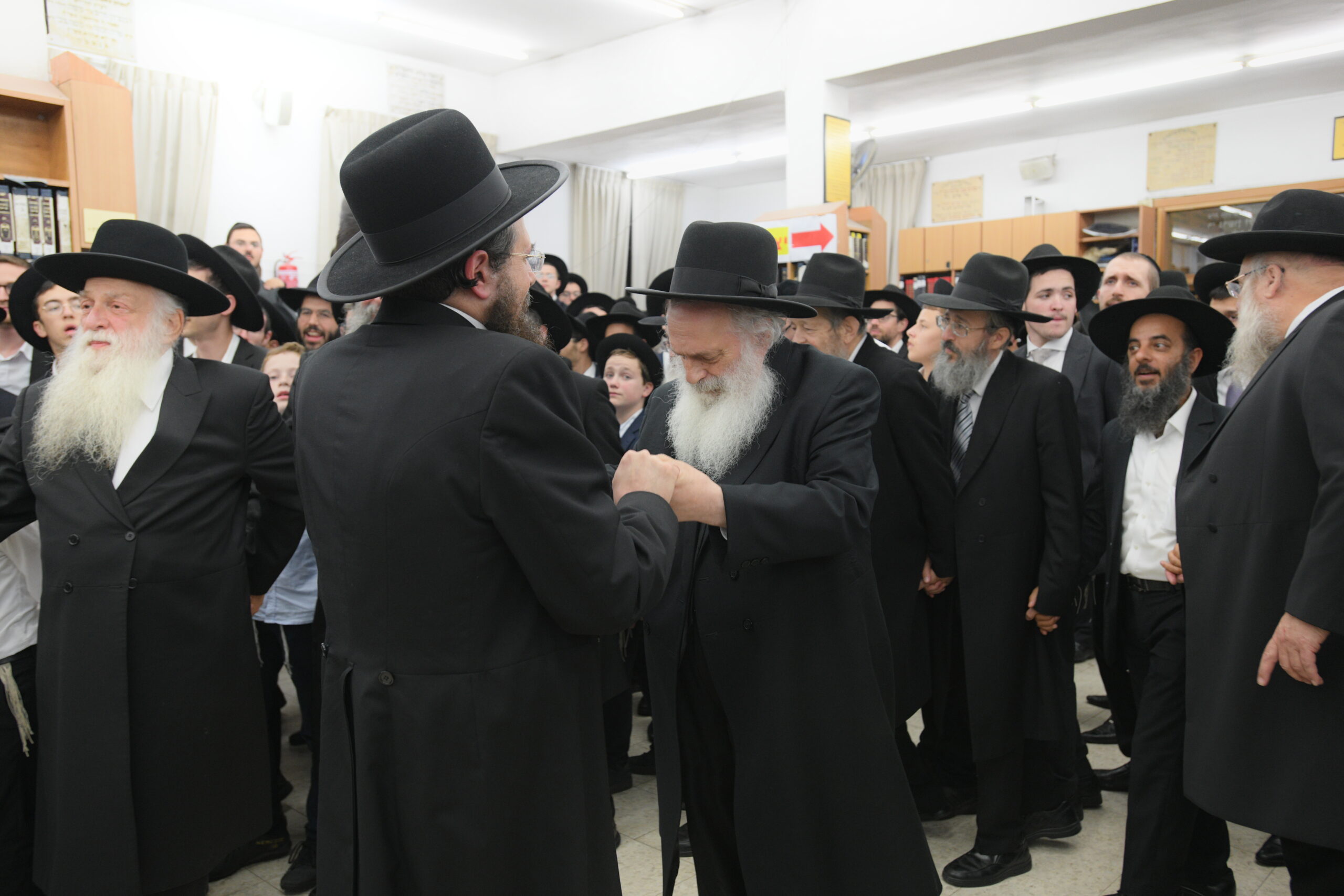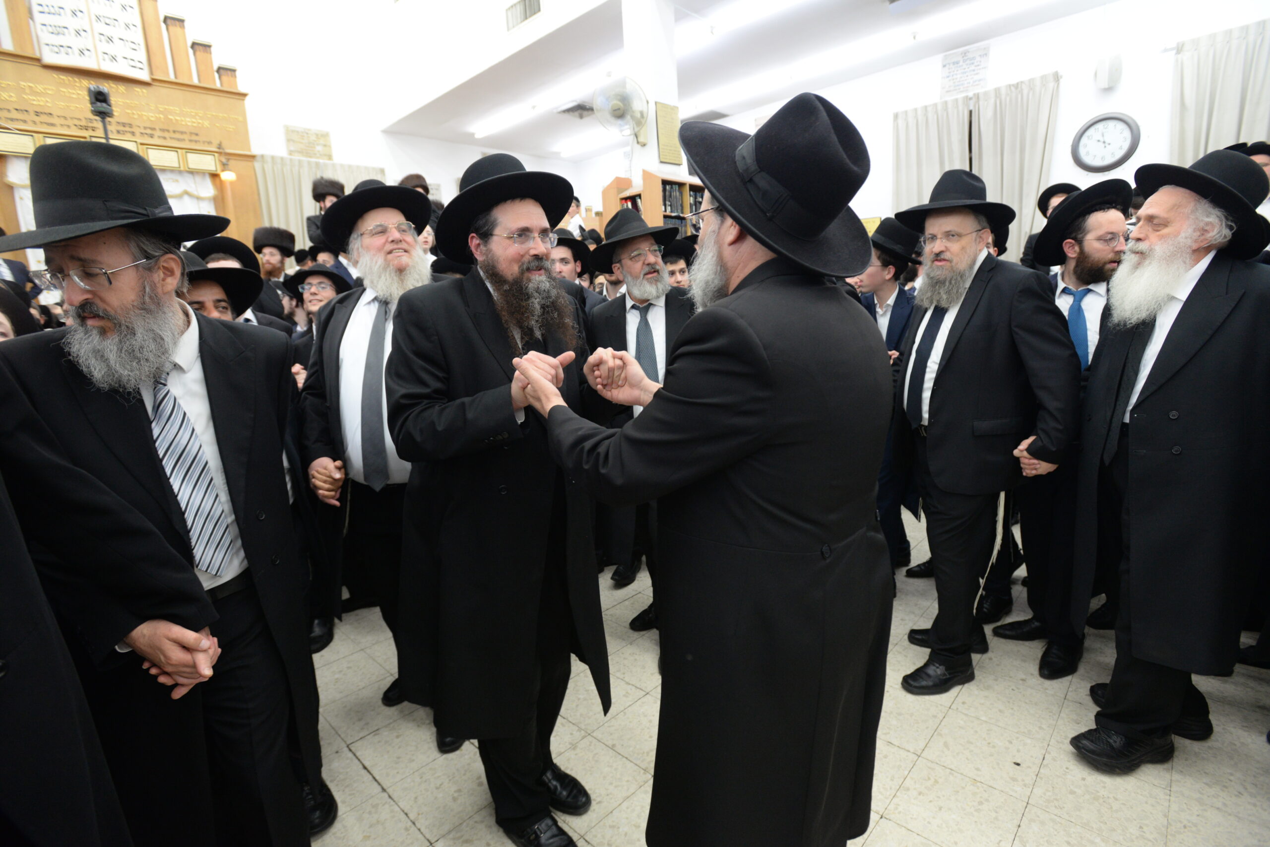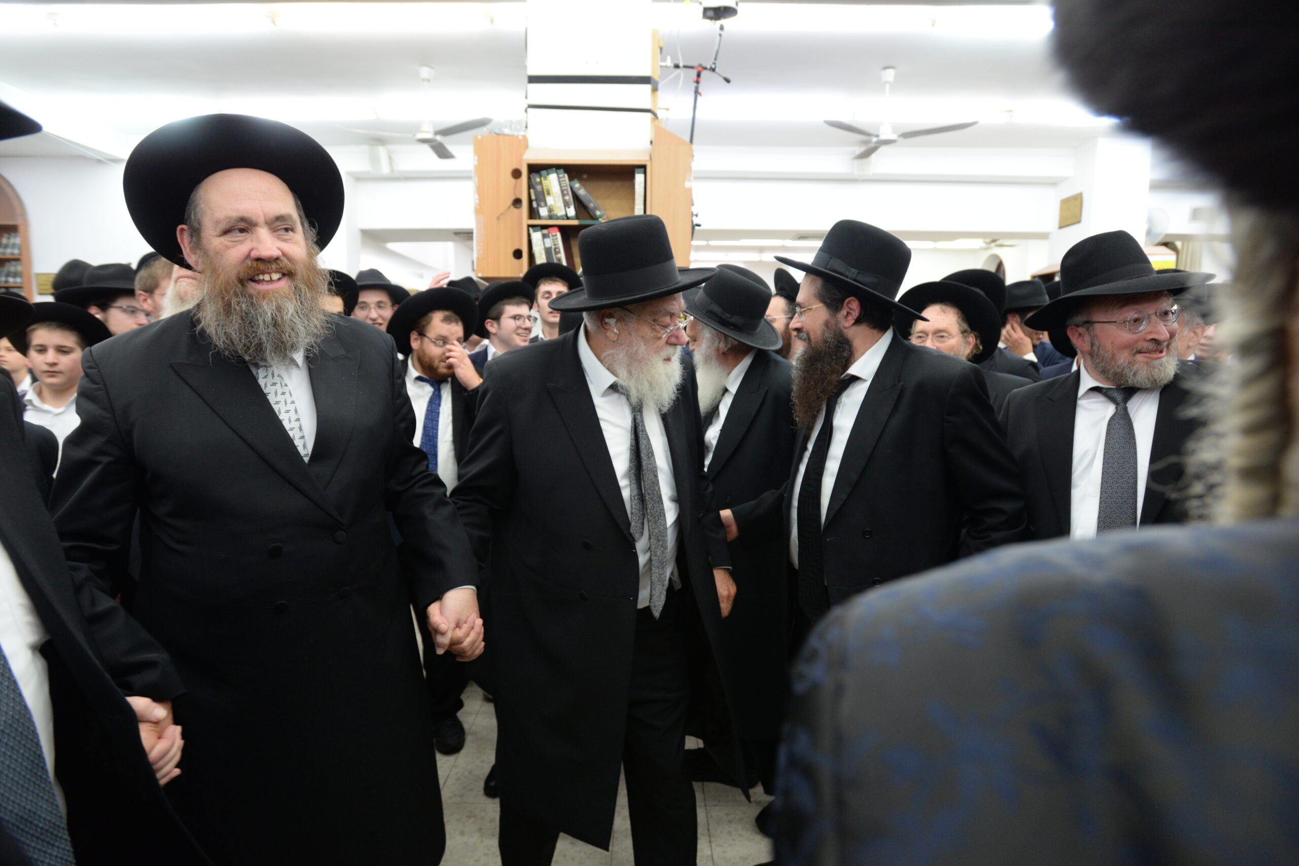The Yeshiva’s Simchas Beis Hashoeva was held on Thursday, the second night of Chol Hamoed, beginning with music and dancing in the Mercazi Bais Medrash at 9:20. When the Roshei Yeshiva walked in about twenty minutes later, the olam broke out in tremendous excitement as they danced with their Rabbeim for several hours. Many visiting guests joined as well, taking the opportunity to wish the Roshei Yeshiva a Gut Yom Tov. All in all, there were around 9,000 people coming by throughout the night. The highlight of the event, as usual, was the kumzitz with inspiring songs of Yamim Noraim and Geulah at the end of the night, culminating in Leshana Haba’ah Bi’Yerushalayim.
