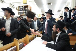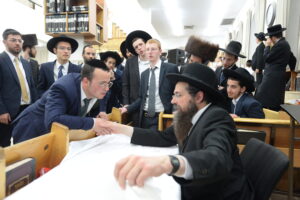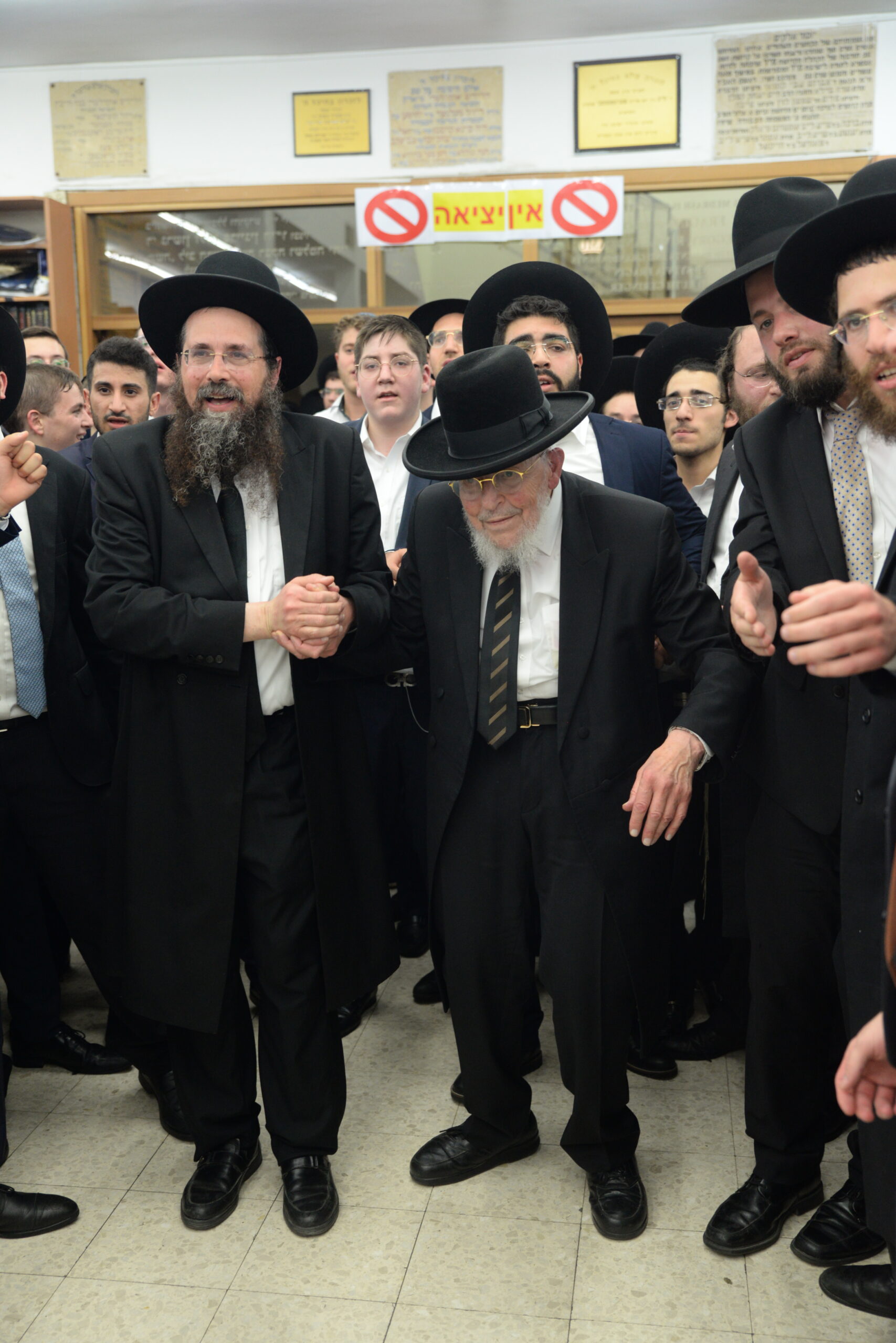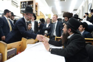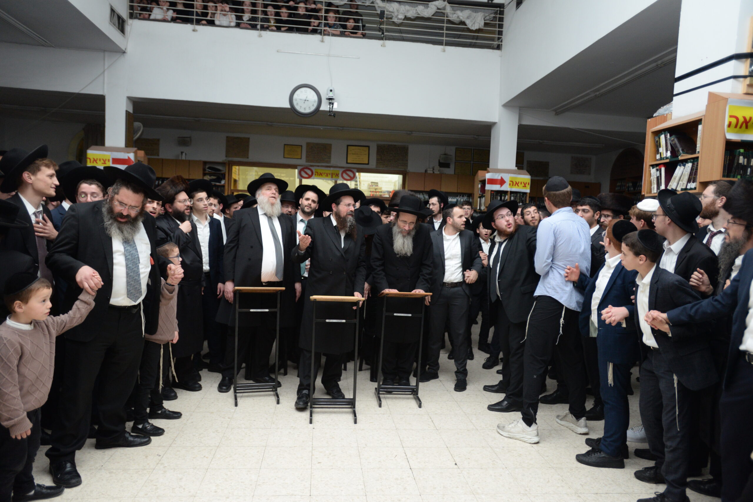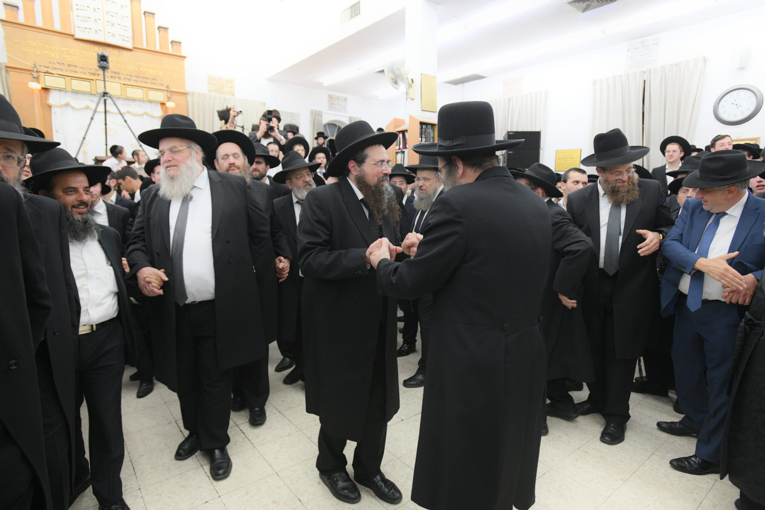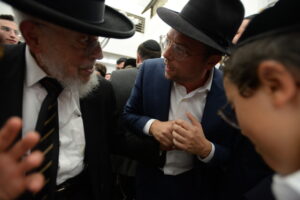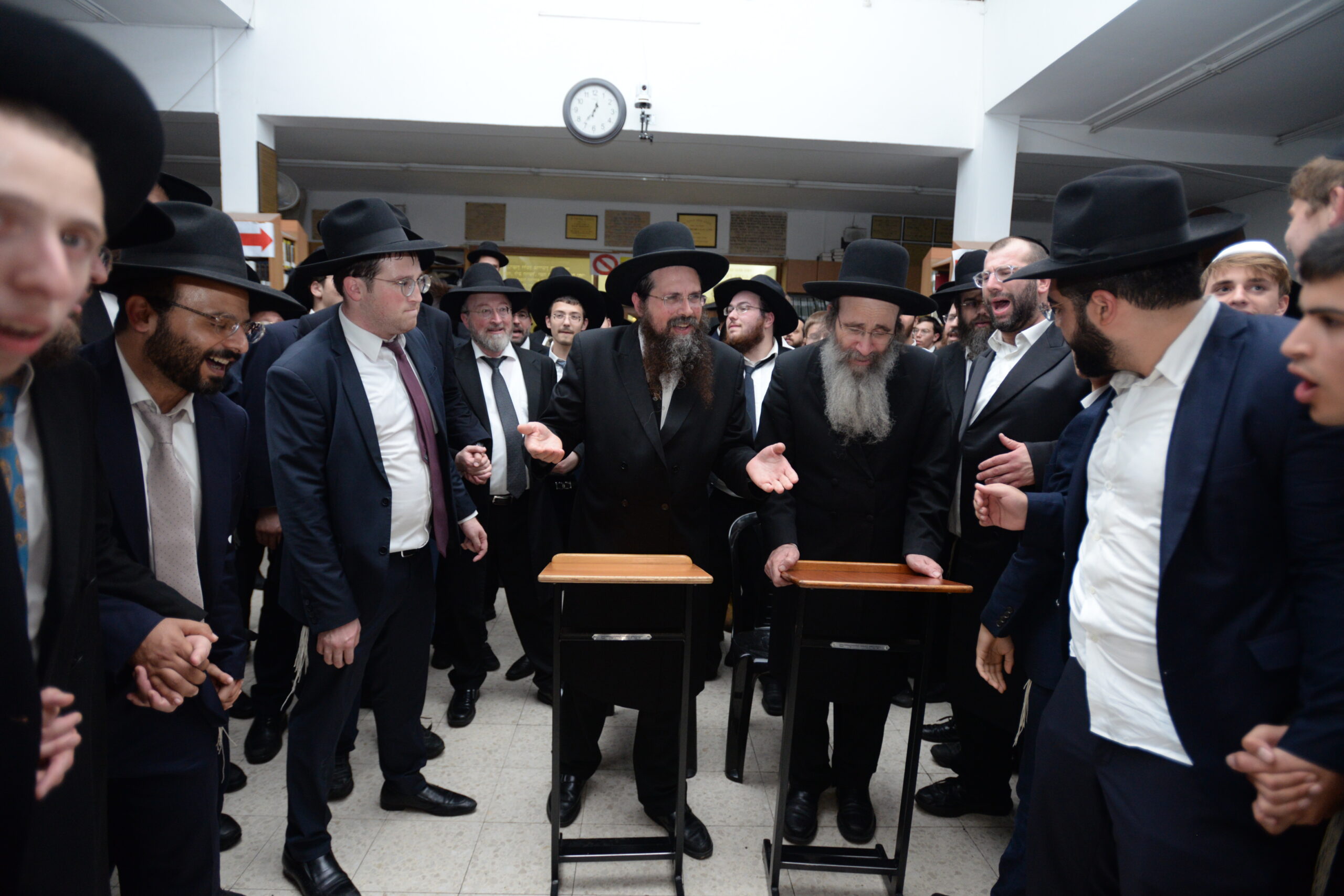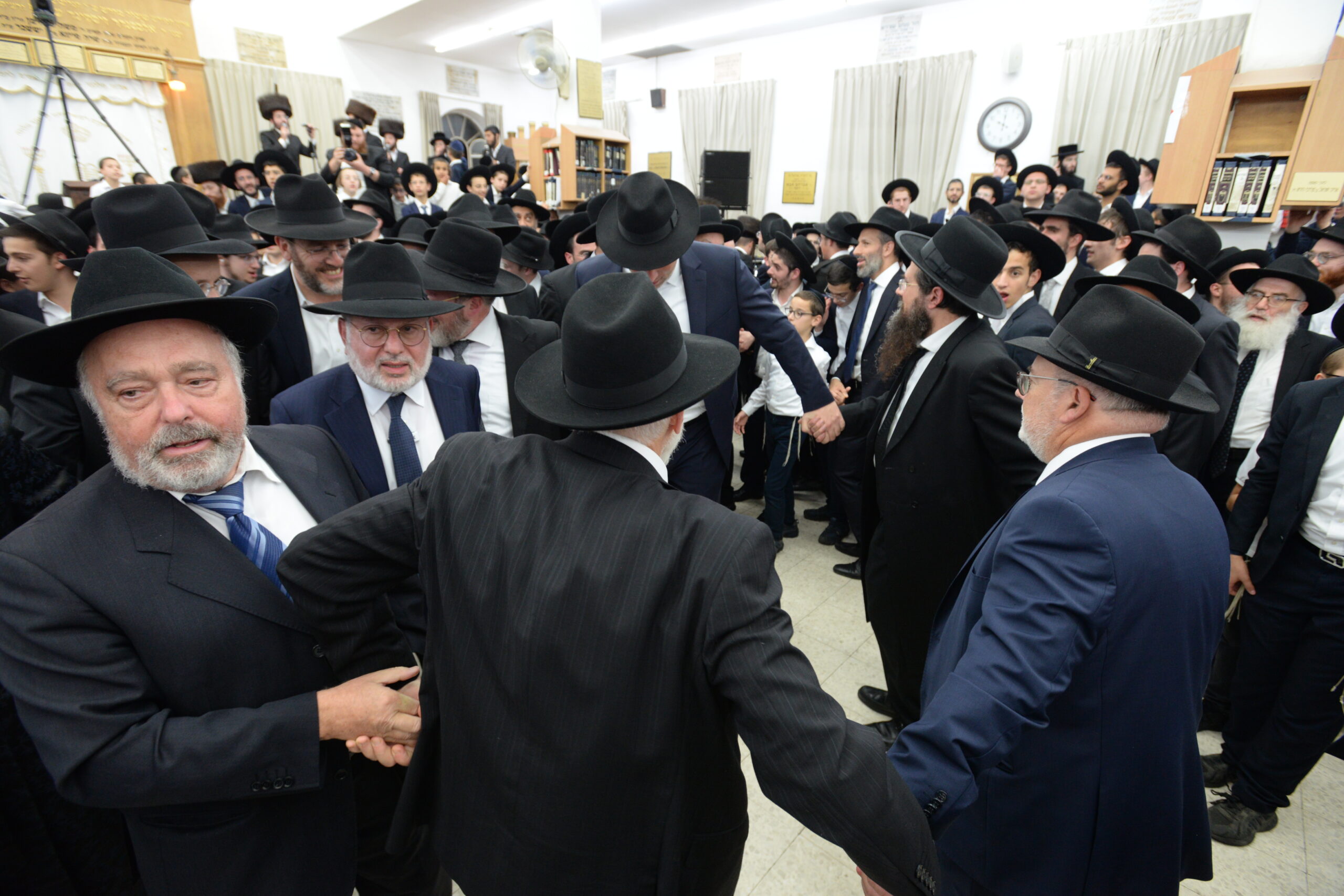 The Yeshiva’s Simchas Beis Hashoeva was held on Thursday, the second night of Chol Hamoed, beginning with music and dancing in the Mercazi Bais Medrash at 9:20. When the Roshei Yeshiva walked in about twenty minutes later, the olam broke out in tremendous excitement as they danced with their Rabbeim for several hours. Many visiting guests joined as well, taking the opportunity to wish the Roshei Yeshiva a Gut Yom Tov. All in all, there were around 9,000 people coming by throughout the night. The highlight of the event, as usual, was the kumzitz with inspiring songs of Yamim Noraim and Geulah at the end of the night, culminating in Leshana Haba’ah Bi’Yerushalayim.