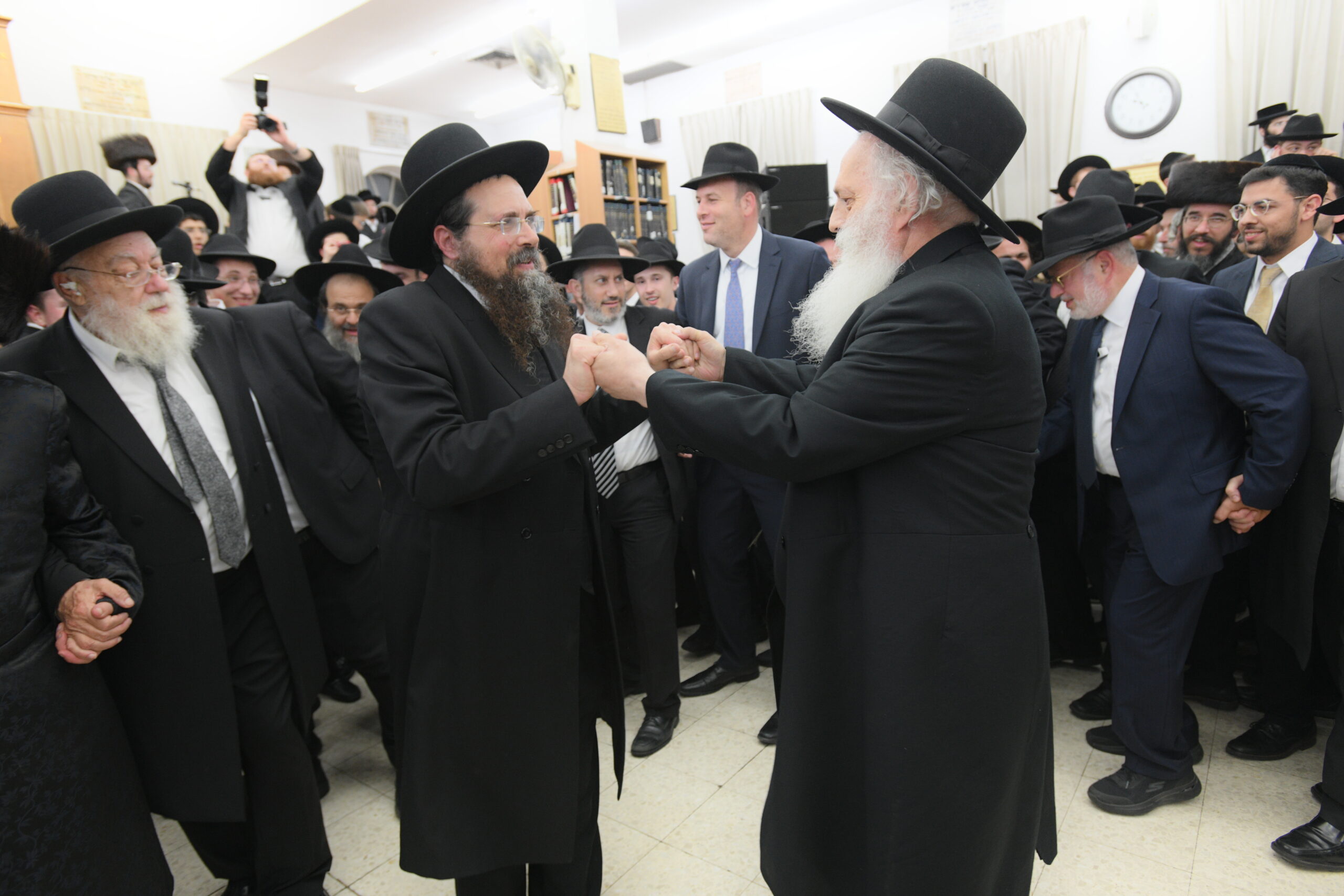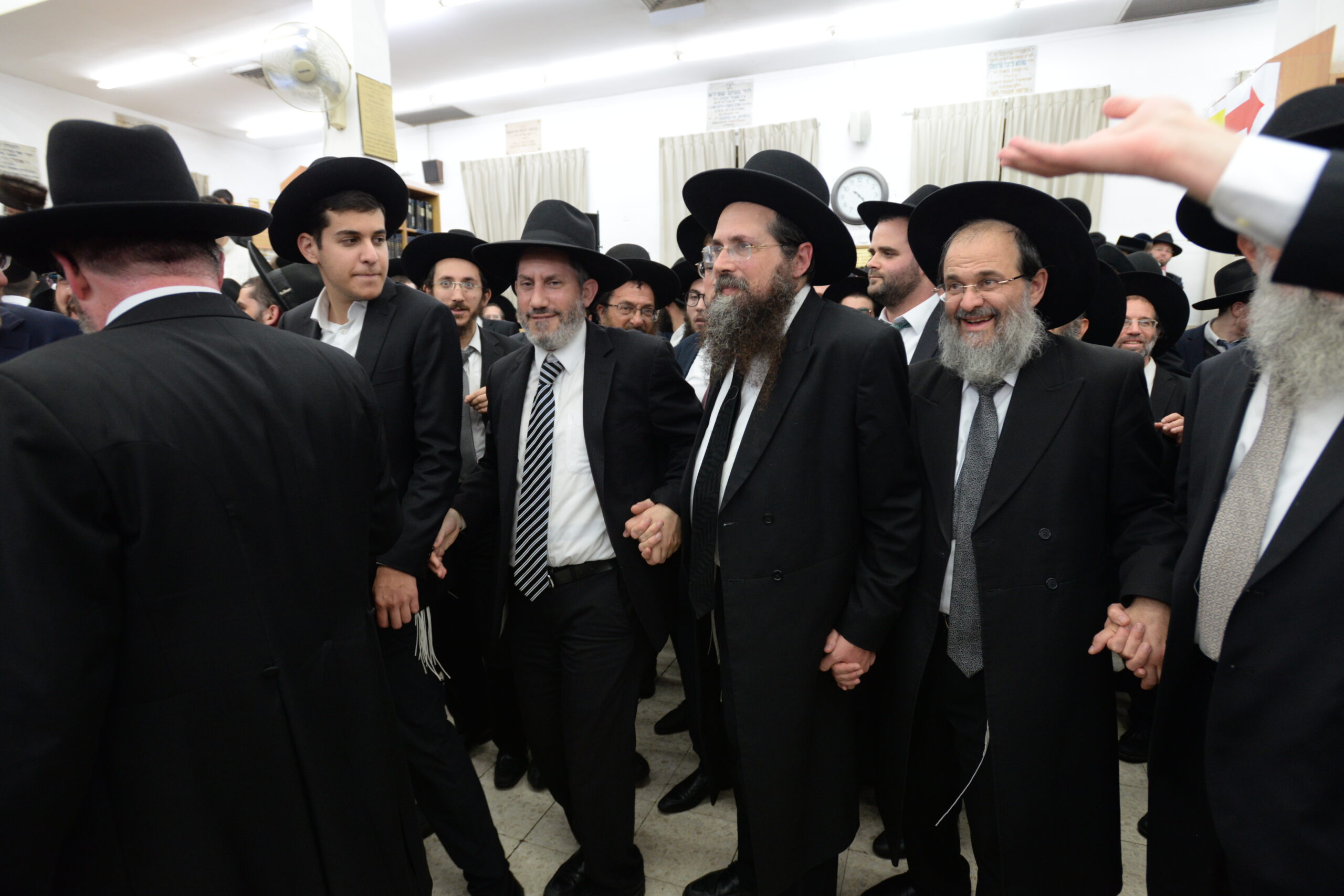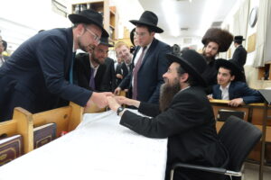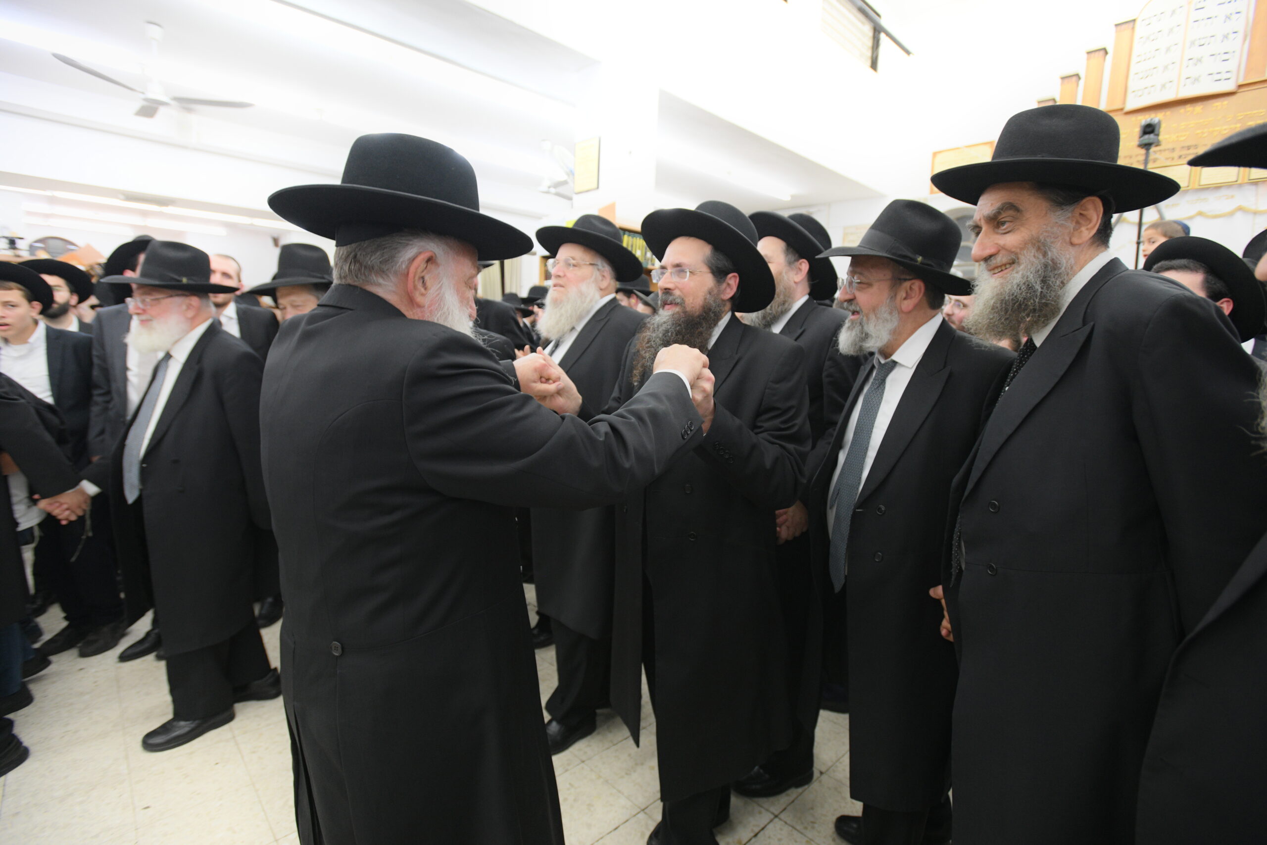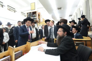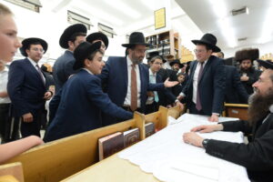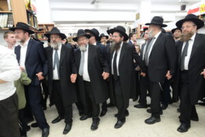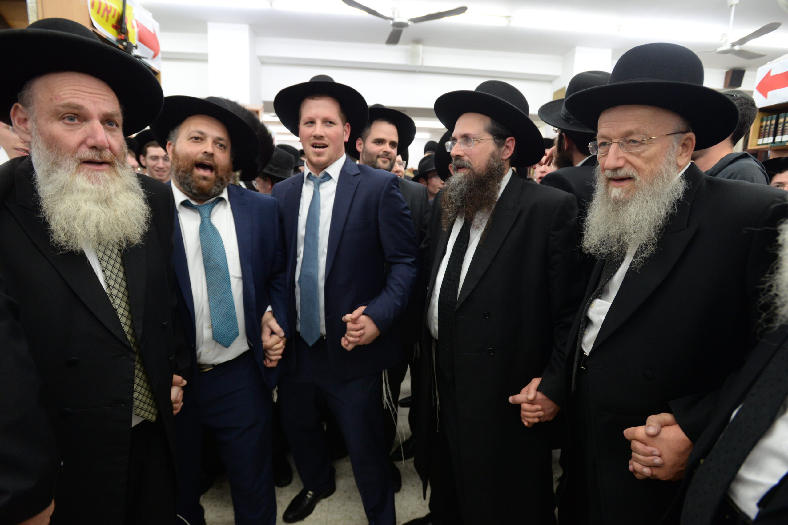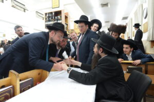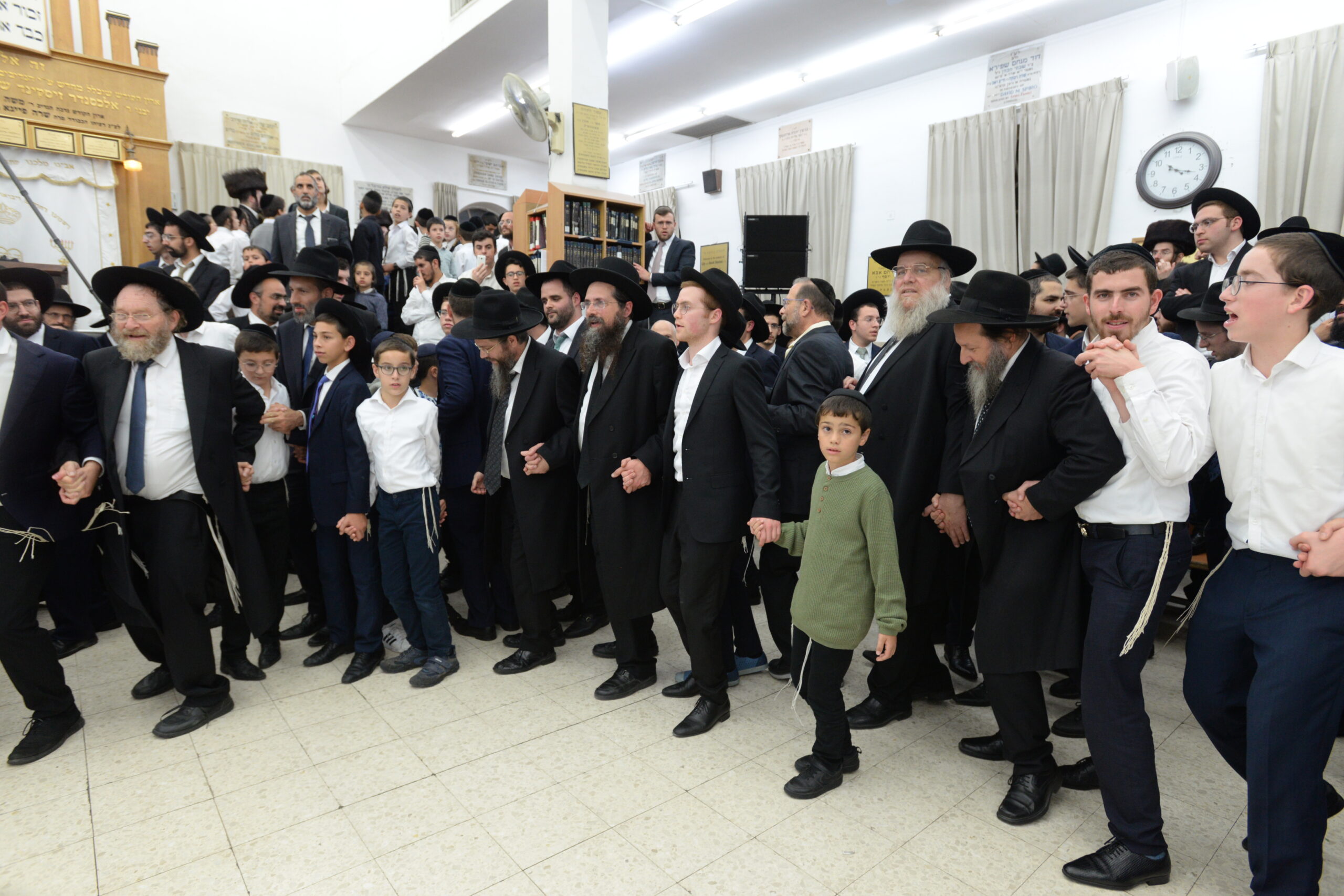 The Yeshiva’s Simchas Beis Hashoeva was held on Thursday, the second night of Chol Hamoed, beginning with music and dancing in the Mercazi Bais Medrash at 9:20. When the Roshei Yeshiva walked in about twenty minutes later, the olam broke out in tremendous excitement as they danced with their Rabbeim for several hours. Many visiting guests joined as well, taking the opportunity to wish the Roshei Yeshiva a Gut Yom Tov. All in all, there were around 9,000 people coming by throughout the night. The highlight of the event, as usual, was the kumzitz with inspiring songs of Yamim Noraim and Geulah at the end of the night, culminating in Leshana Haba’ah Bi’Yerushalayim.