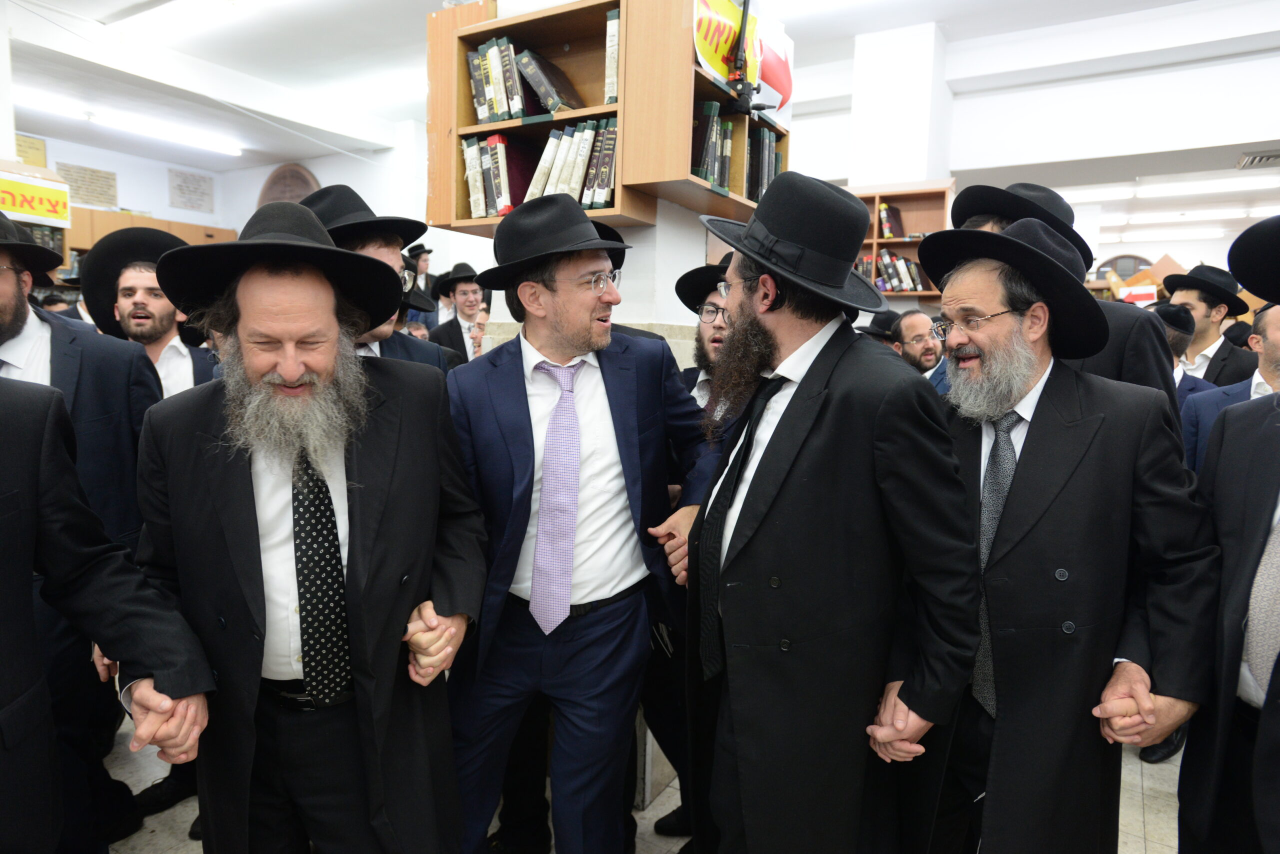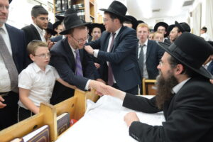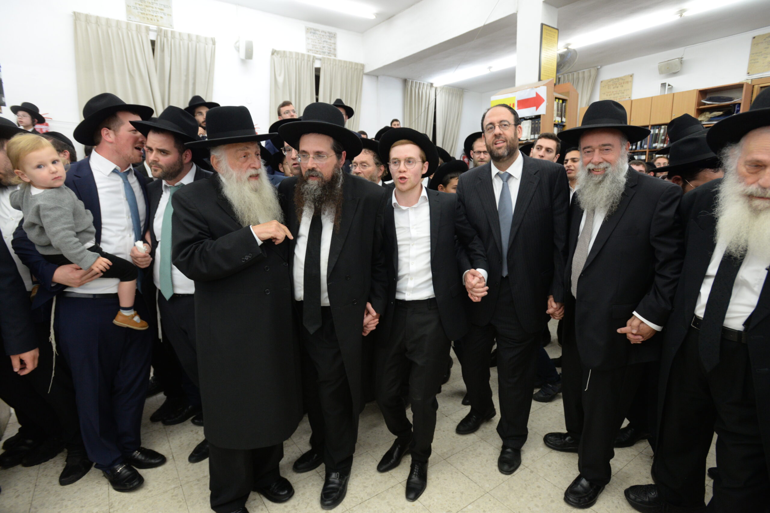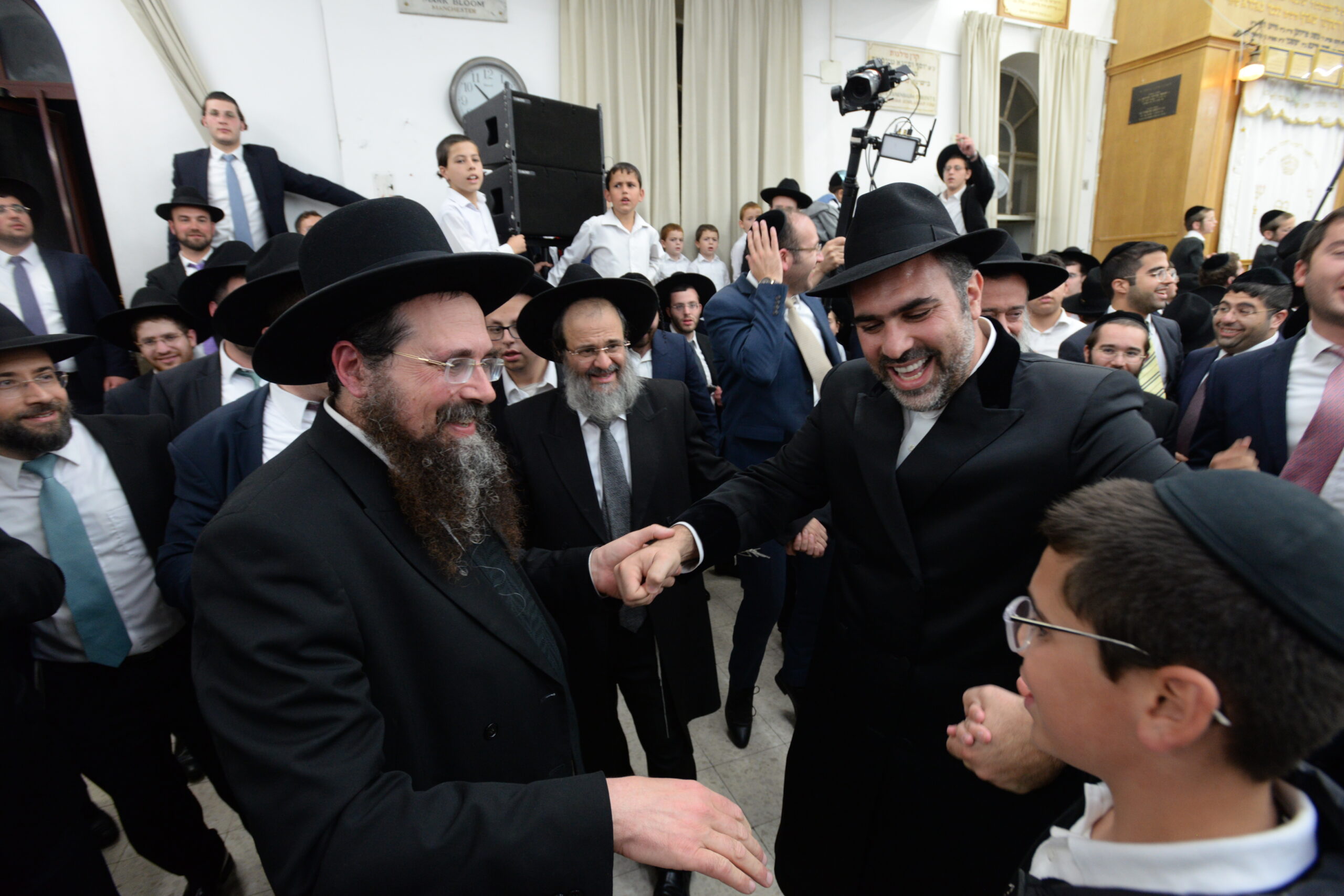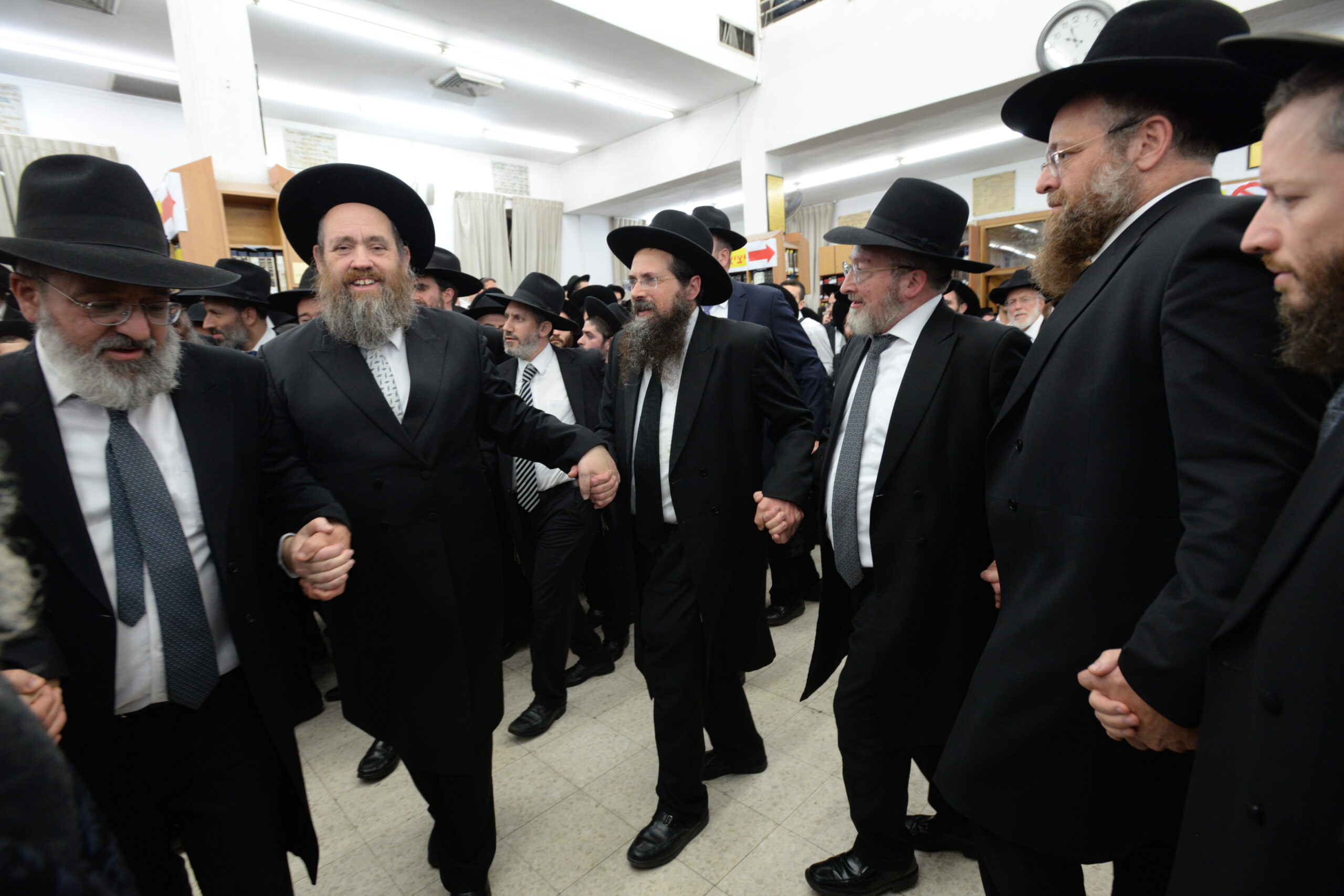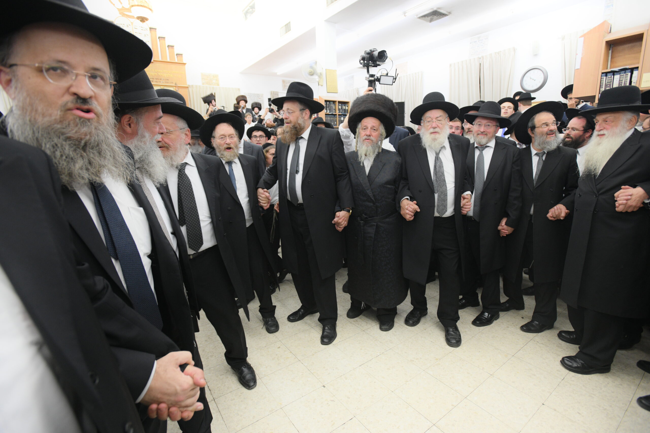 The Yeshiva’s Simchas Beis Hashoeva was held on Thursday, the second night of Chol Hamoed, beginning with music and dancing in the Mercazi Bais Medrash at 9:20. When the Roshei Yeshiva walked in about twenty minutes later, the olam broke out in tremendous excitement as they danced with their Rabbeim for several hours. Many visiting guests joined as well, taking the opportunity to wish the Roshei Yeshiva a Gut Yom Tov. All in all, there were around 9,000 people coming by throughout the night. The highlight of the event, as usual, was the kumzitz with inspiring songs of Yamim Noraim and Geulah at the end of the night, culminating in Leshana Haba’ah Bi’Yerushalayim.